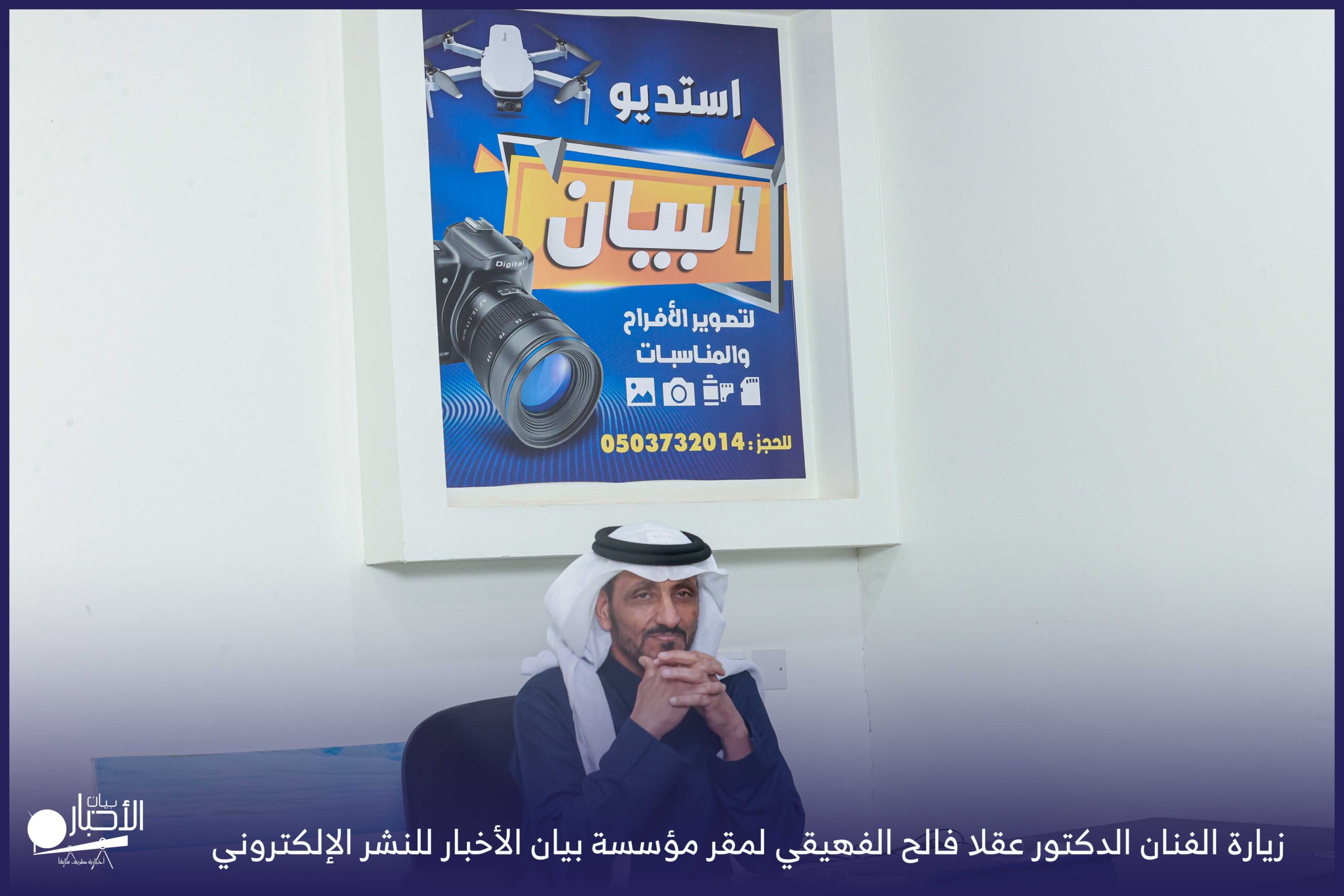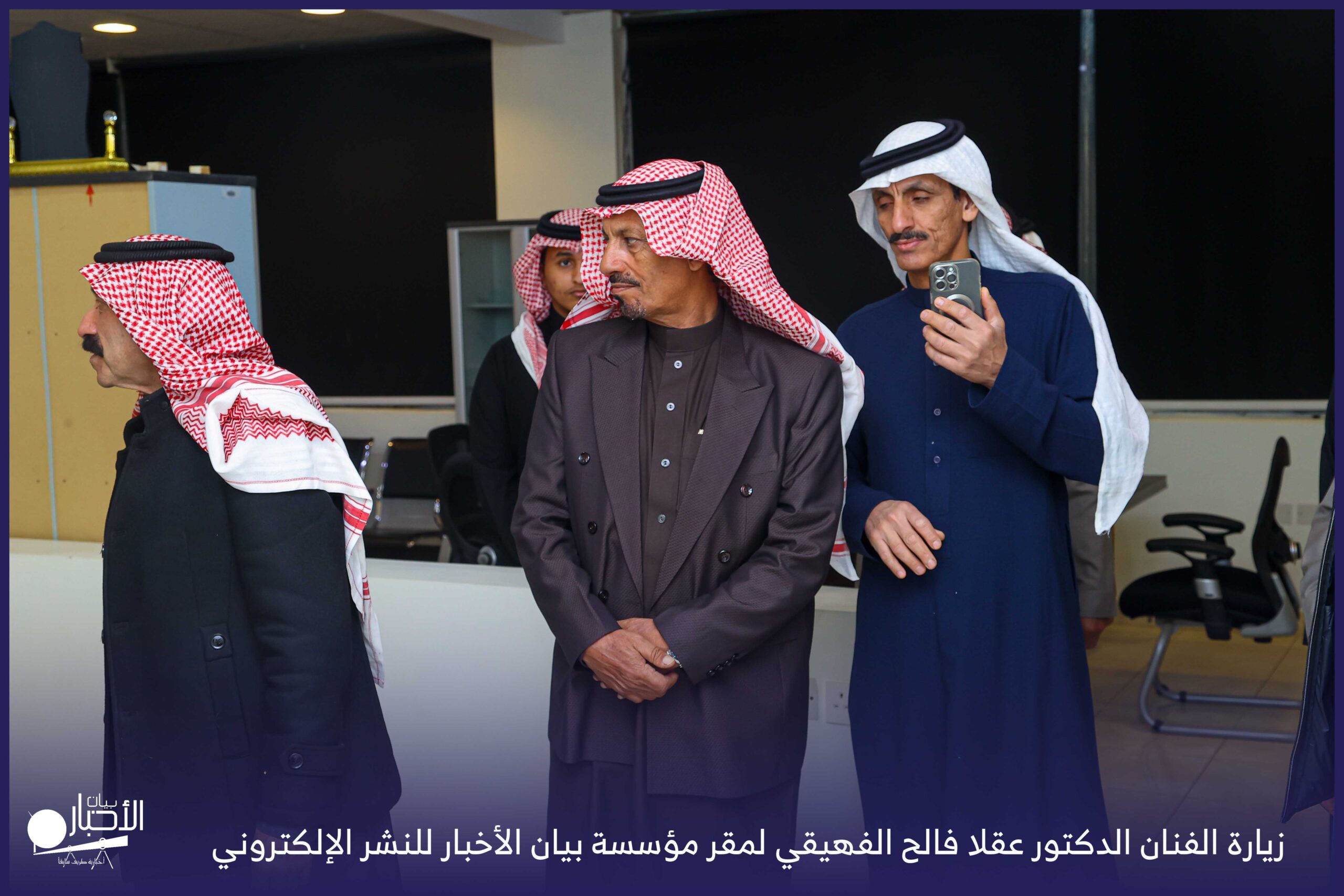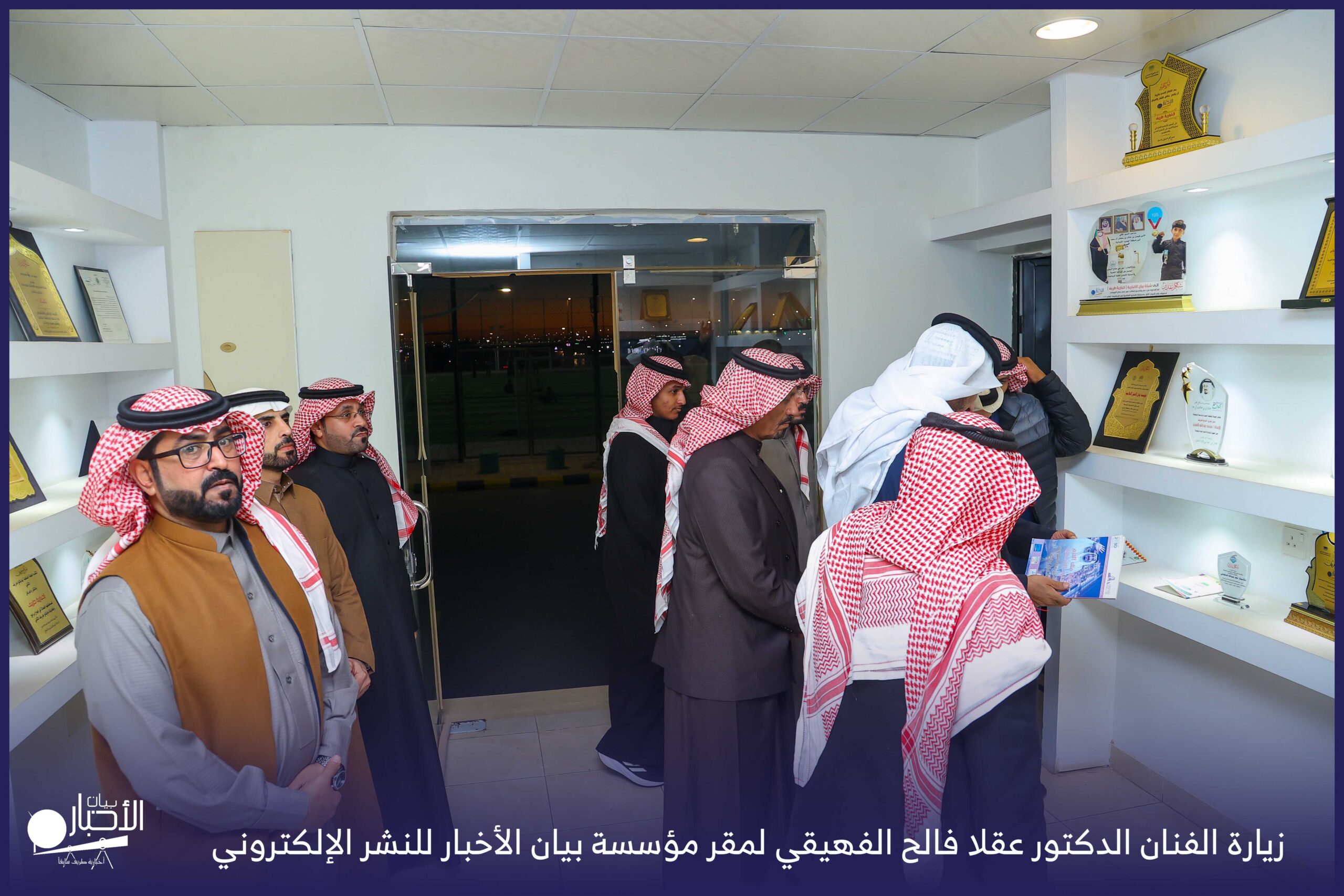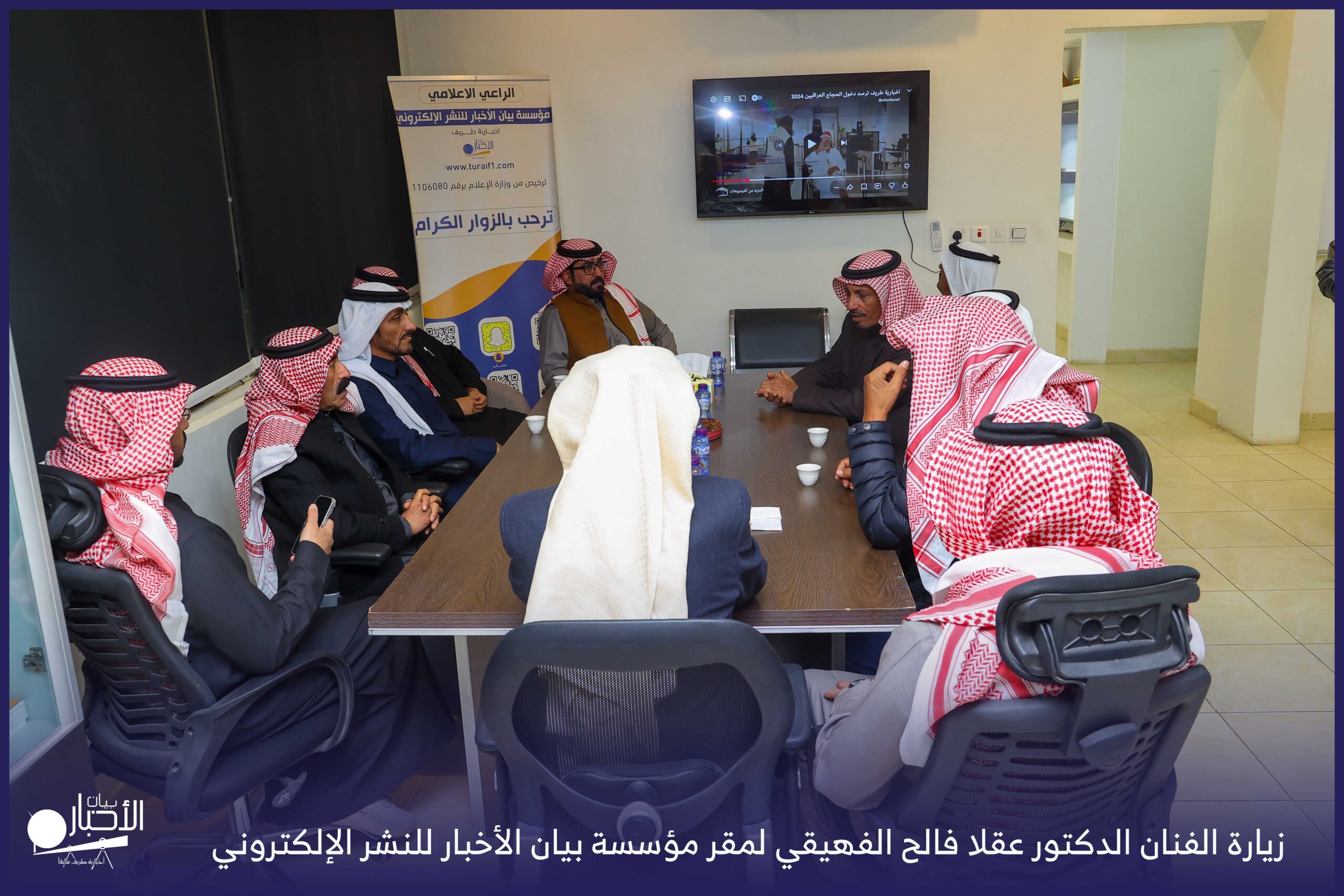 زار الفنان الدكتور عقلا فالح الفهيقي، مؤسسة بيان الأخبار (إخبارية طريف سابقا) وكان في استقباله إدارة الموقع ممثلة بالأستاذ فهد الدغماني، فيما رافق الفنان الدكتور عقلا خلال الزيارة الأستاذ طالب حمود الحضيري الفهيقي وعدد من الضيوف .