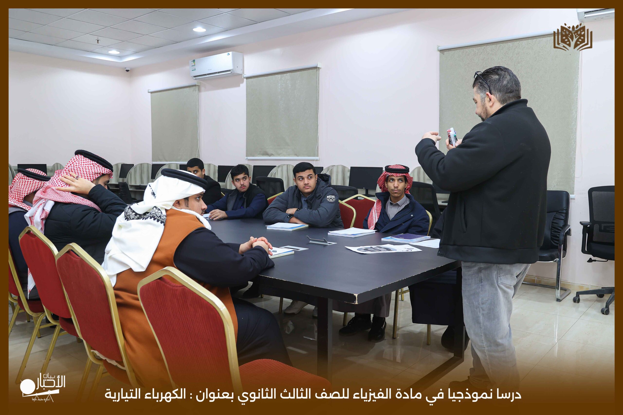 شهدت مدارس الوعد النموذجية في محافظة طريف يوم الأحد ١٤٤٧/٨/٦ درسا نموذجيا في مادة الفيزياء للصف الثالث الثانوي بعنوان : الكهرباء التيارية.