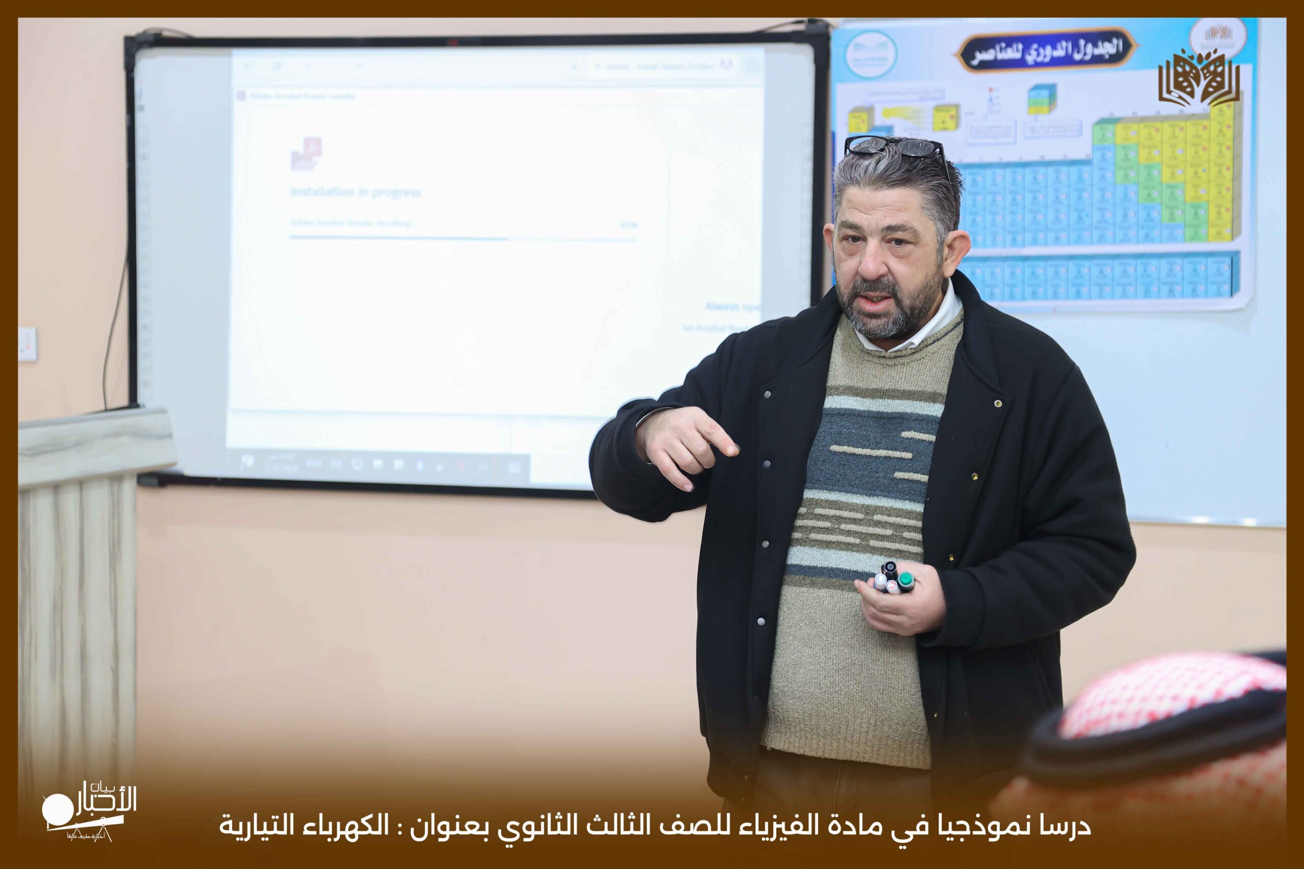 و قدم الدرس معلم الفيزياء انس موسى باشا معتمدا في حصته على استراتيجيات التعلم النشط، و ذلك بتطبيق استرتيجيتي التعلم المتمايز و العصف الذهني ، مما ساهم في إشراك جميع الطلاب وتفاعلهم مع الدرس. كما استخدم المعلم وسائل تعليمية متنوعة . بالإضافة إلى السبورة الذكية، مما أضفى على الحصة طابعاً تفاعلياً وجذاباً.