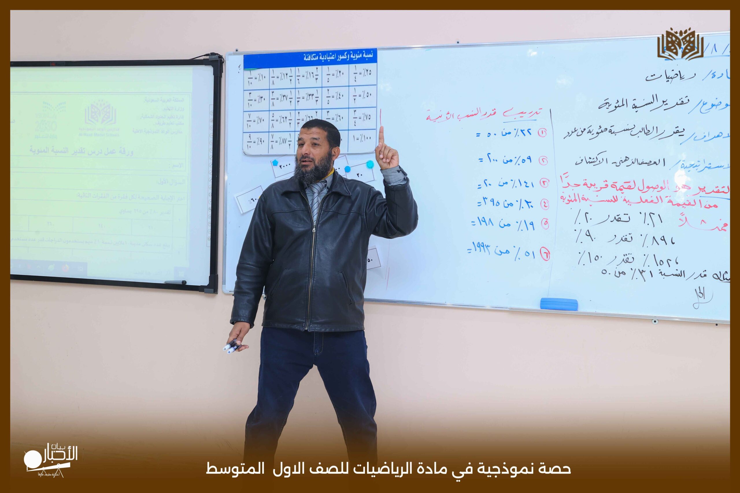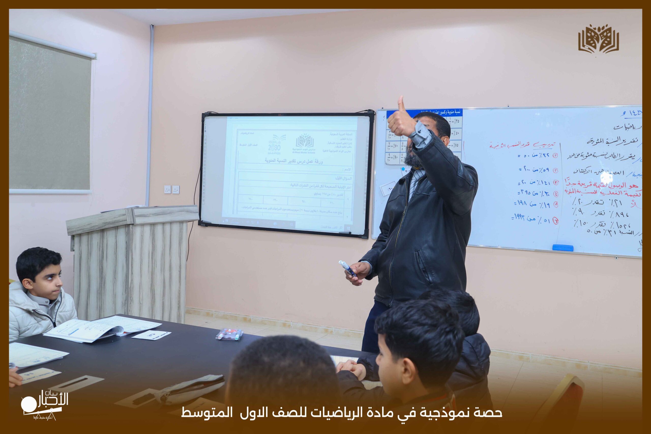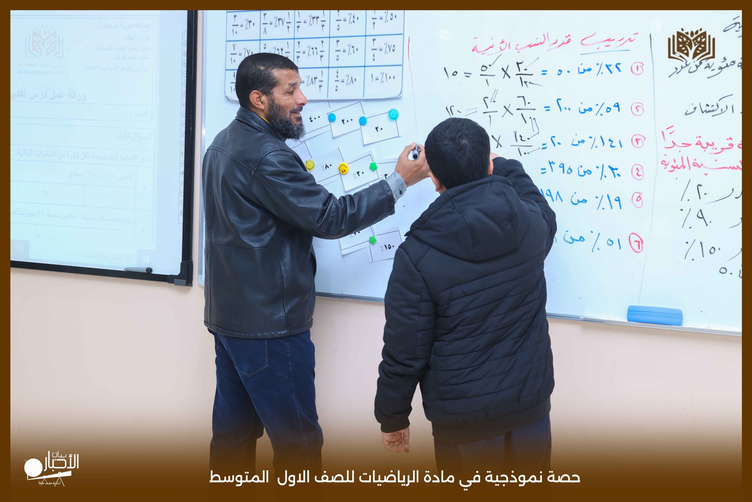 قدمت اليوم مدارس الوعد النموذجية بالقسمين المتوسط والثانوي حصة نموذجية في مادة الرياضيات للصف الأول المتوسط، جاءت بعنوان «تقدير النسبة المئوية».