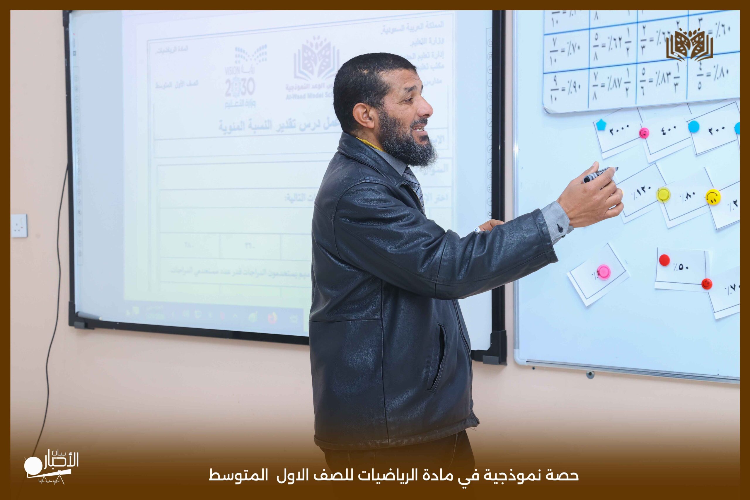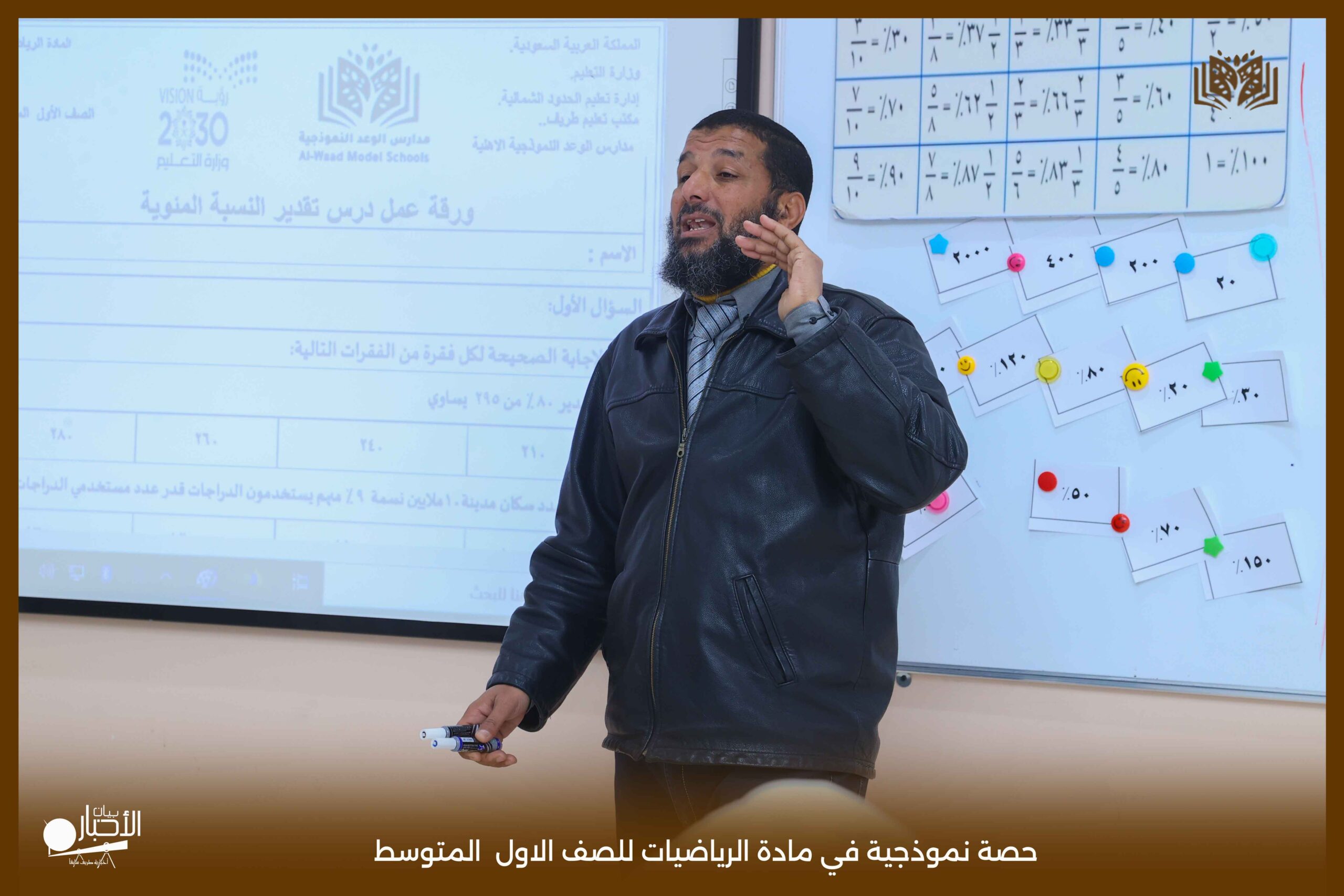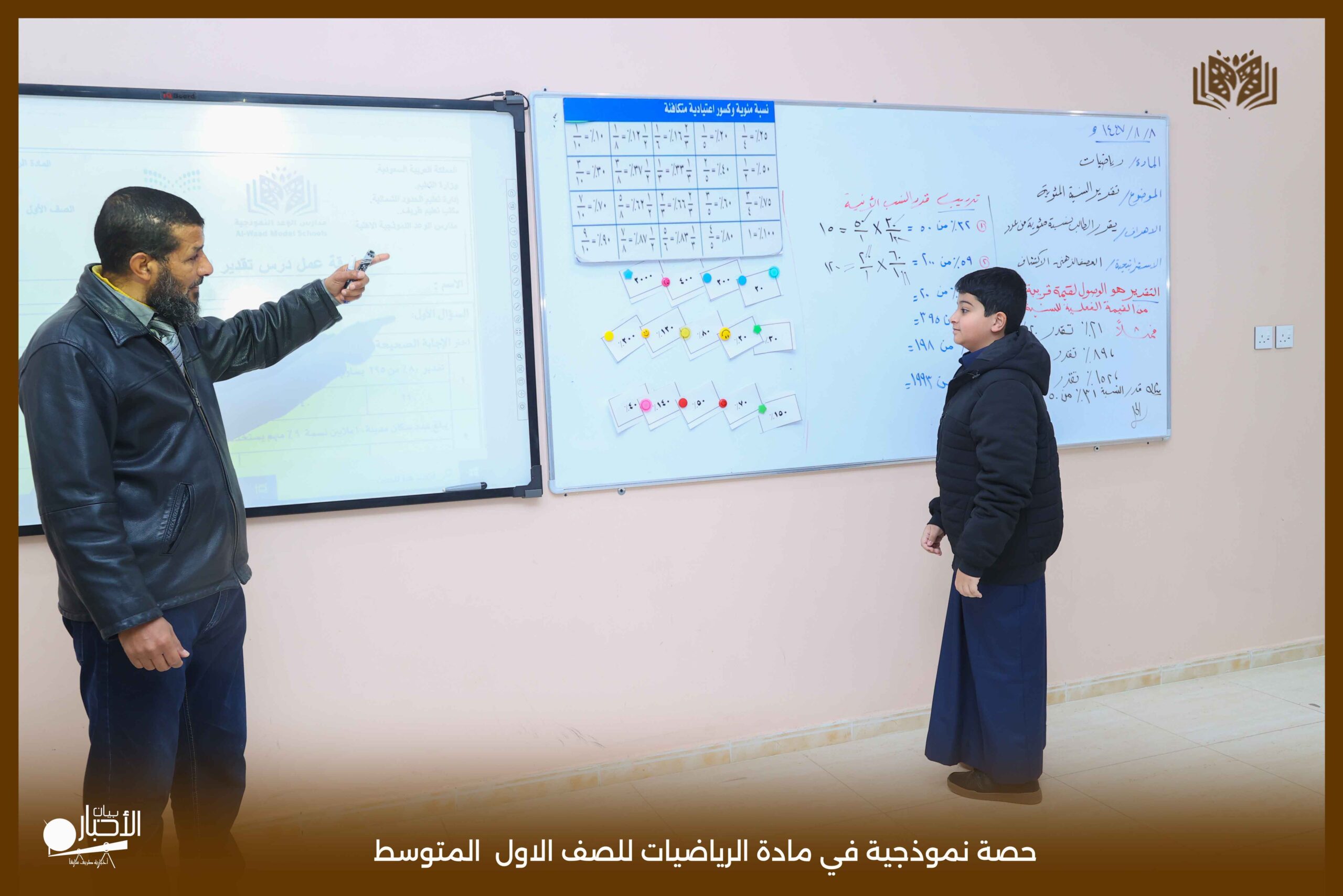 قدمت اليوم مدارس الوعد النموذجية بالقسمين المتوسط والثانوي حصة نموذجية في مادة الرياضيات للصف الأول المتوسط، جاءت بعنوان «تقدير النسبة المئوية».