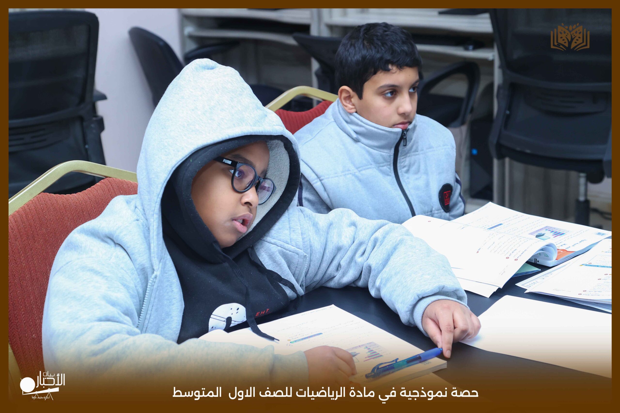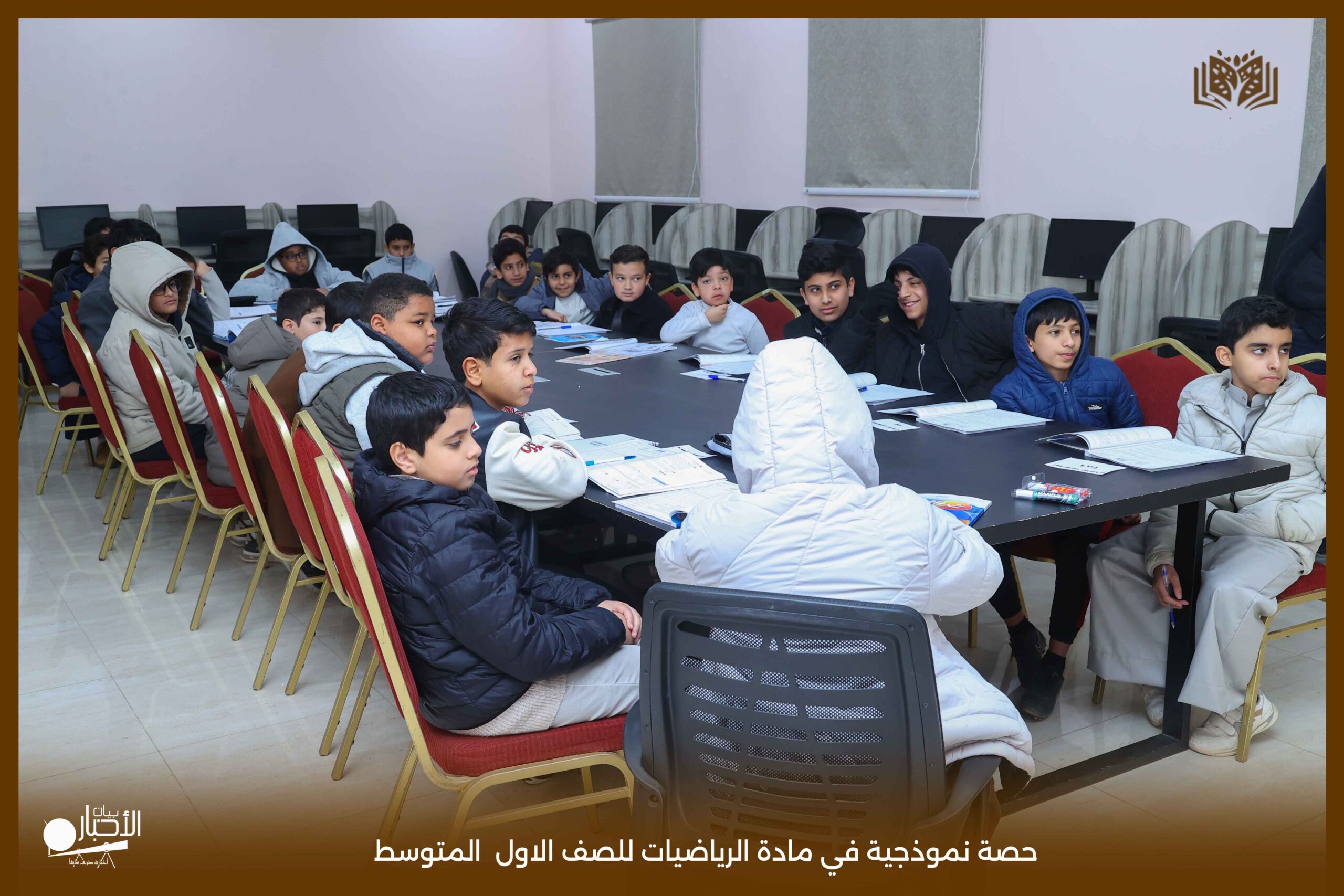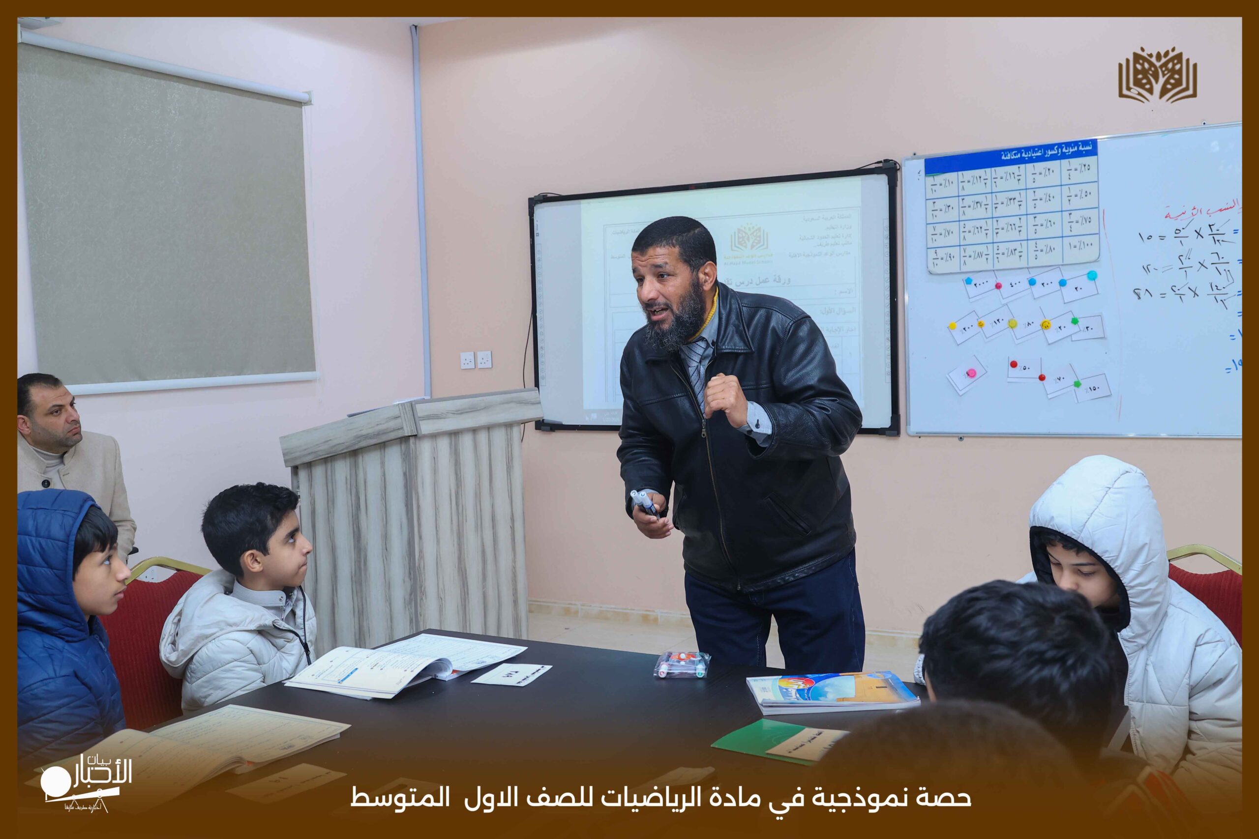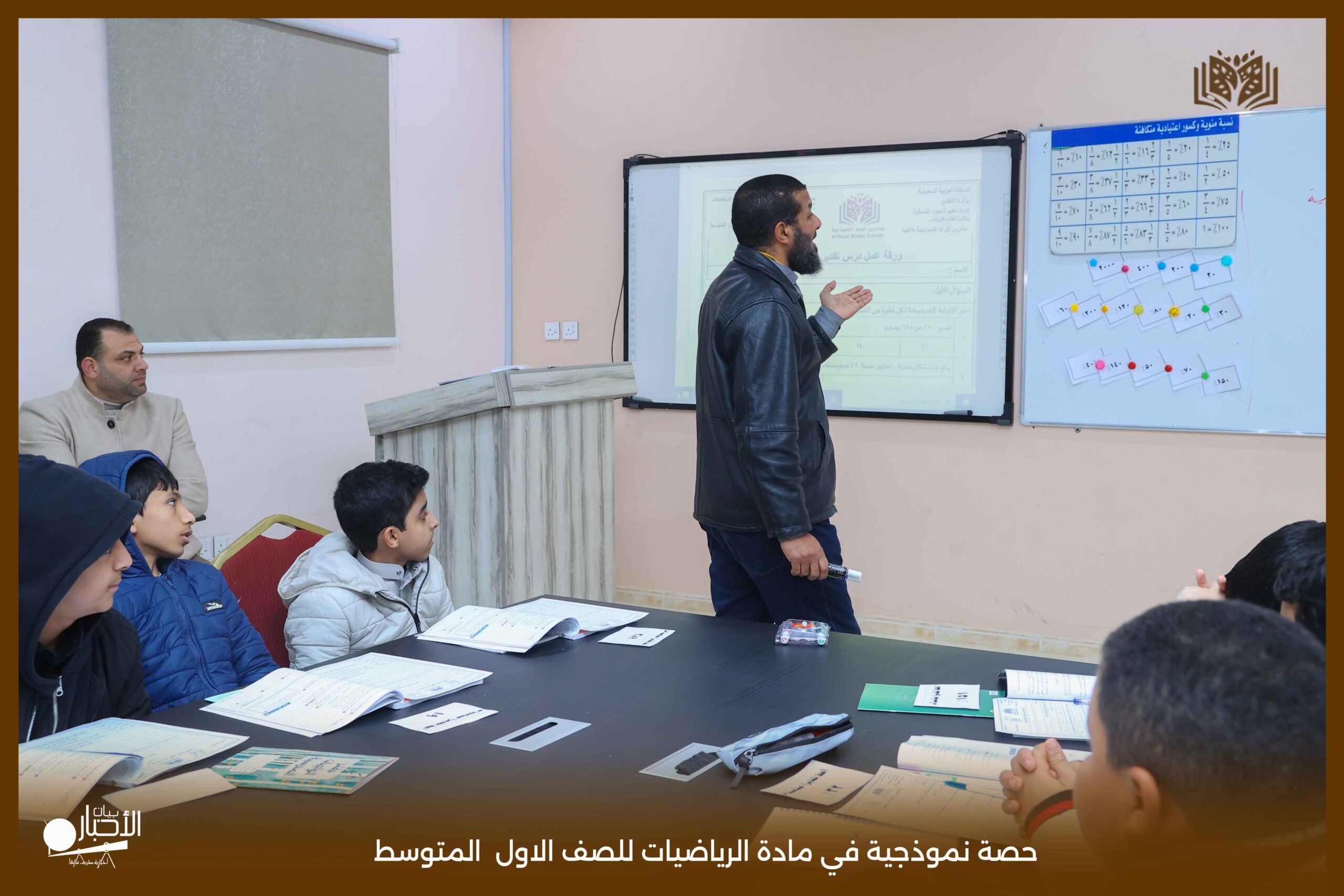 وقد استخدم معلم المادة خلال الحصة استراتيجيات التعلم النشط، إلى جانب توظيف الوسائل التعليمية المناسبة، بما أسهم في تبسيط المفاهيم الرياضية وإيصال المعلومة للطلاب بصورة فعّالة ومشوقة.