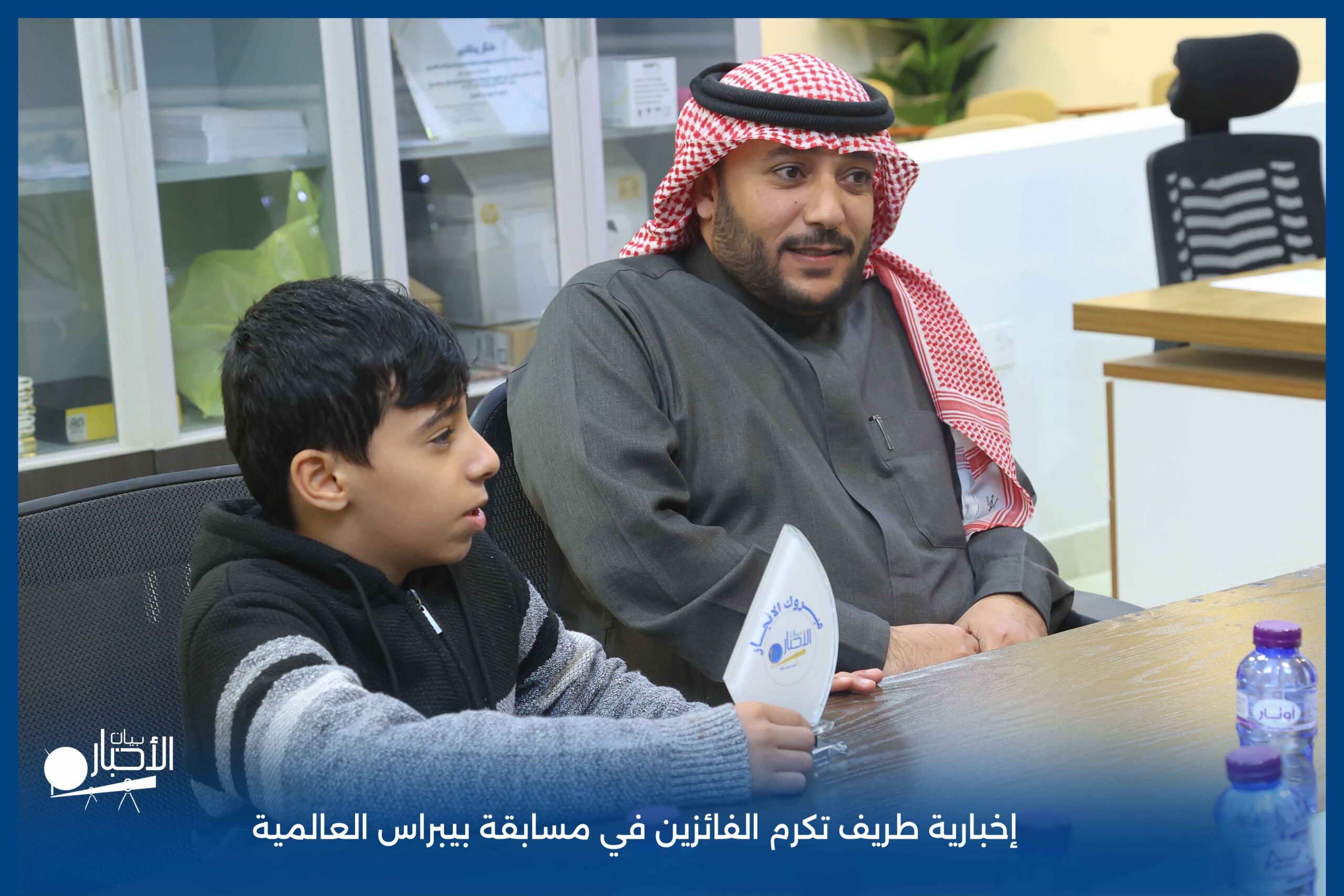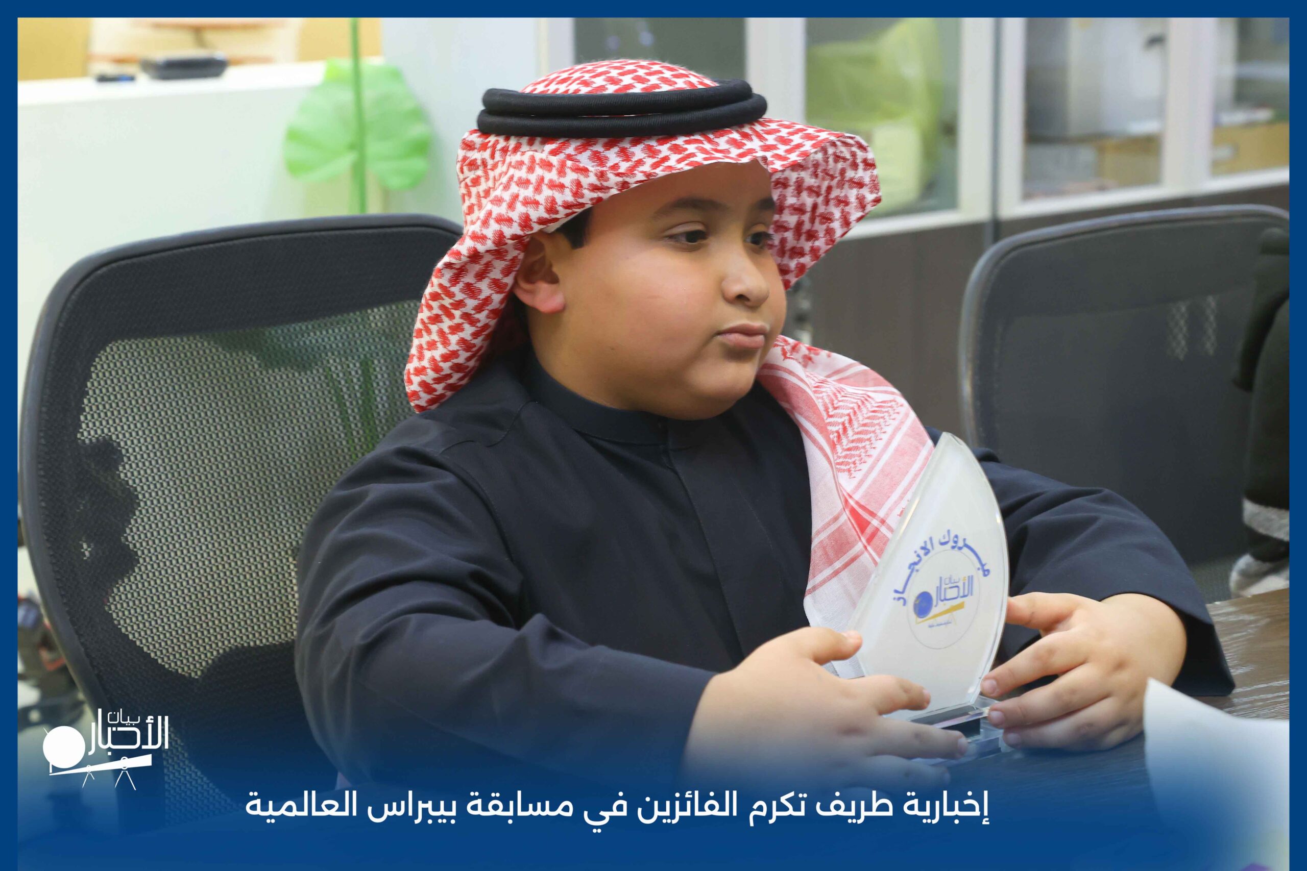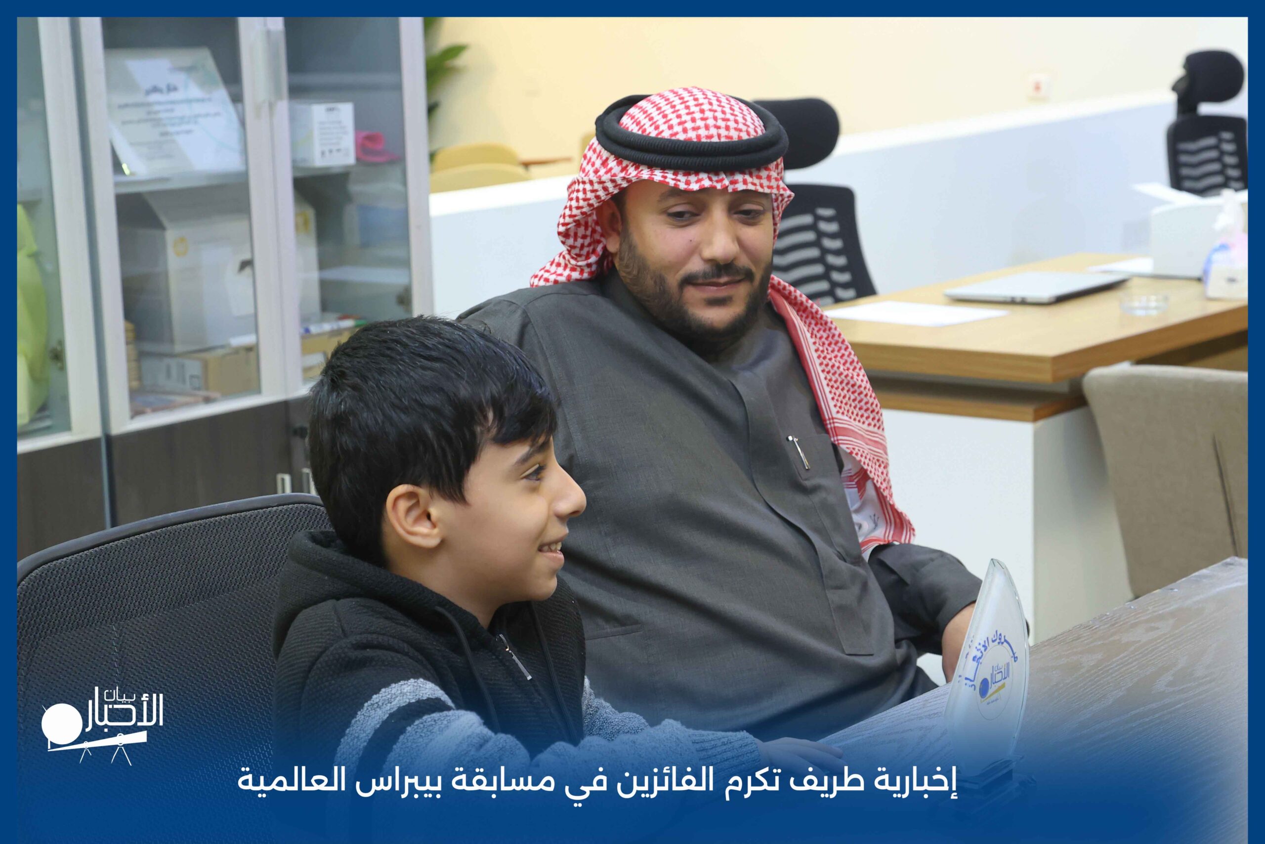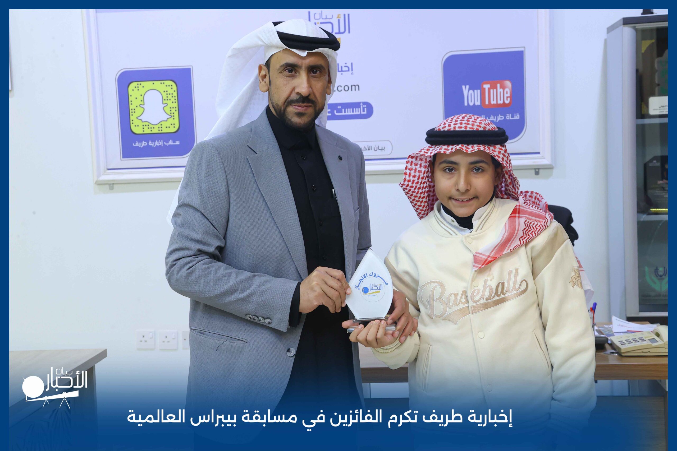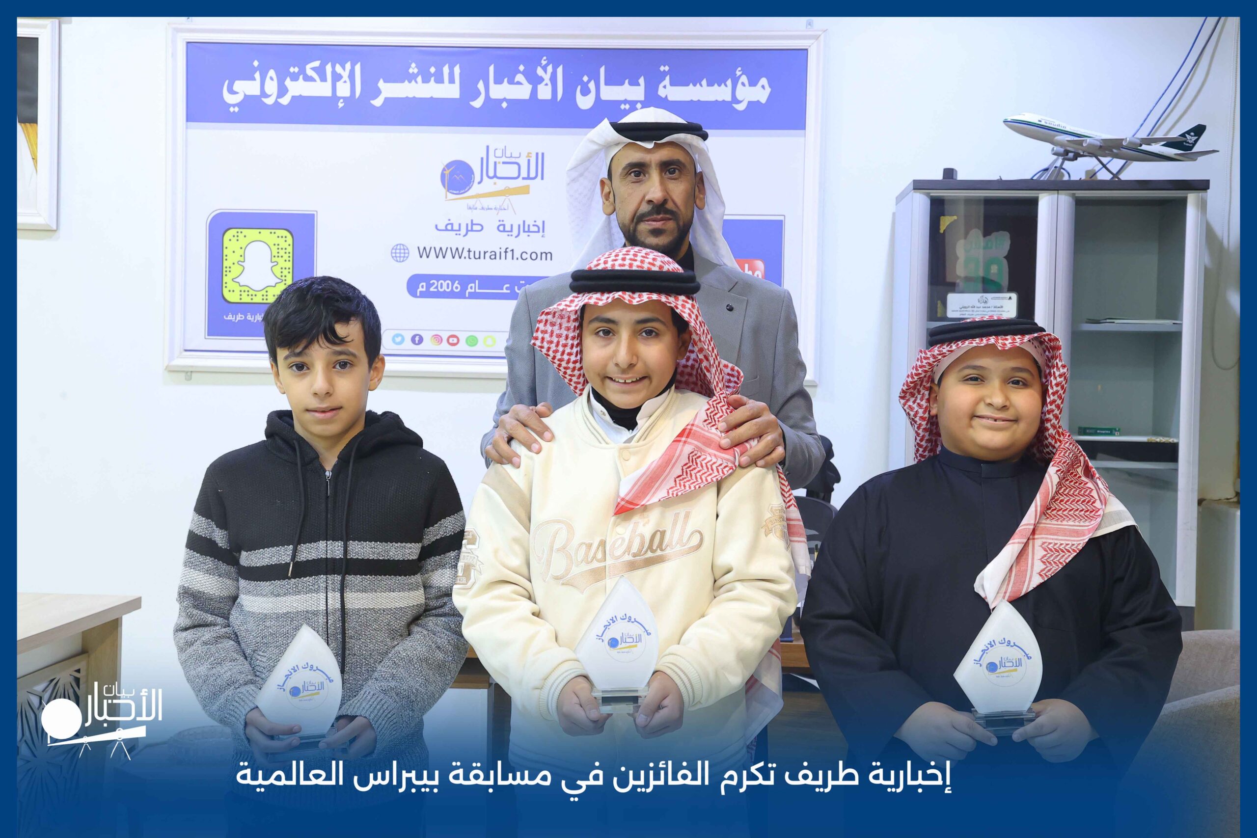 كرّمت إدارة مؤسسة بيان الأخبار للنشر الإلكتروني (إخبارية طريف سابقًا) الفائزين من طلاب محافظة طريف، الحاصلين على الجوائز والمراكز المتقدمة في مسابقة “بيبراس” موهبة للمعلوماتية 2024م، وذلك بحضور المدير العام لمؤسسة بيان الأخبار للنشر الإلكتروني الأستاذ فهد الدغماني، والأستاذ محمد الموزن.