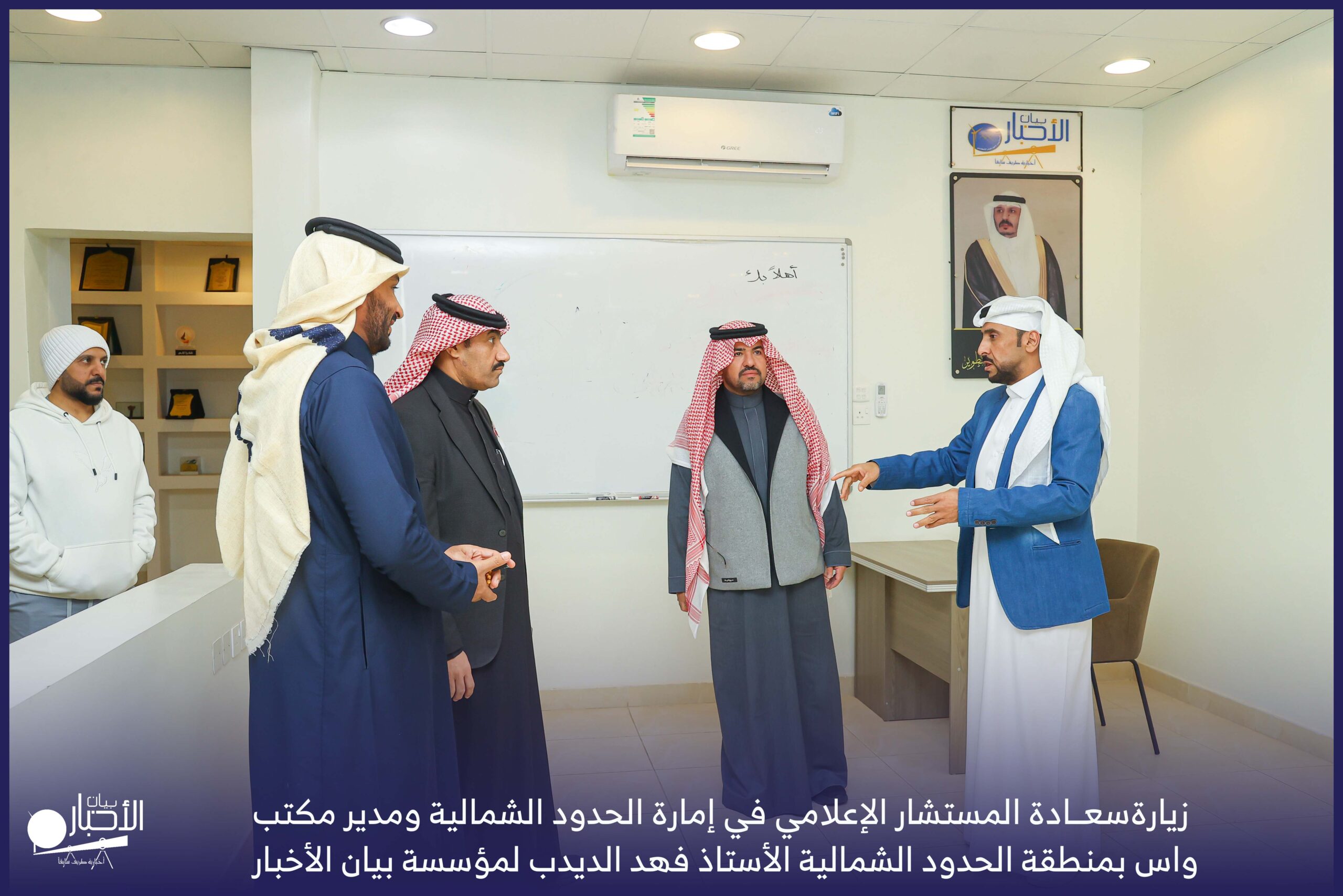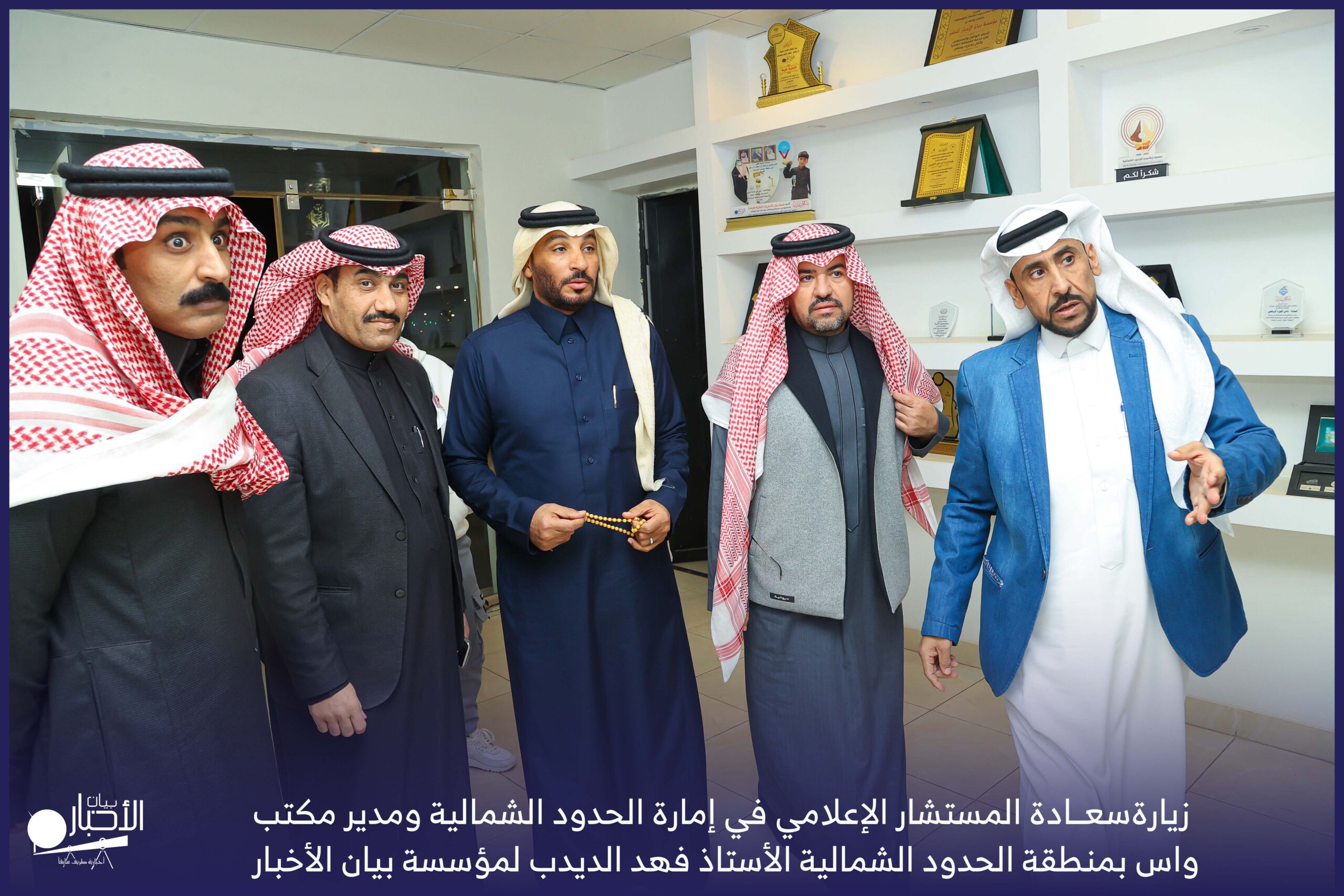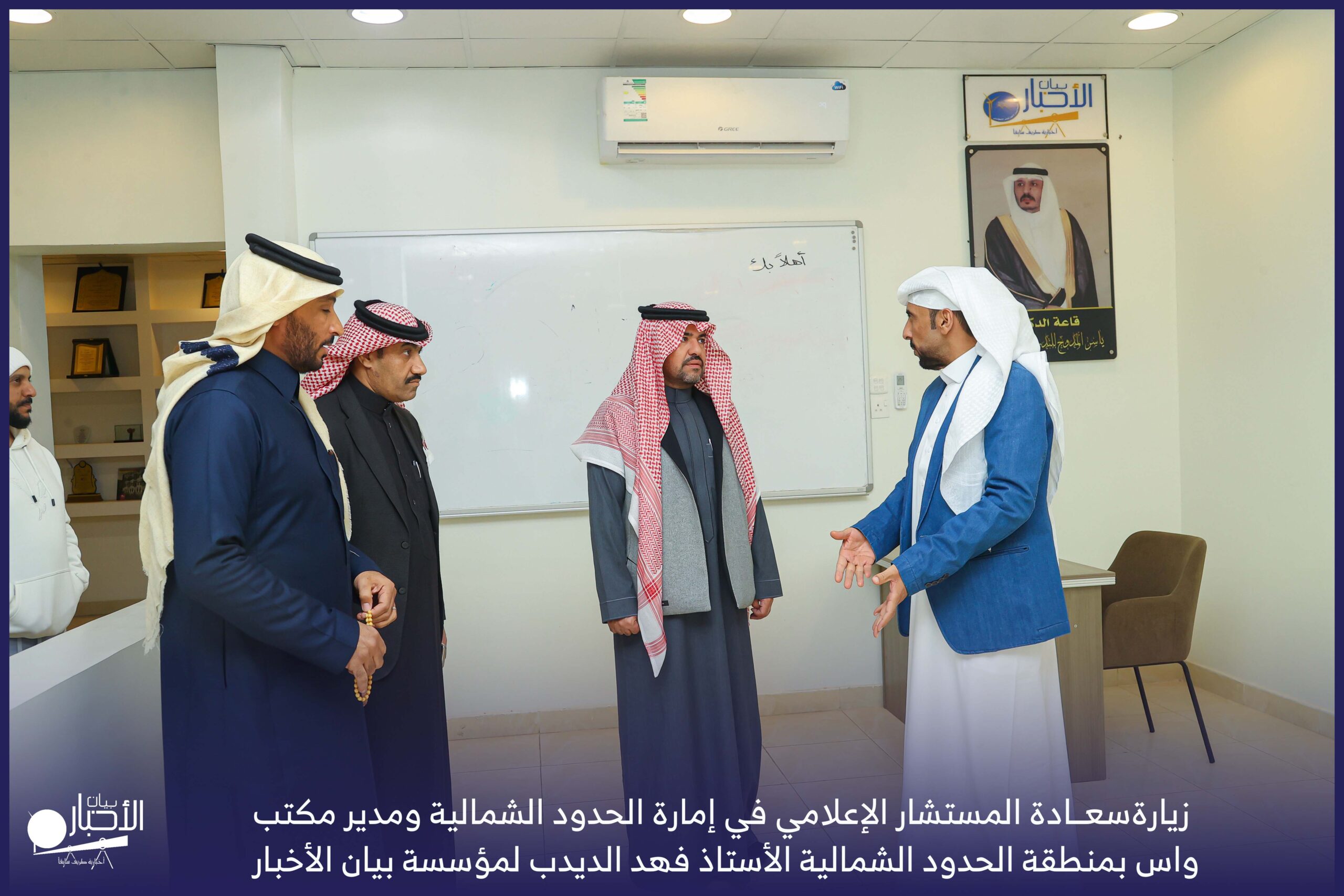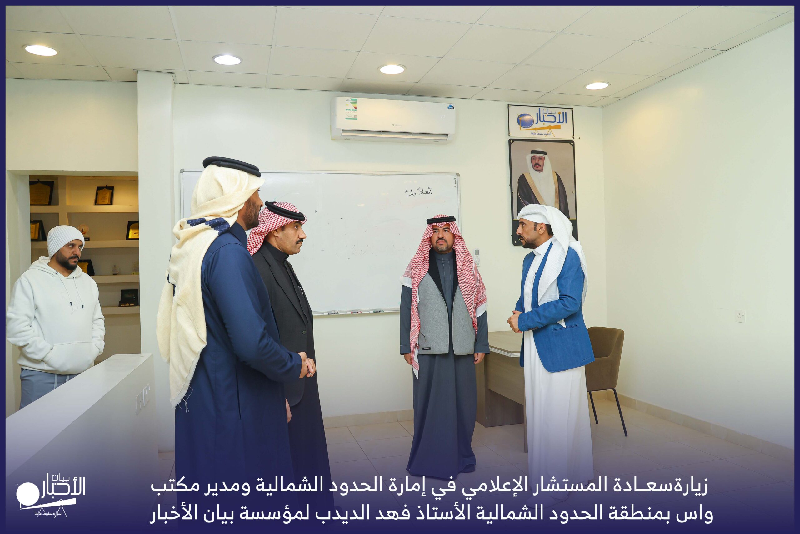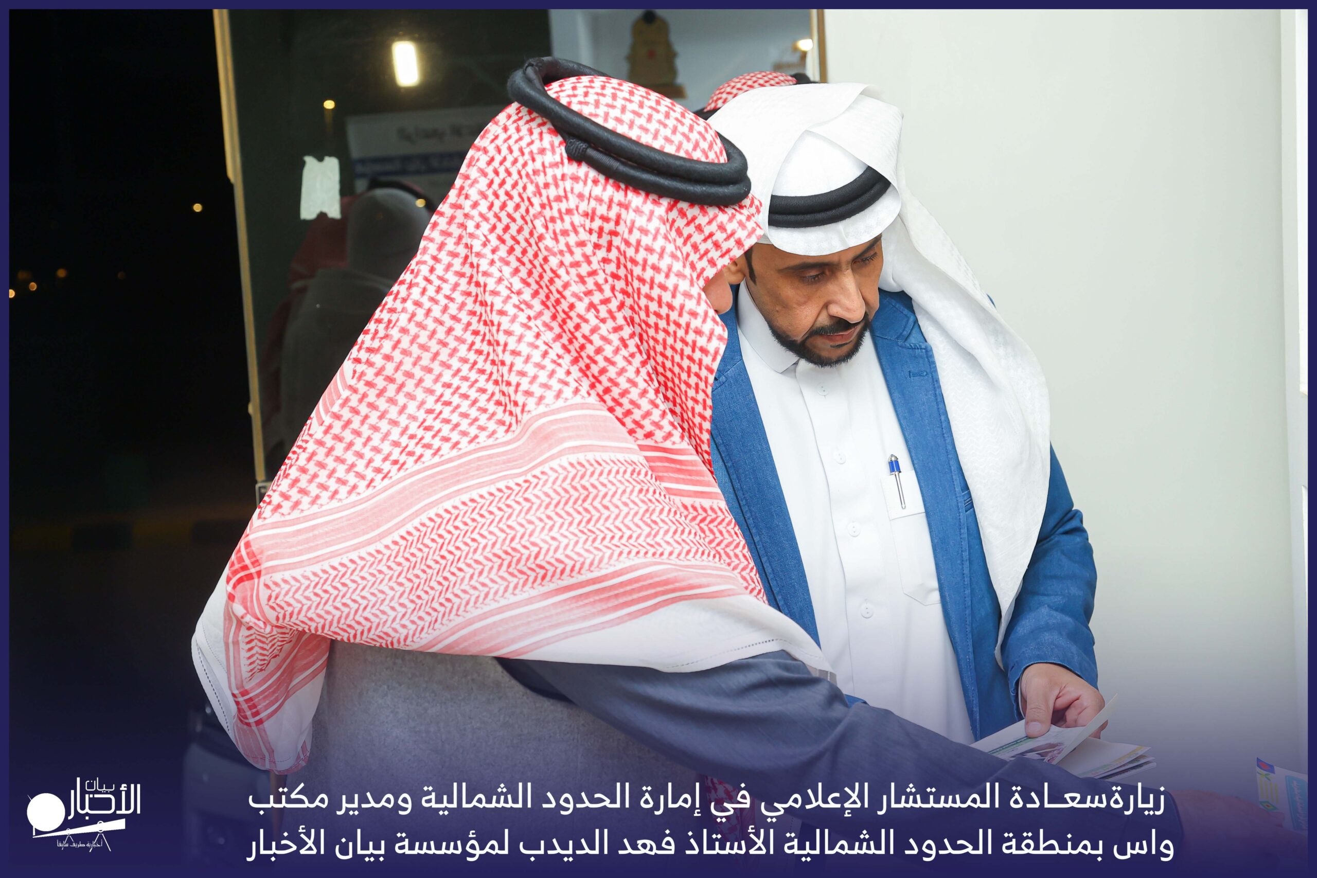 زار سعادة المستشار الإعلامي في إمارة الحدود الشمالية ومدير مكتب واس بمنطقة الحدود الشمالية الأستاذ فهد الديدب، مؤسسة بيان الأخبار (إخبارية طريف سابقا) ، يرافقه مراسل قناة الإخبارية بمحافظة رفحاء الأستاذ عبدالله عايش العنزي ، وكان في استقباله إدارة الموقع ممثلة بالأستاذ فهد الدغماني، والأستاذ محمد الموزن، والأستاذ منصور المتعب.