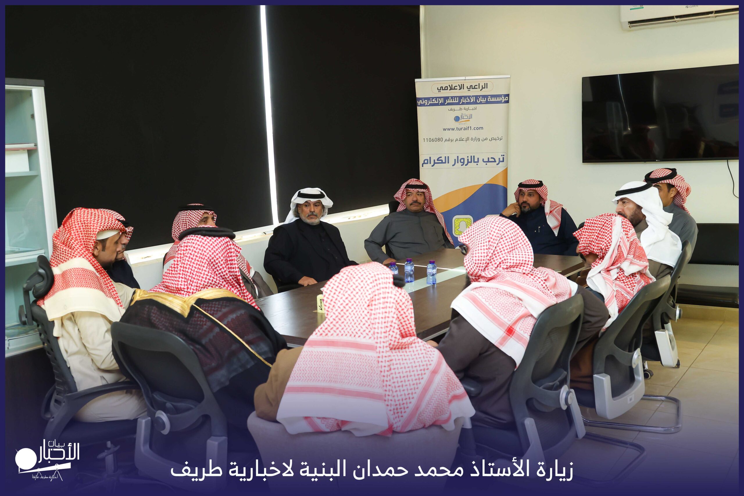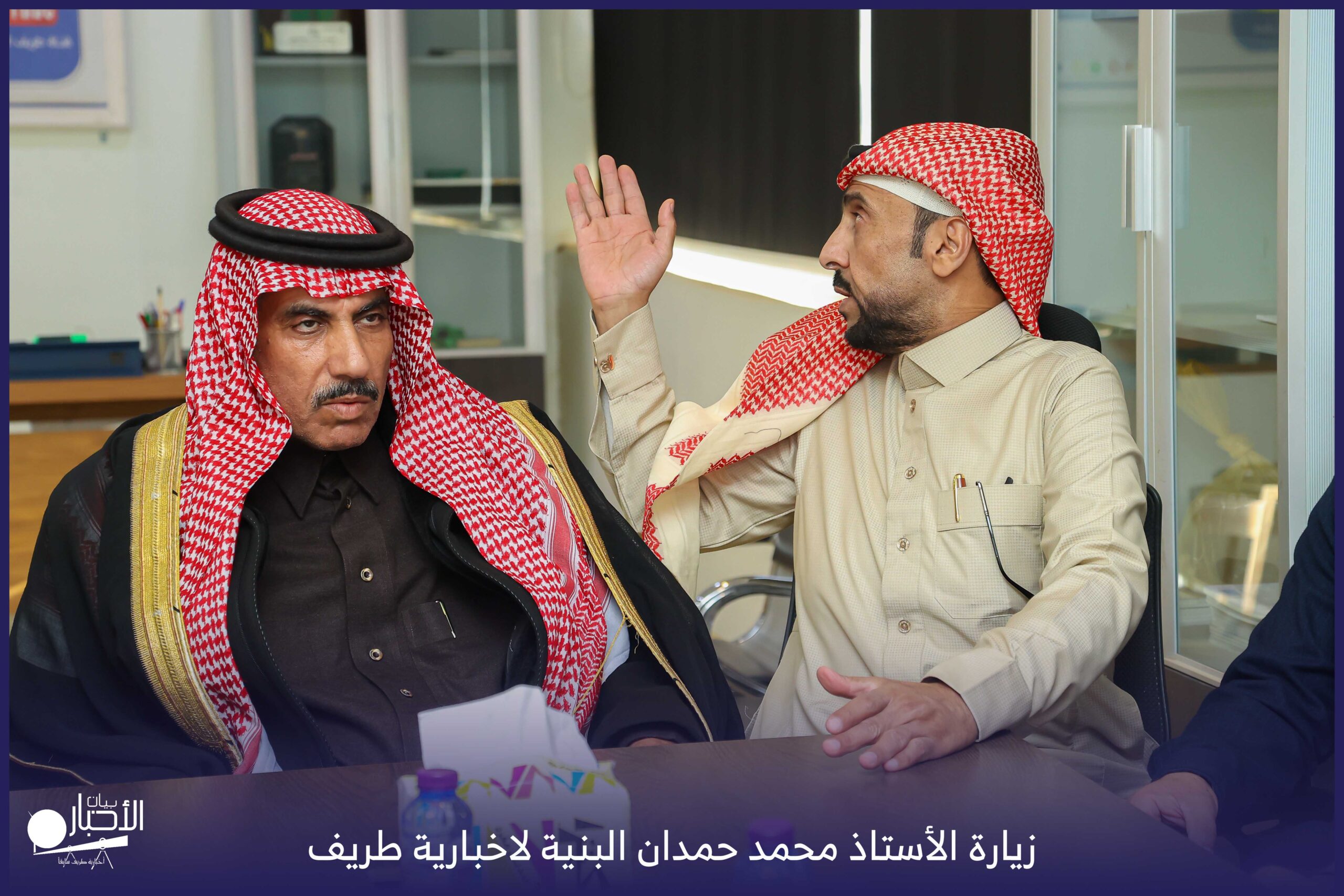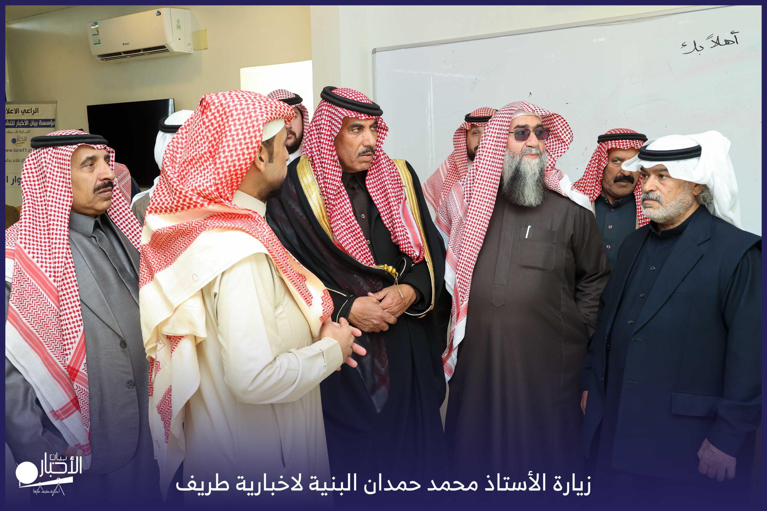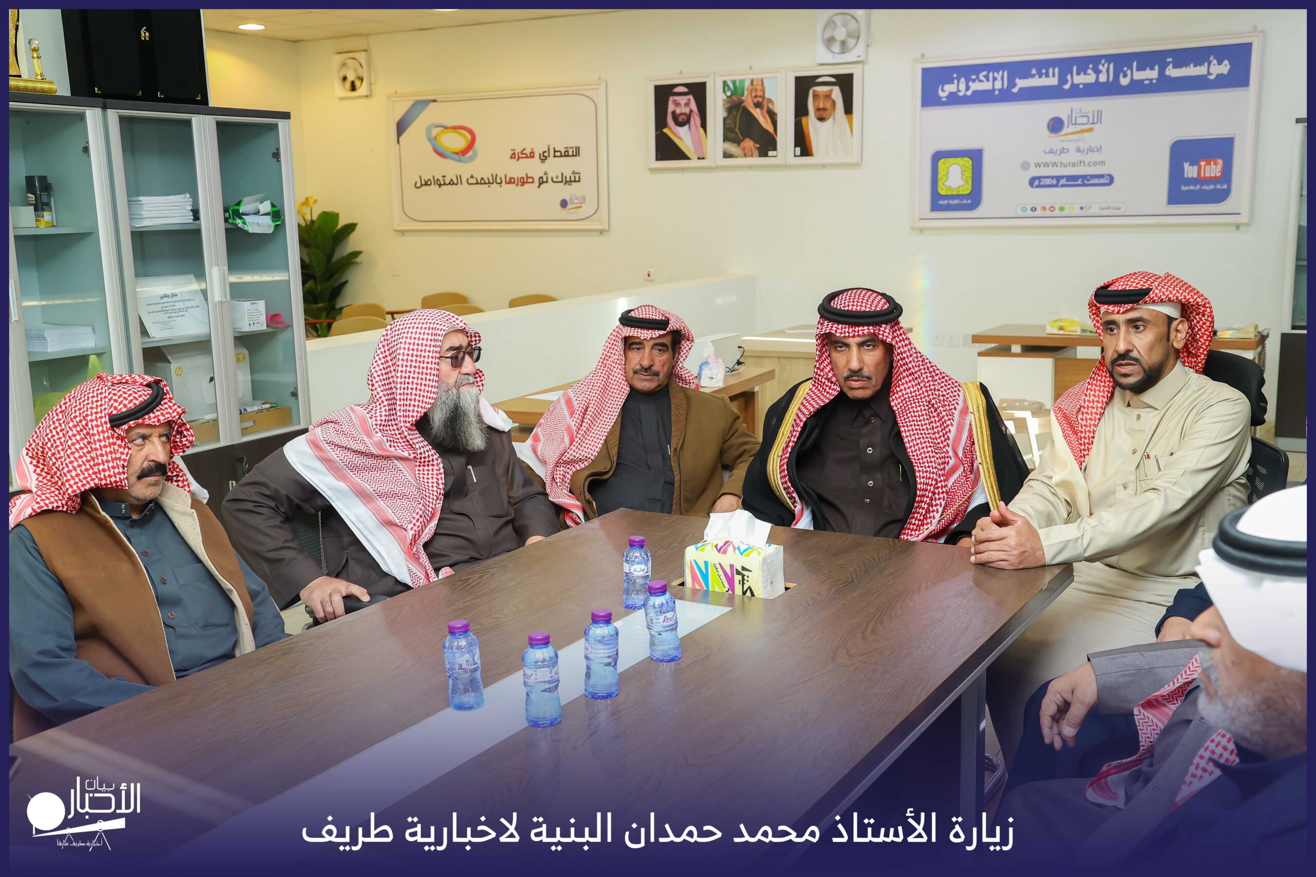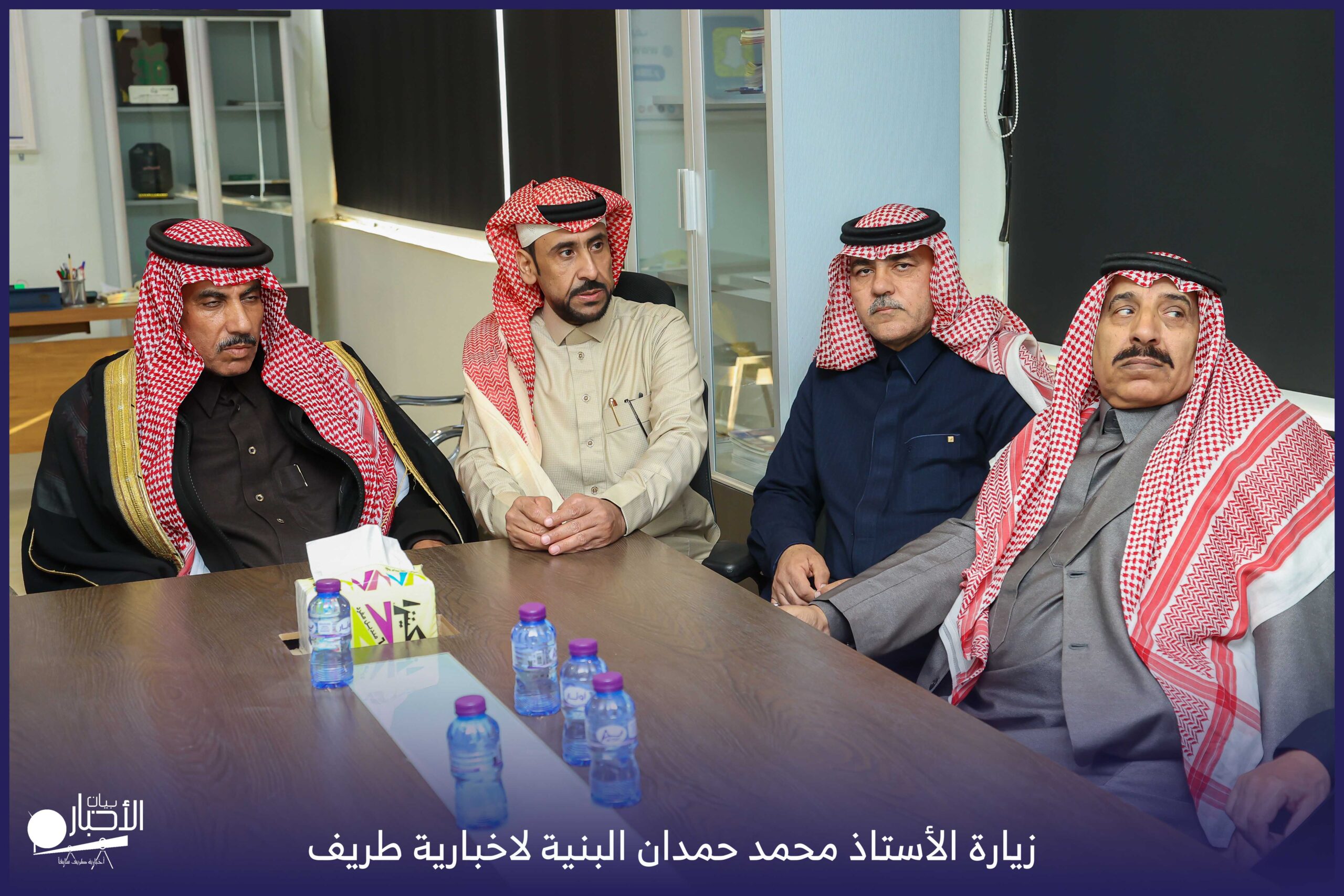 وفي ختام الزيارة تقدم الأستاذ محمد حمدان البنية بالشكر الجزيل لصحيفة بيان الأخبار (إخبارية طريف سابقا ) على دورها البارز في نشر كل ما يخدم أهل المحافظة، متمنيا لها مزيد من التقدم والنجاح.