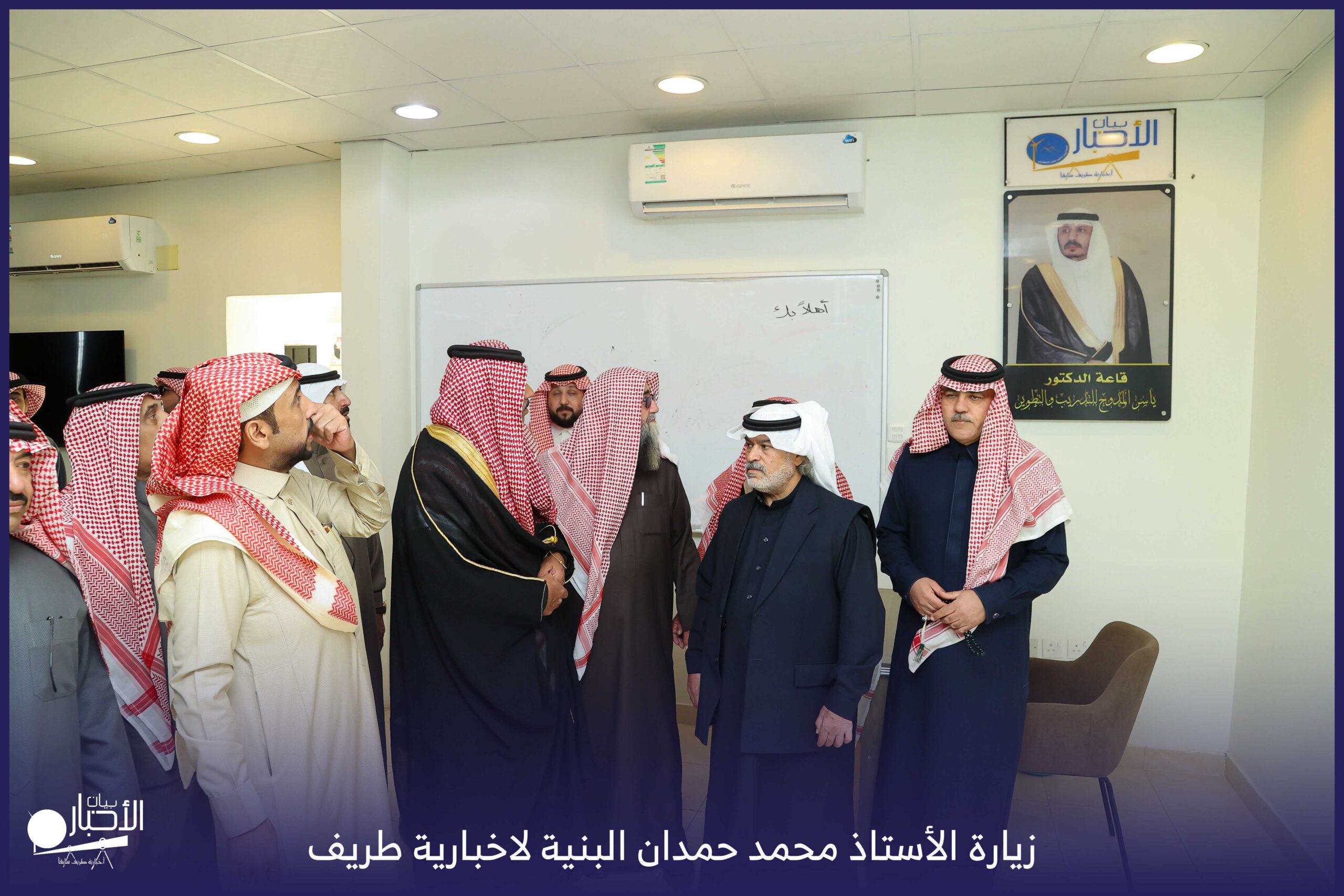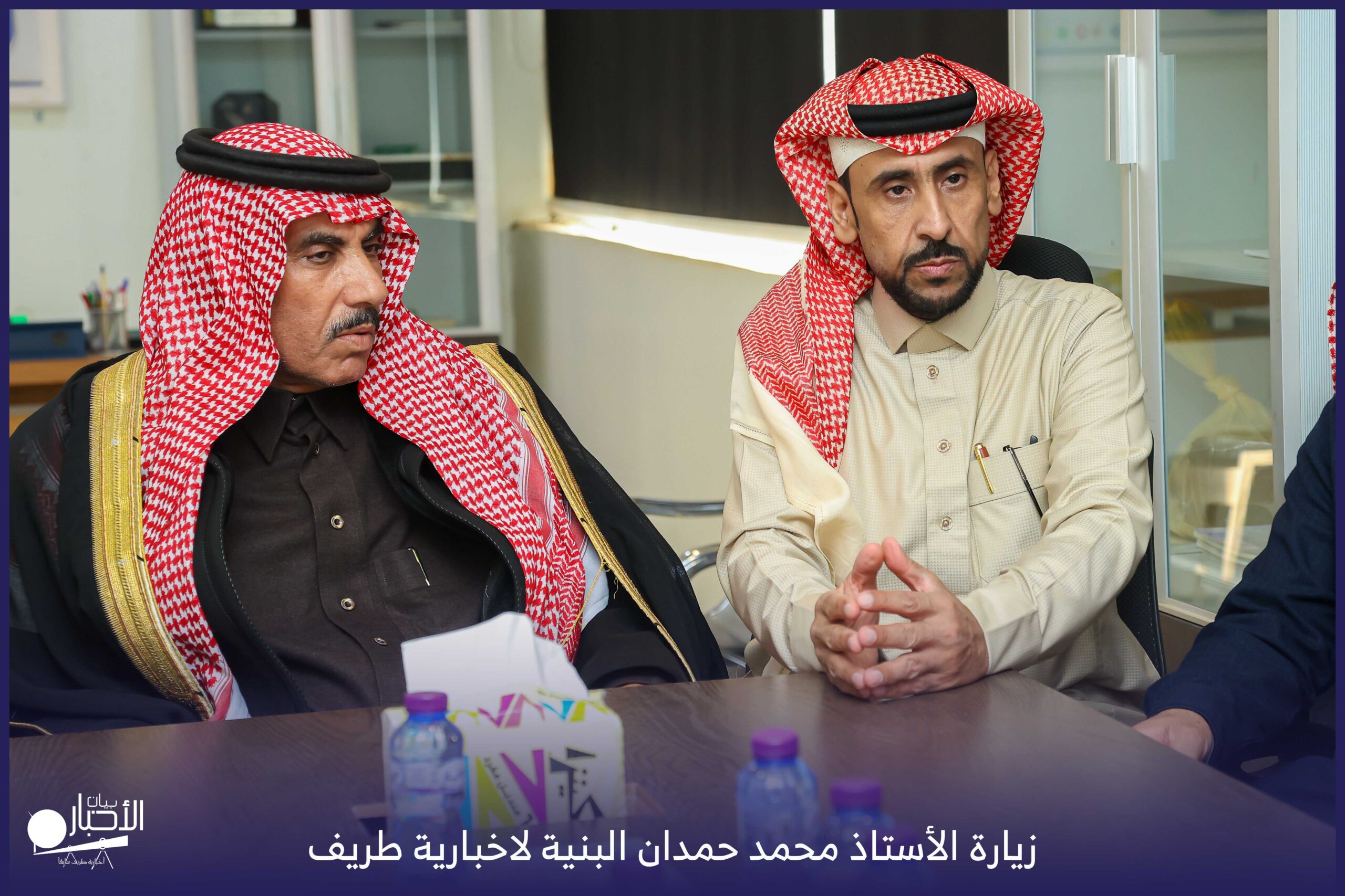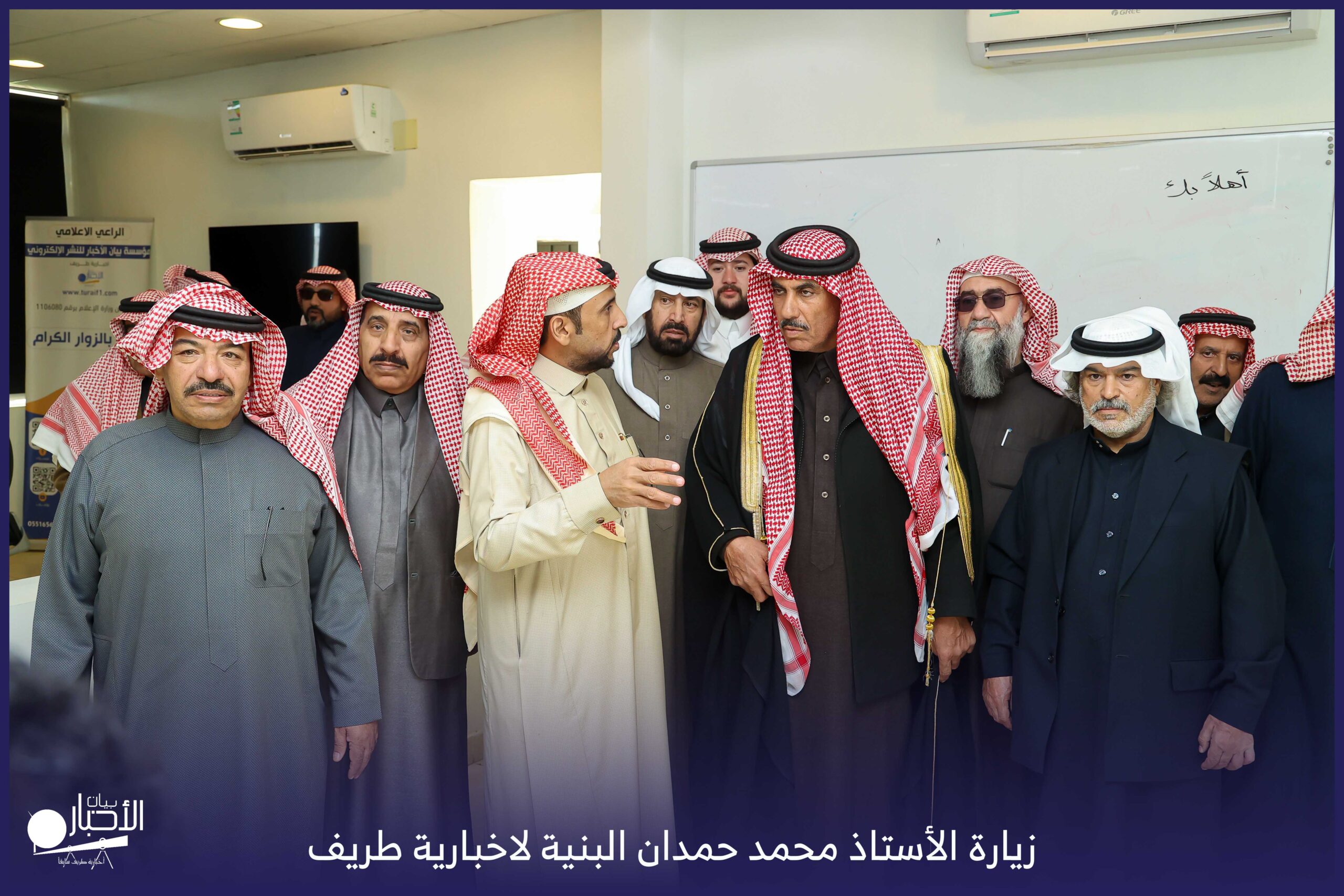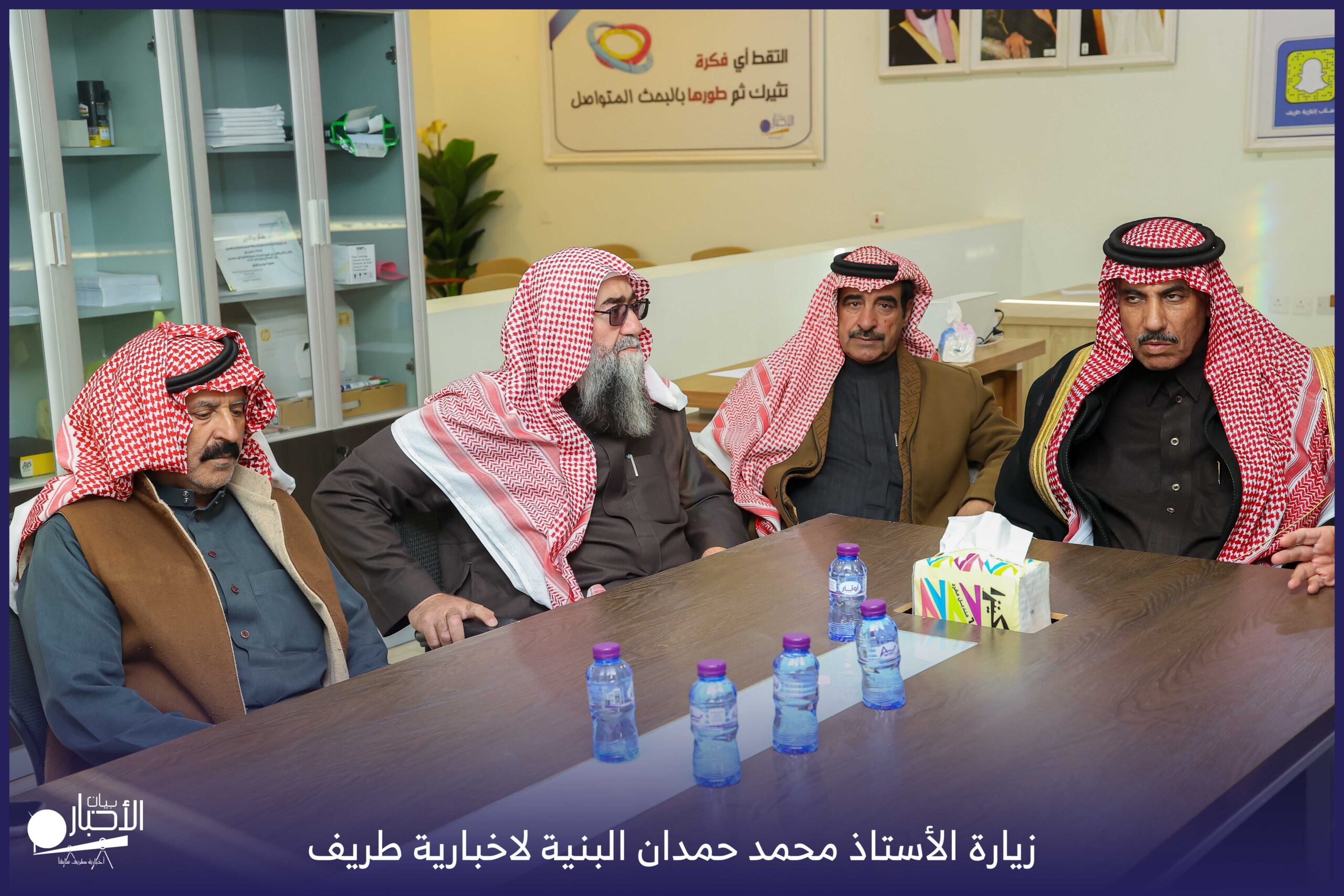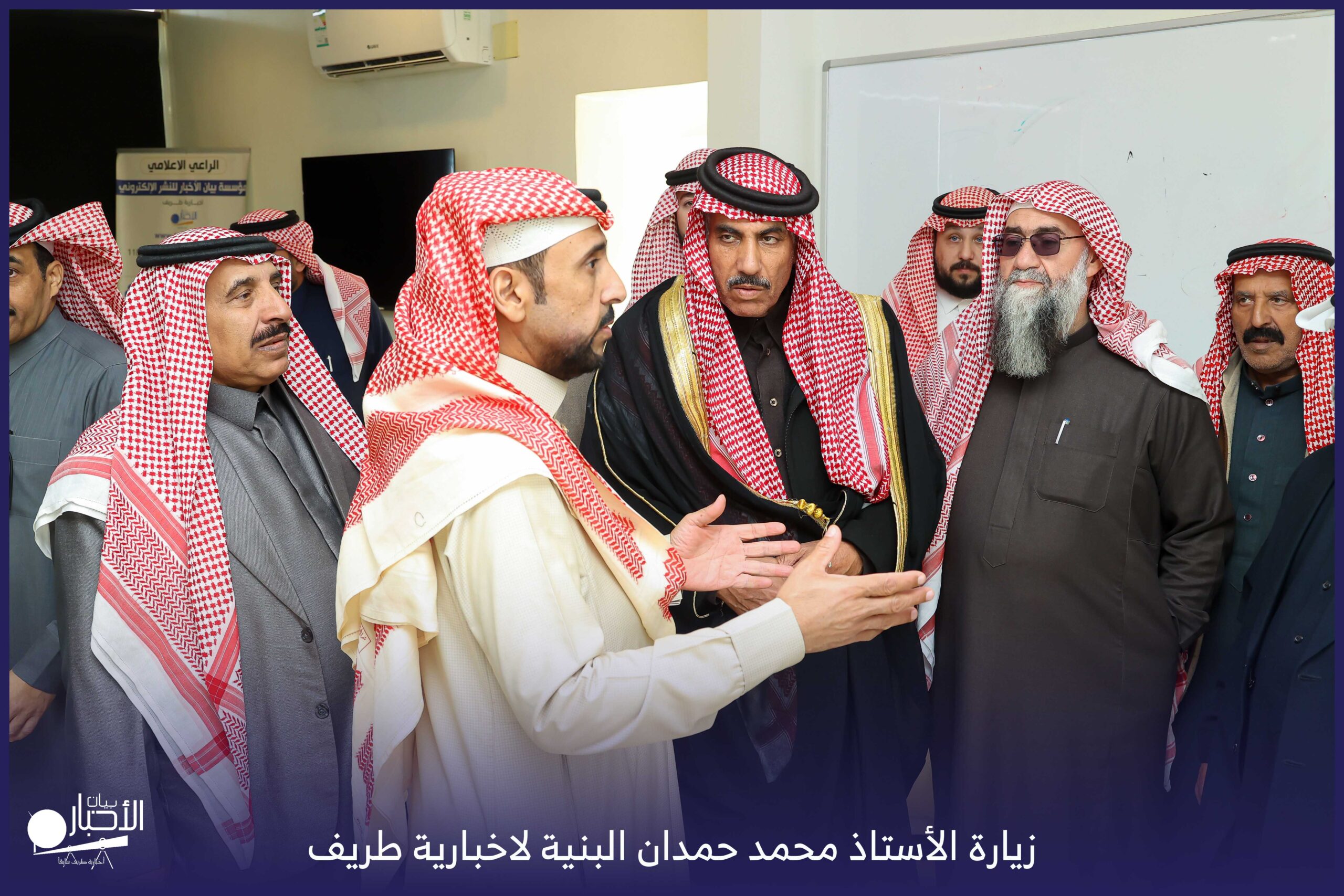 وفي ختام الزيارة تقدم الأستاذ محمد حمدان البنية بالشكر الجزيل لصحيفة بيان الأخبار (إخبارية طريف سابقا ) على دورها البارز في نشر كل ما يخدم أهل المحافظة، متمنيا لها مزيد من التقدم والنجاح.