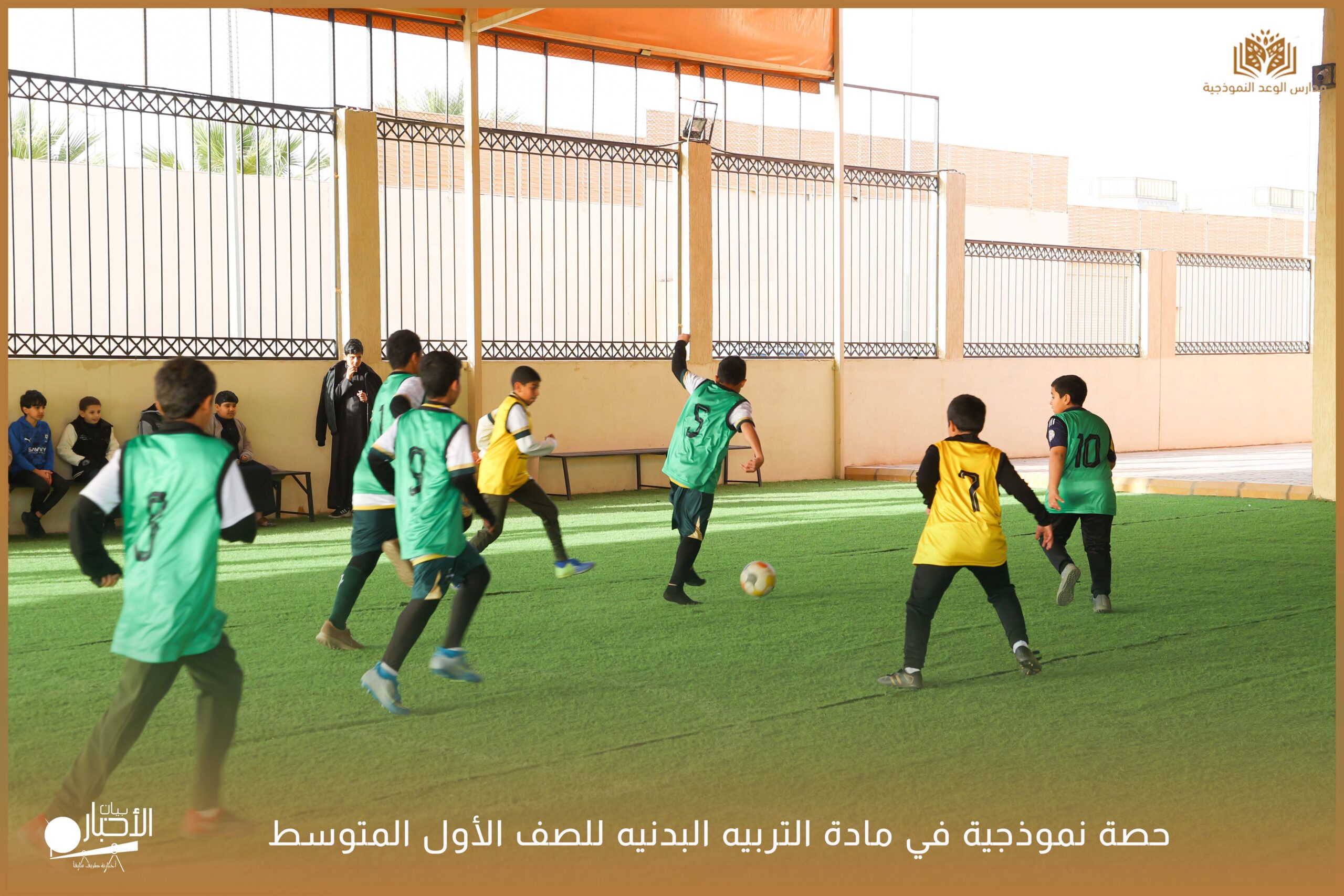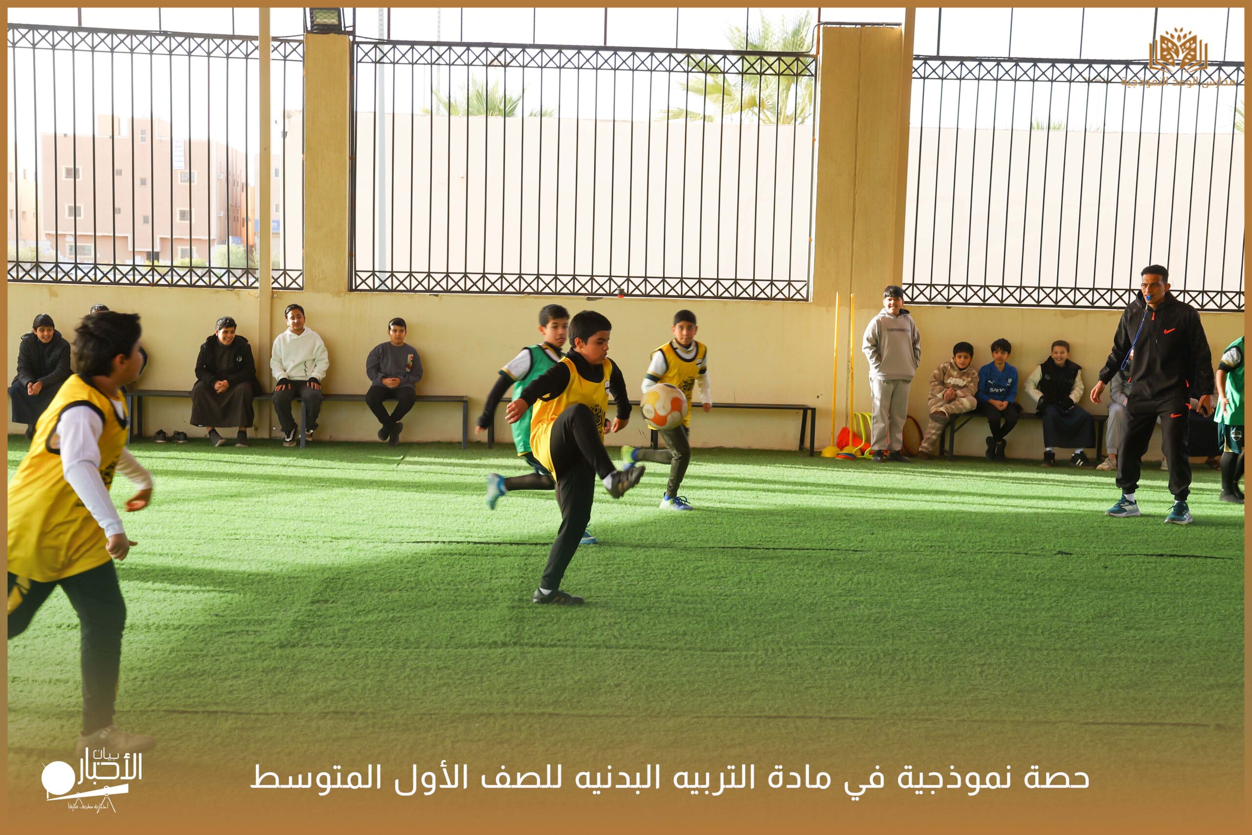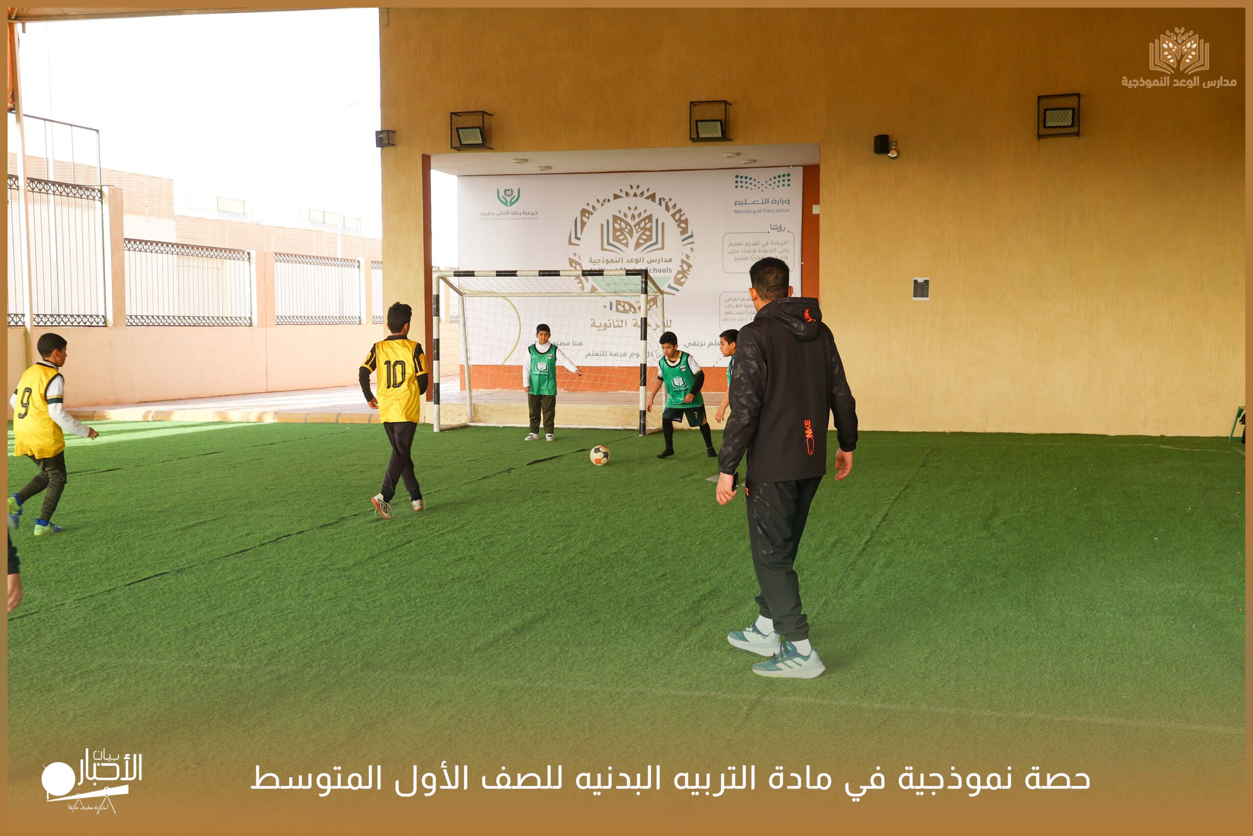 وشهدت الحصة حضور مدير المدرسة الأستاذ عبدالرحمن حمود الرويلي، والمشرف المقيم الأستاذ محمد سعد جمعة، وقد قام بإعداد وتنفيذ الحصة الأستاذ محمد صبحي، في أجواء تعليمية محفزة تعكس حرص المدرسة على تطبيق أساليب التعلم النشط والارتقاء بالمستوى البدني للطلاب.