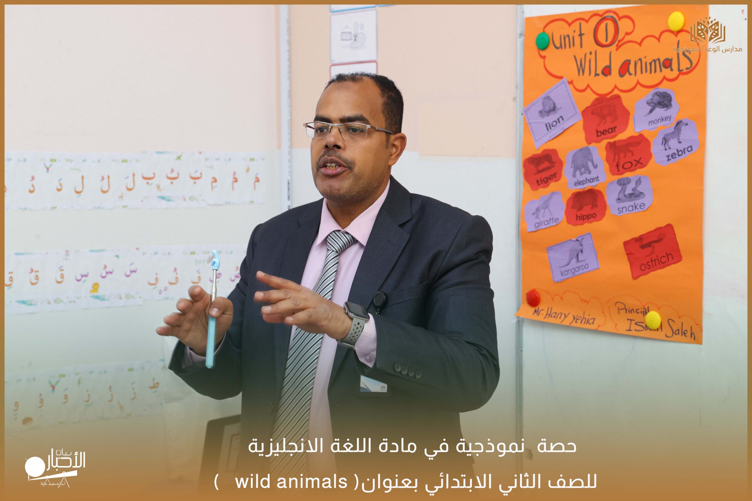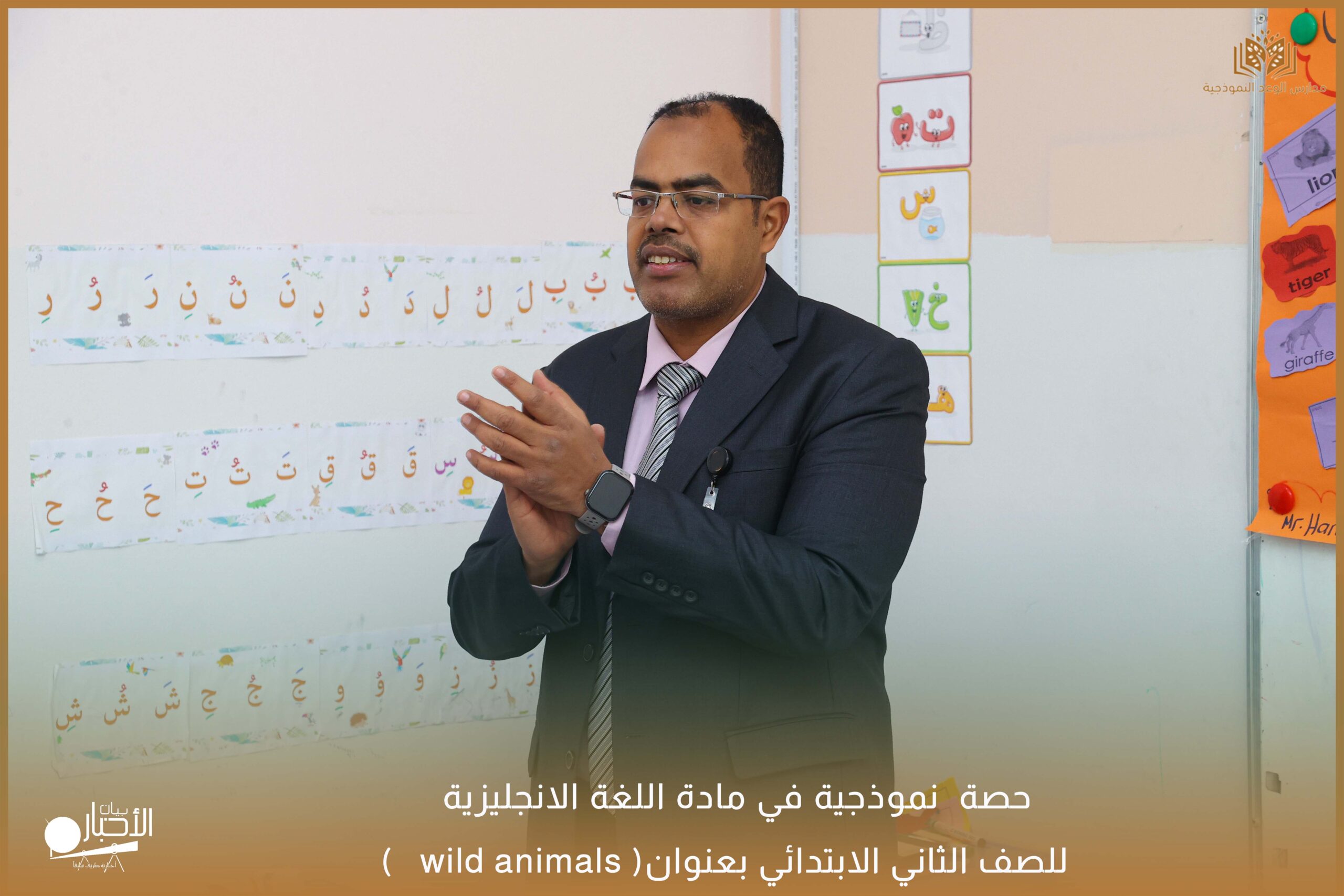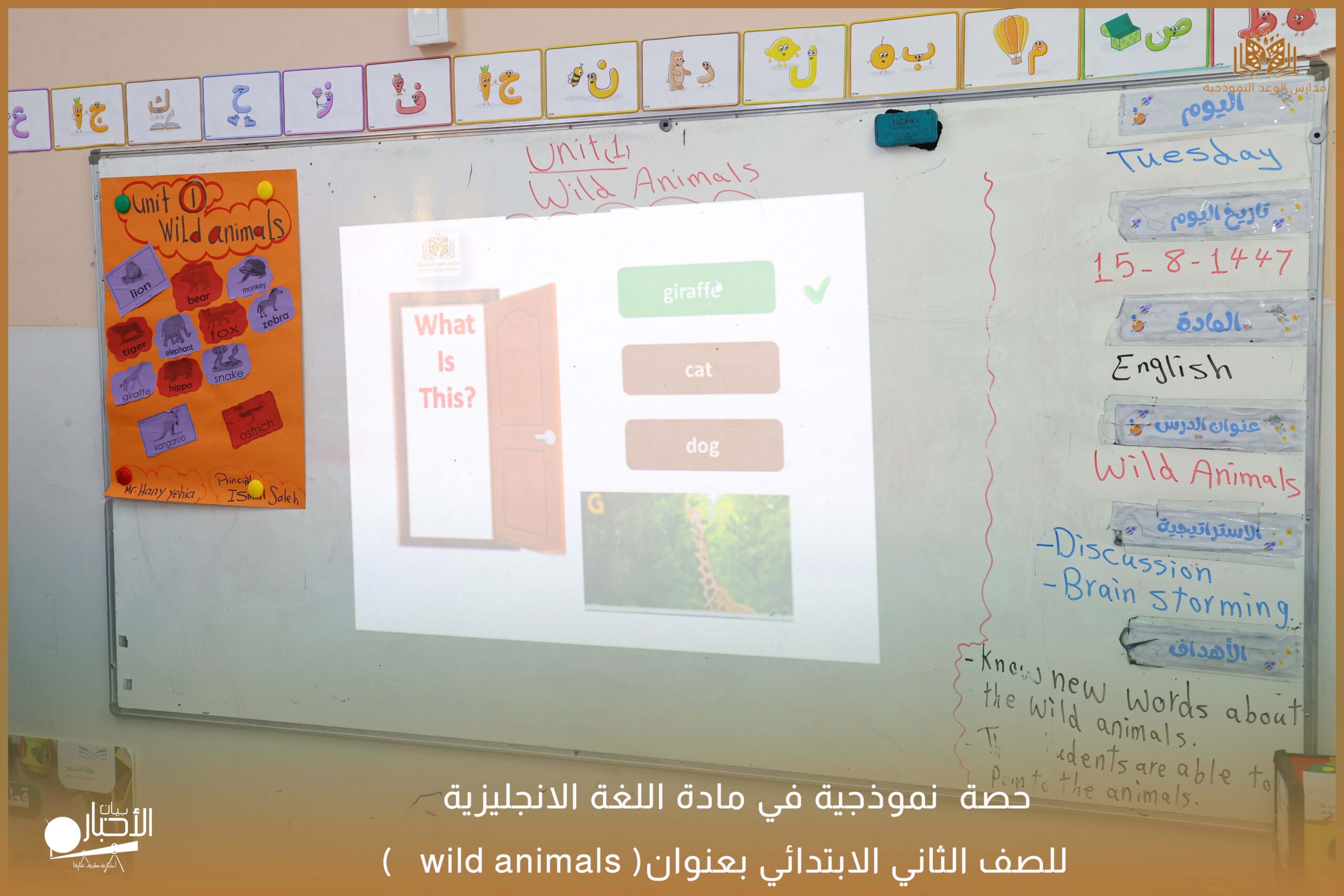 نفذت مدارس الوعد النموذجية يوم الثلاثاء١٥/ ٨ /١٤٤٧ حصة نموذجية في مادة اللغة الانجليزية للصف الثاني الابتدائي بعنوان ( wild animals )