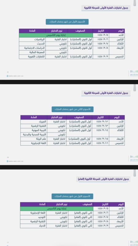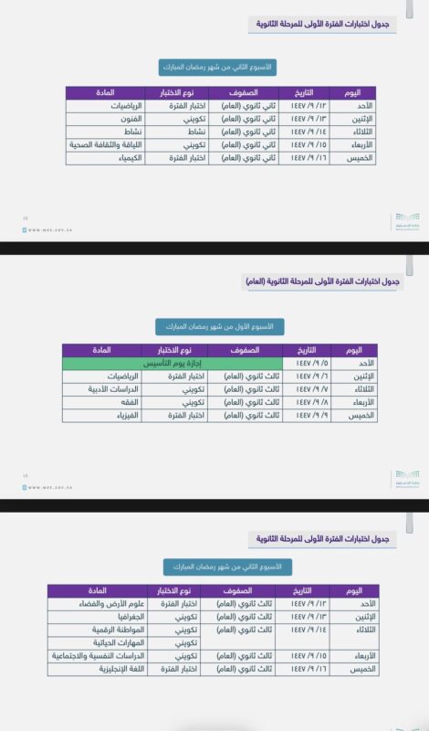 أعلنت وزارة التعليم عن اعتماد جدول موحد لاختبارات الفترة الأولى لجميع المراحل الدراسية، وذلك لأول مرة، على أن تُطبق خلال شهر رمضان، في خطوة تهدف إلى توحيد المواعيد وتنظيم سير الاختبارات بما يتناسب مع خصوصية الشهر الفضيل.