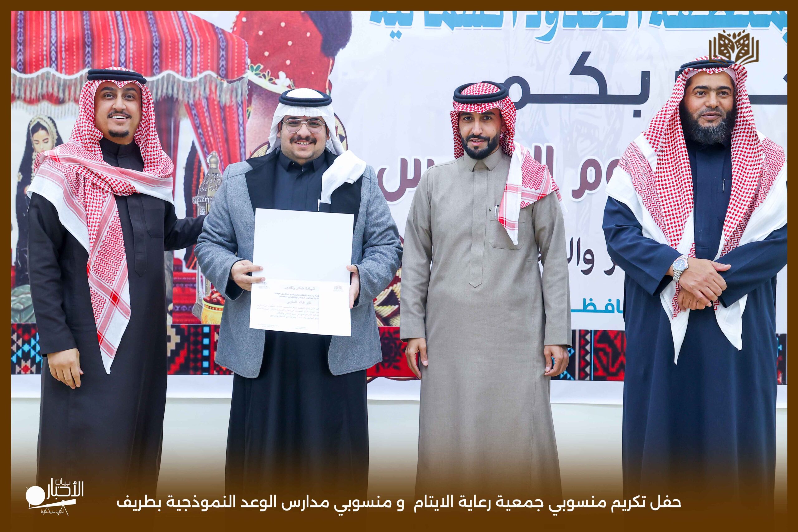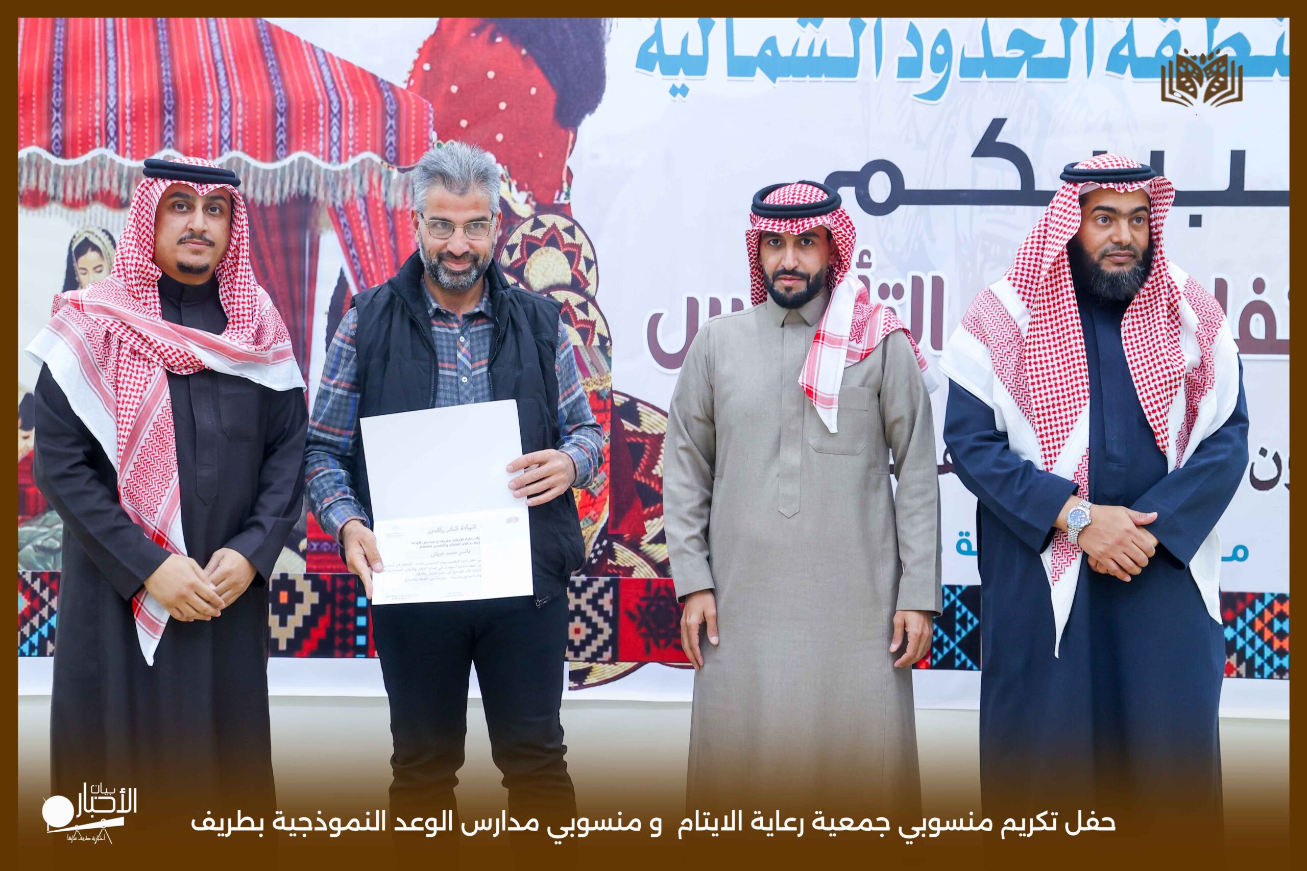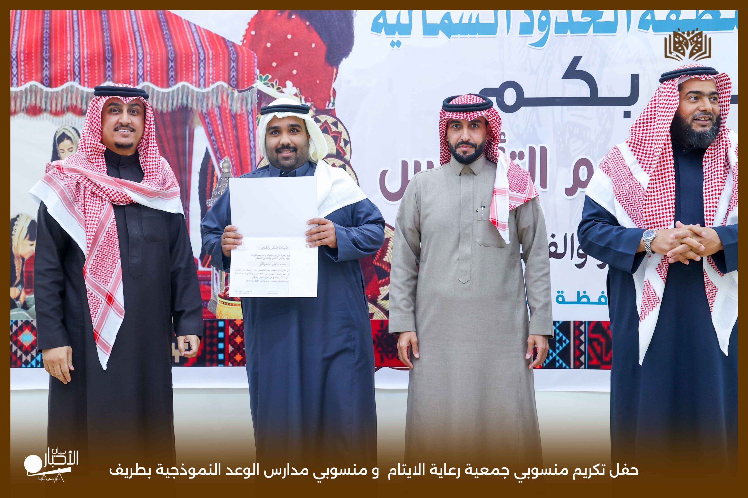 حفل تكريمي مميز نظمته جمعية رعاية الأيتام بمحافظة طريف، وذلك على مسرح مدارس الوعد النموذجية، بحضور عدد من أعضاء مجلس الإدارة ومنسوبي الجمعية، في أجواء سادها التقدير والاعتزاز بالجهود المبذولة.