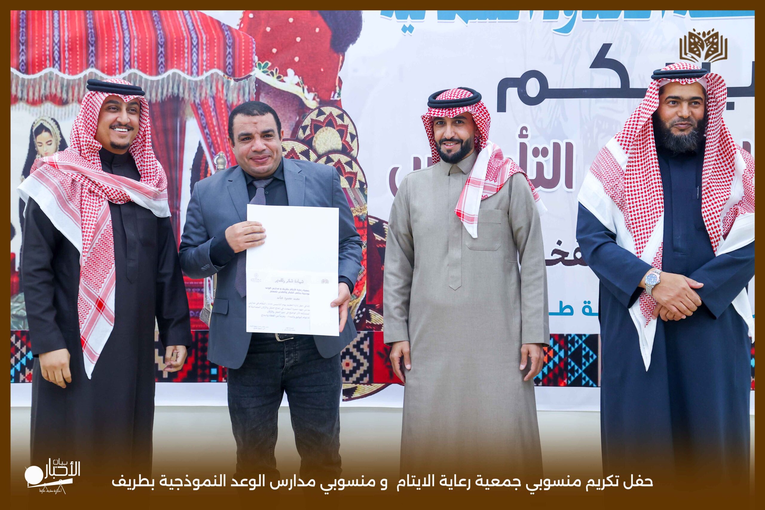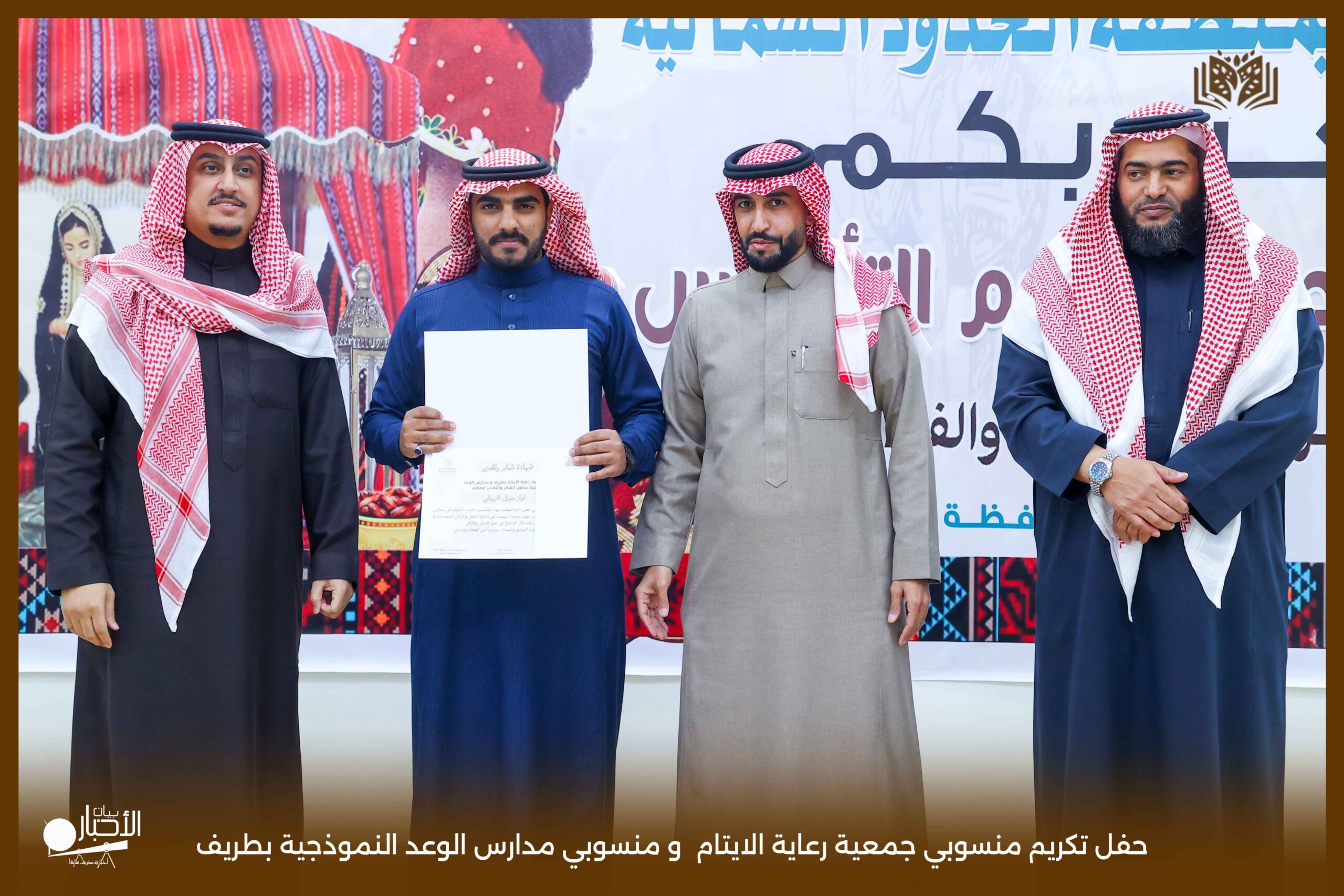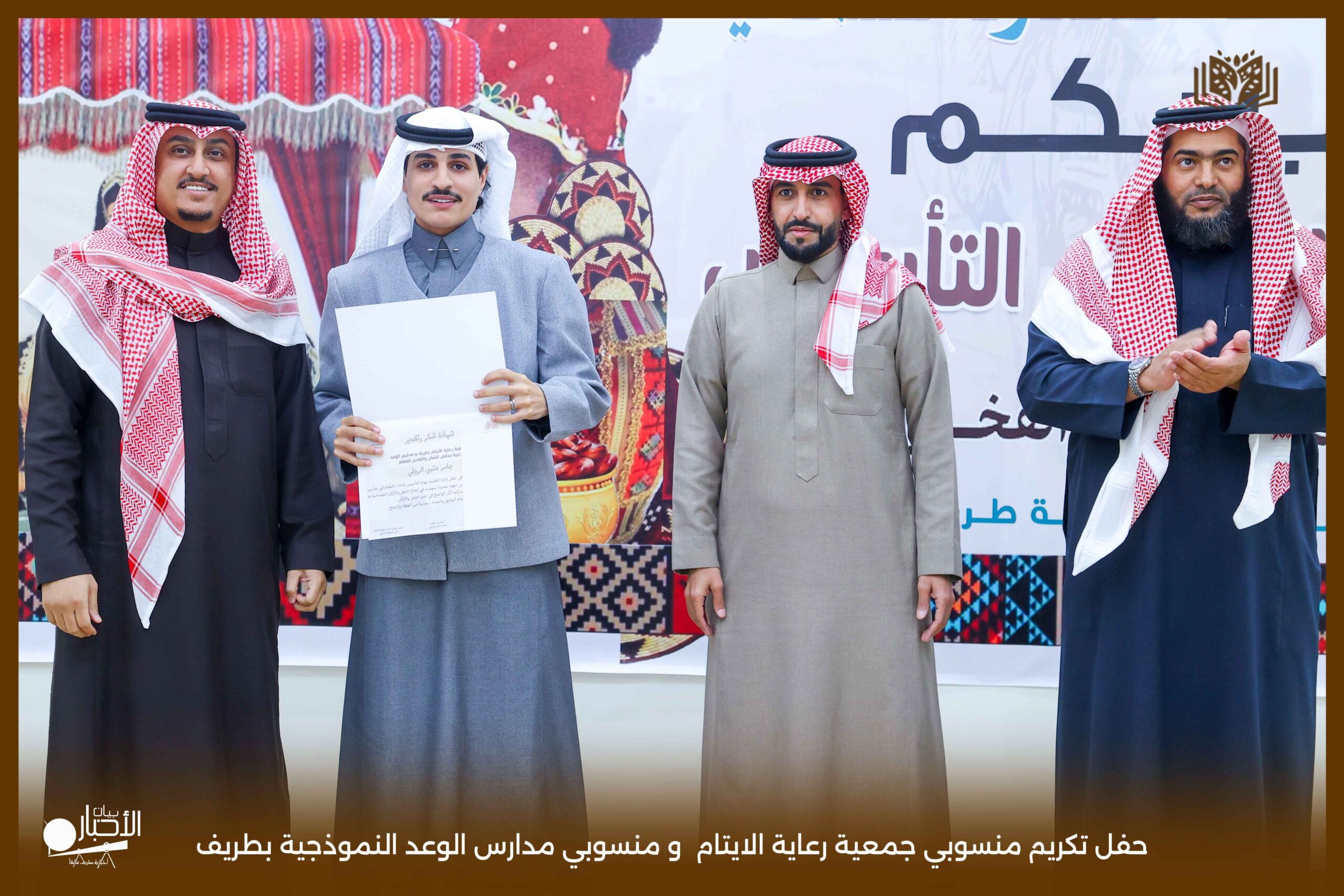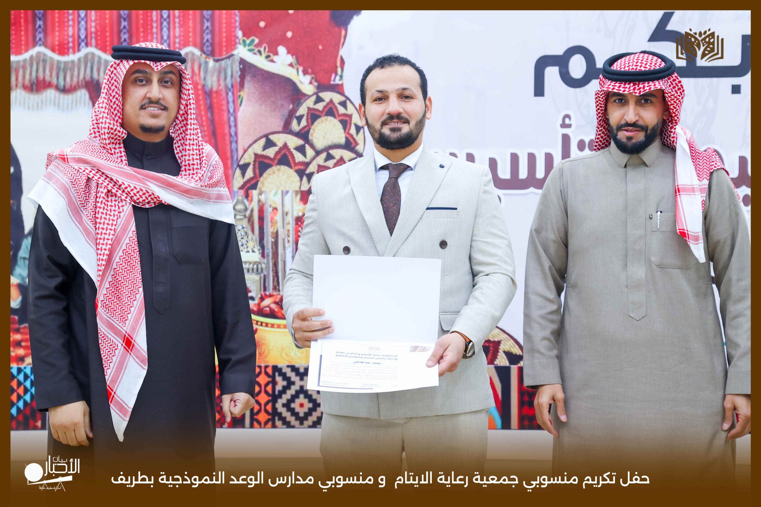 حفل تكريمي مميز نظمته جمعية رعاية الأيتام بمحافظة طريف، وذلك على مسرح مدارس الوعد النموذجية، بحضور عدد من أعضاء مجلس الإدارة ومنسوبي الجمعية، في أجواء سادها التقدير والاعتزاز بالجهود المبذولة.