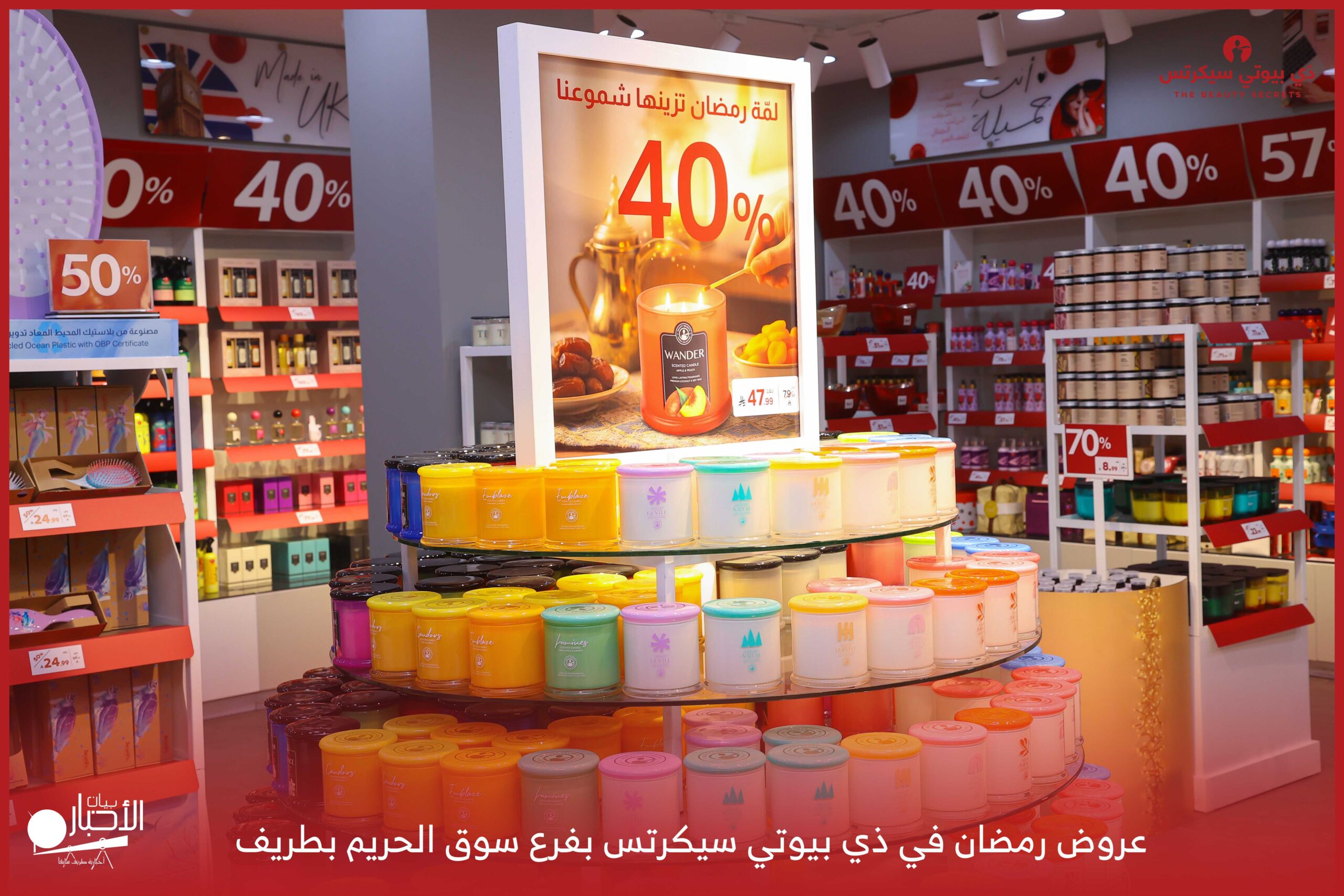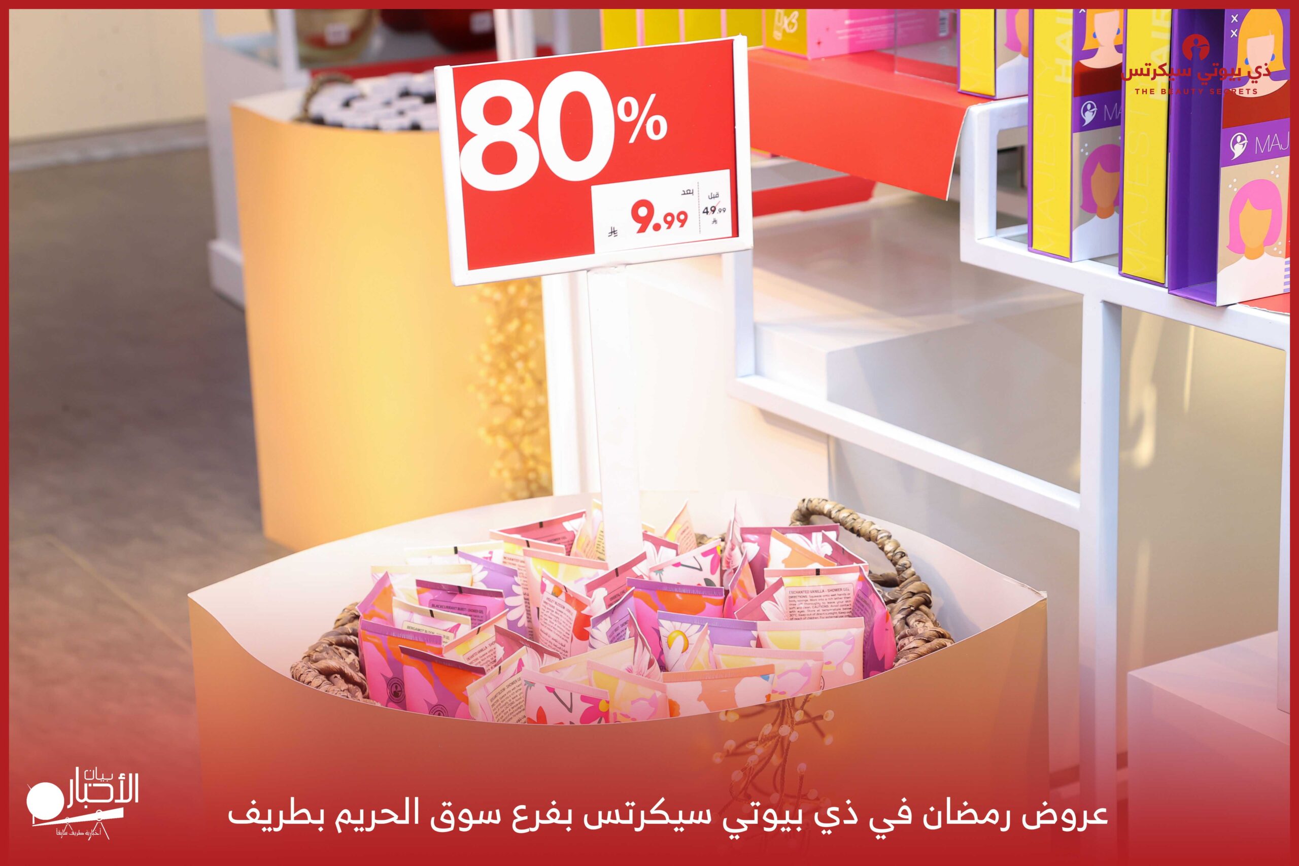 أعلن معرض ذي بيوتي سيكرتس بمحافظة طريف عن إطلاق حملة تخفيضات كبرى بمناسبة شهر رمضان المبارك لعام 1447هـ، تشمل خصومات حقيقية تتراوح بين 40% و80% على تشكيلة واسعة من المنتجات.