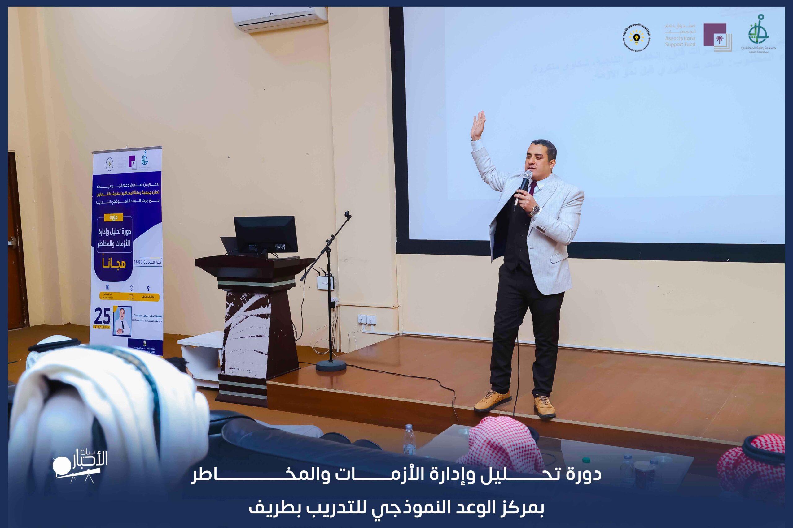 نفذ مركز الوعد النموذجي للتدريب دورة تحليل وإدارة الأزمات والمخاطر وكانت الدورة مجانية لجميع أهالي محافظة طريف ، وذلك بدعم حصري من صندوق دعم الجمعيات بالتعاون مع جمعية رعاية المعاقين بطريف