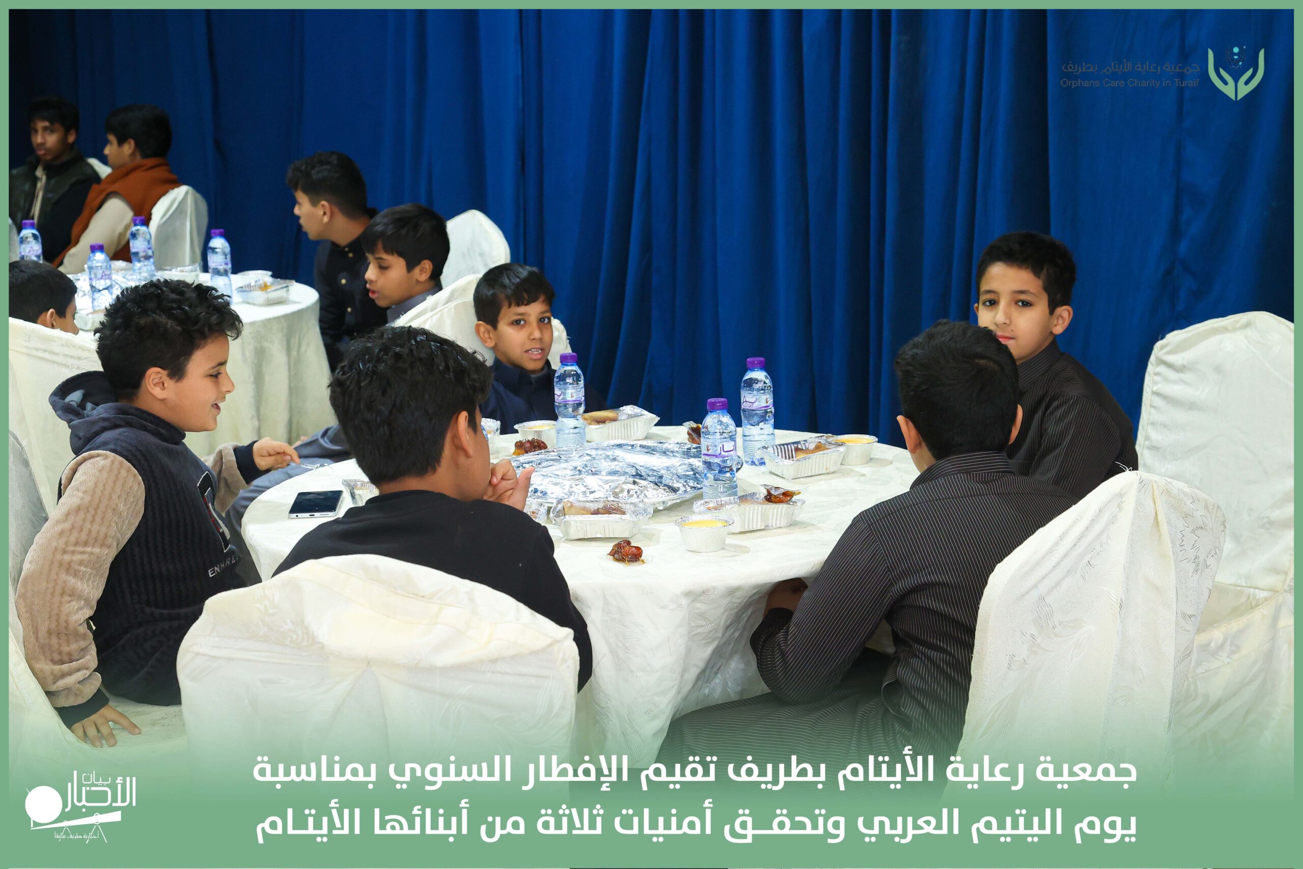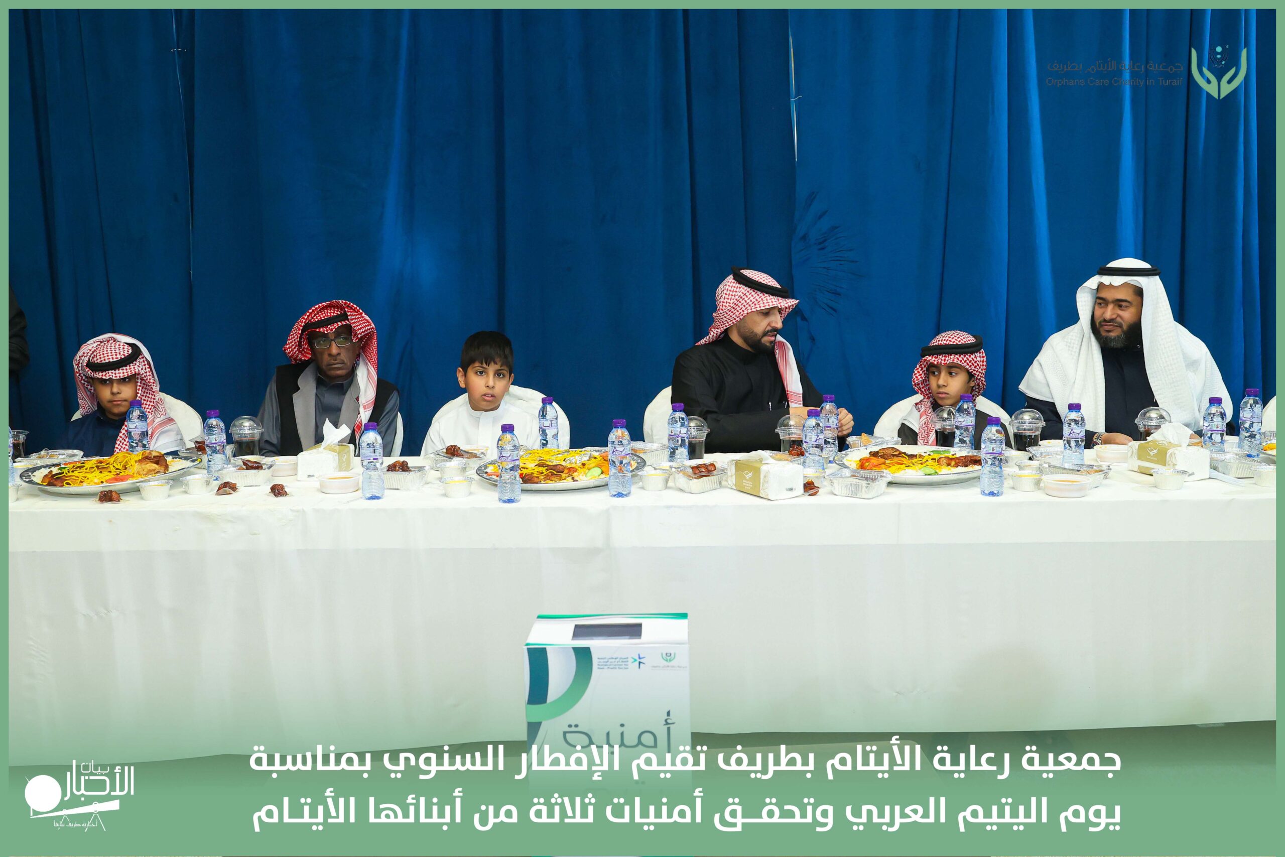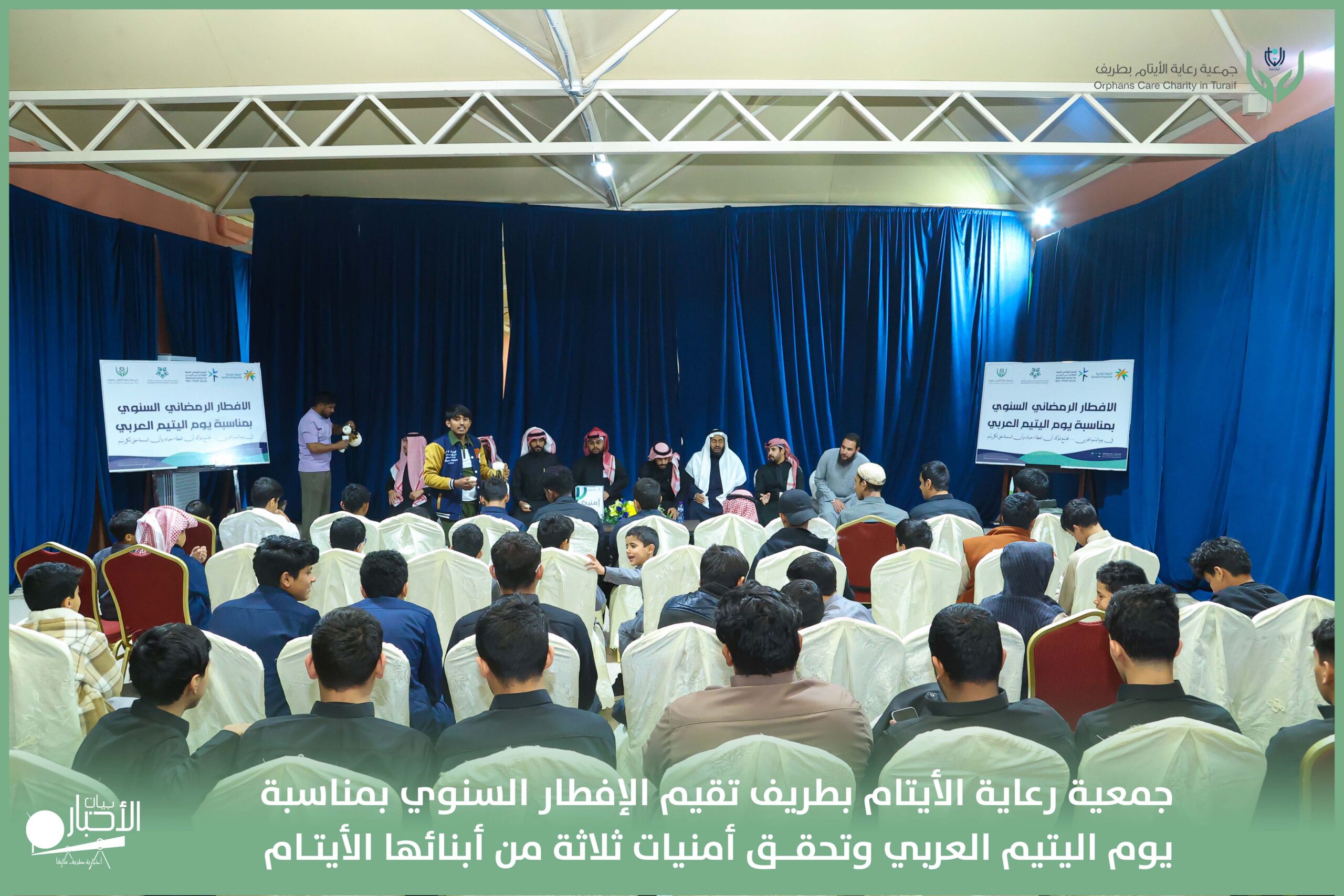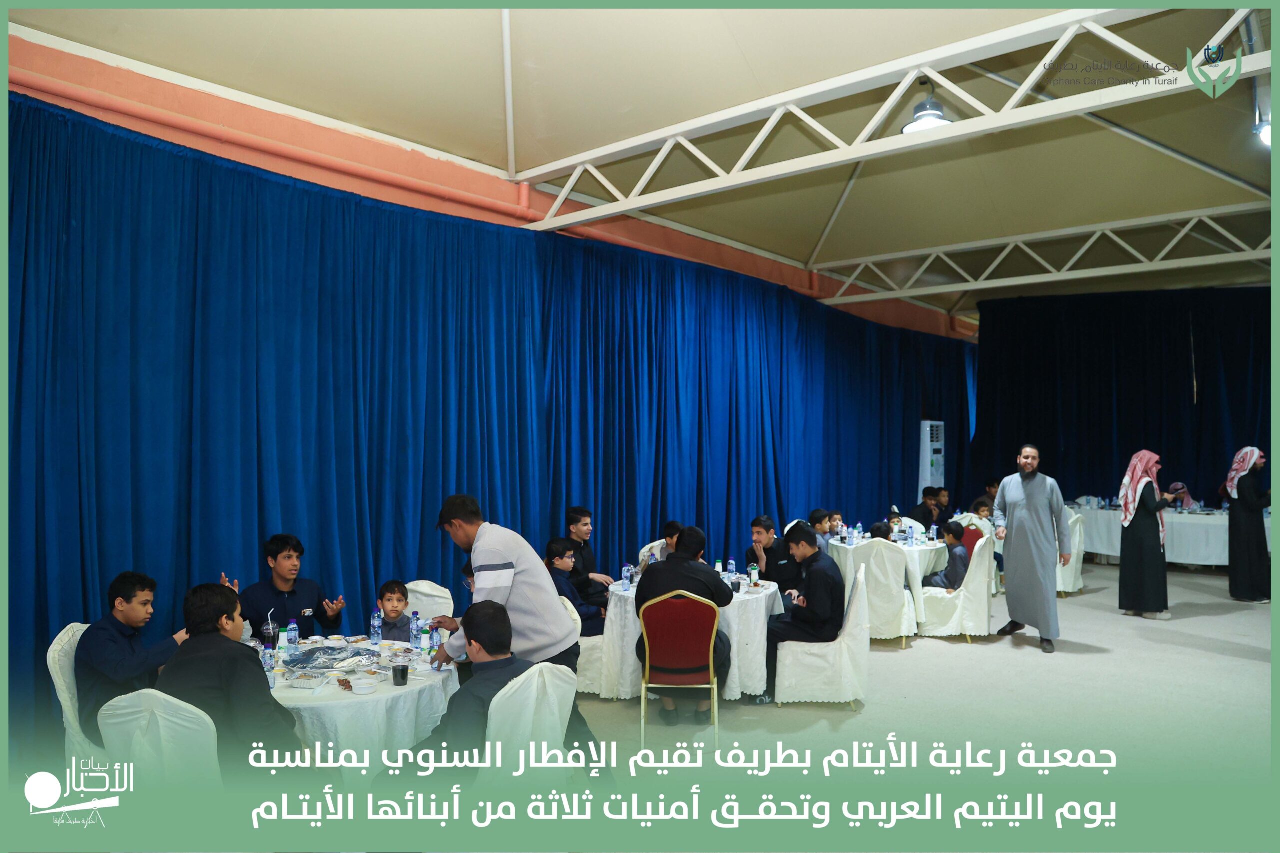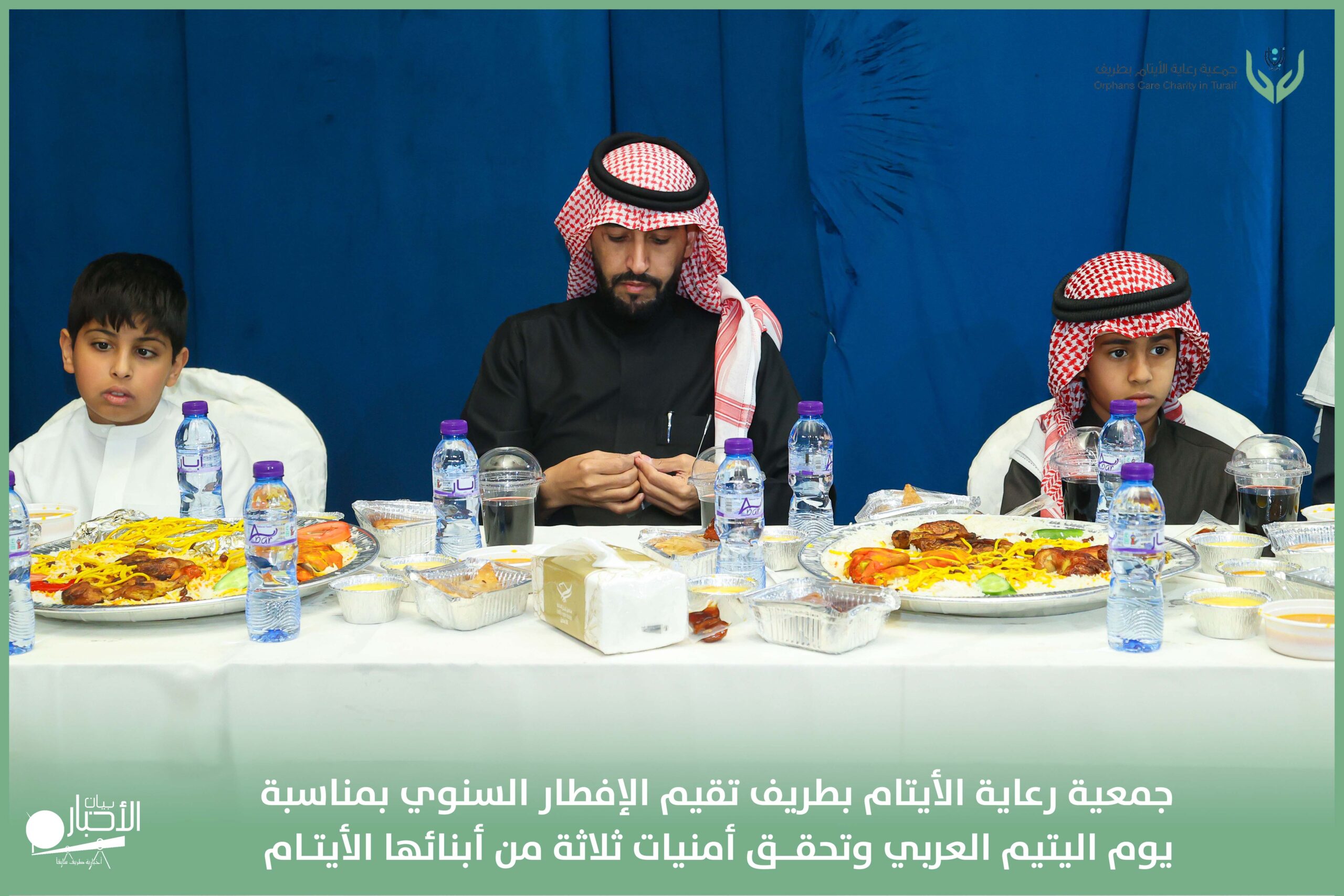 أقامت جمعية رعاية الأيتام بطريف مساء اليوم الجمعة 17 رمضان 1447هـ، حفل الإفطار السنوي بمناسبة يوم اليتيم العربي، وذلك بمقر مدرسة الوعد النموذجية الأهلية المتوسطة والثانوية، بحضور عدد من أعضاء مجلس الإدارة، والإدارة التنفيذية بالجمعية، وعدد من الضيوف والحضور الكرام من ابنائها الايتام