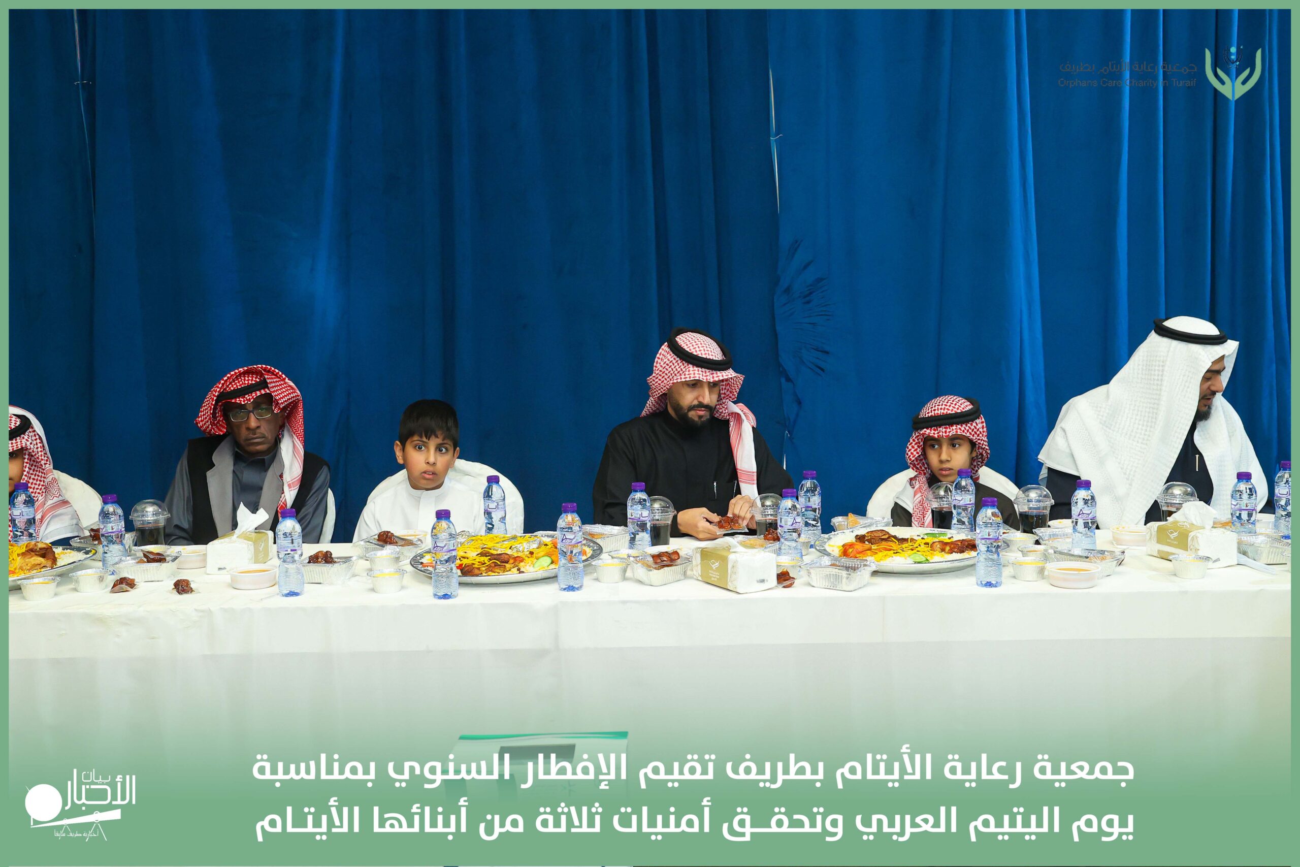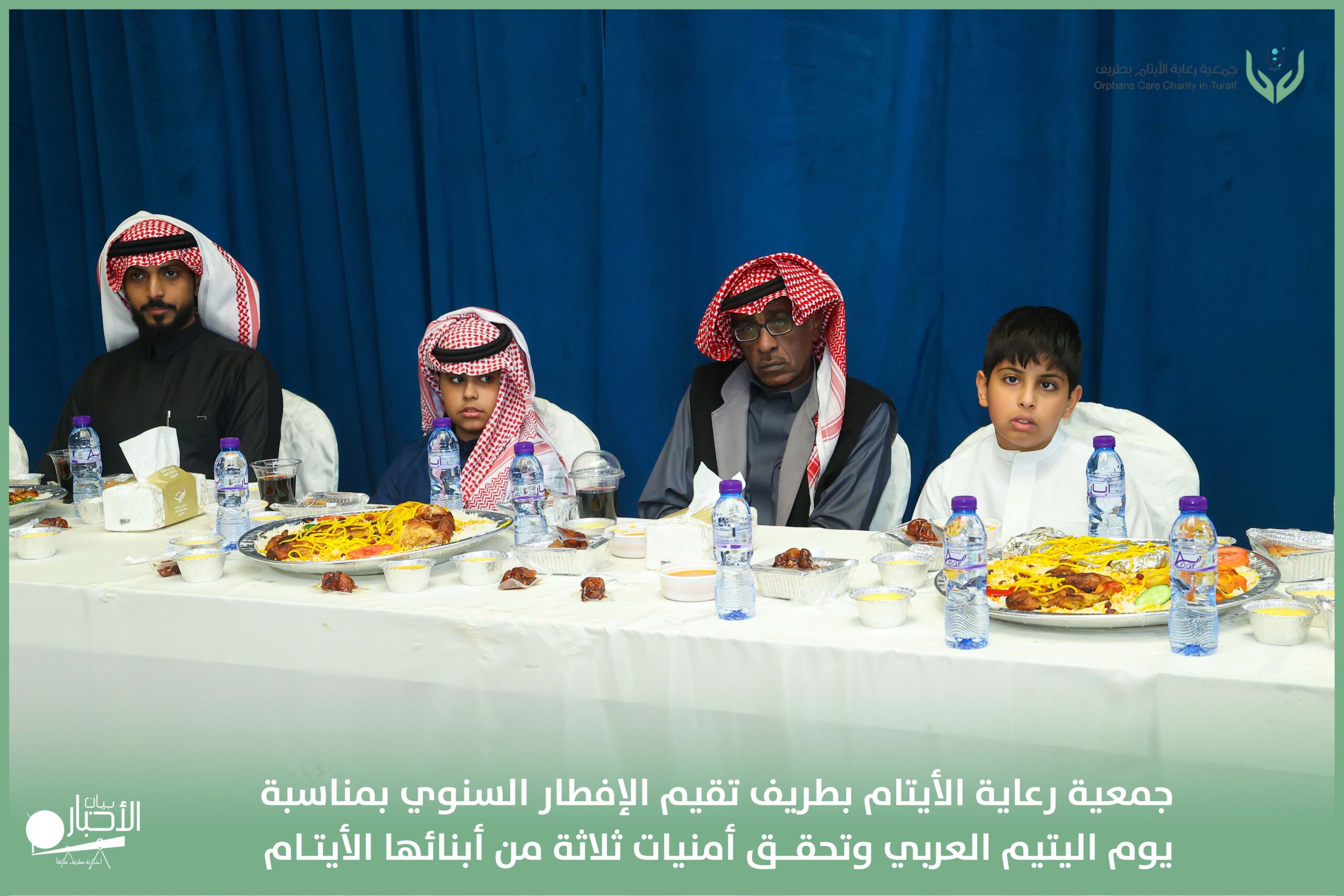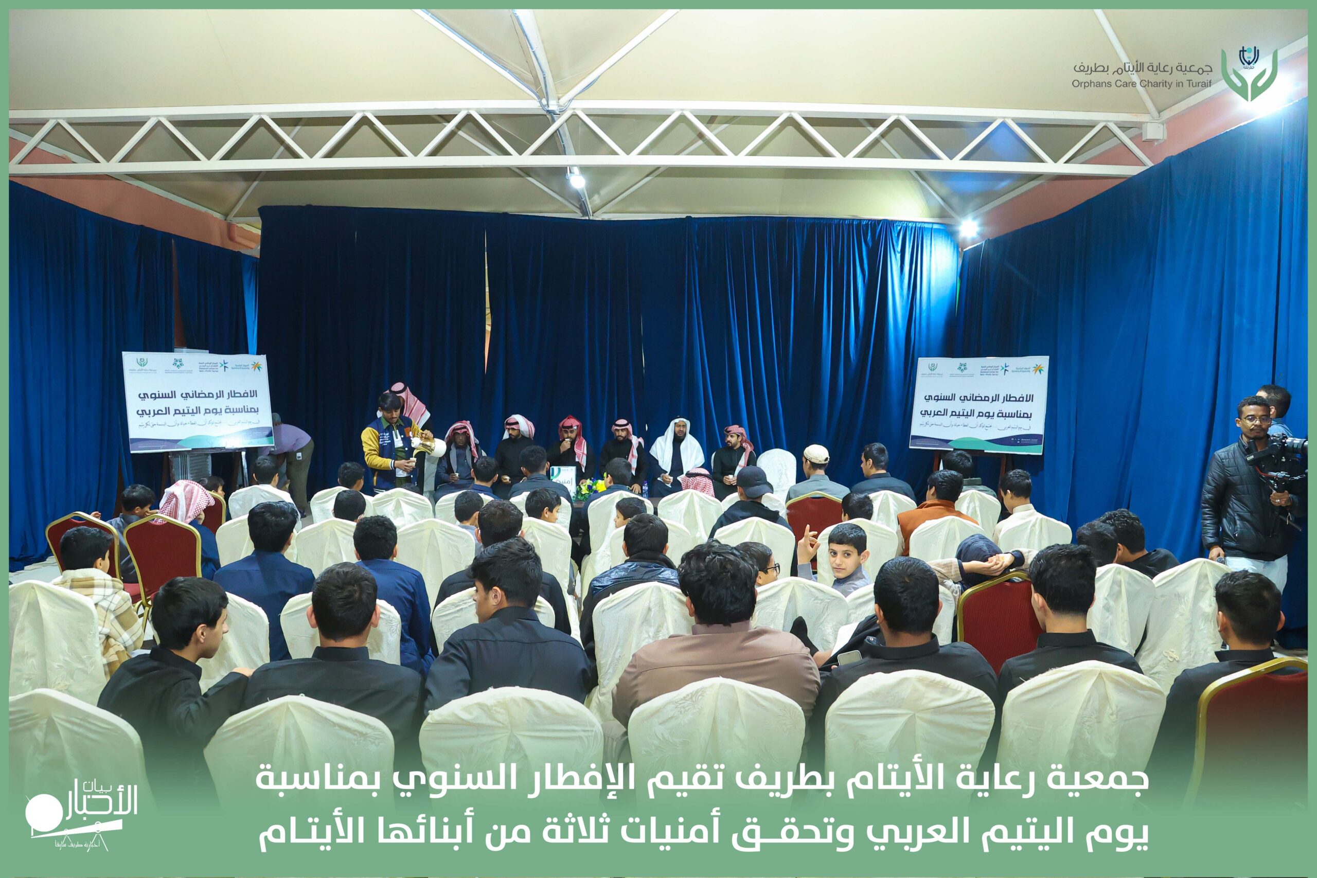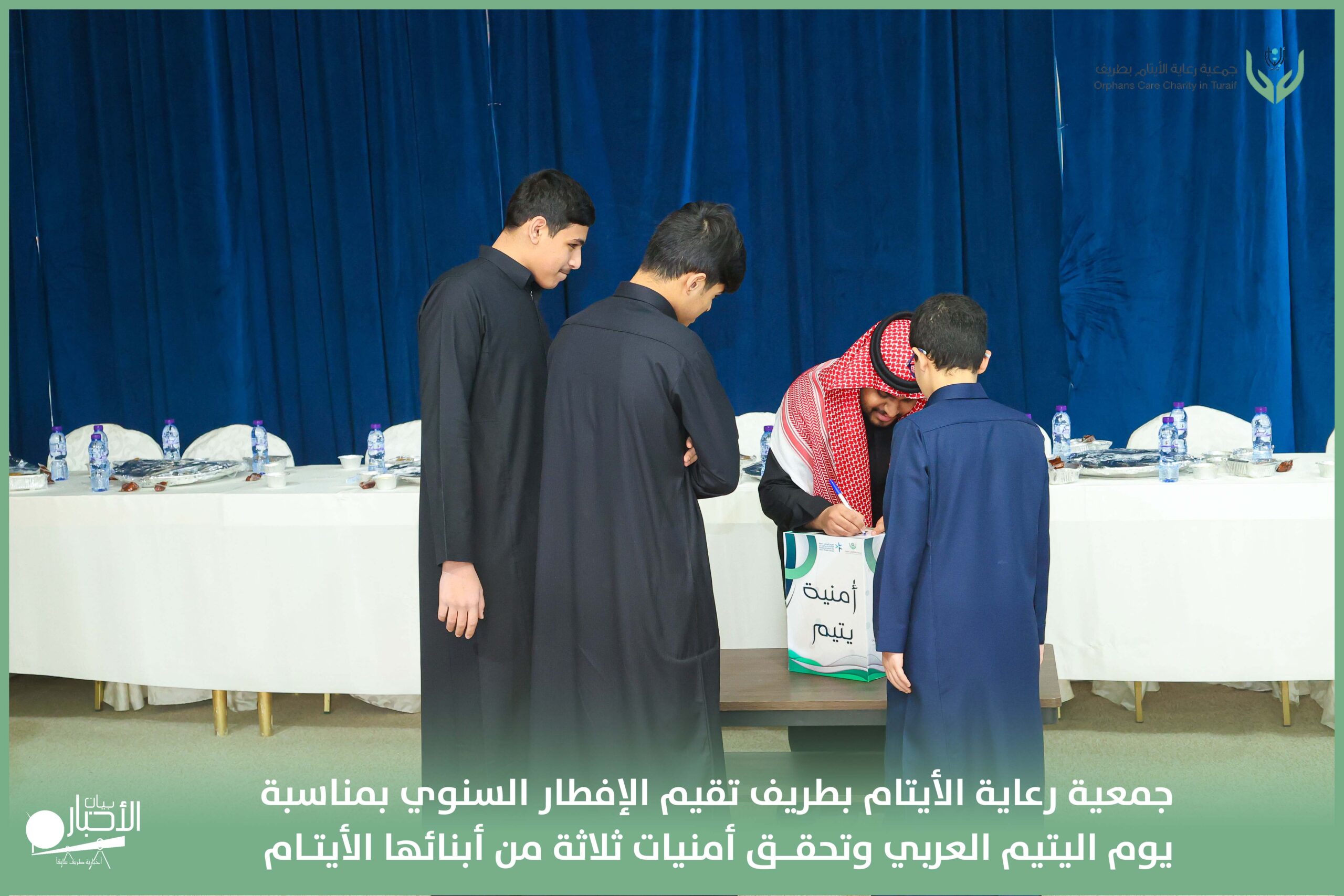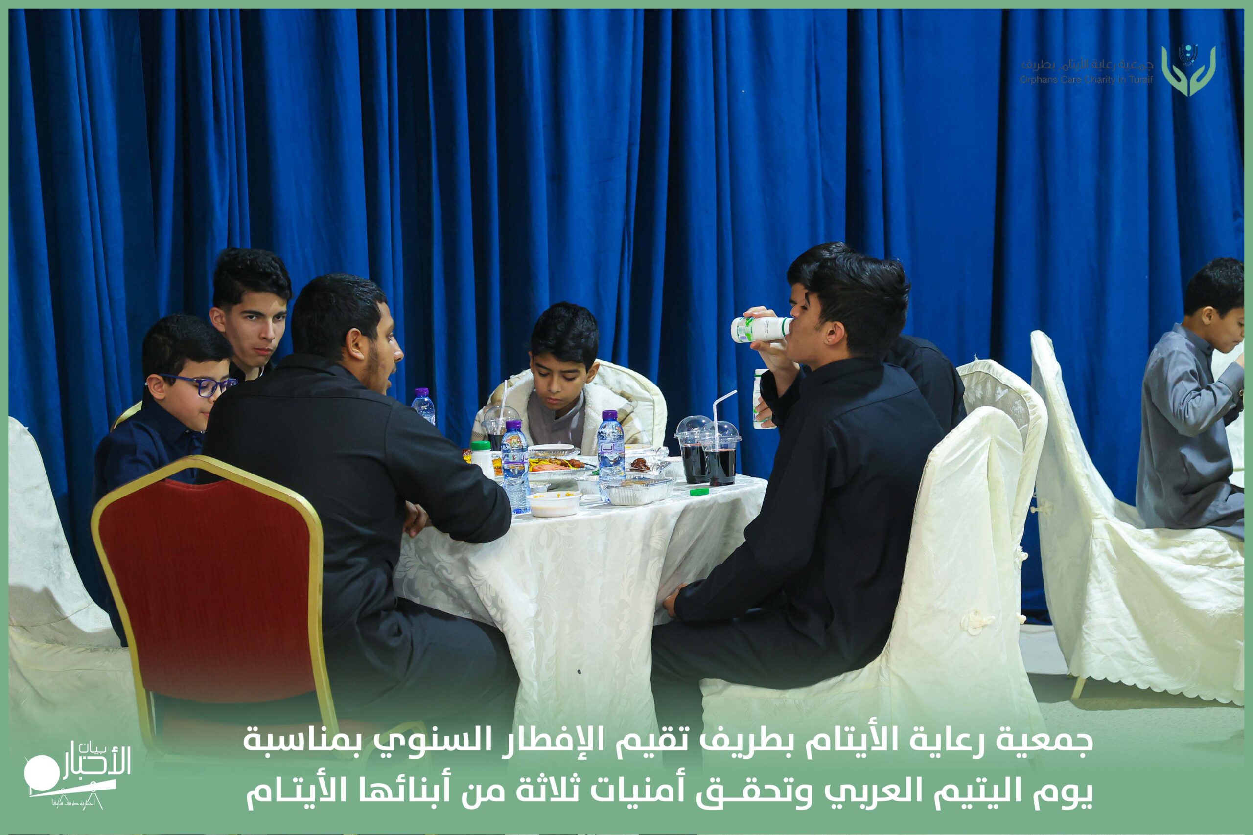 أقامت جمعية رعاية الأيتام بطريف مساء اليوم الجمعة 17 رمضان 1447هـ، حفل الإفطار السنوي بمناسبة يوم اليتيم العربي، وذلك بمقر مدرسة الوعد النموذجية الأهلية المتوسطة والثانوية، بحضور عدد من أعضاء مجلس الإدارة، والإدارة التنفيذية بالجمعية، وعدد من الضيوف والحضور الكرام من ابنائها الايتام
