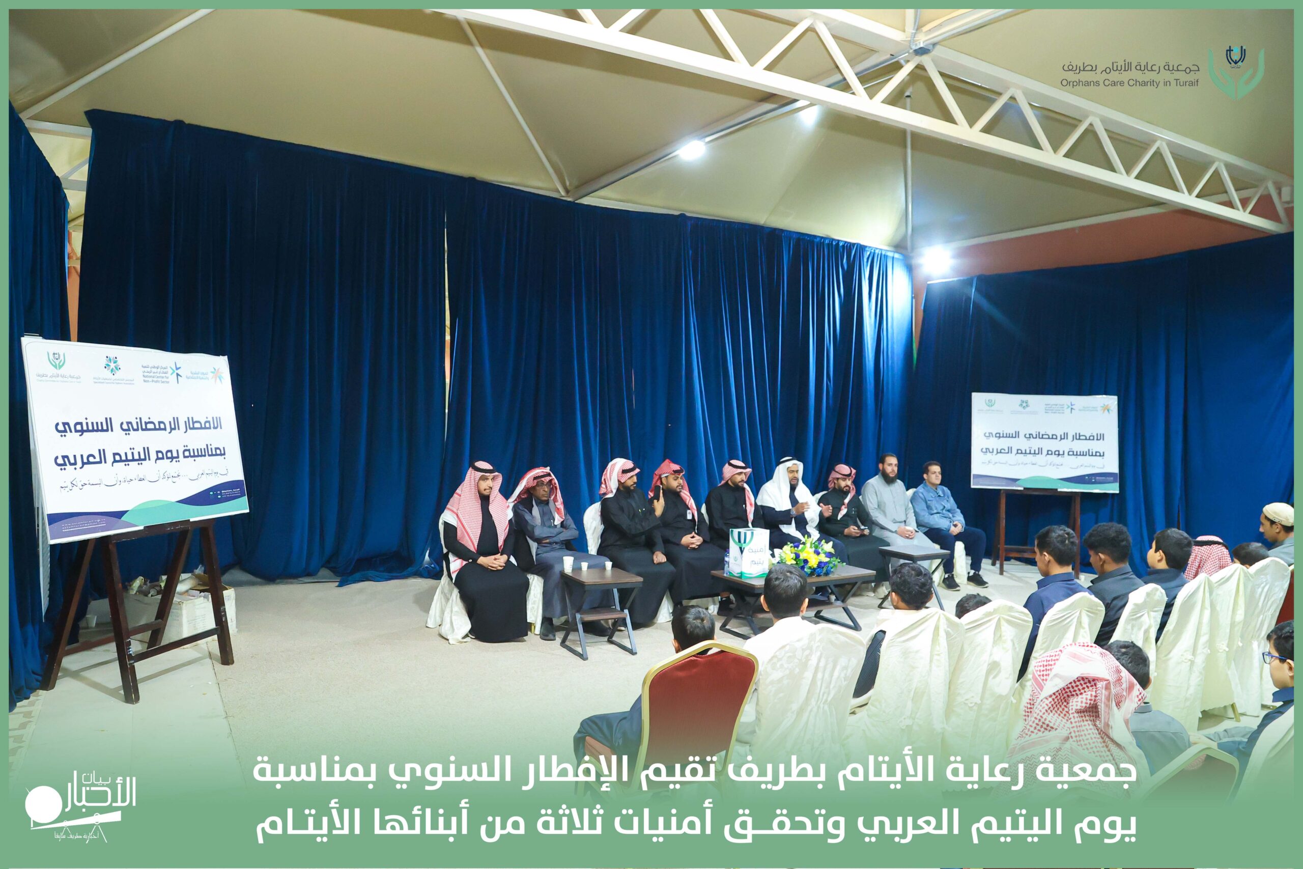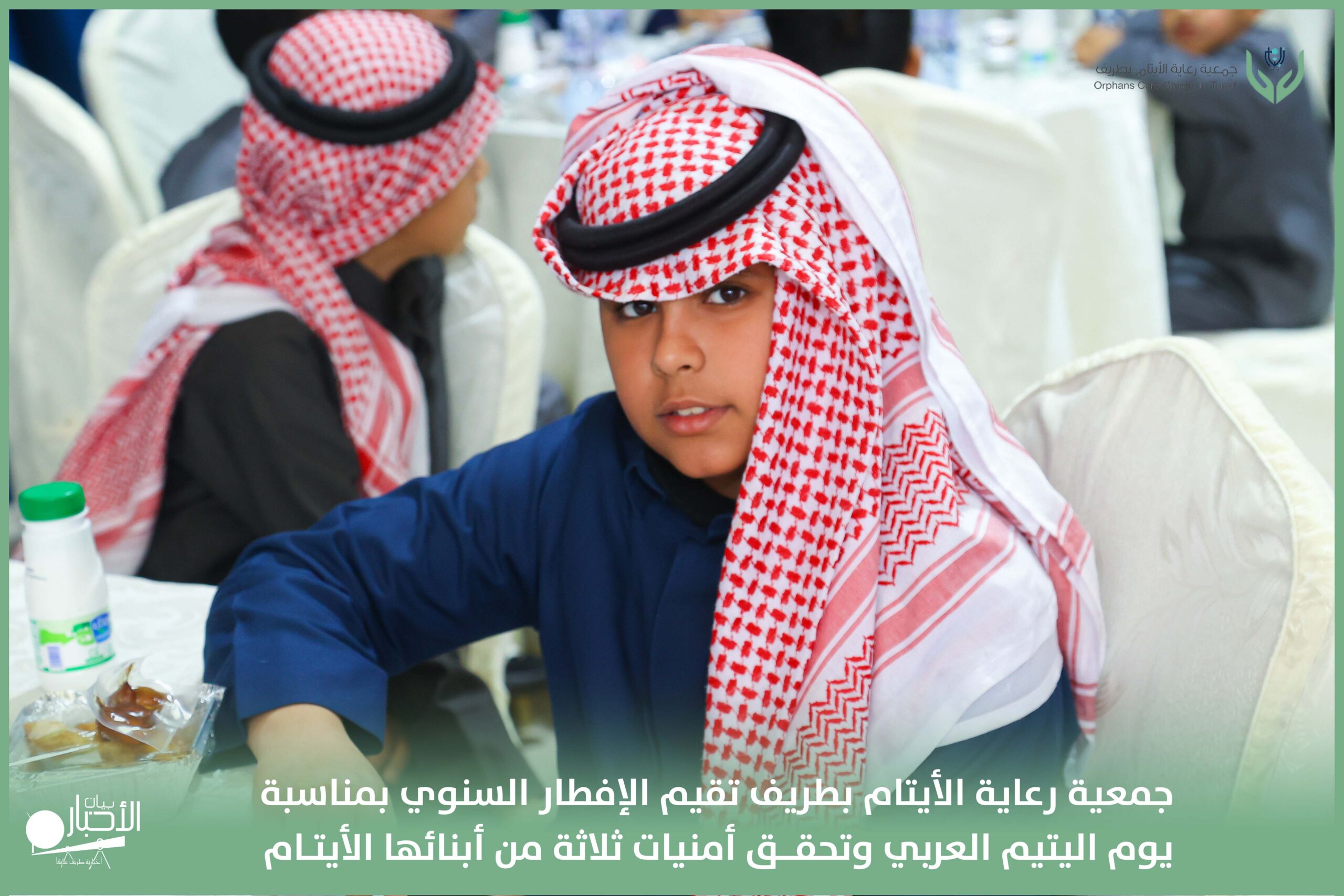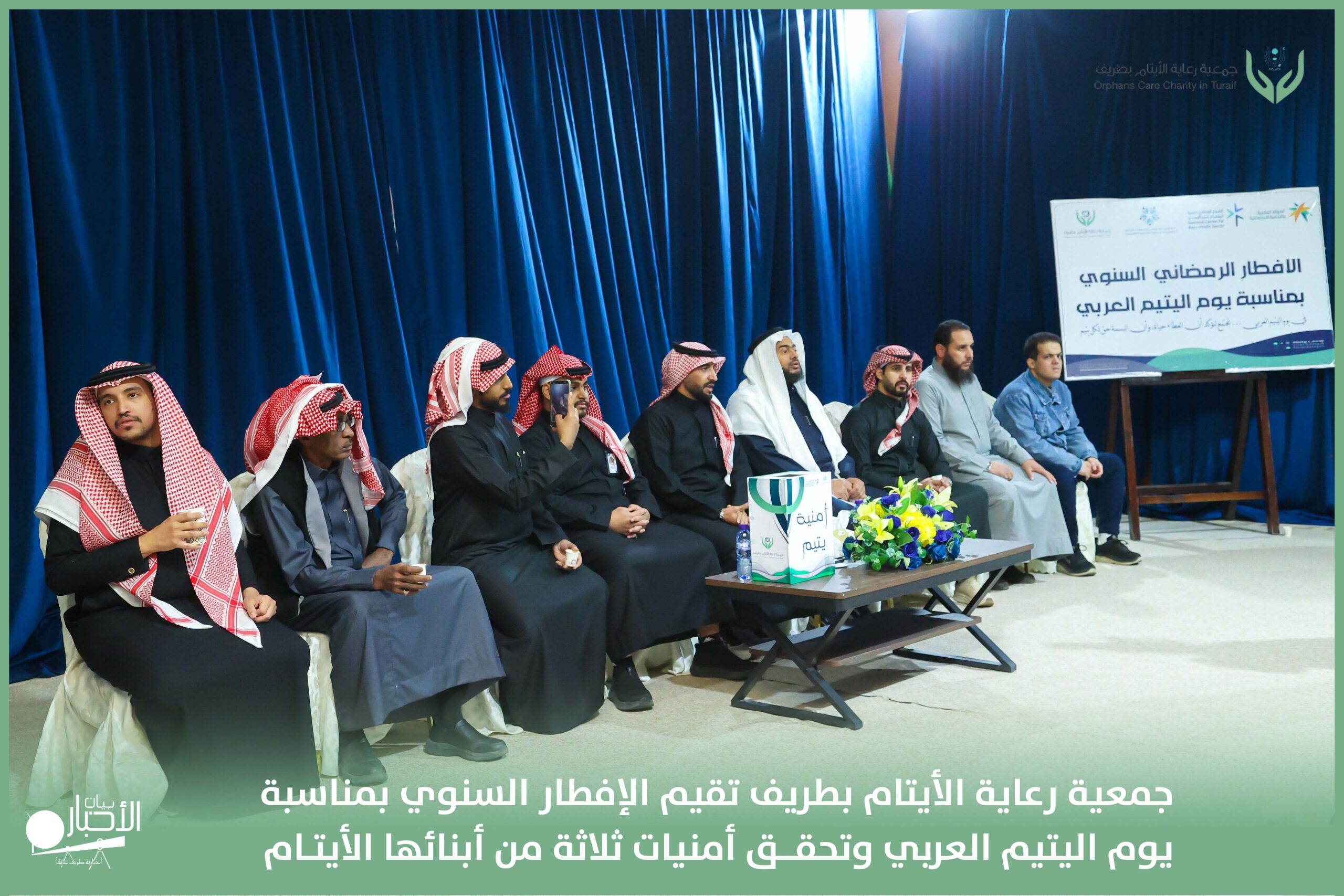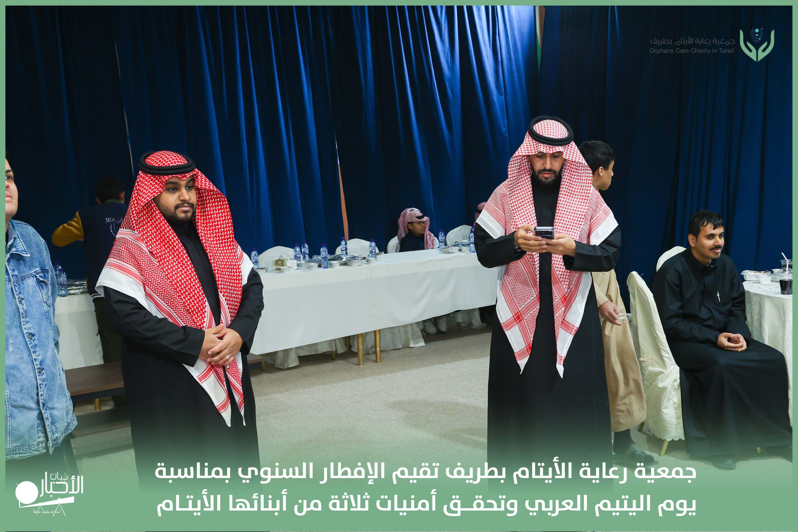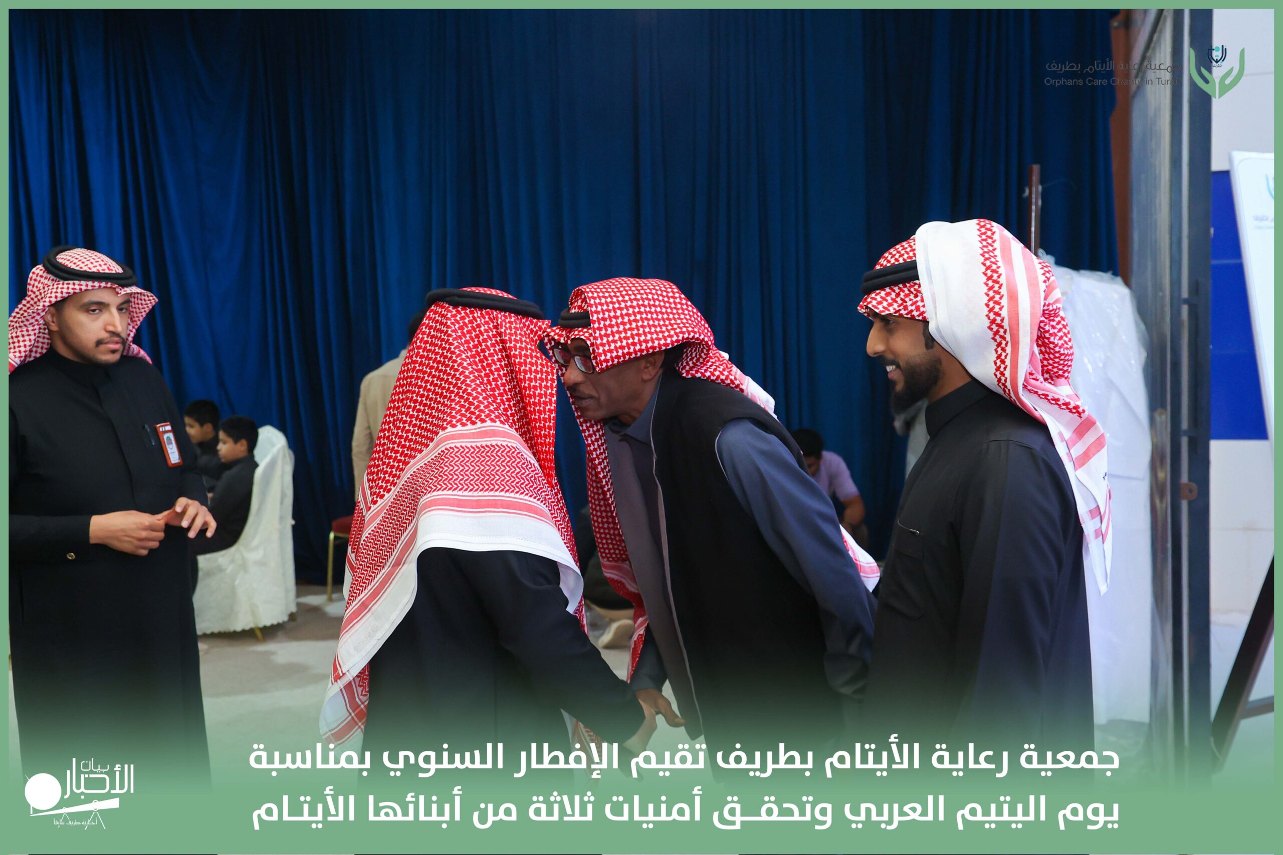 أقامت جمعية رعاية الأيتام بطريف مساء اليوم الجمعة 17 رمضان 1447هـ، حفل الإفطار السنوي بمناسبة يوم اليتيم العربي، وذلك بمقر مدرسة الوعد النموذجية الأهلية المتوسطة والثانوية، بحضور عدد من أعضاء مجلس الإدارة، والإدارة التنفيذية بالجمعية، وعدد من الضيوف والحضور الكرام من ابنائها الايتام