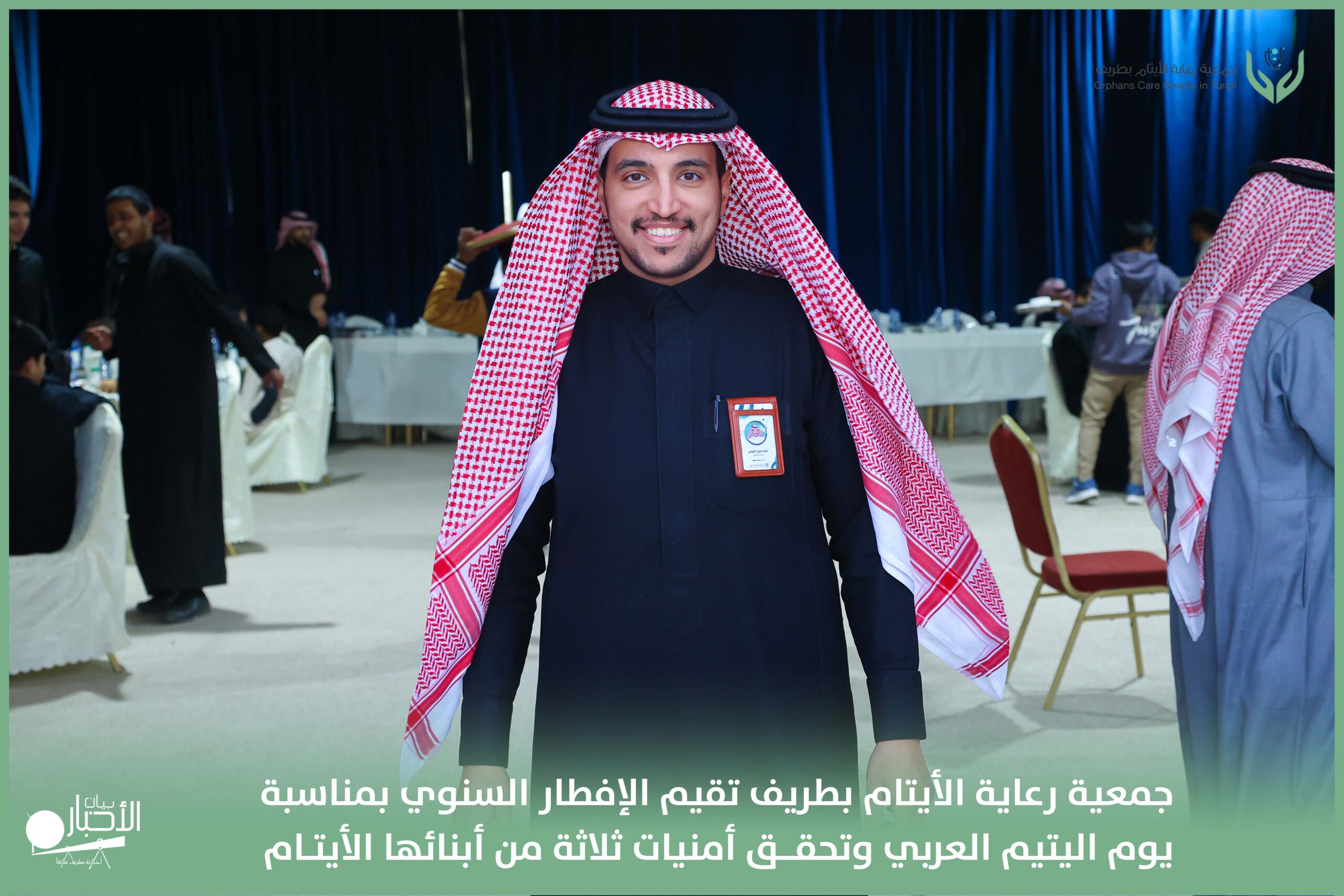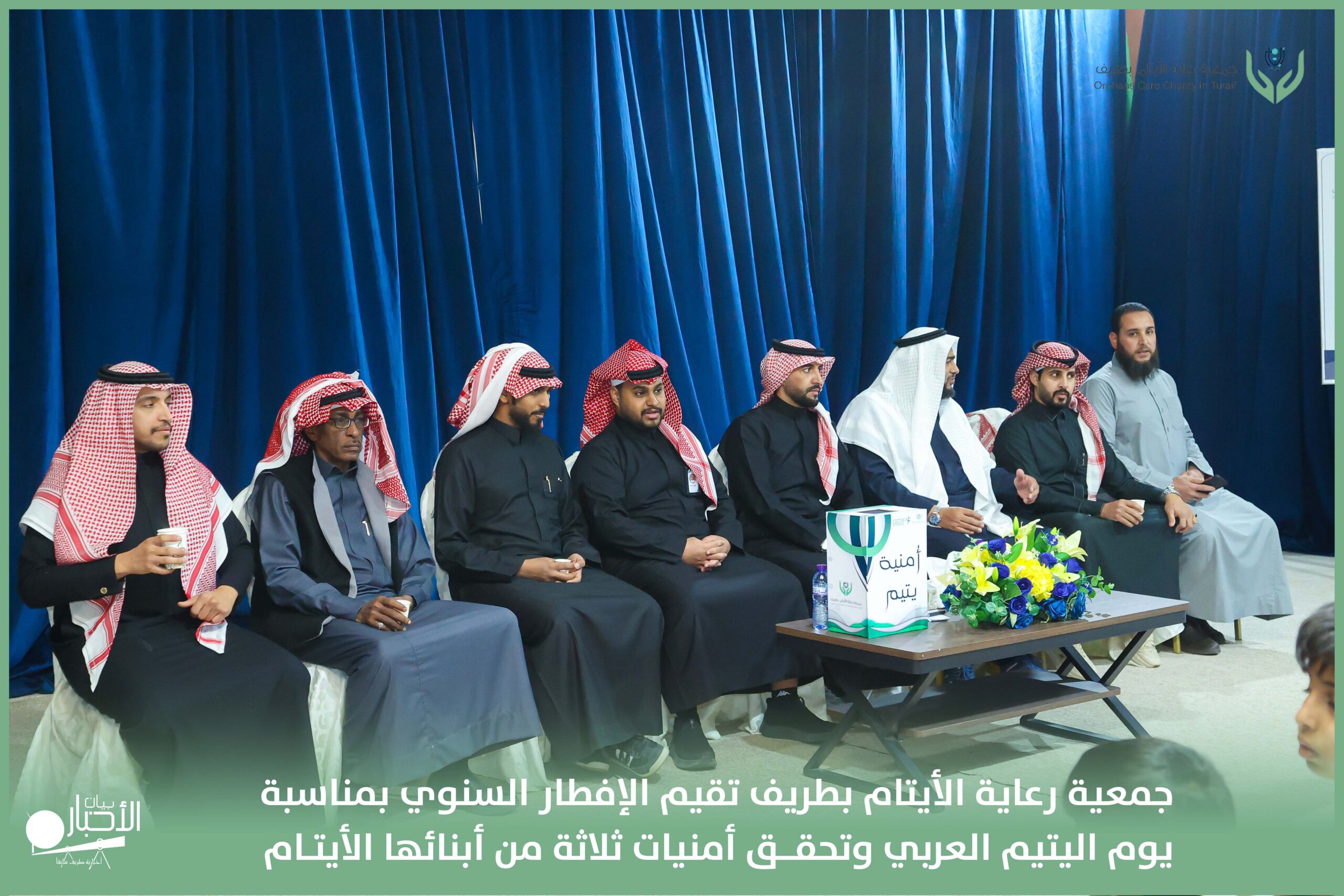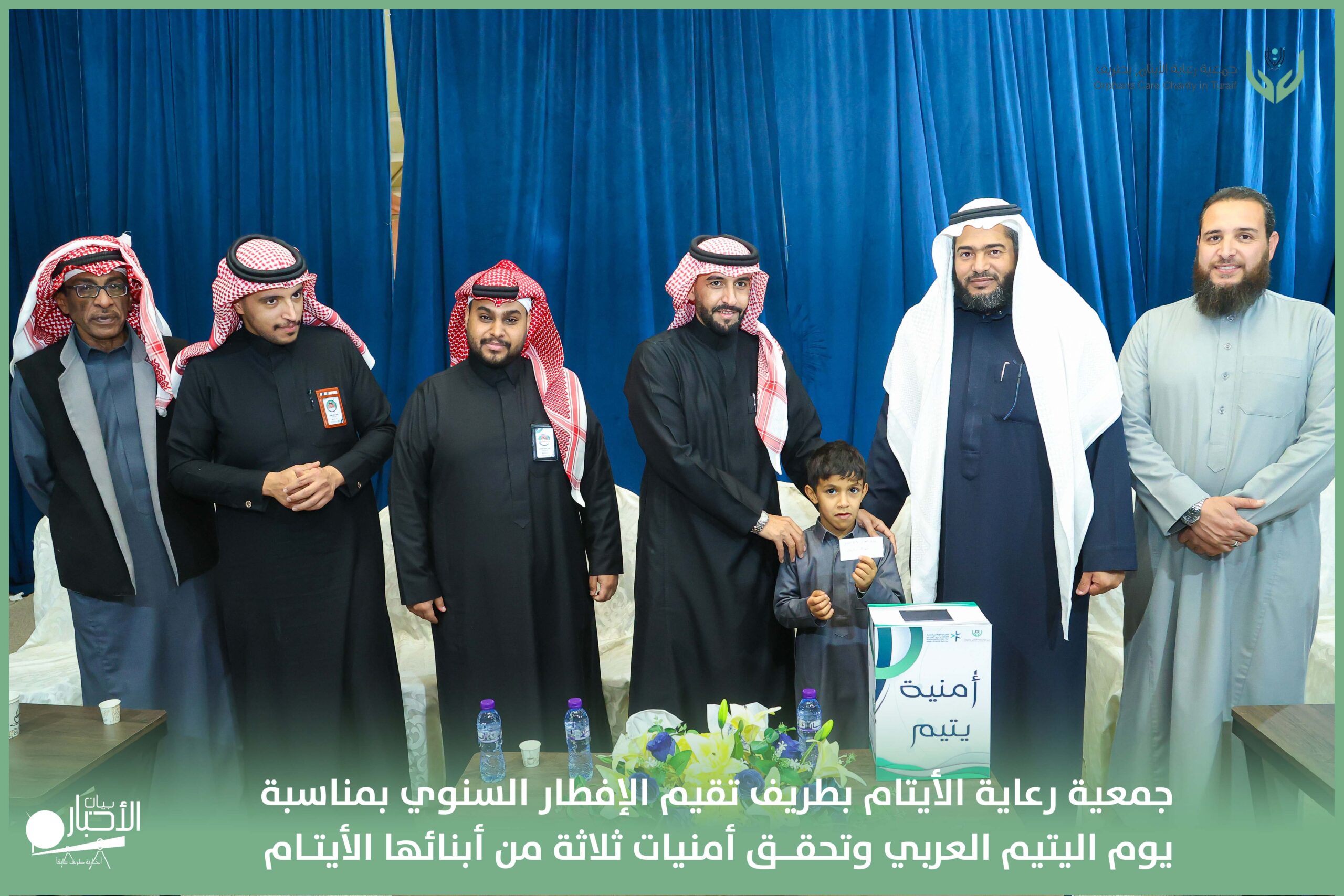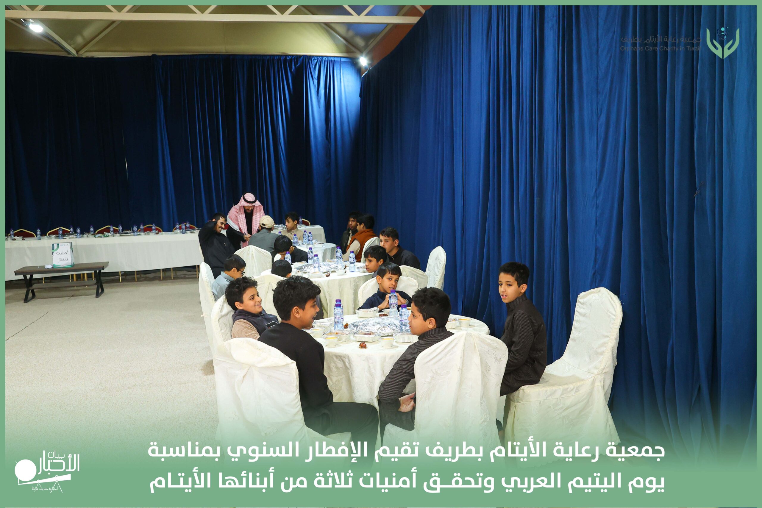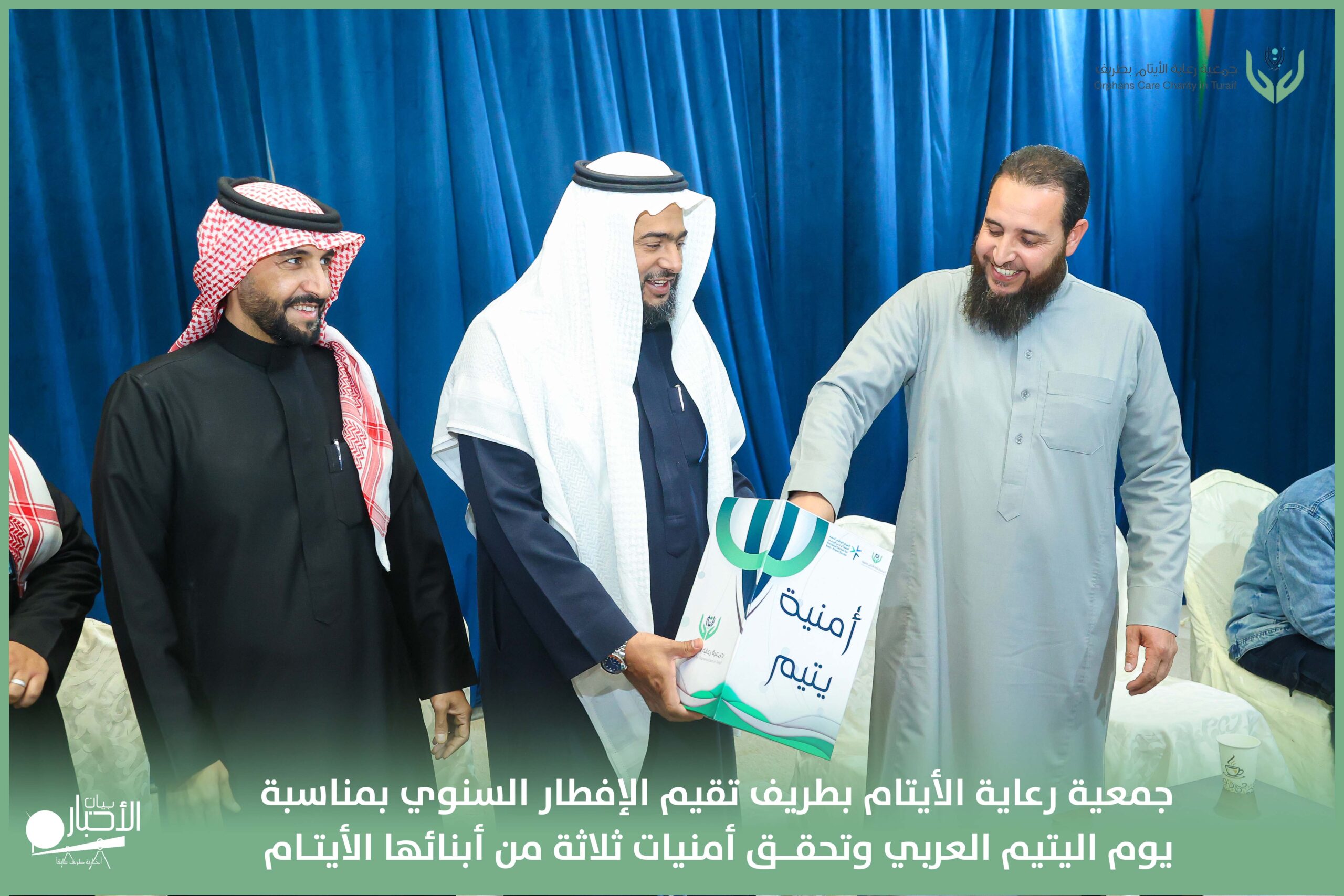 أقامت جمعية رعاية الأيتام بطريف مساء اليوم الجمعة 17 رمضان 1447هـ، حفل الإفطار السنوي بمناسبة يوم اليتيم العربي، وذلك بمقر مدرسة الوعد النموذجية الأهلية المتوسطة والثانوية، بحضور عدد من أعضاء مجلس الإدارة، والإدارة التنفيذية بالجمعية، وعدد من الضيوف والحضور الكرام من ابنائها الايتام
