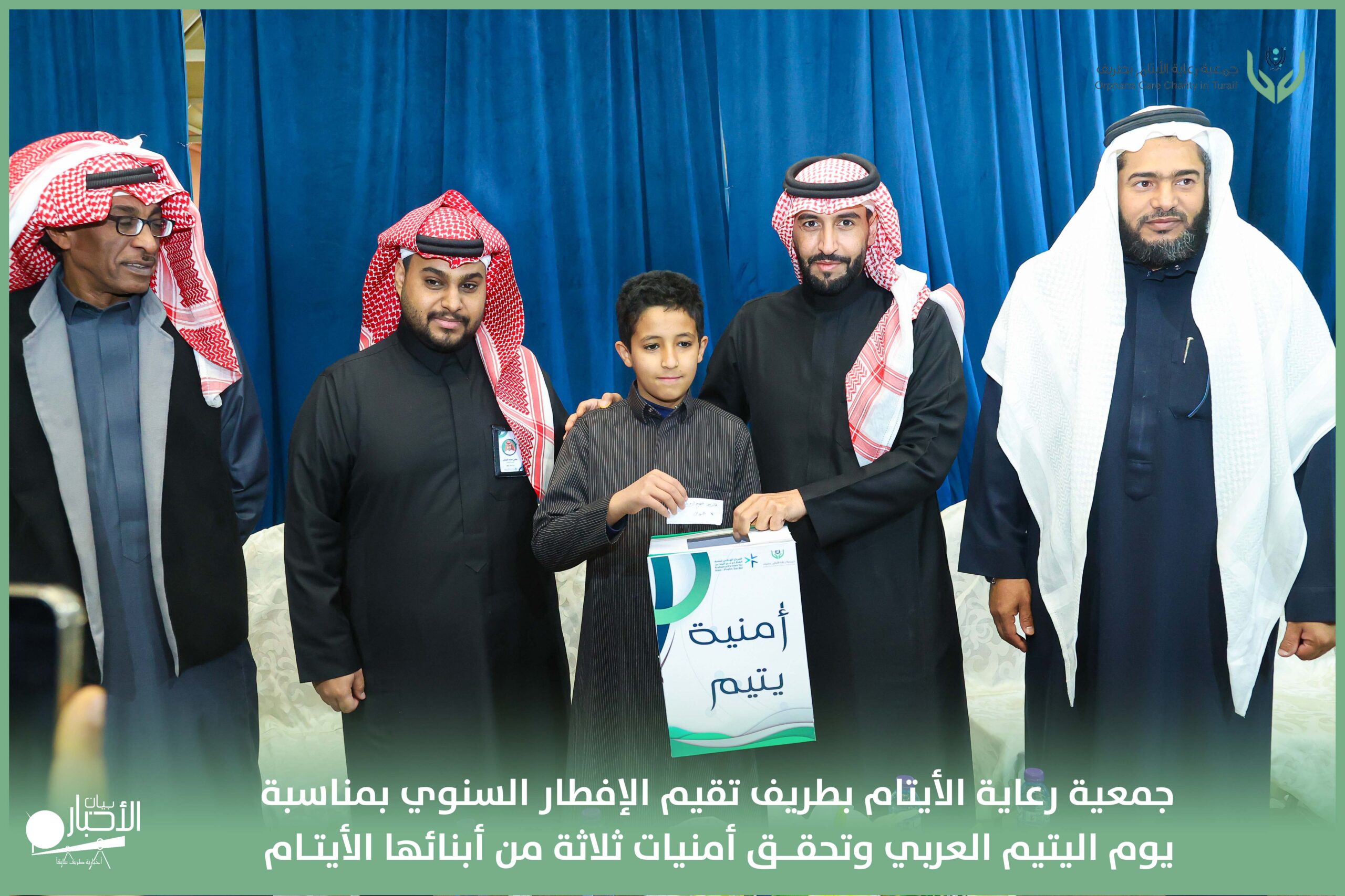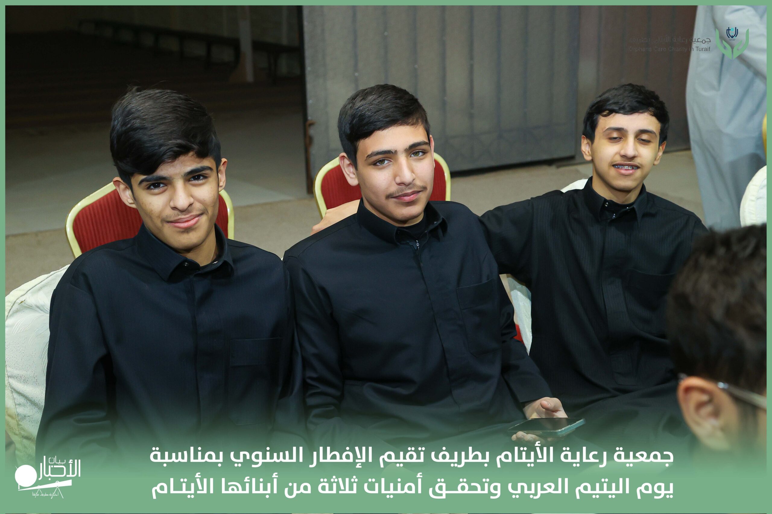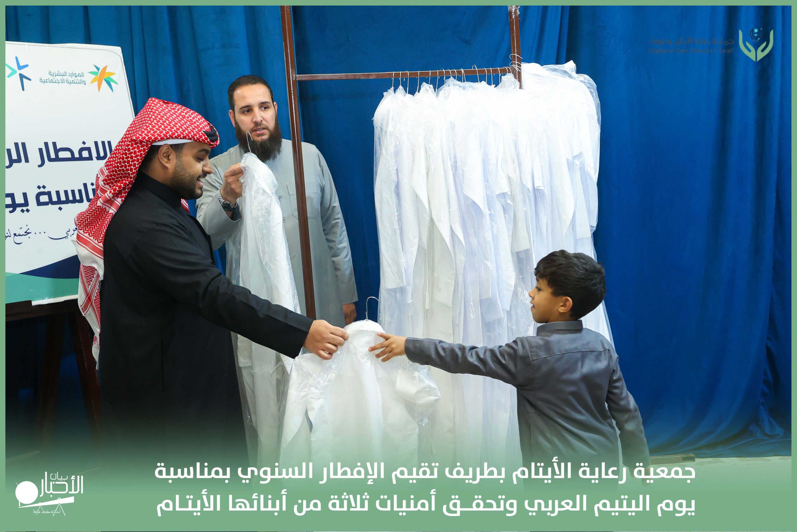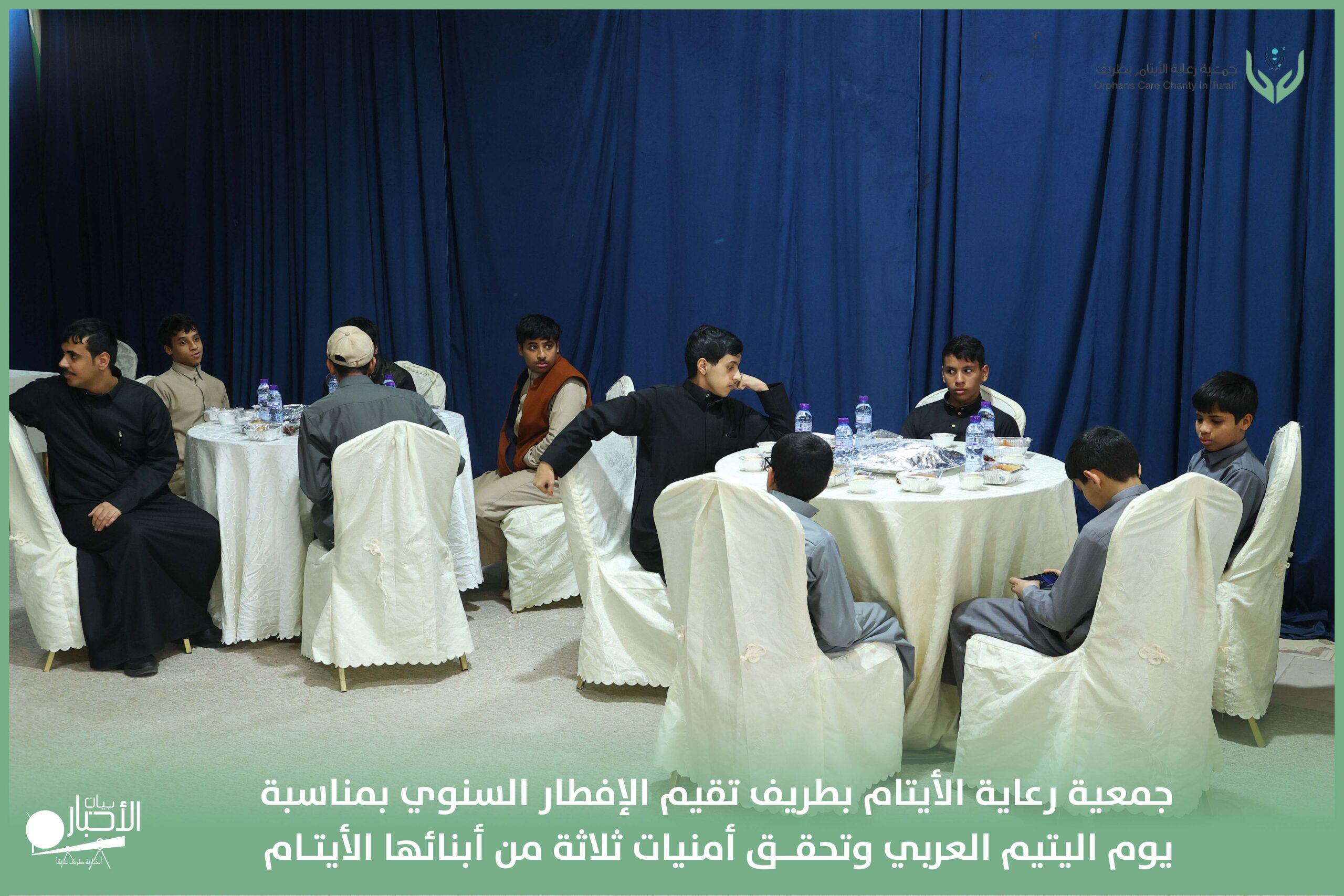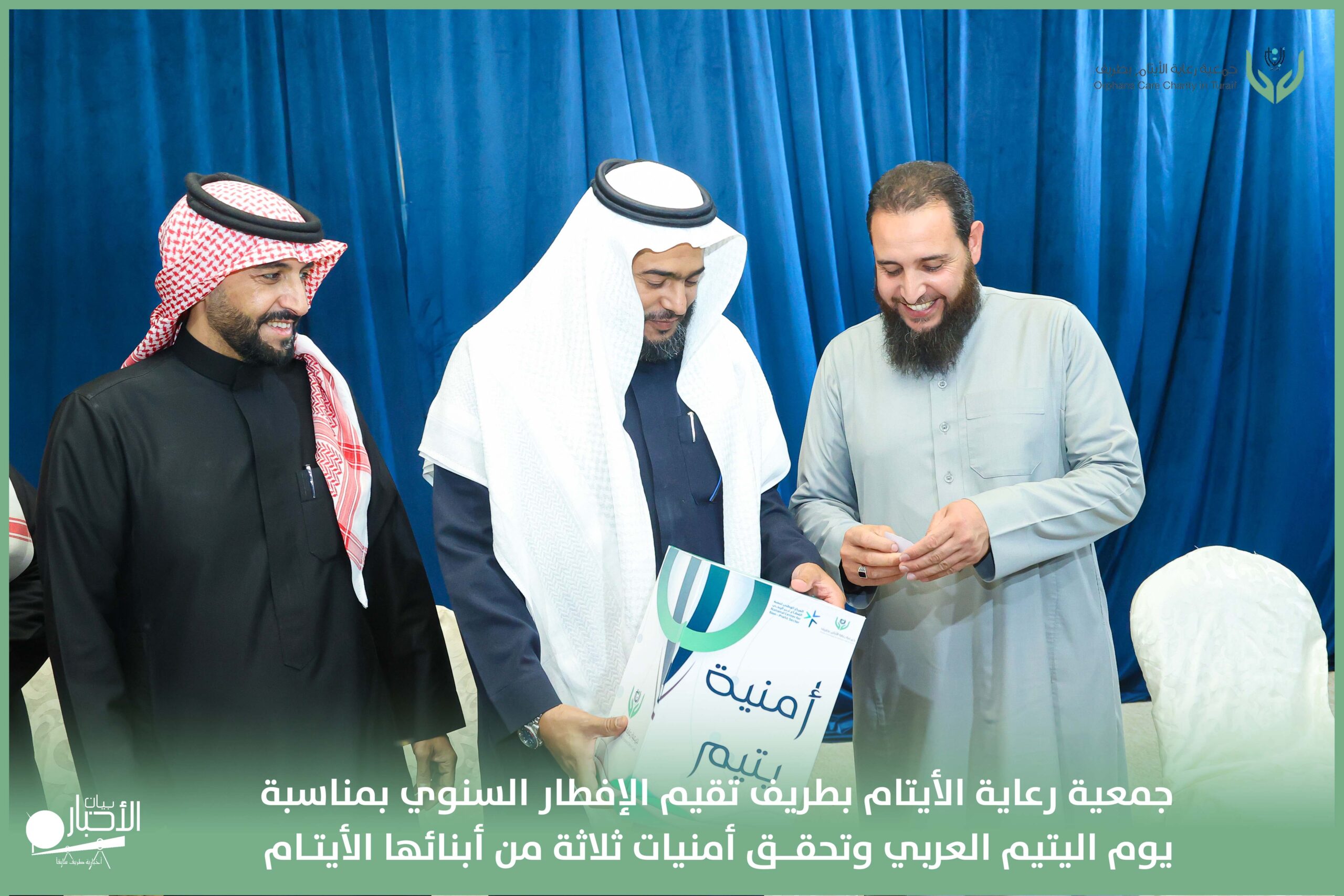 أقامت جمعية رعاية الأيتام بطريف مساء اليوم الجمعة 17 رمضان 1447هـ، حفل الإفطار السنوي بمناسبة يوم اليتيم العربي، وذلك بمقر مدرسة الوعد النموذجية الأهلية المتوسطة والثانوية، بحضور عدد من أعضاء مجلس الإدارة، والإدارة التنفيذية بالجمعية، وعدد من الضيوف والحضور الكرام من ابنائها الايتام