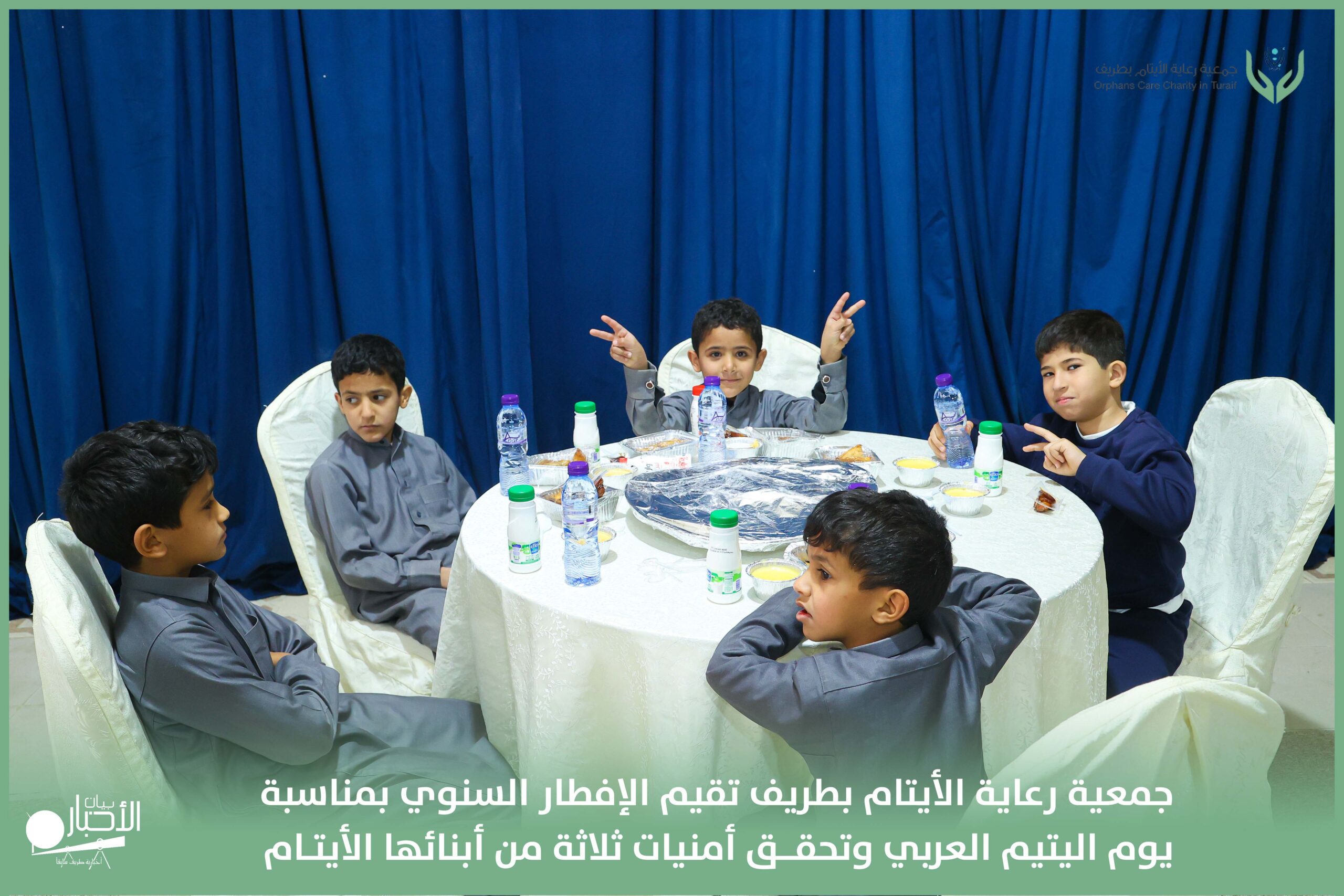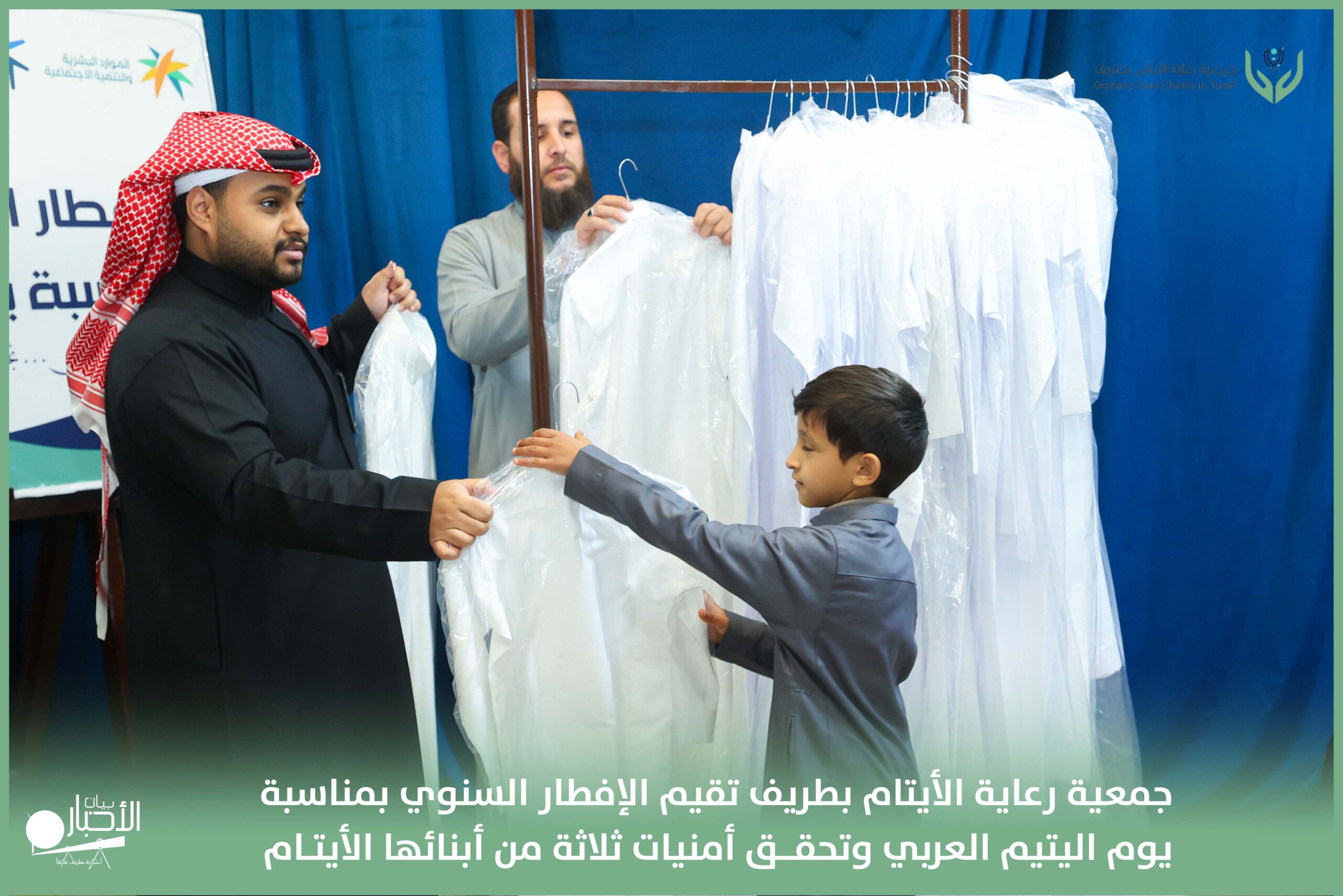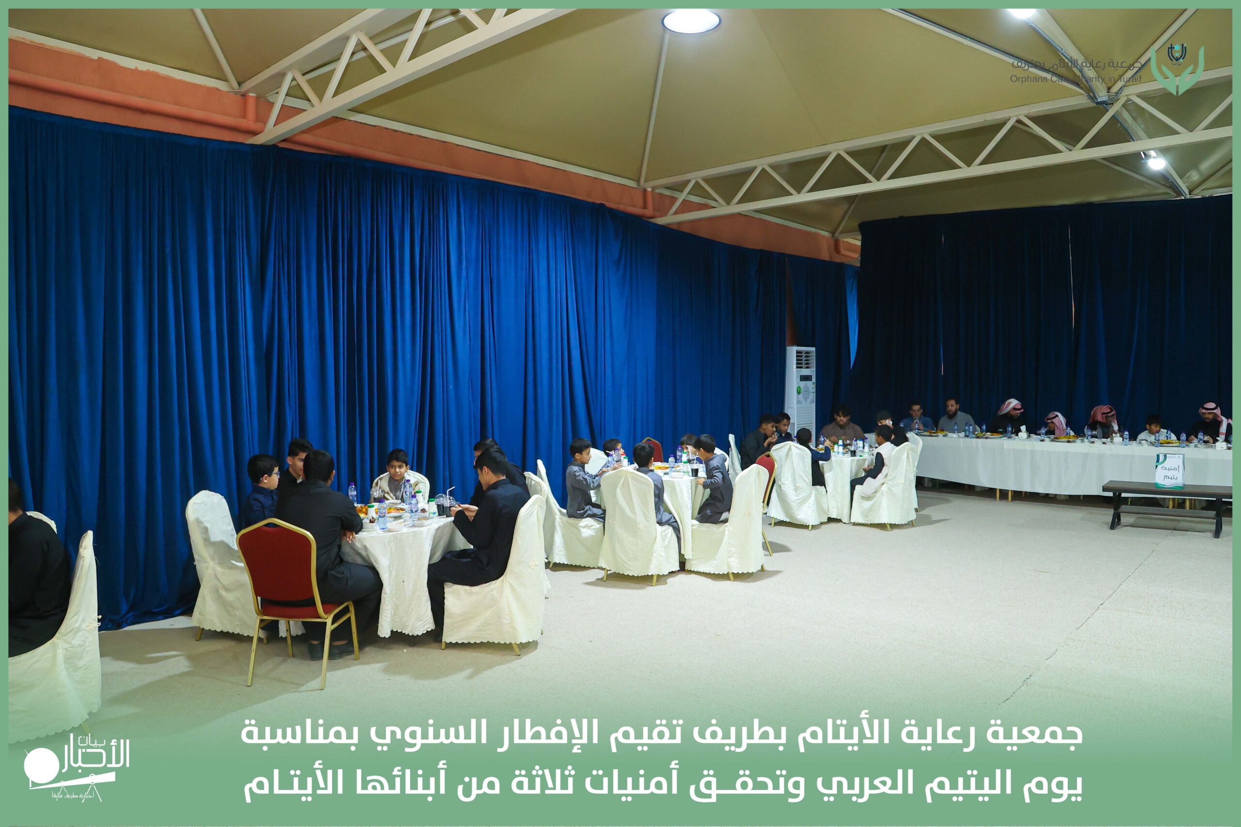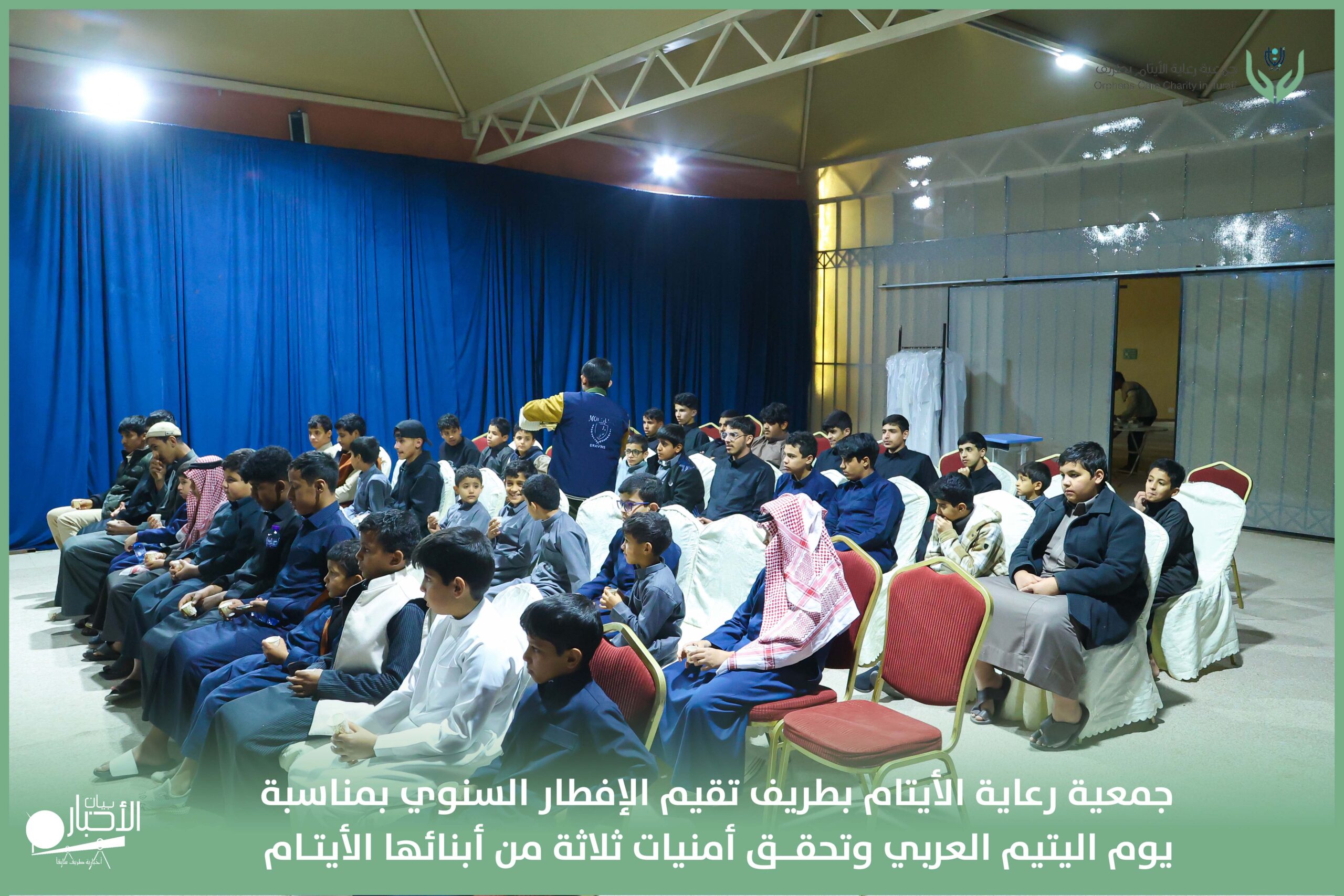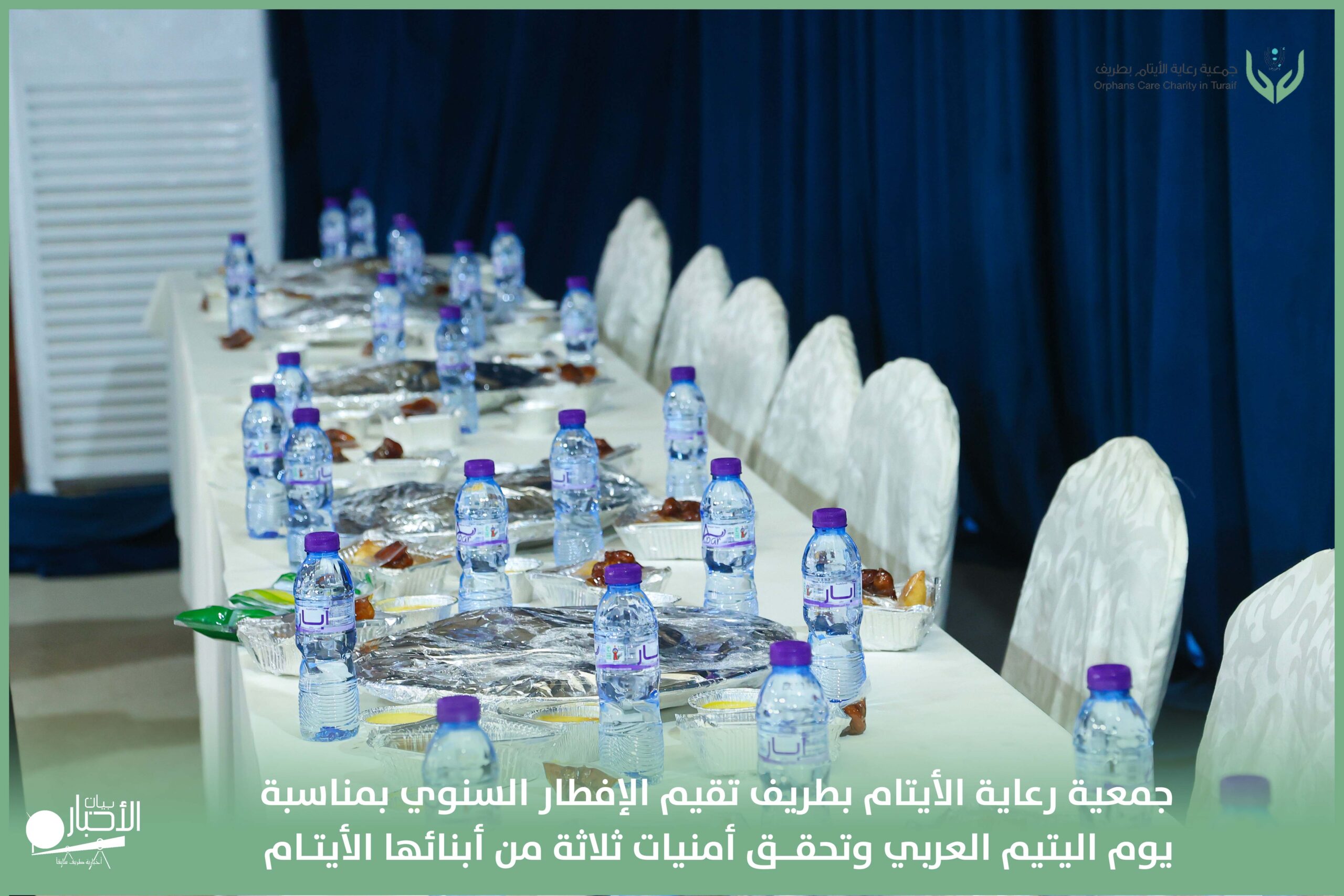 أقامت جمعية رعاية الأيتام بطريف مساء اليوم الجمعة 17 رمضان 1447هـ، حفل الإفطار السنوي بمناسبة يوم اليتيم العربي، وذلك بمقر مدرسة الوعد النموذجية الأهلية المتوسطة والثانوية، بحضور عدد من أعضاء مجلس الإدارة، والإدارة التنفيذية بالجمعية، وعدد من الضيوف والحضور الكرام من ابنائها الايتام