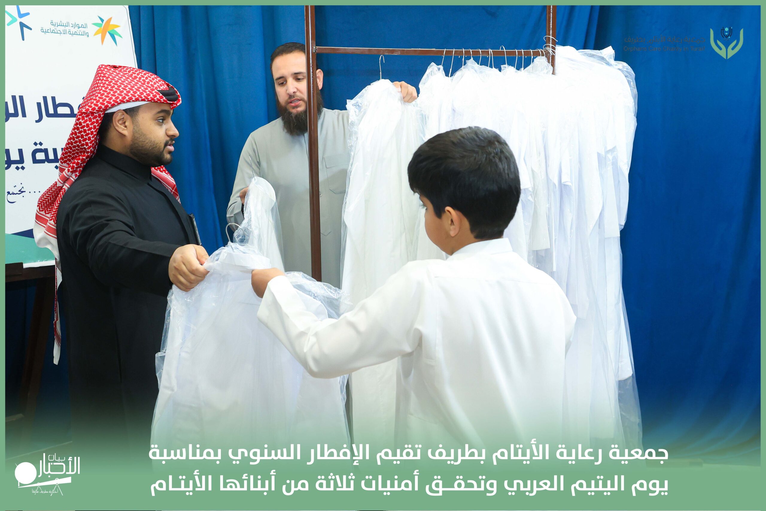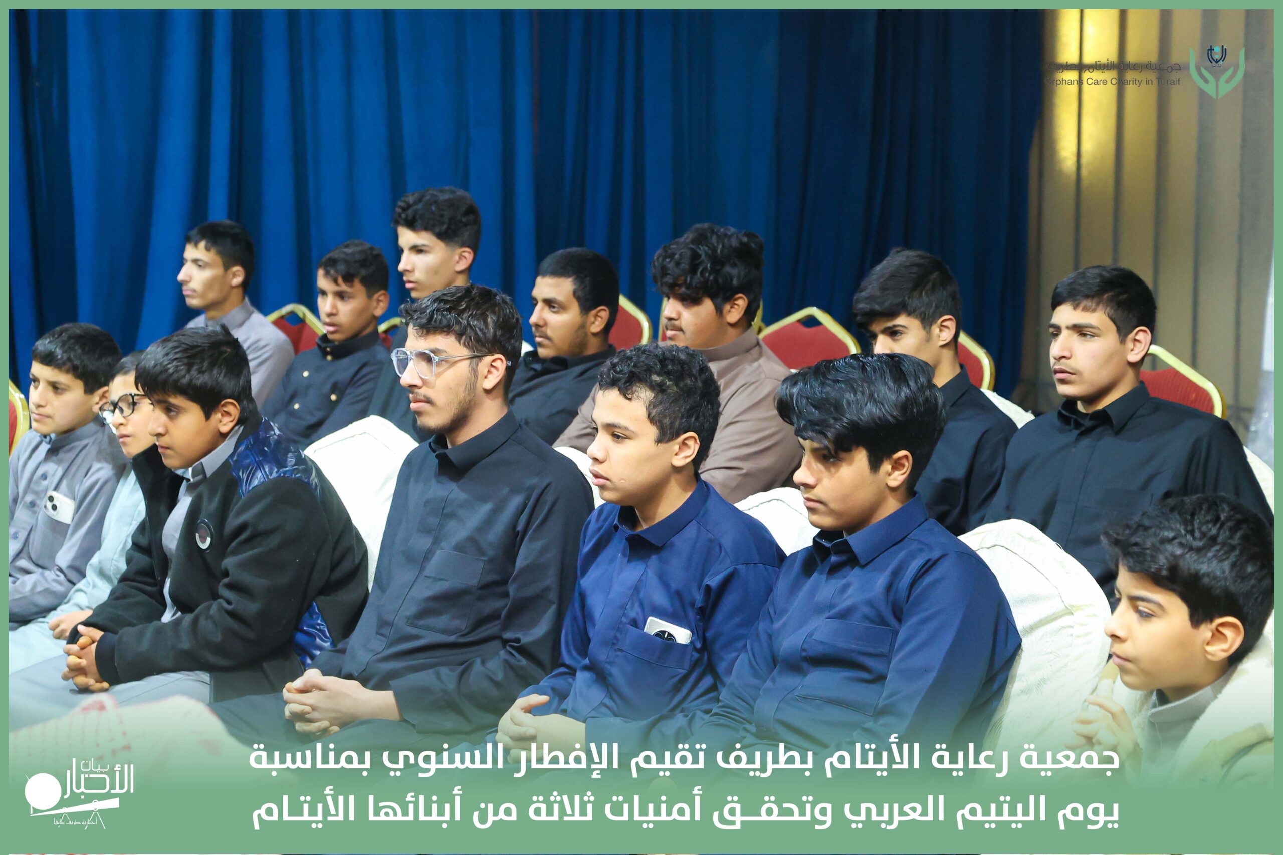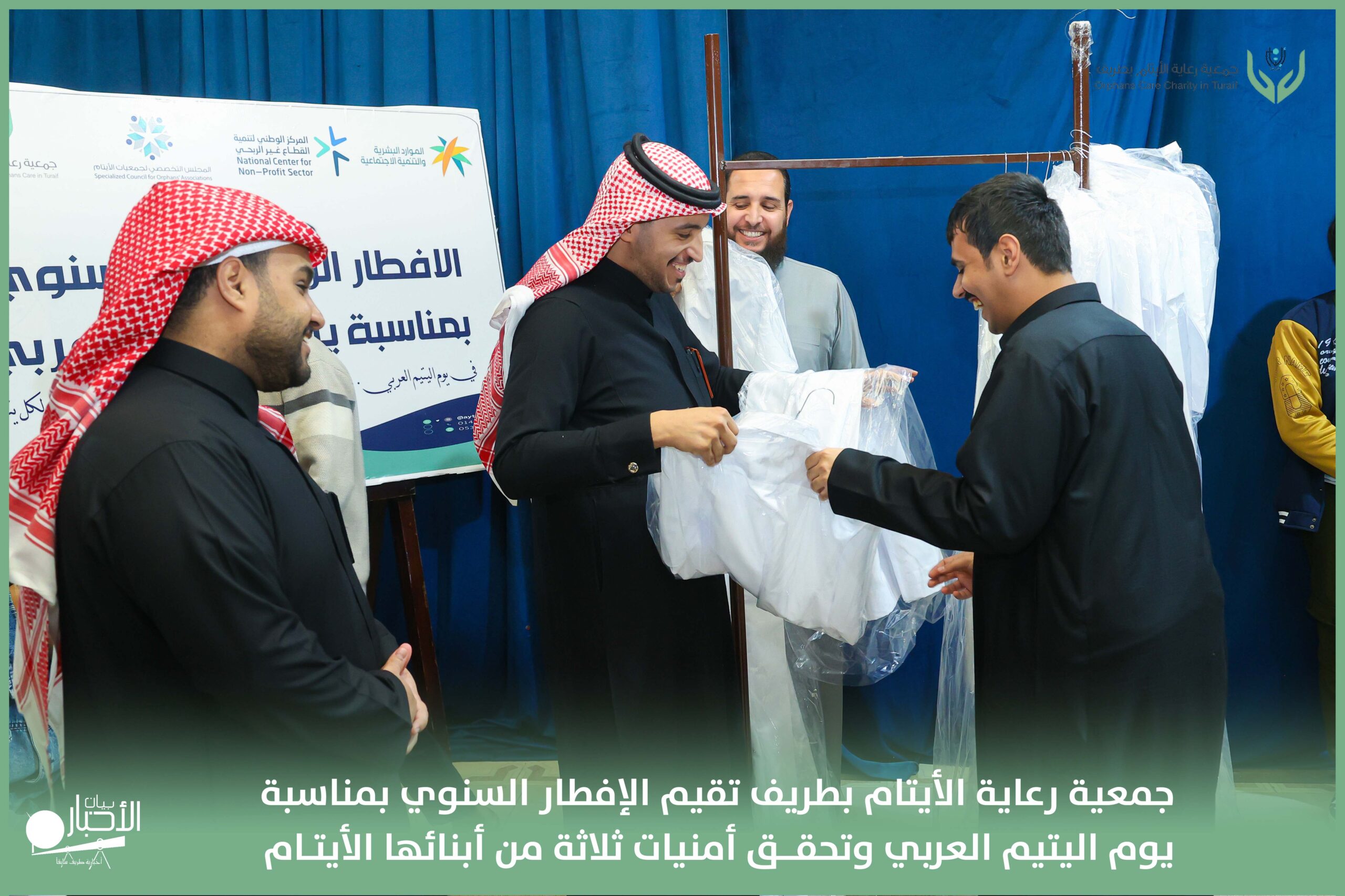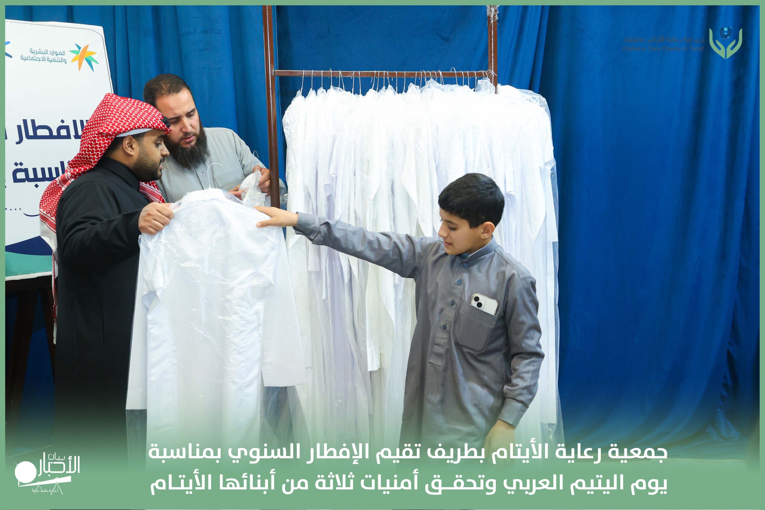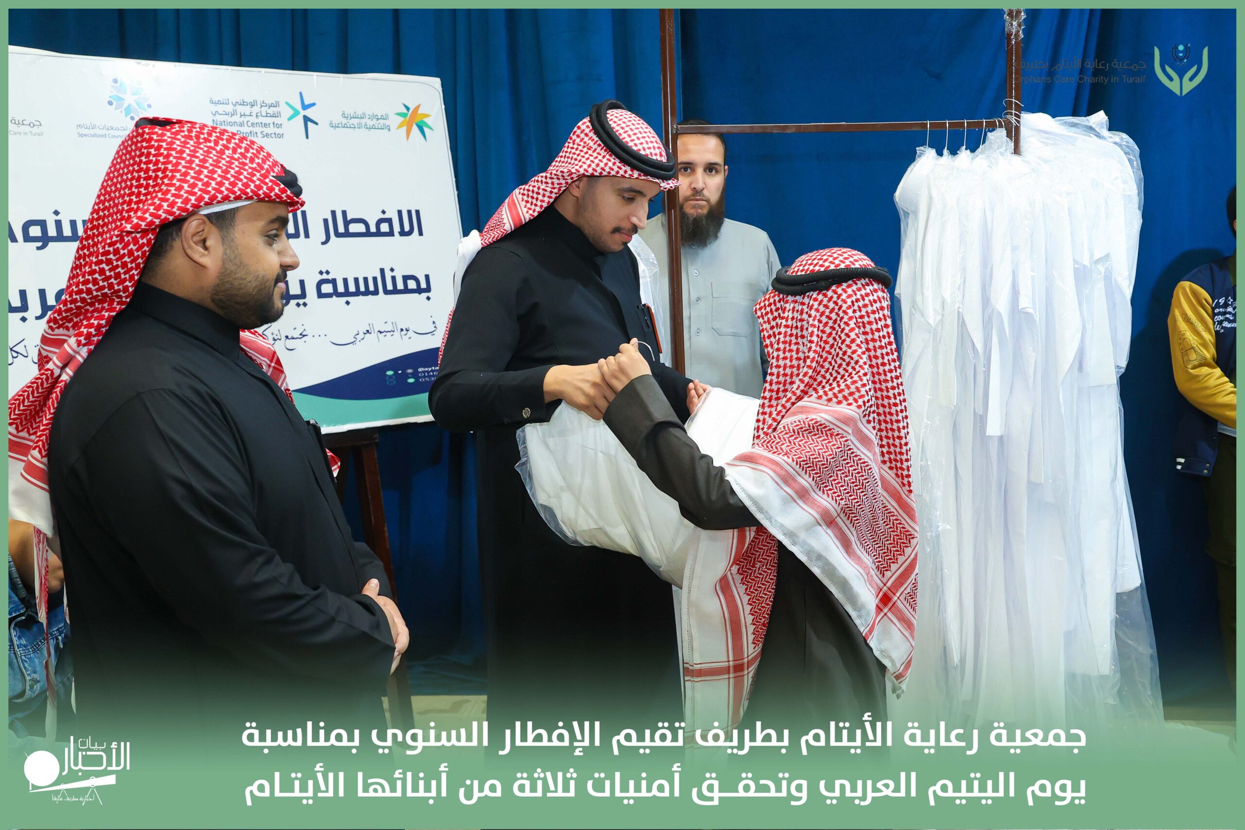 أقامت جمعية رعاية الأيتام بطريف مساء اليوم الجمعة 17 رمضان 1447هـ، حفل الإفطار السنوي بمناسبة يوم اليتيم العربي، وذلك بمقر مدرسة الوعد النموذجية الأهلية المتوسطة والثانوية، بحضور عدد من أعضاء مجلس الإدارة، والإدارة التنفيذية بالجمعية، وعدد من الضيوف والحضور الكرام من ابنائها الايتام