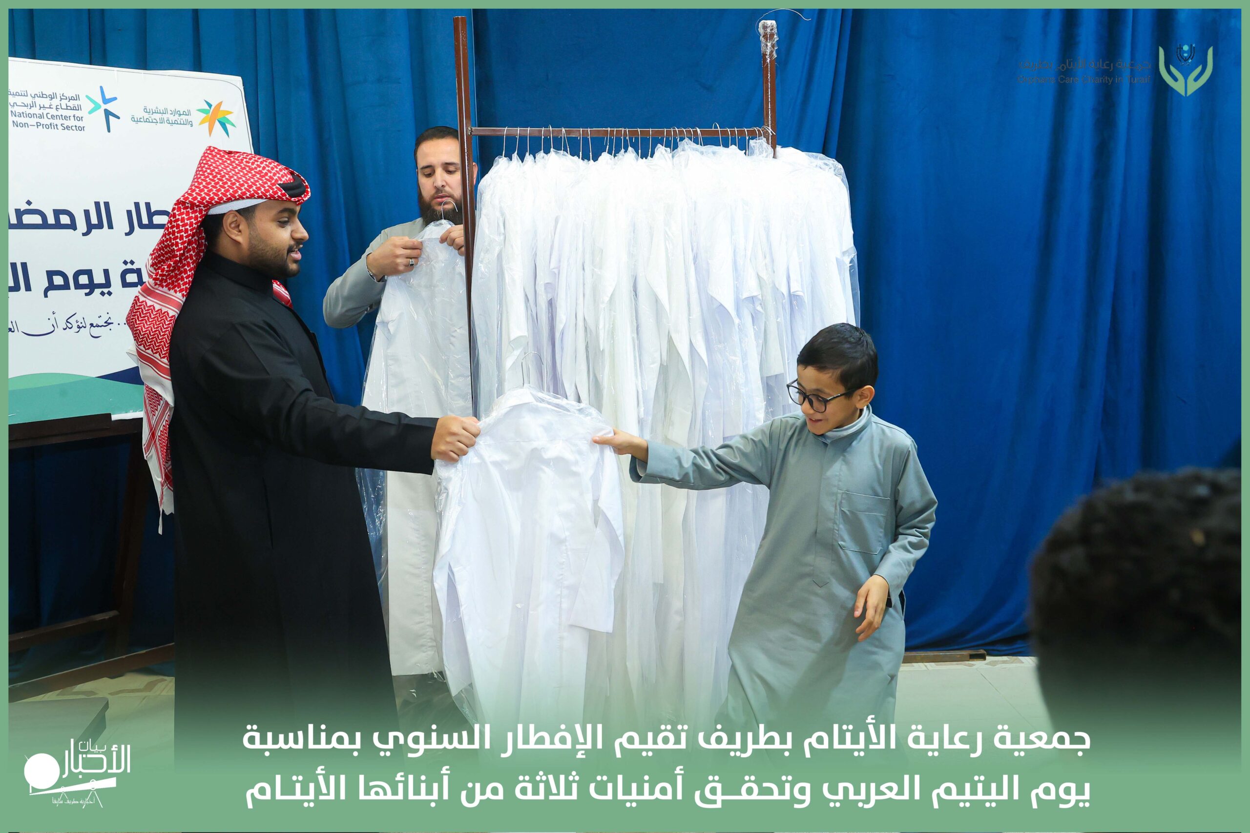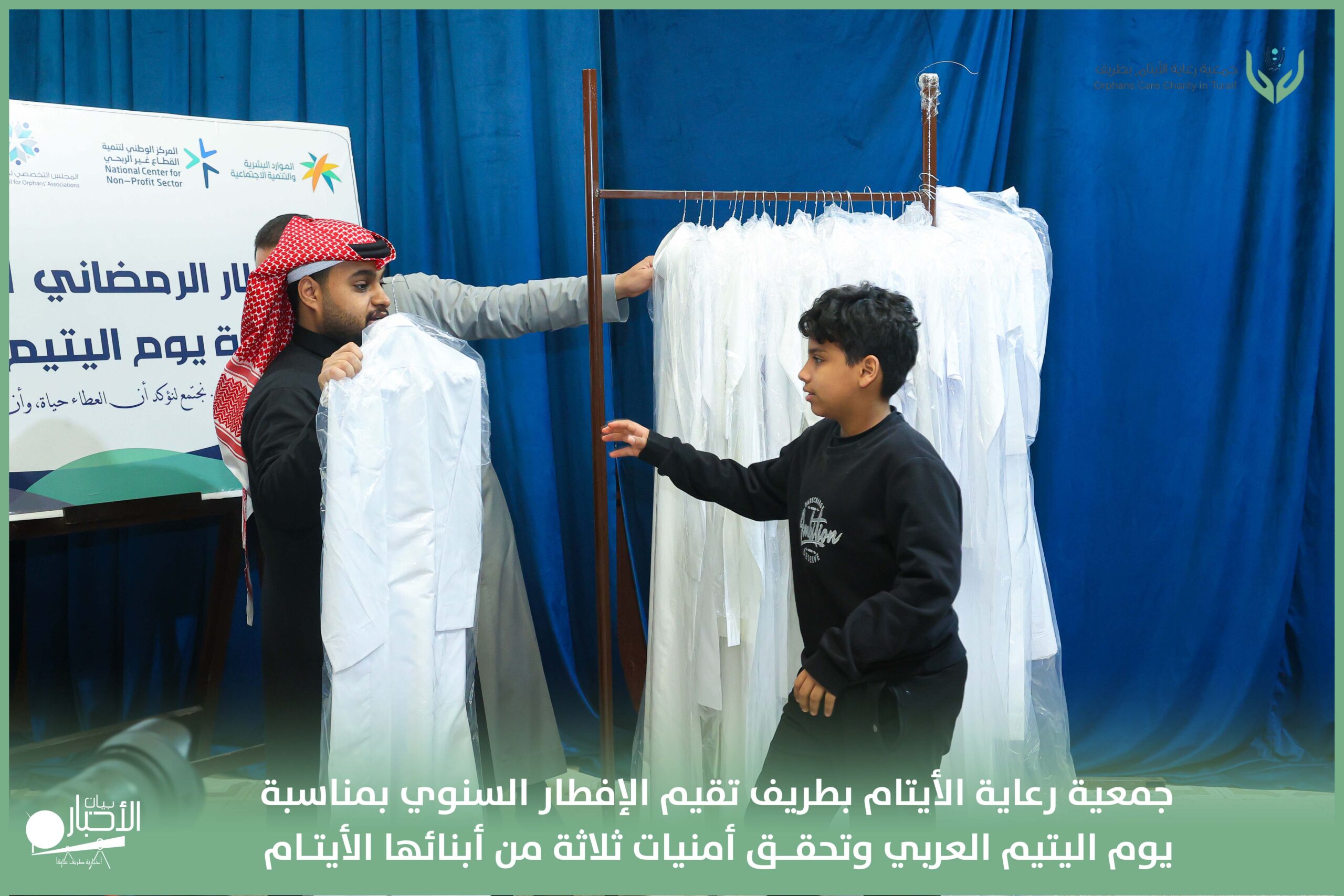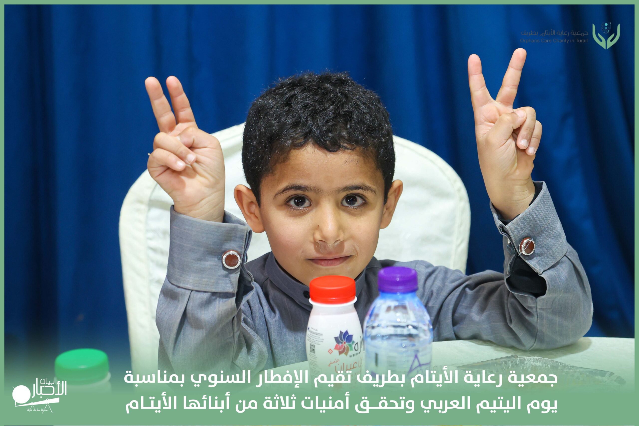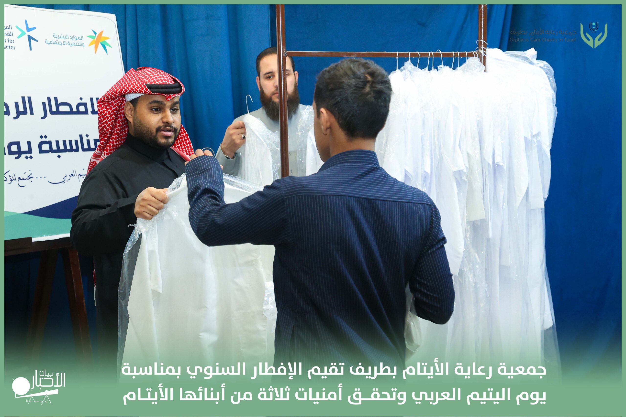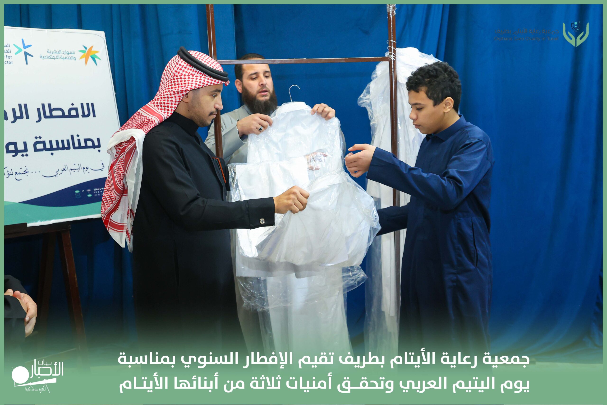 أقامت جمعية رعاية الأيتام بطريف مساء اليوم الجمعة 17 رمضان 1447هـ، حفل الإفطار السنوي بمناسبة يوم اليتيم العربي، وذلك بمقر مدرسة الوعد النموذجية الأهلية المتوسطة والثانوية، بحضور عدد من أعضاء مجلس الإدارة، والإدارة التنفيذية بالجمعية، وعدد من الضيوف والحضور الكرام من ابنائها الايتام