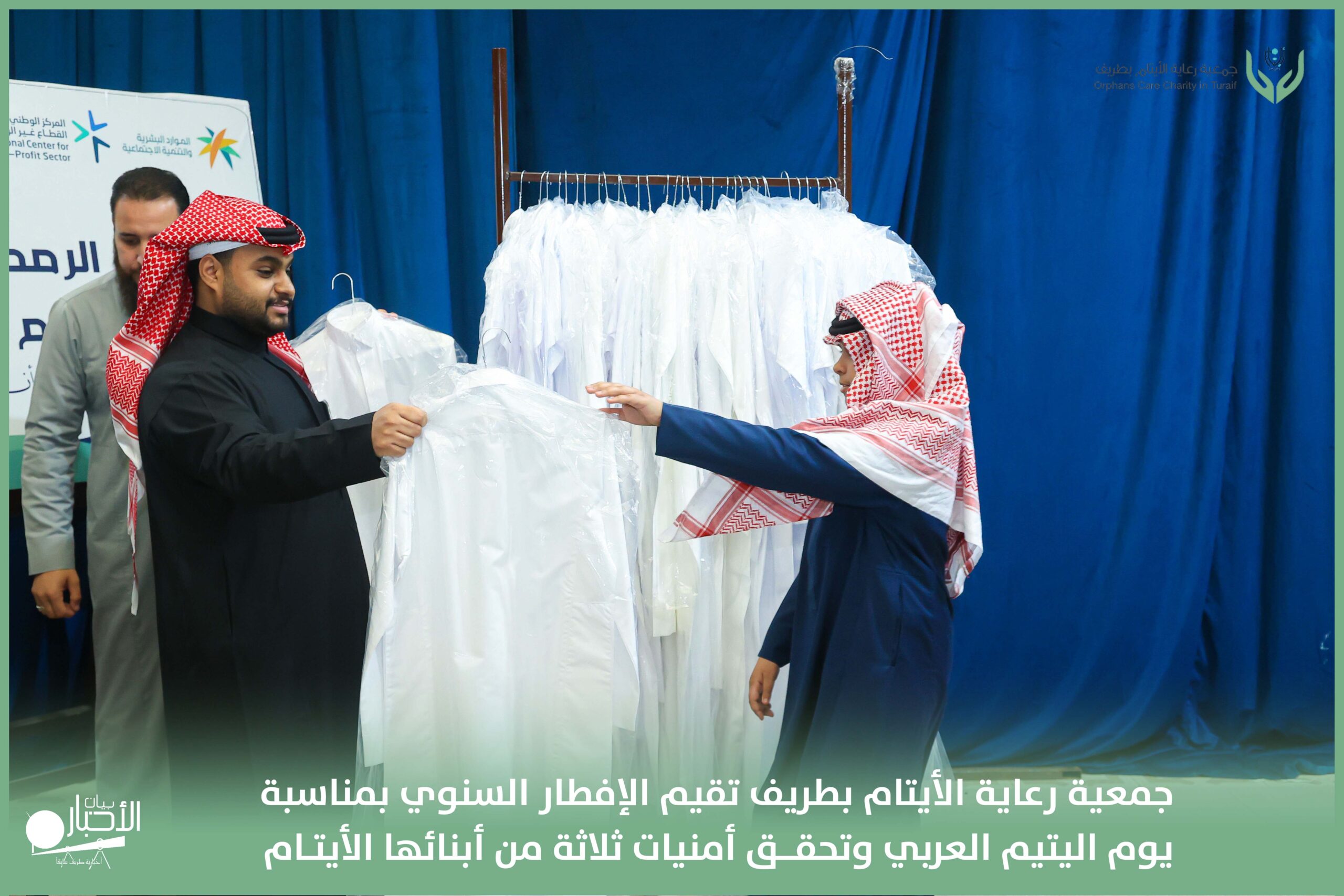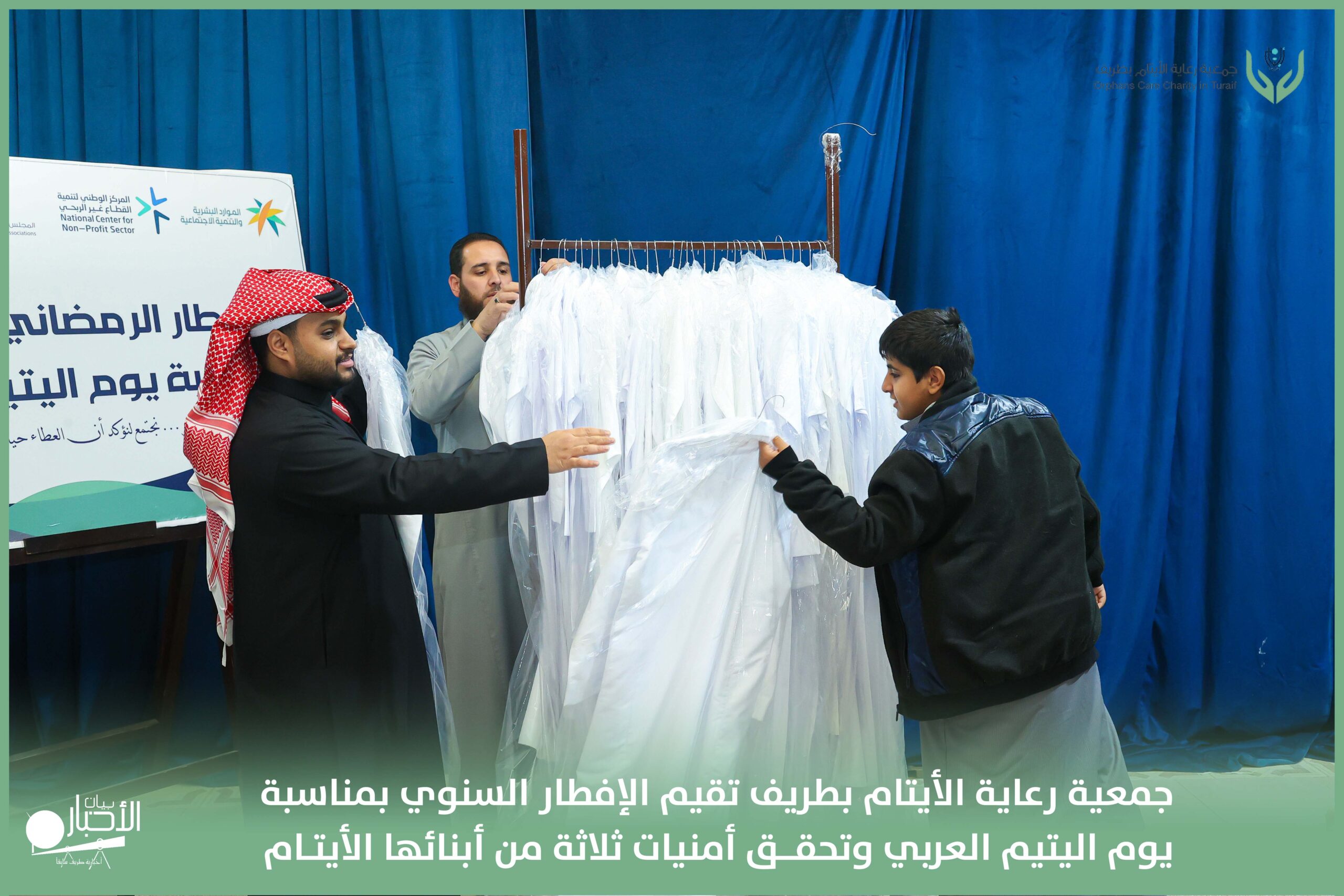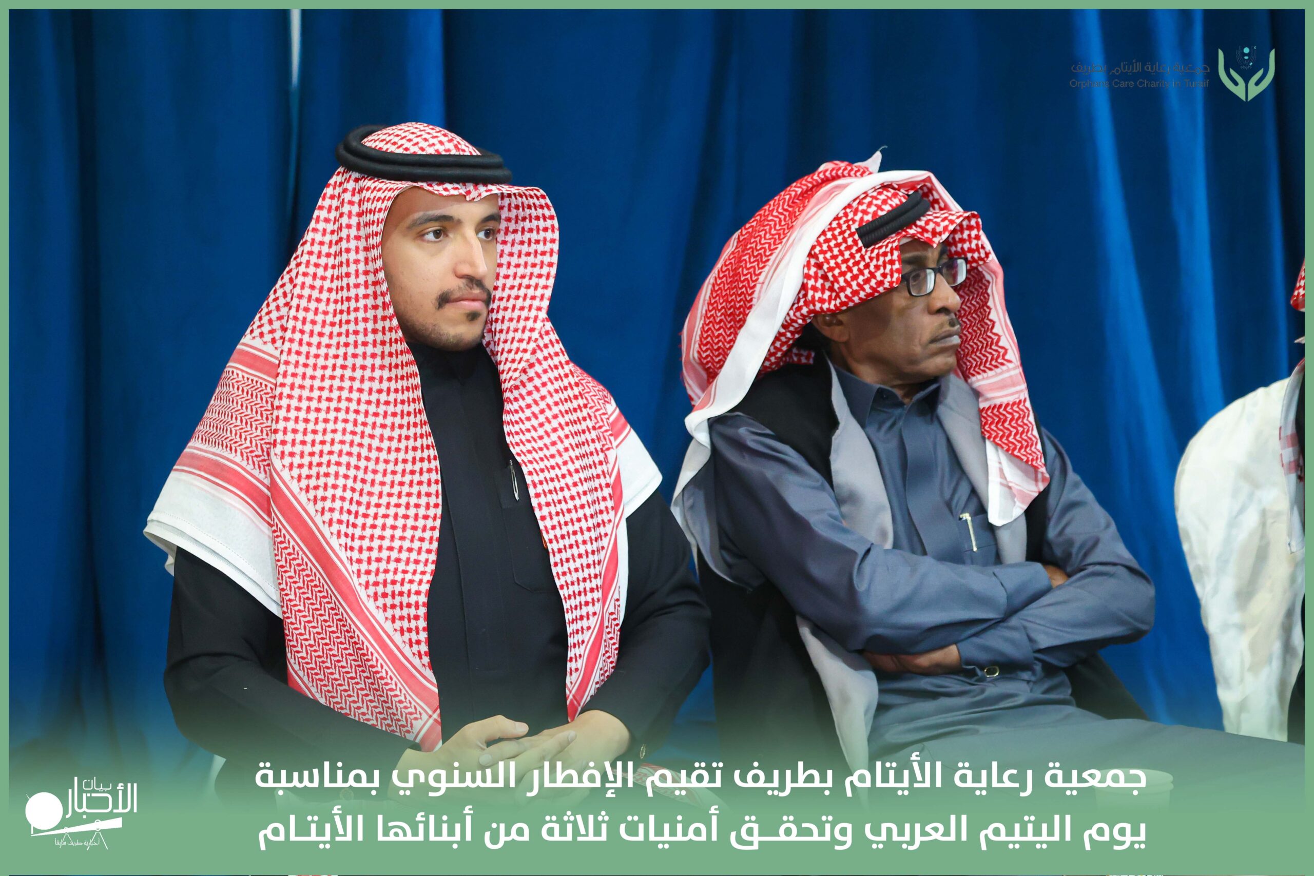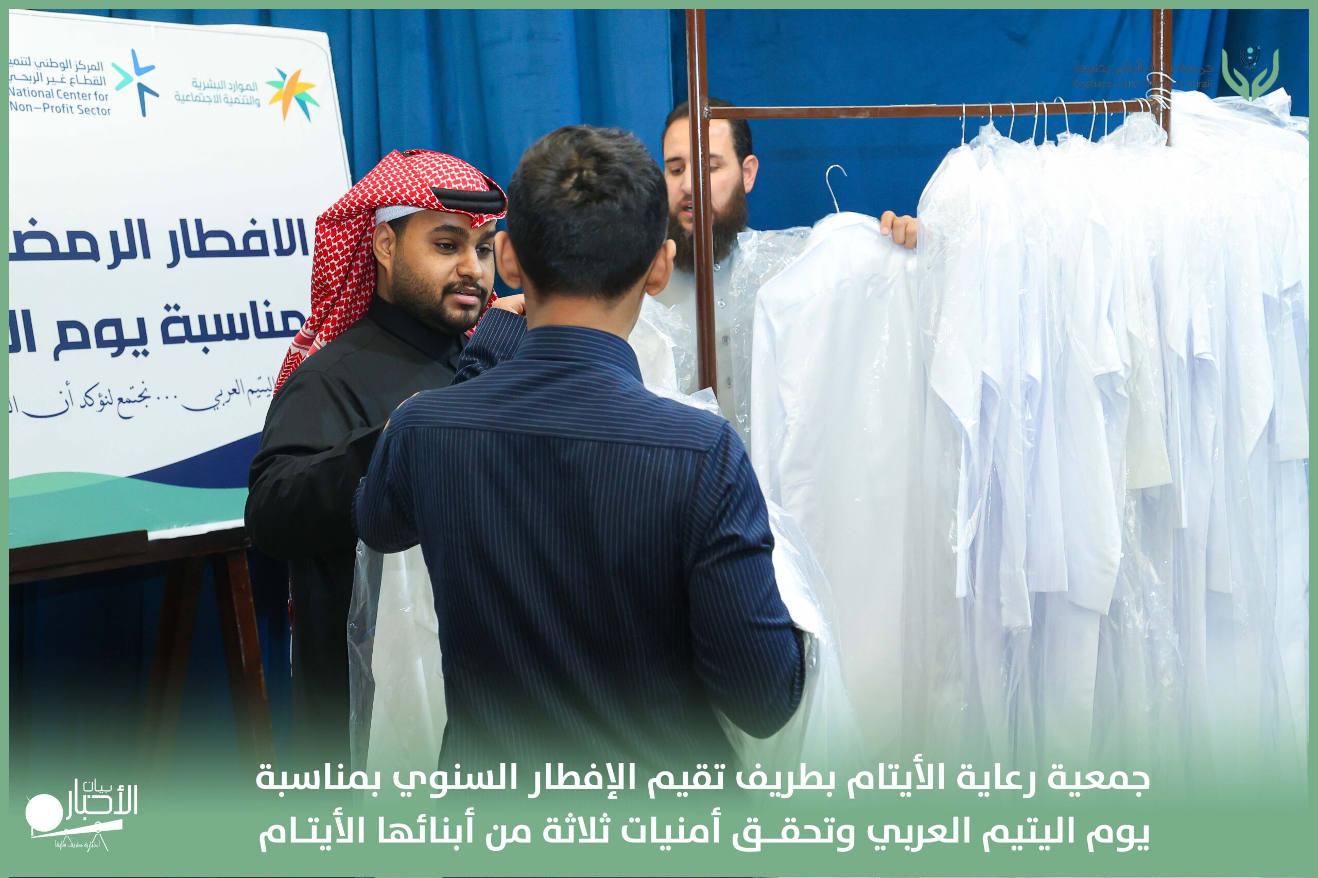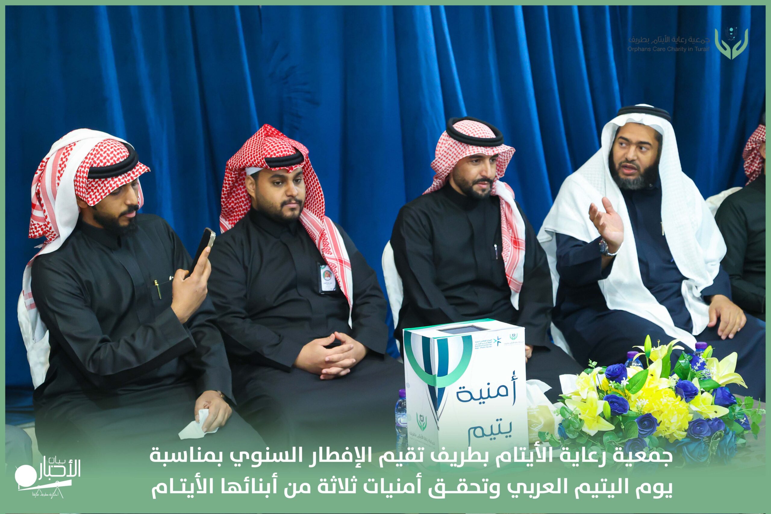 أقامت جمعية رعاية الأيتام بطريف مساء اليوم الجمعة 17 رمضان 1447هـ، حفل الإفطار السنوي بمناسبة يوم اليتيم العربي، وذلك بمقر مدرسة الوعد النموذجية الأهلية المتوسطة والثانوية، بحضور عدد من أعضاء مجلس الإدارة، والإدارة التنفيذية بالجمعية، وعدد من الضيوف والحضور الكرام من ابنائها الايتام