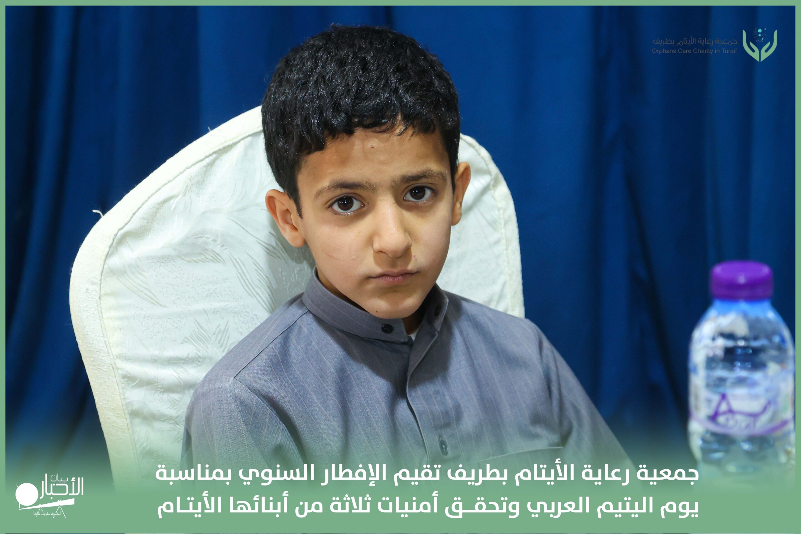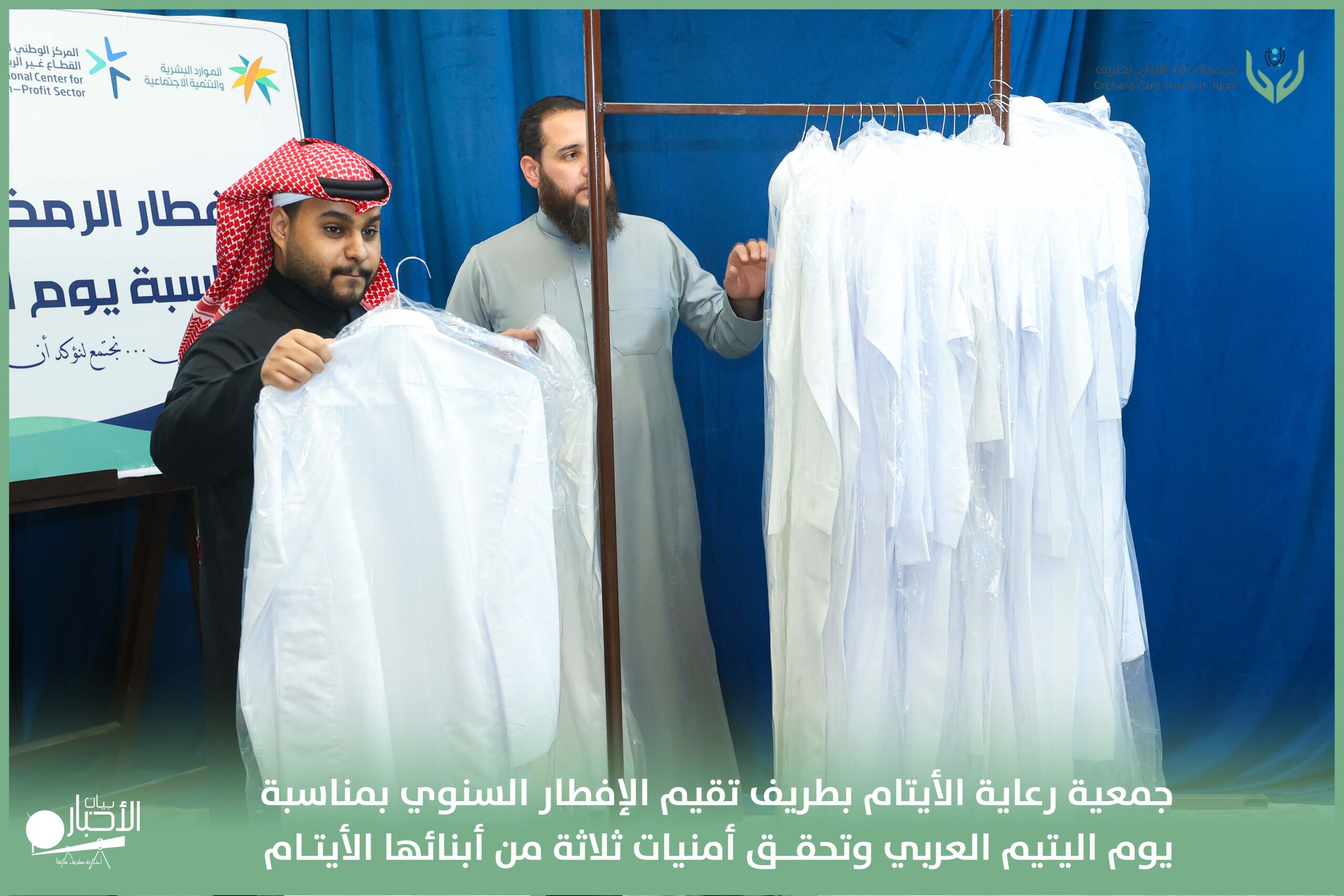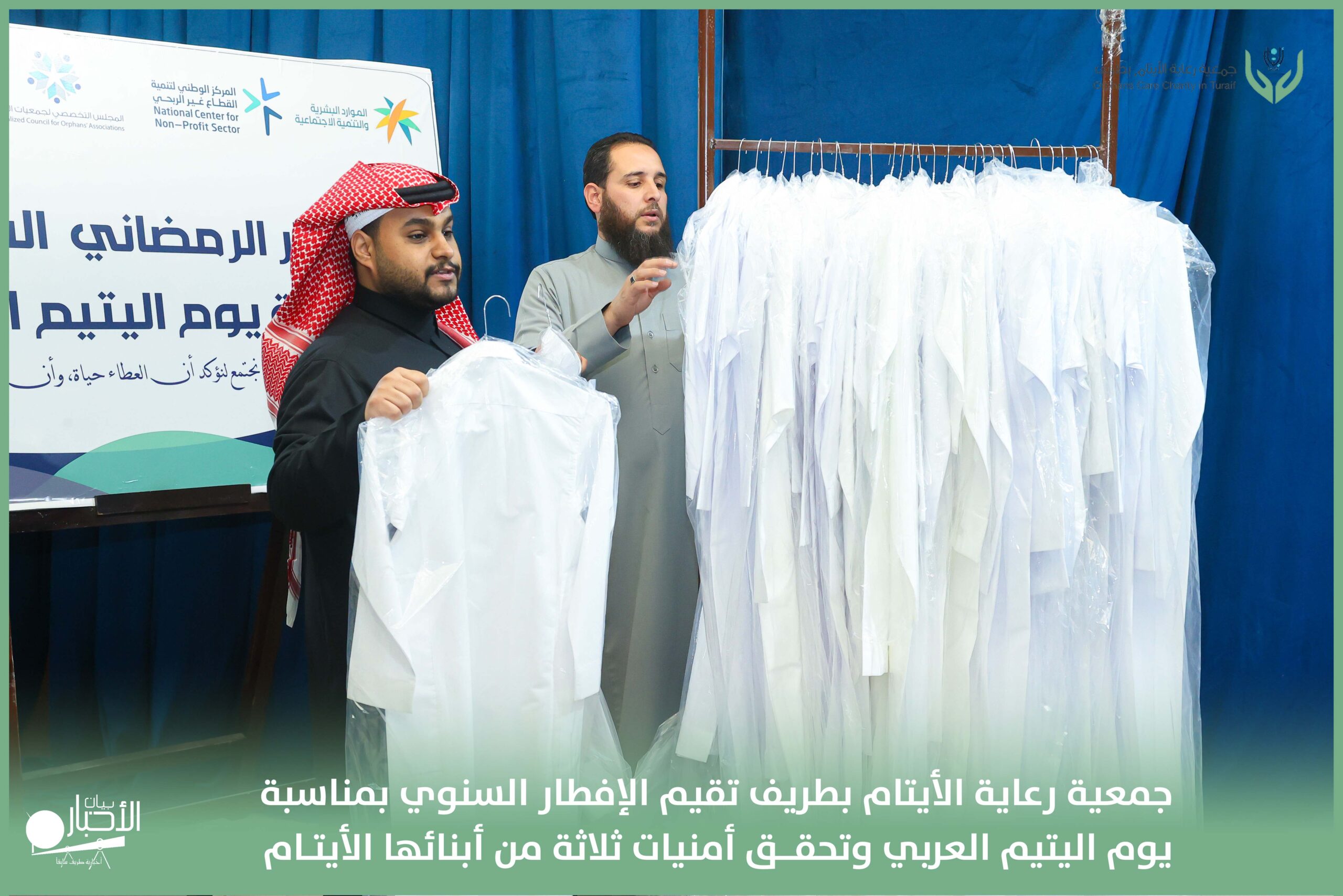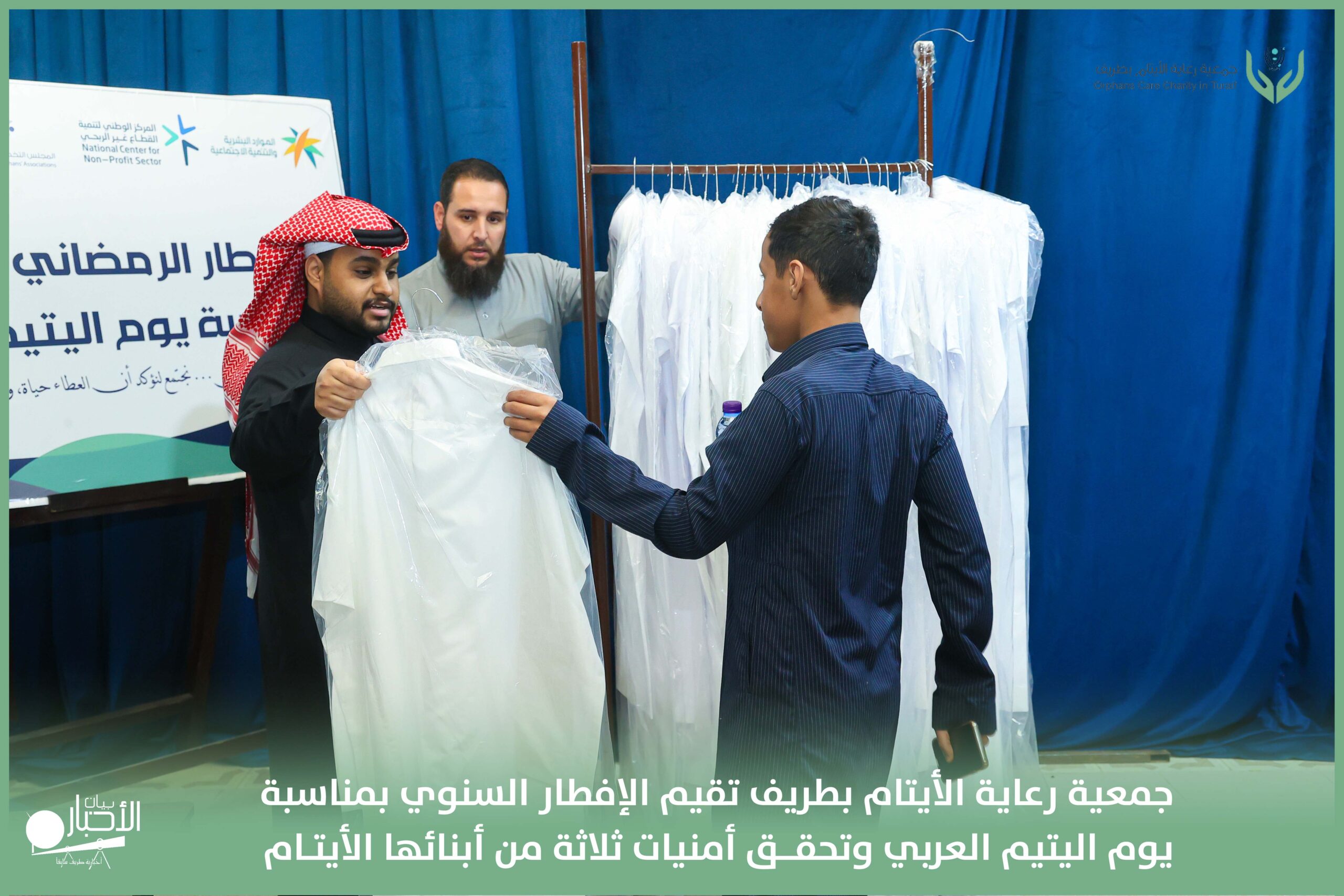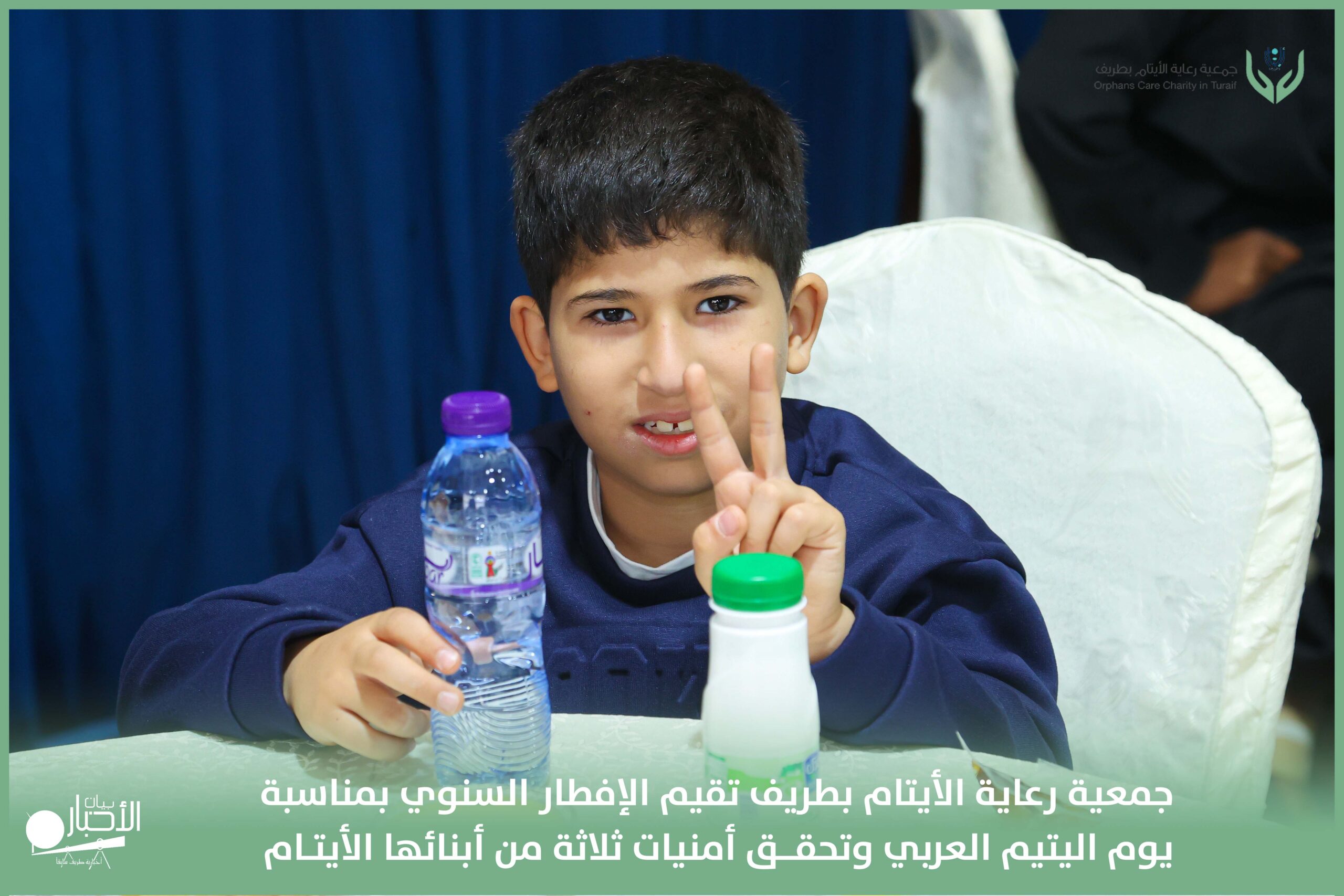 أقامت جمعية رعاية الأيتام بطريف مساء اليوم الجمعة 17 رمضان 1447هـ، حفل الإفطار السنوي بمناسبة يوم اليتيم العربي، وذلك بمقر مدرسة الوعد النموذجية الأهلية المتوسطة والثانوية، بحضور عدد من أعضاء مجلس الإدارة، والإدارة التنفيذية بالجمعية، وعدد من الضيوف والحضور الكرام من ابنائها الايتام