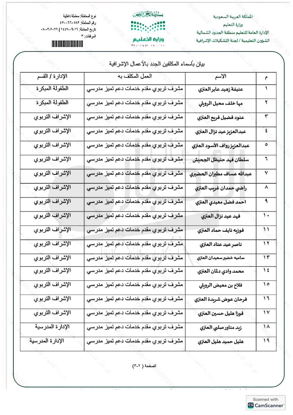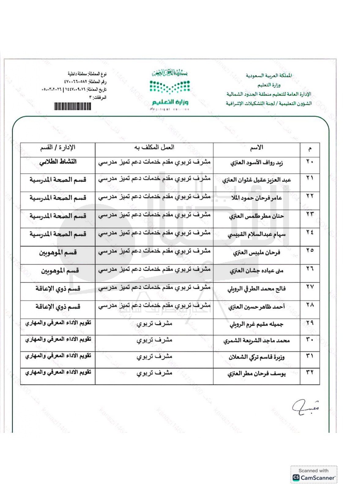صدر قرار المدير العام للتعليم بمنطقة الحدود الشمالية الأستاذ سعيد بن مساعد الزهراني بتكليف عدد 32 معلم ومعلمة للعمل مشرف تربوي حتى نهاية العام الدراسي 1447 هـ .