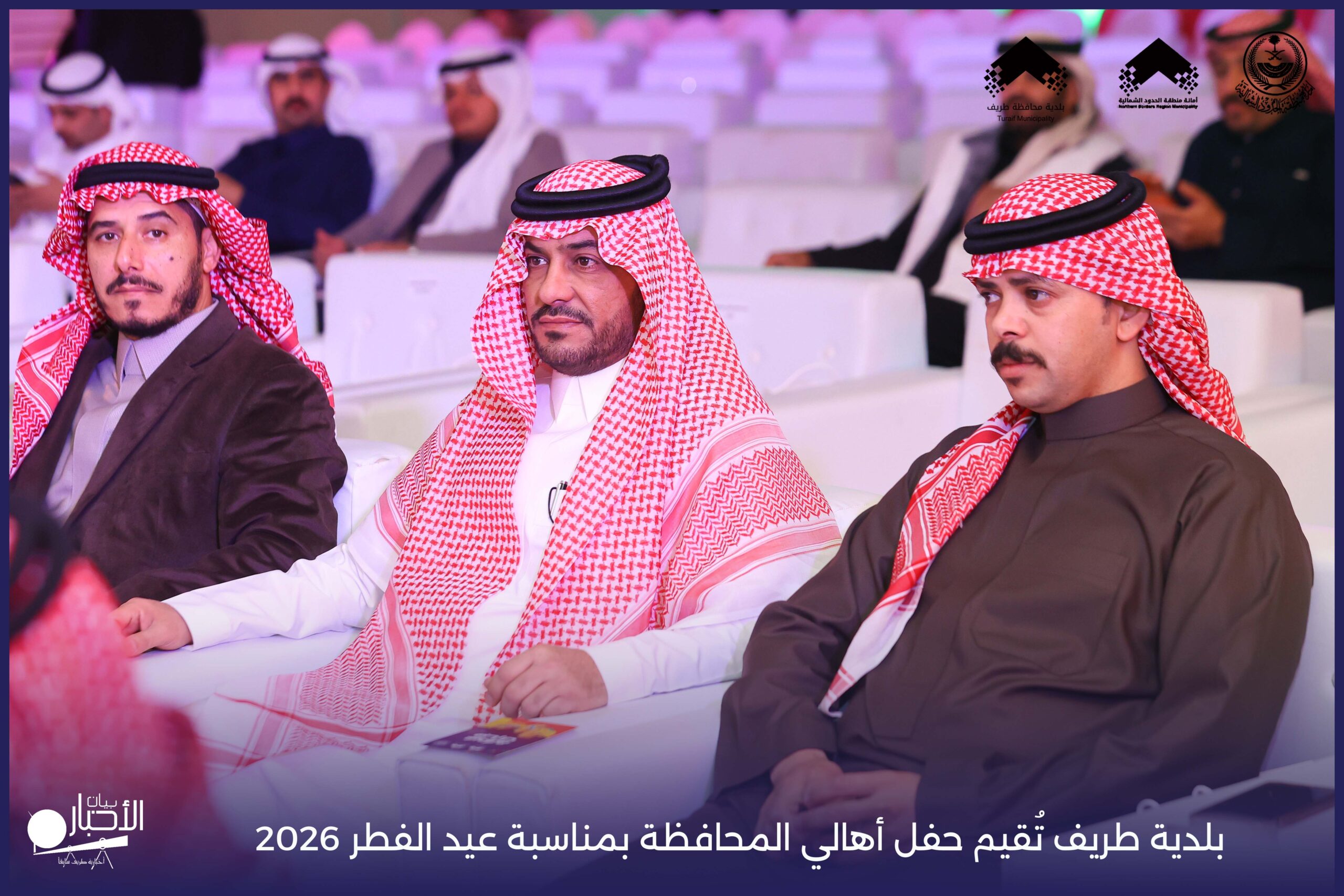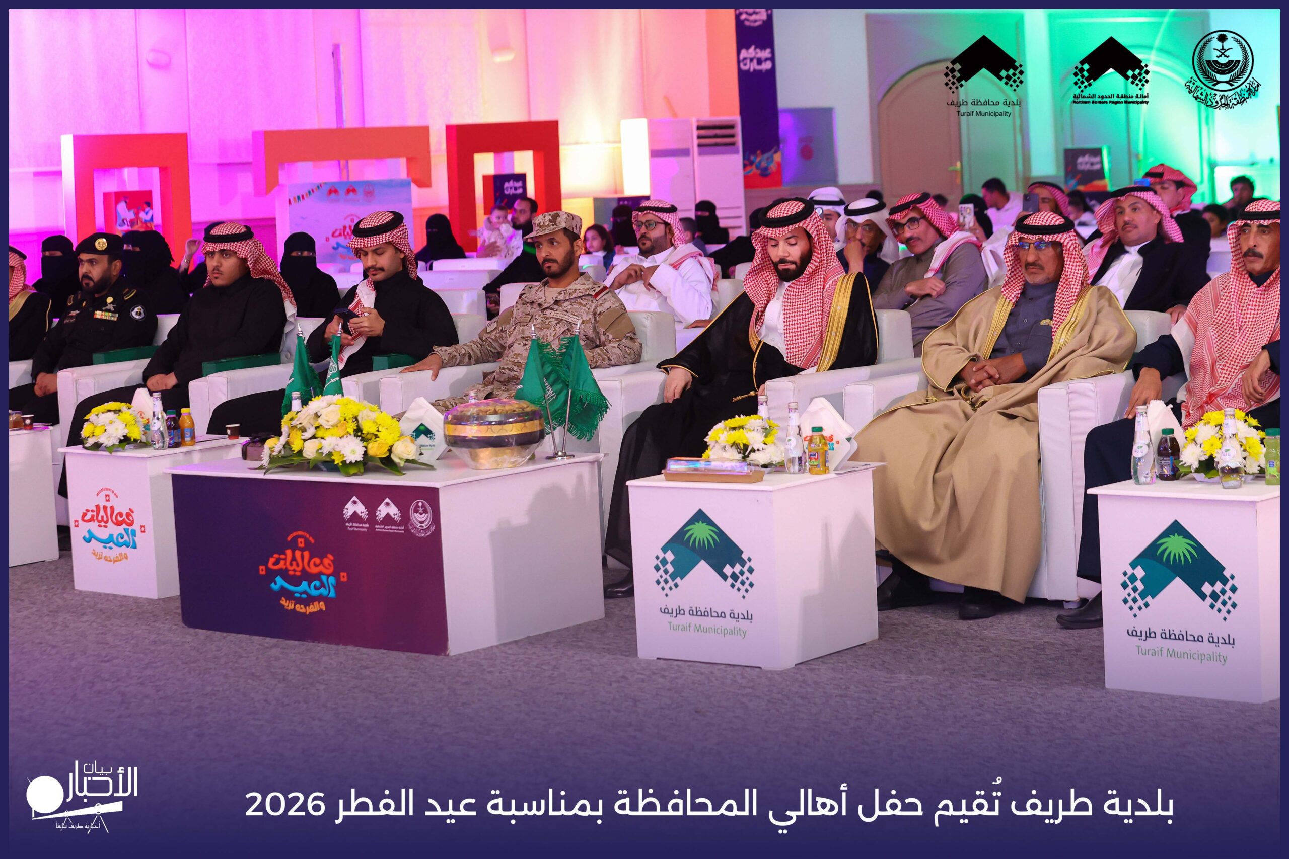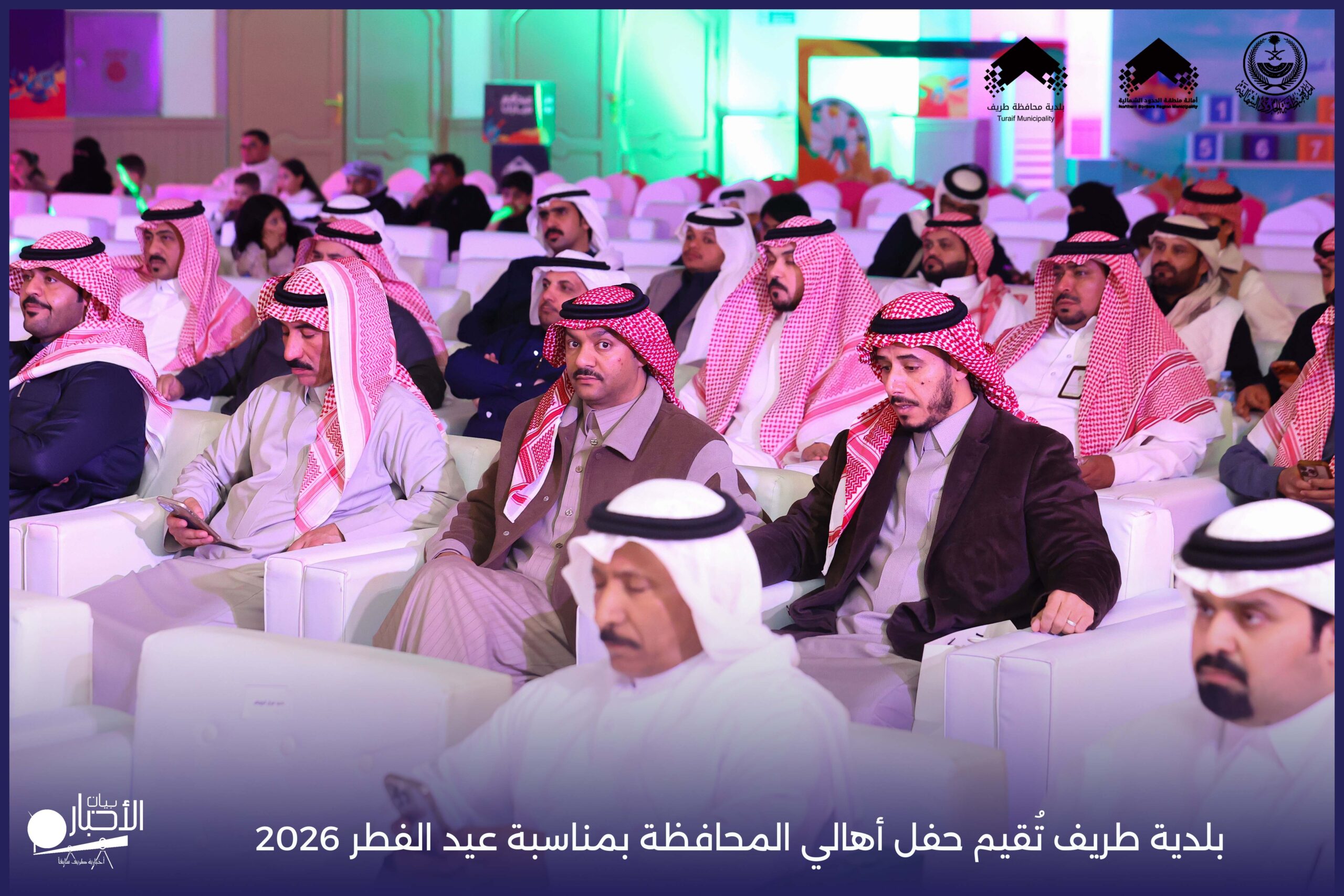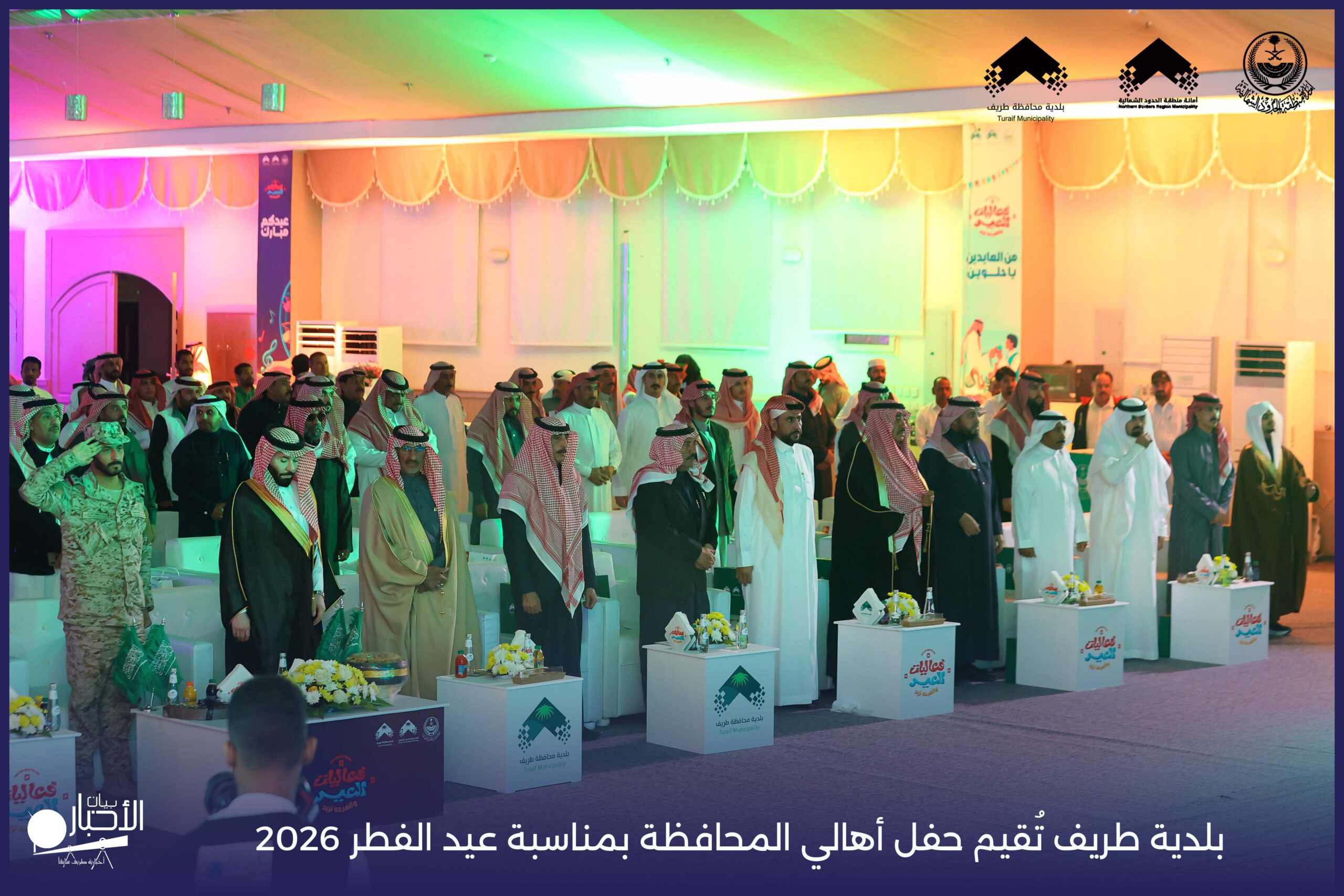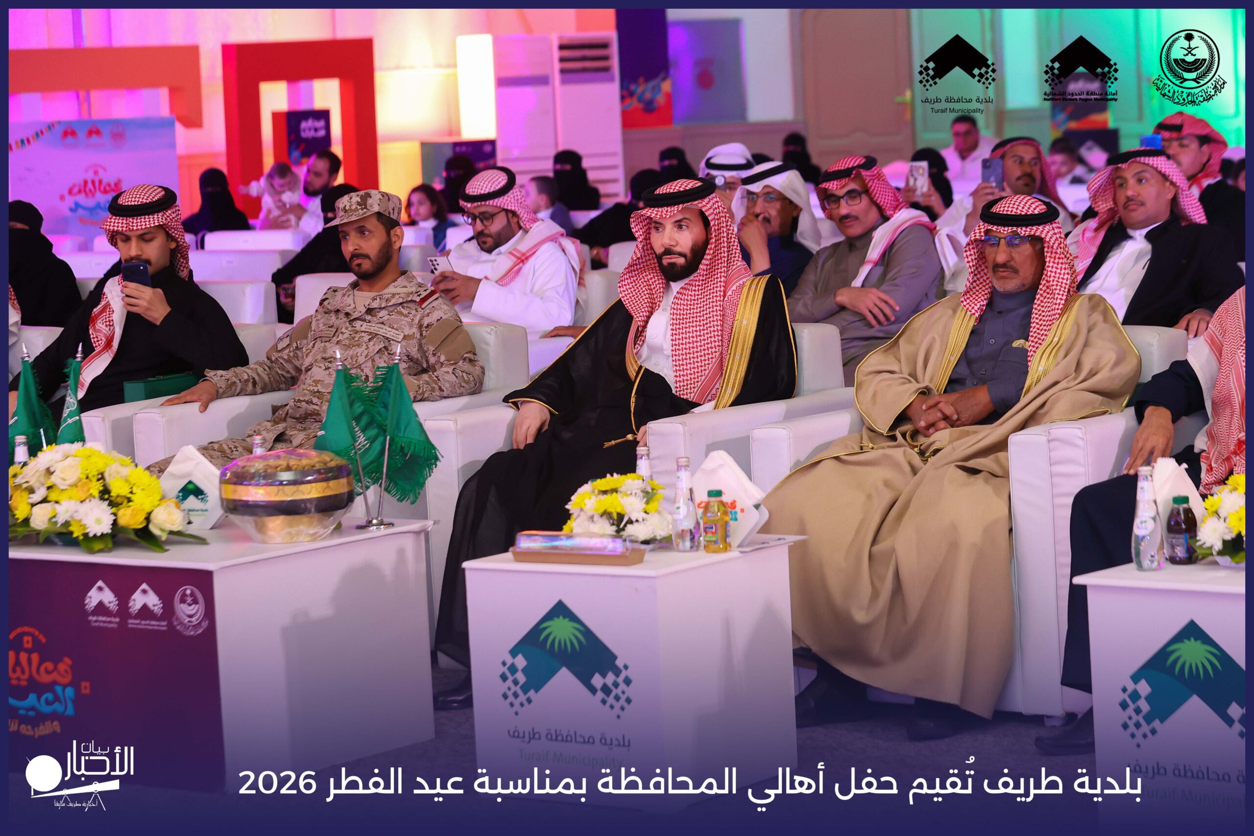 أقامت بلدية محافظة طريف حفل أهالي المحافظة بمناسبة عيد الفطر المبارك لعام 2026م، وذلك في أول أيام العيد بعد صلاة المغرب مباشرةً، في صالة الأهالي للاحتفالات، وسط حضورٍ مميز من أهالي المحافظة.