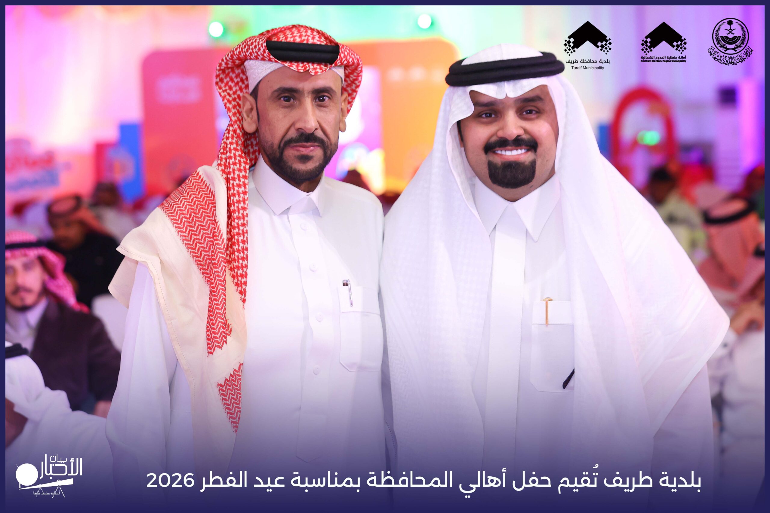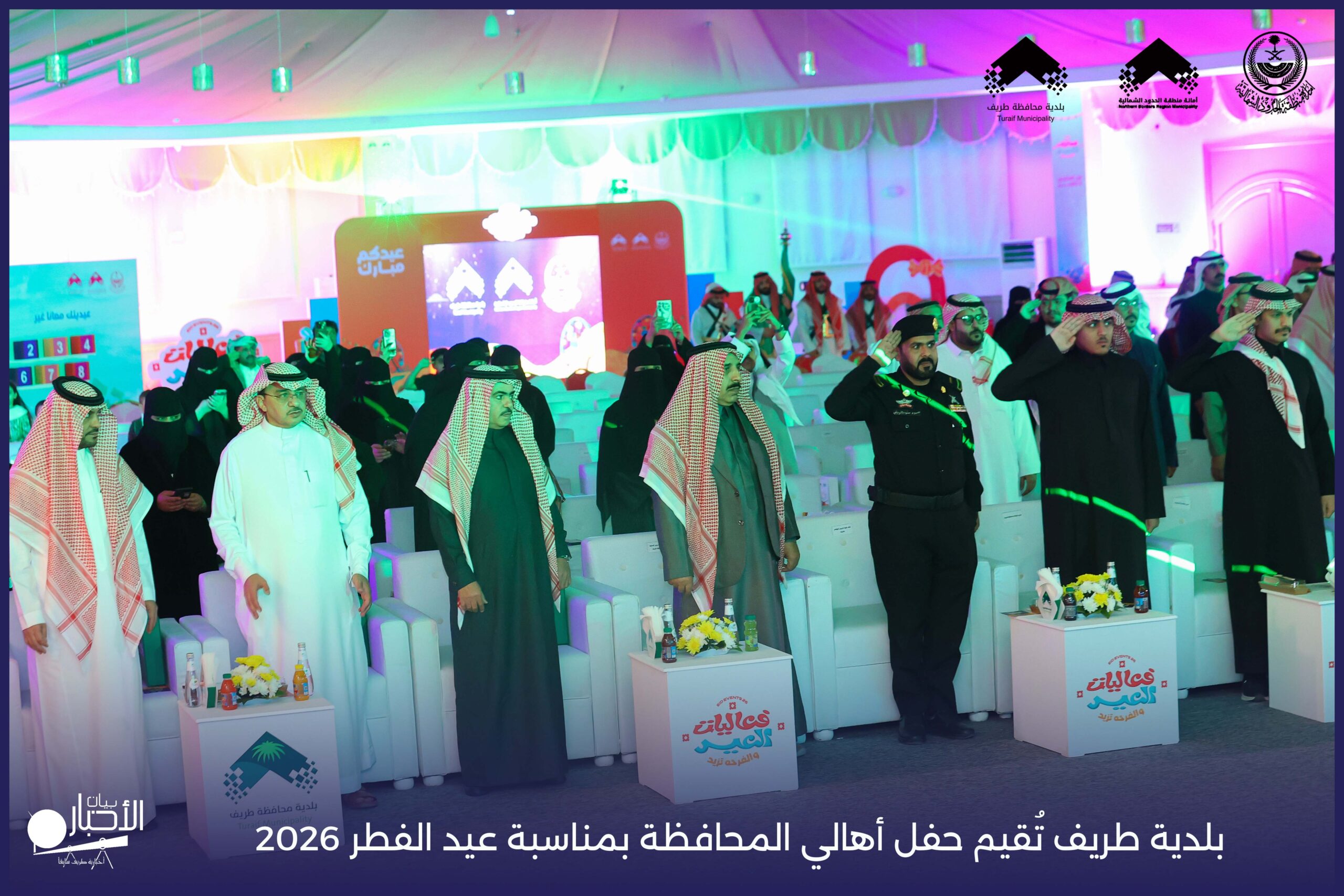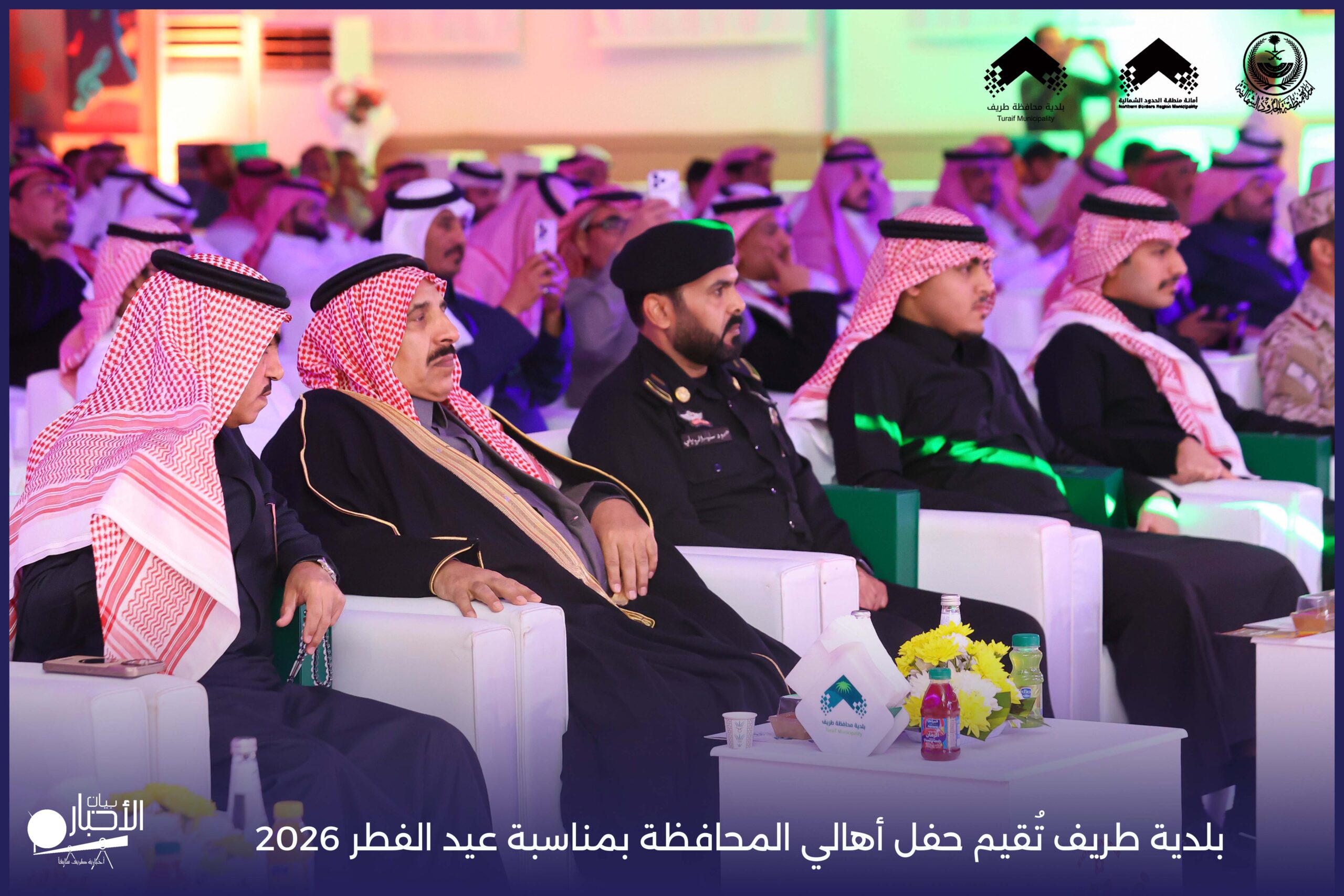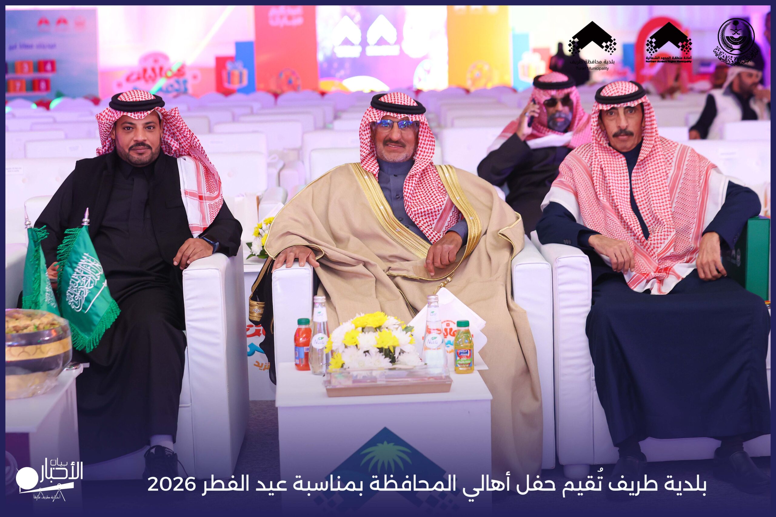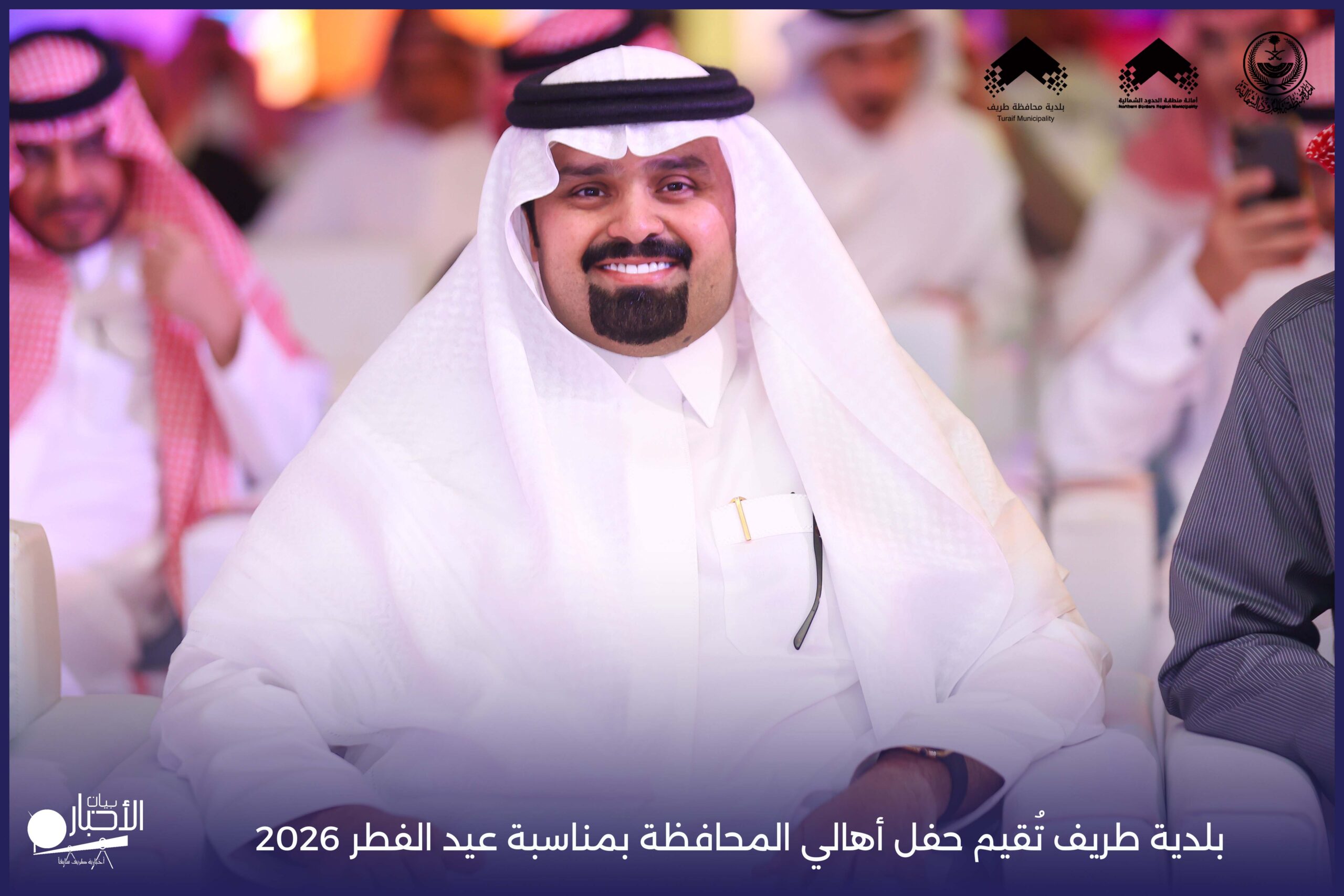 أقامت بلدية محافظة طريف حفل أهالي المحافظة بمناسبة عيد الفطر المبارك لعام 2026م، وذلك في أول أيام العيد بعد صلاة المغرب مباشرةً، في صالة الأهالي للاحتفالات، وسط حضورٍ مميز من أهالي المحافظة.