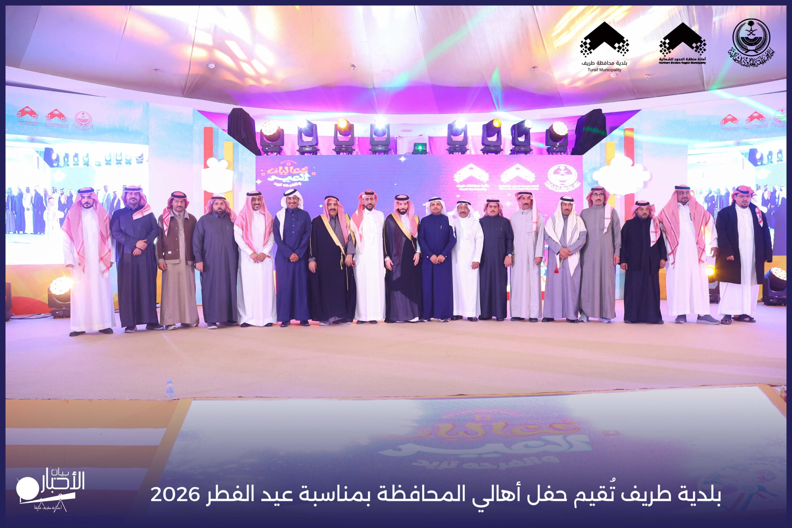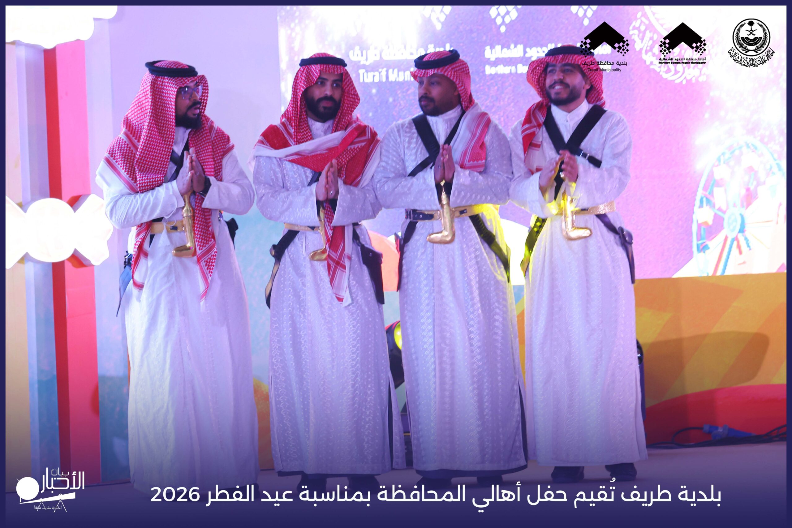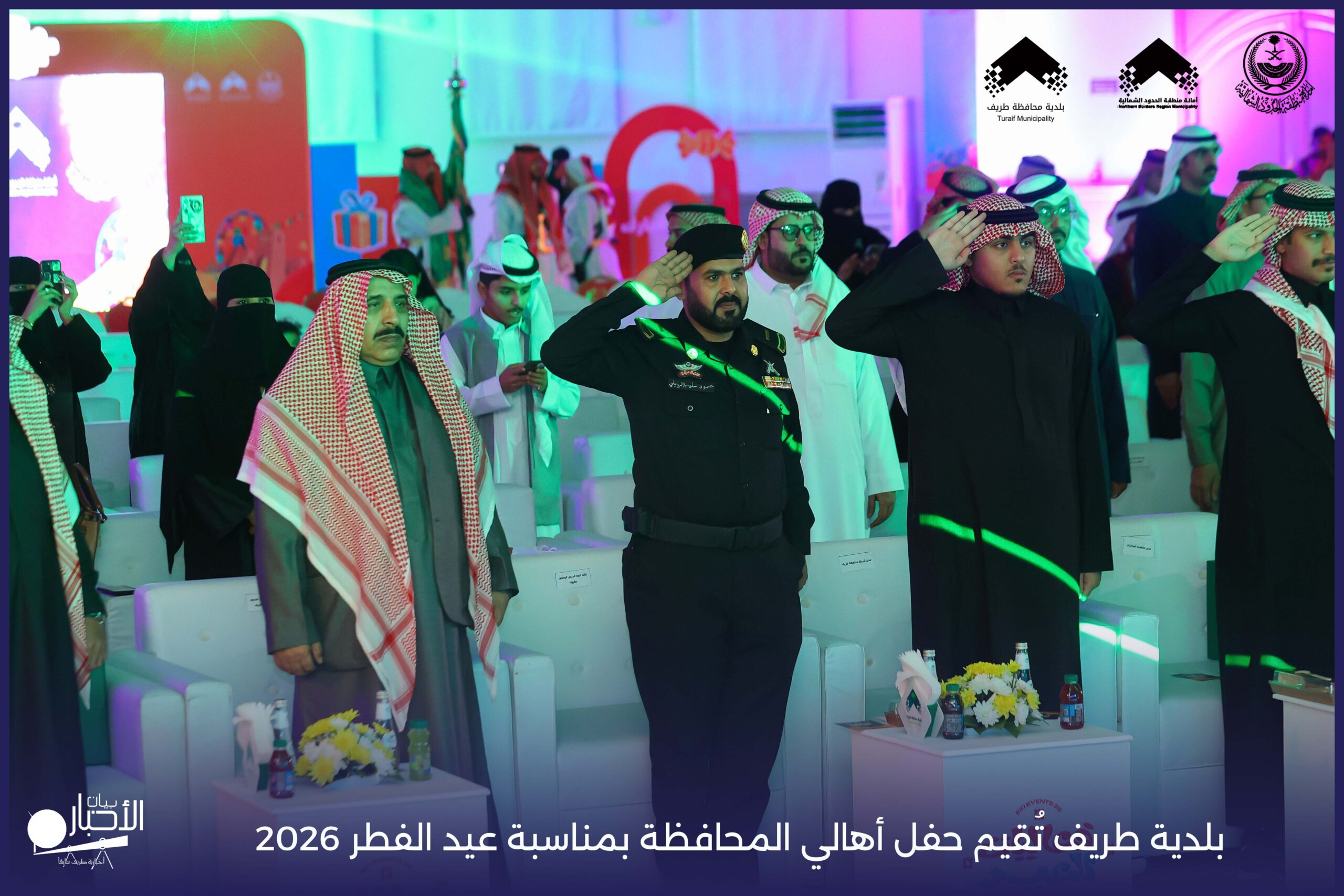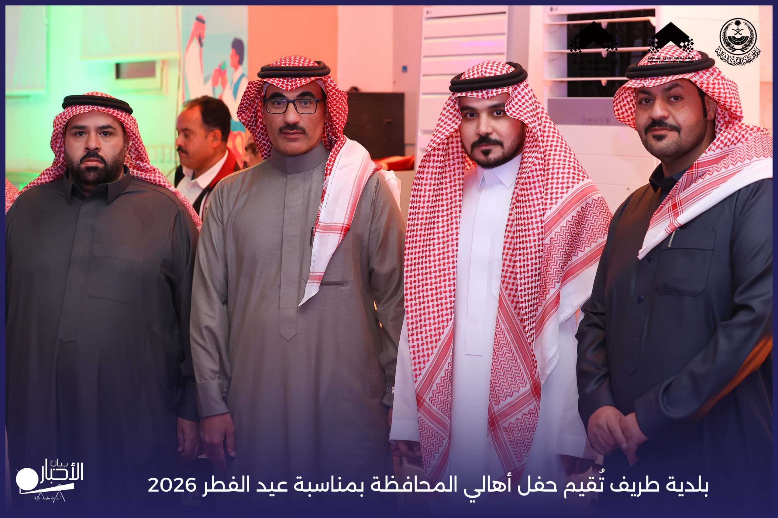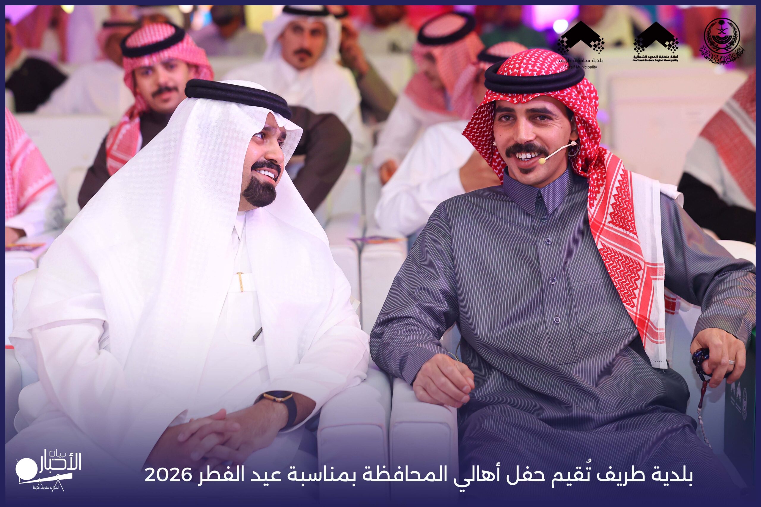 أقامت بلدية محافظة طريف حفل أهالي المحافظة بمناسبة عيد الفطر المبارك لعام 2026م، وذلك في أول أيام العيد بعد صلاة المغرب مباشرةً، في صالة الأهالي للاحتفالات، وسط حضورٍ مميز من أهالي المحافظة.
