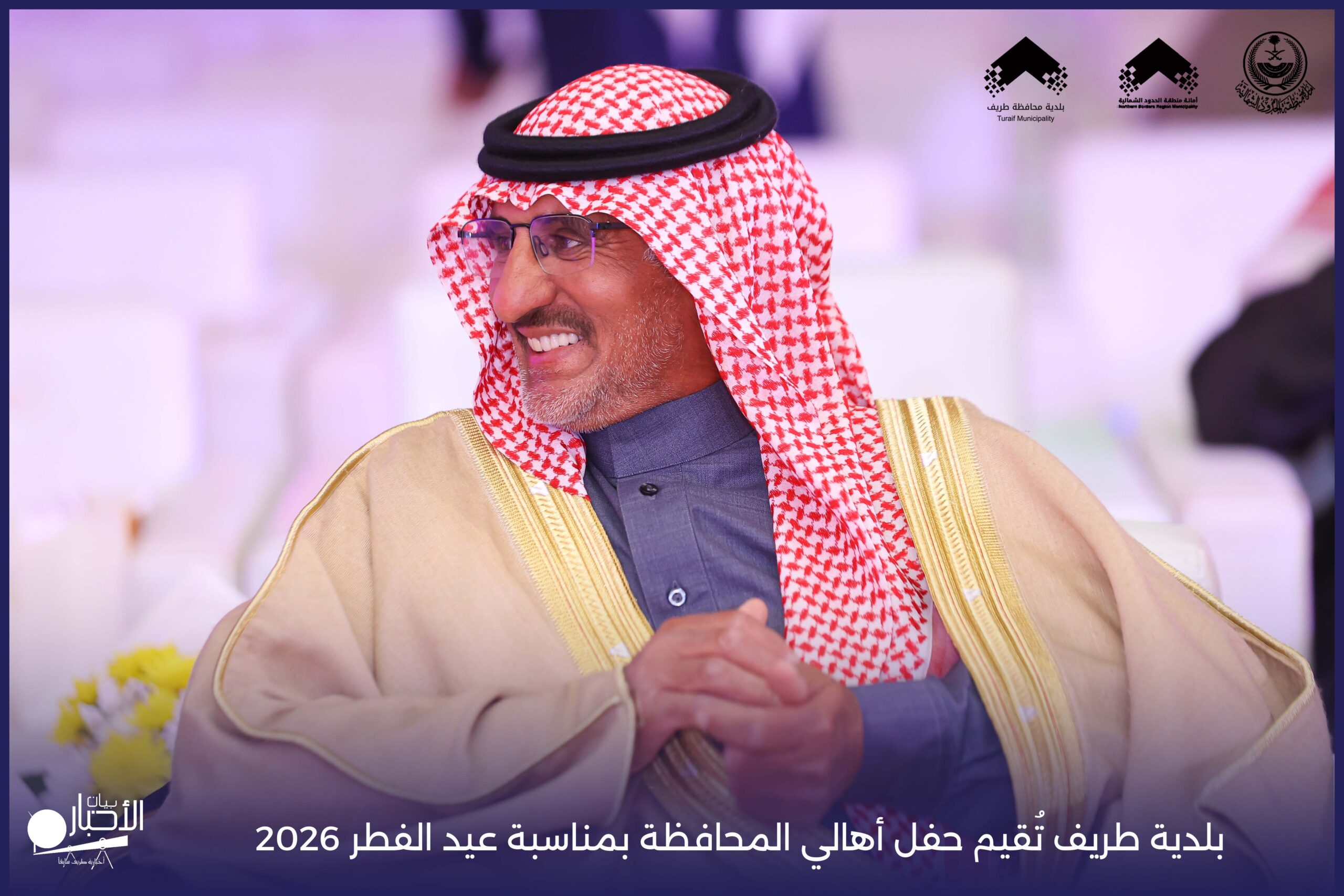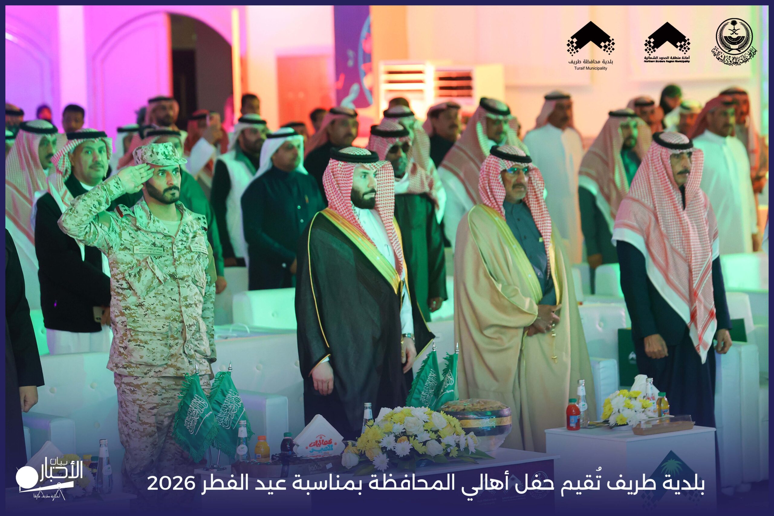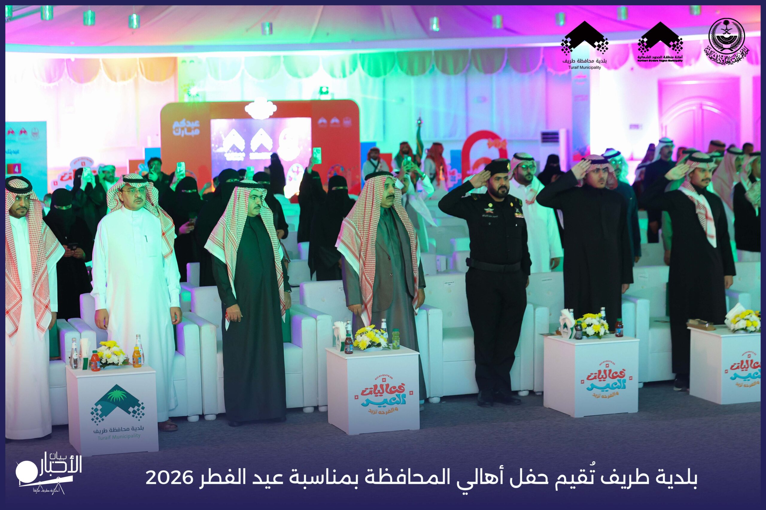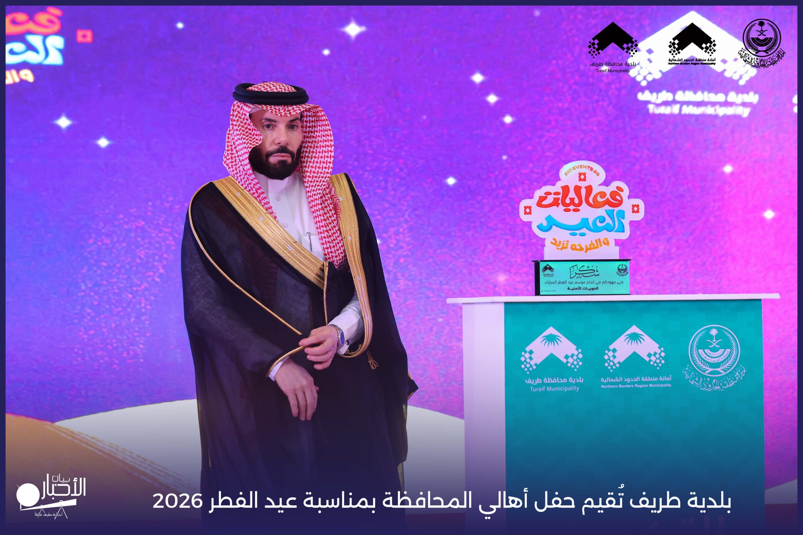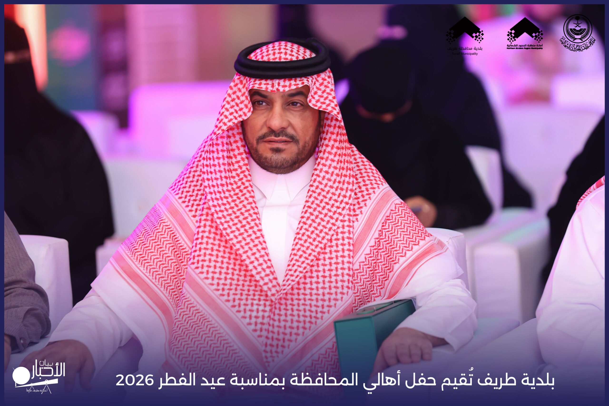أقامت بلدية محافظة طريف حفل أهالي المحافظة بمناسبة عيد الفطر المبارك لعام 2026م، وذلك في أول أيام العيد بعد صلاة المغرب مباشرةً، في صالة الأهالي للاحتفالات، وسط حضورٍ مميز من أهالي المحافظة.