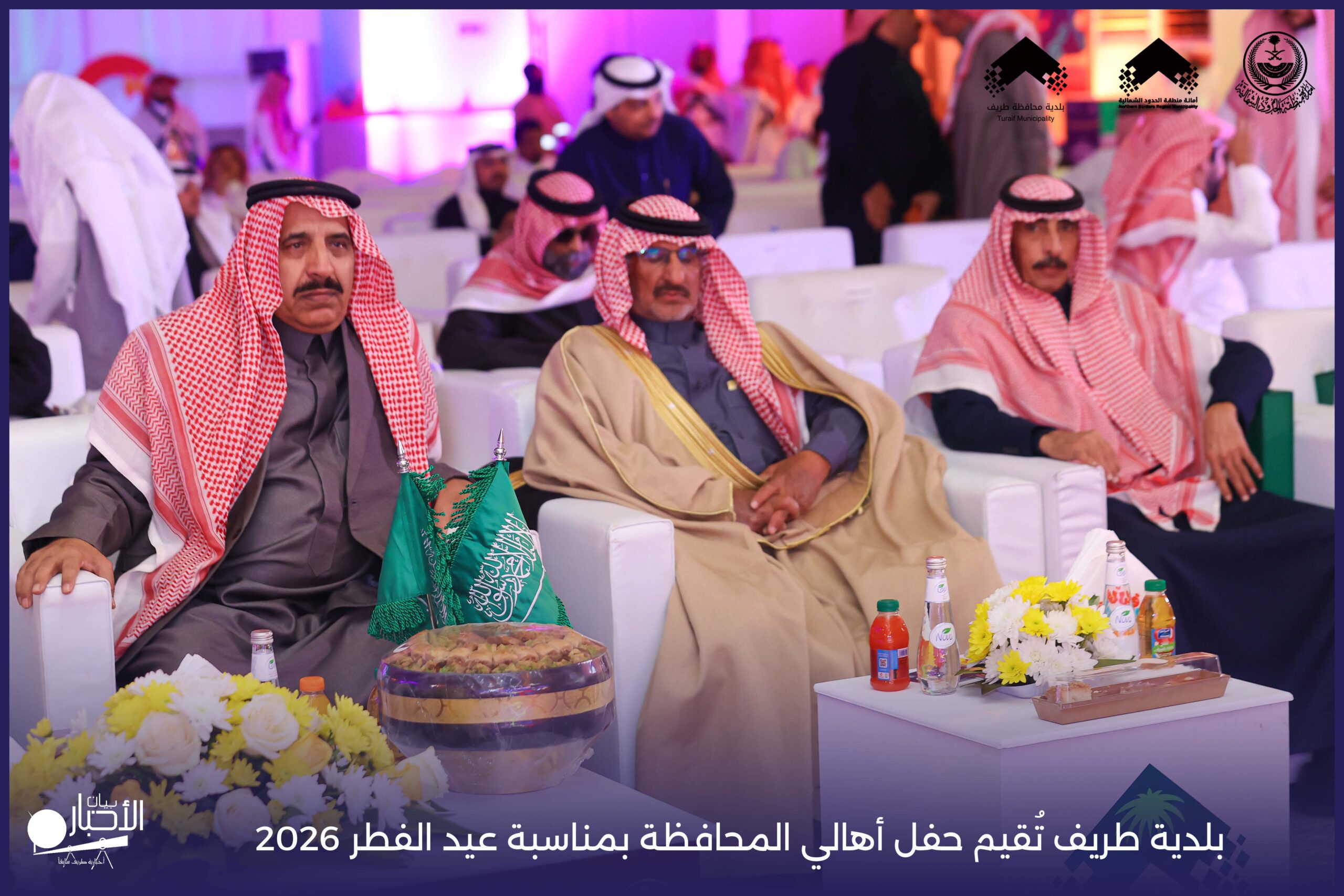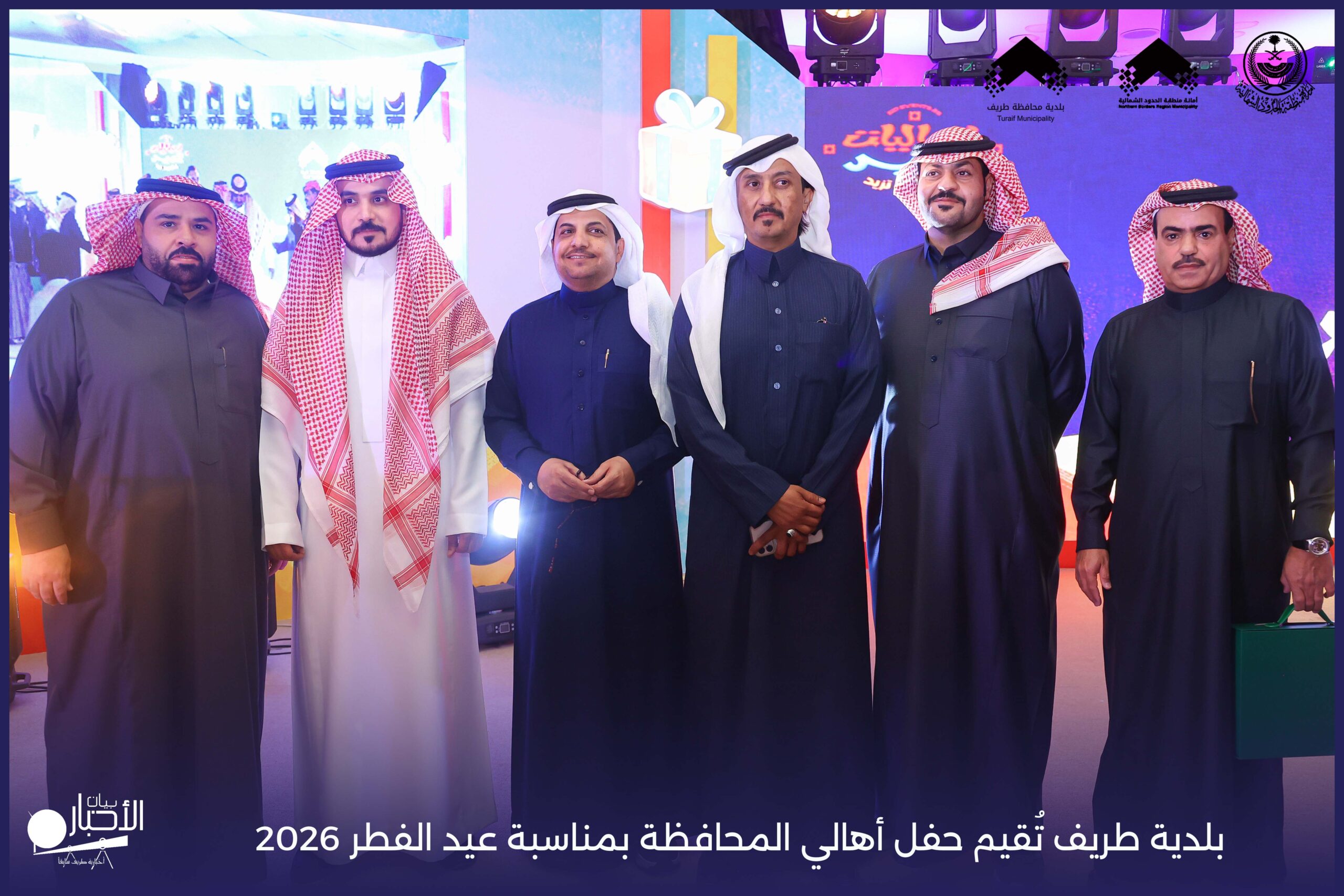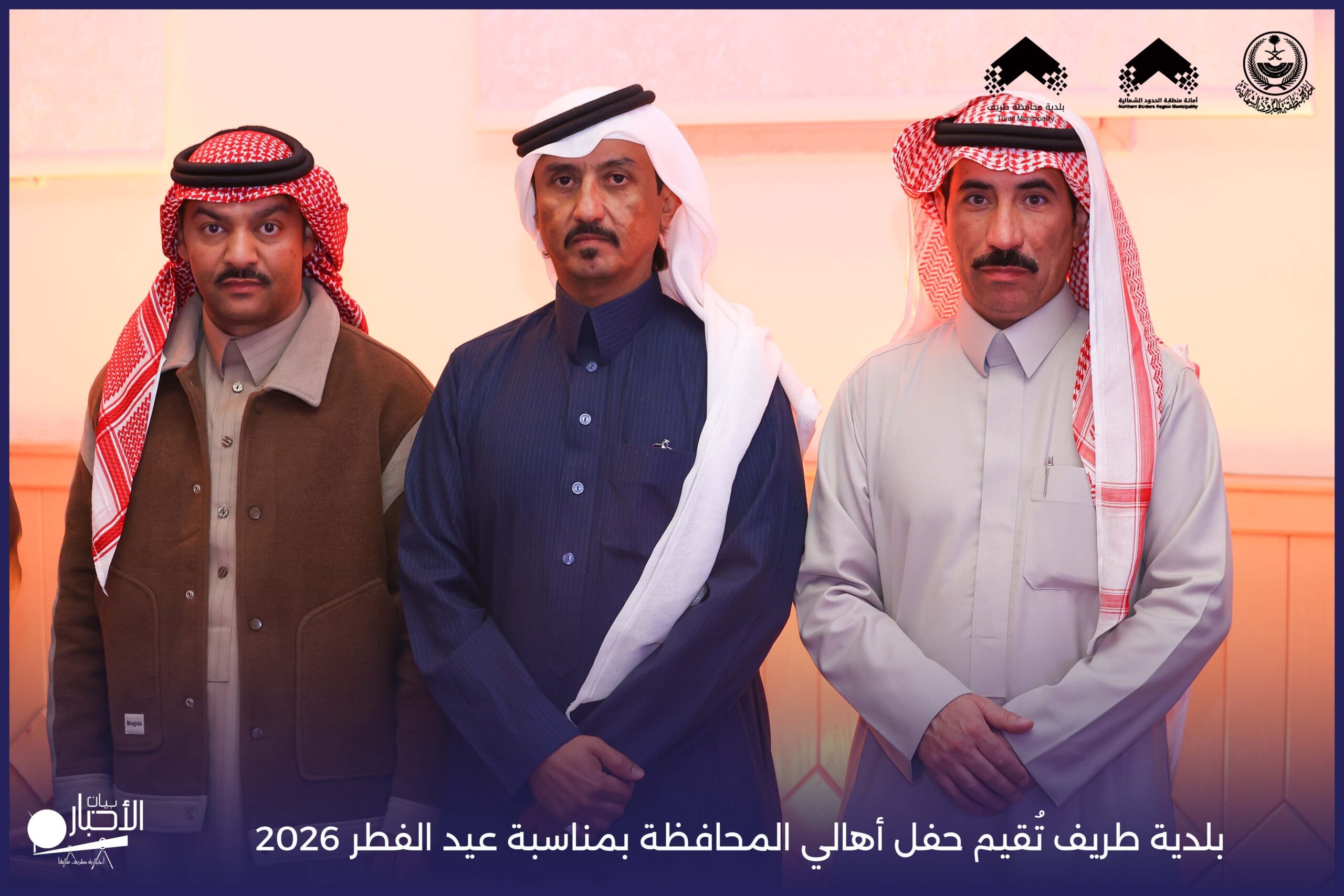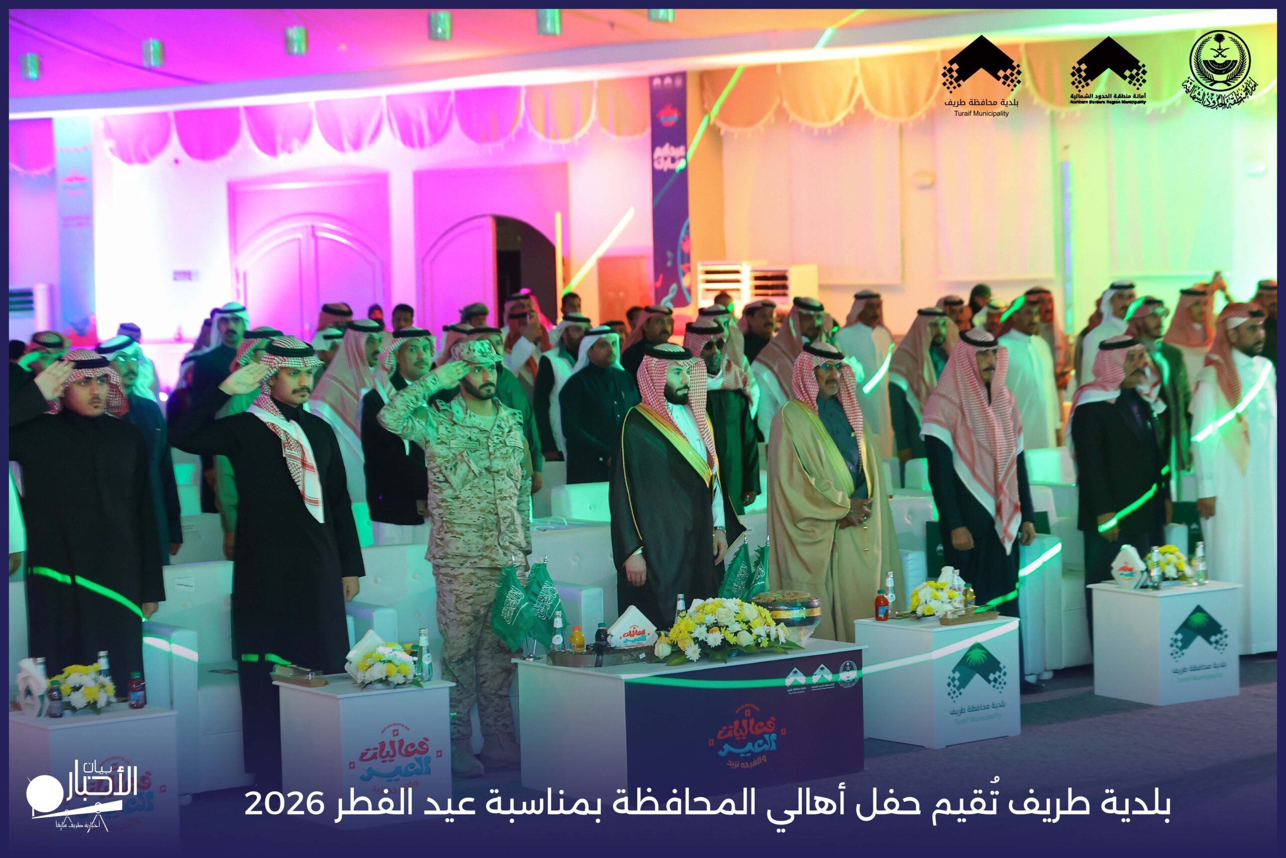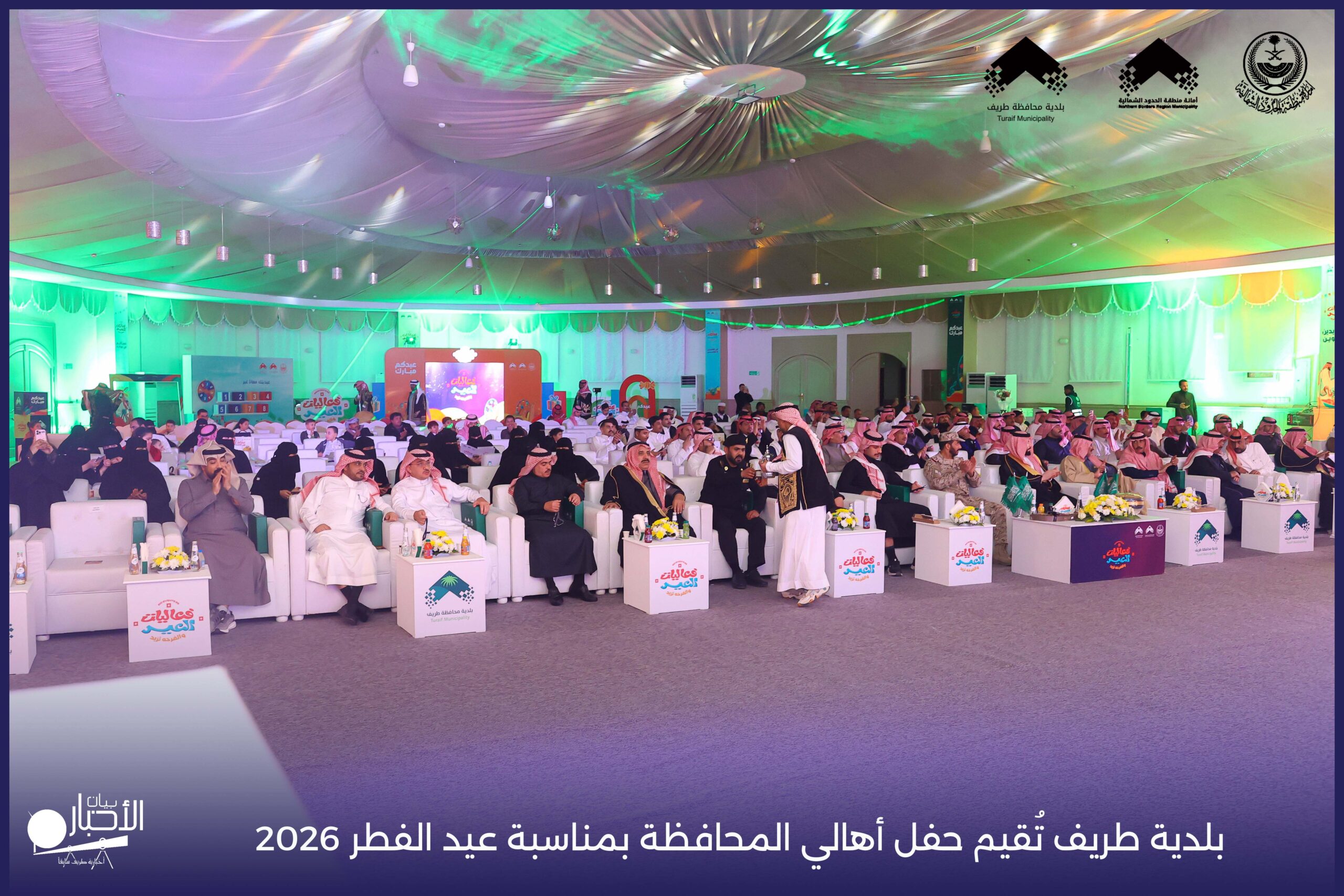 أقامت بلدية محافظة طريف حفل أهالي المحافظة بمناسبة عيد الفطر المبارك لعام 2026م، وذلك في أول أيام العيد بعد صلاة المغرب مباشرةً، في صالة الأهالي للاحتفالات، وسط حضورٍ مميز من أهالي المحافظة.
