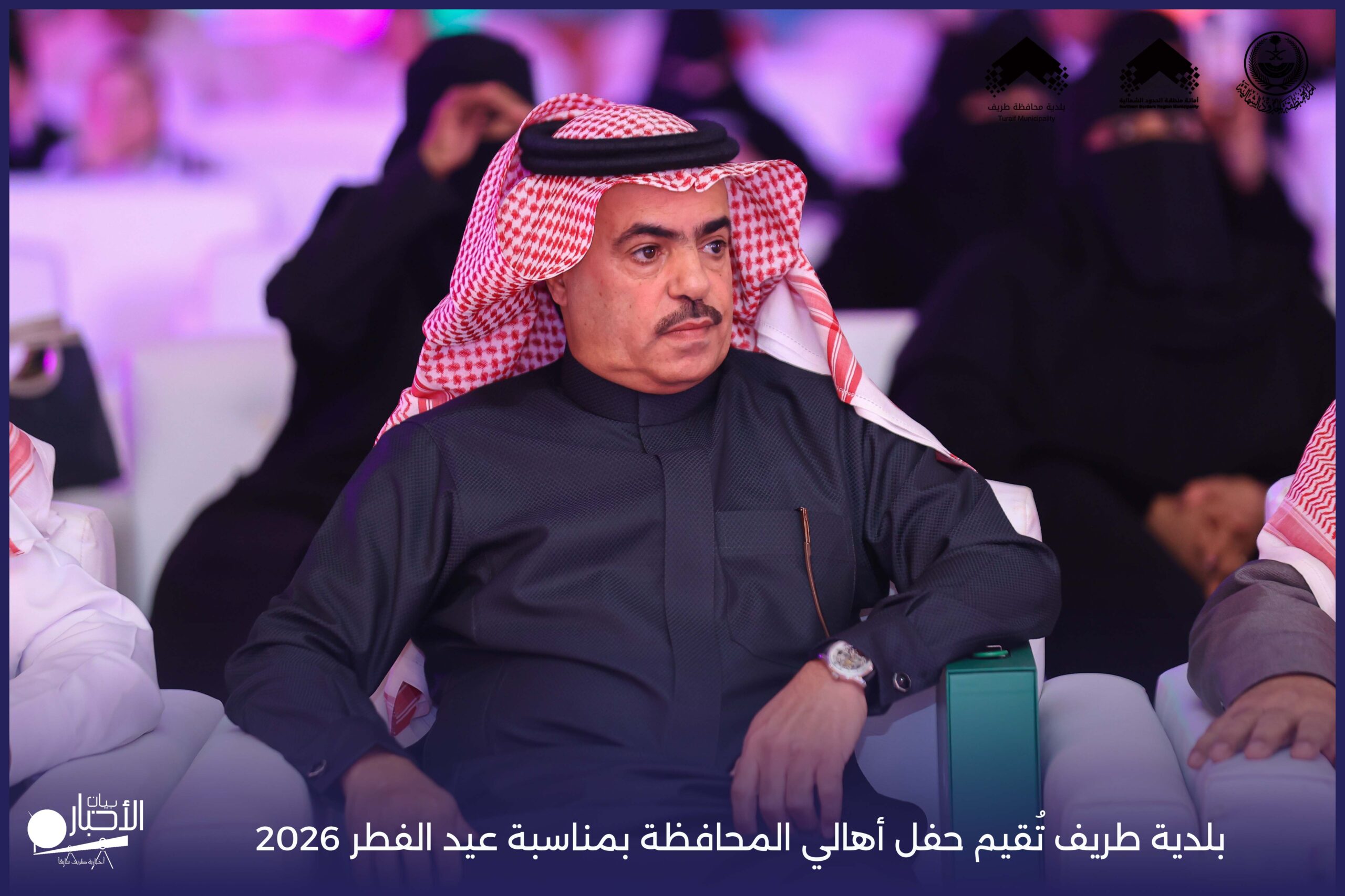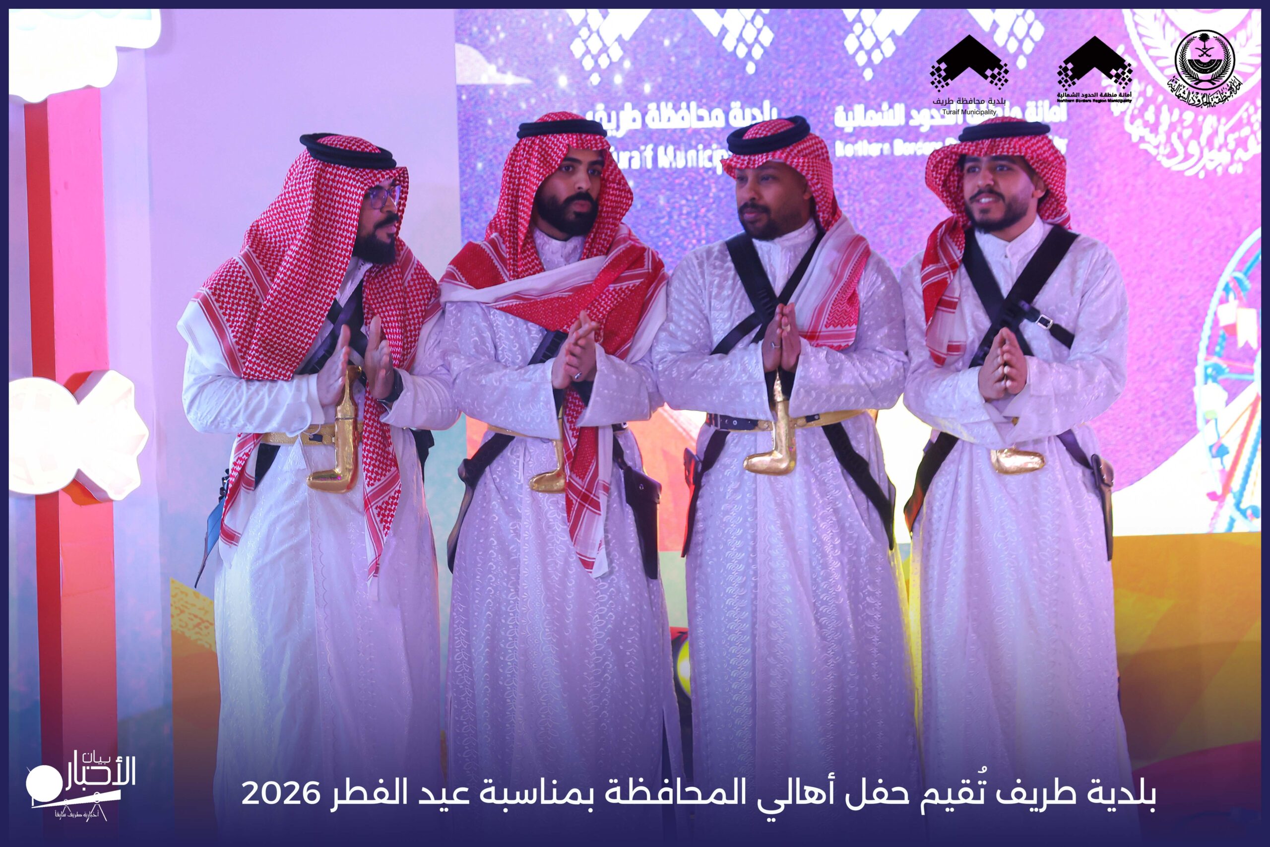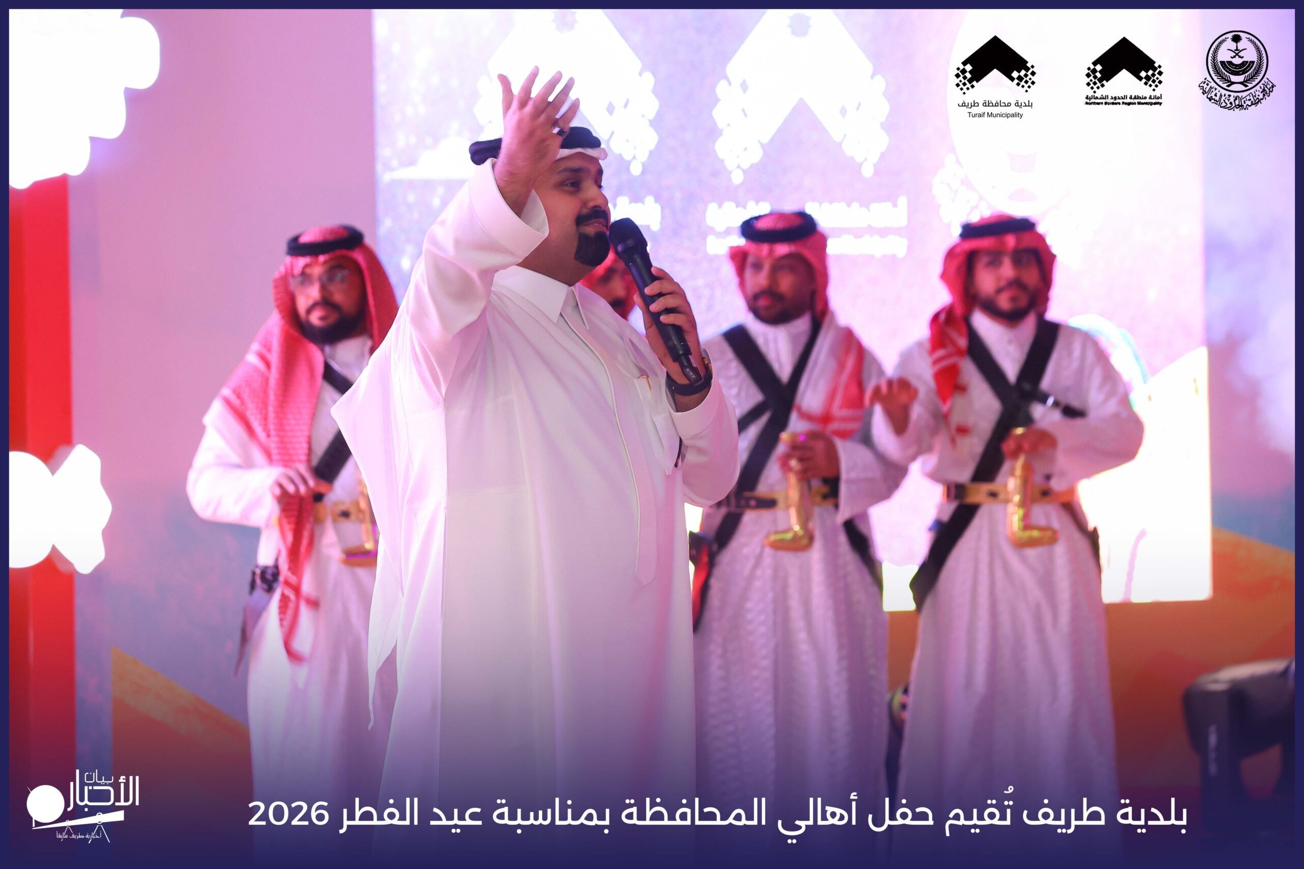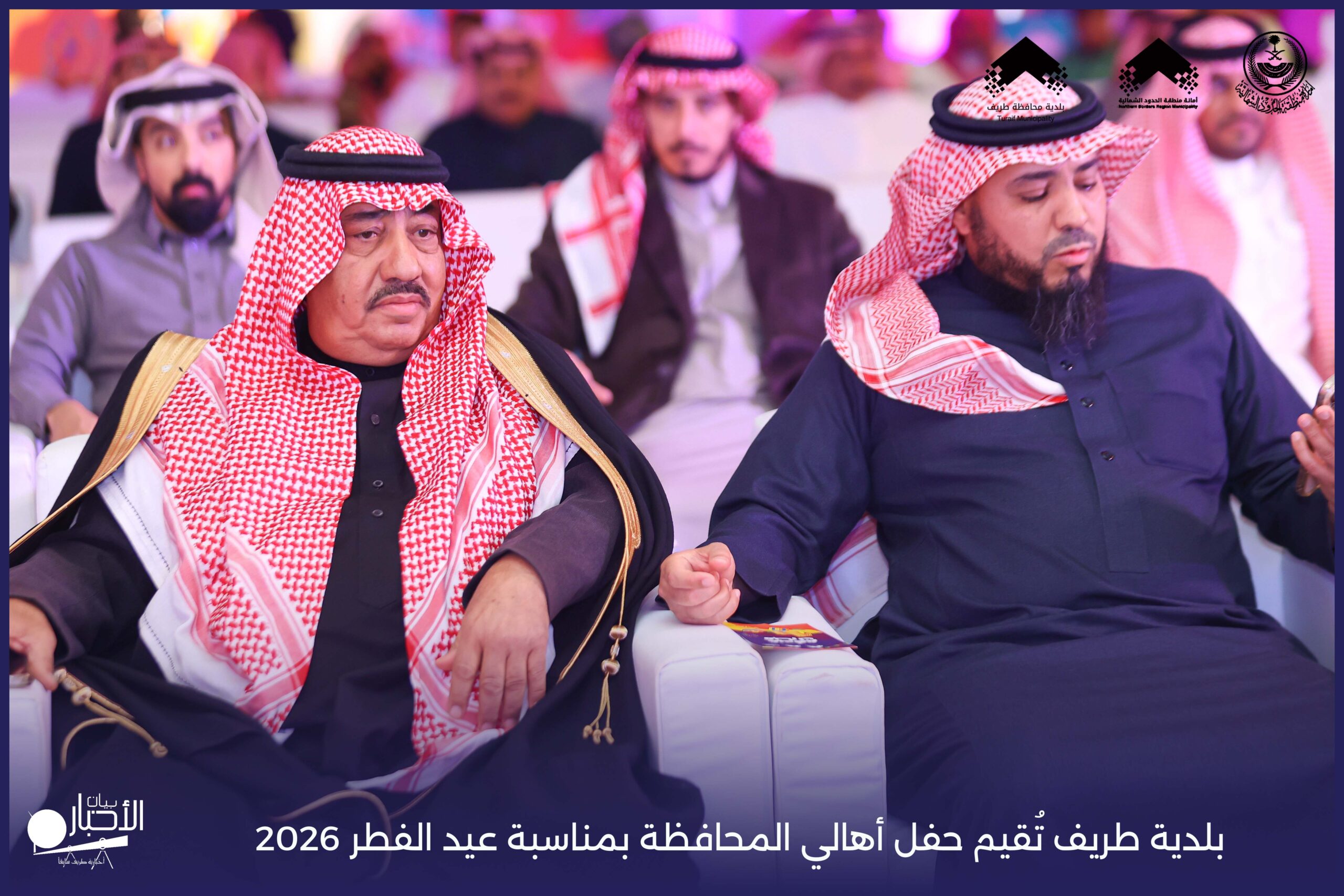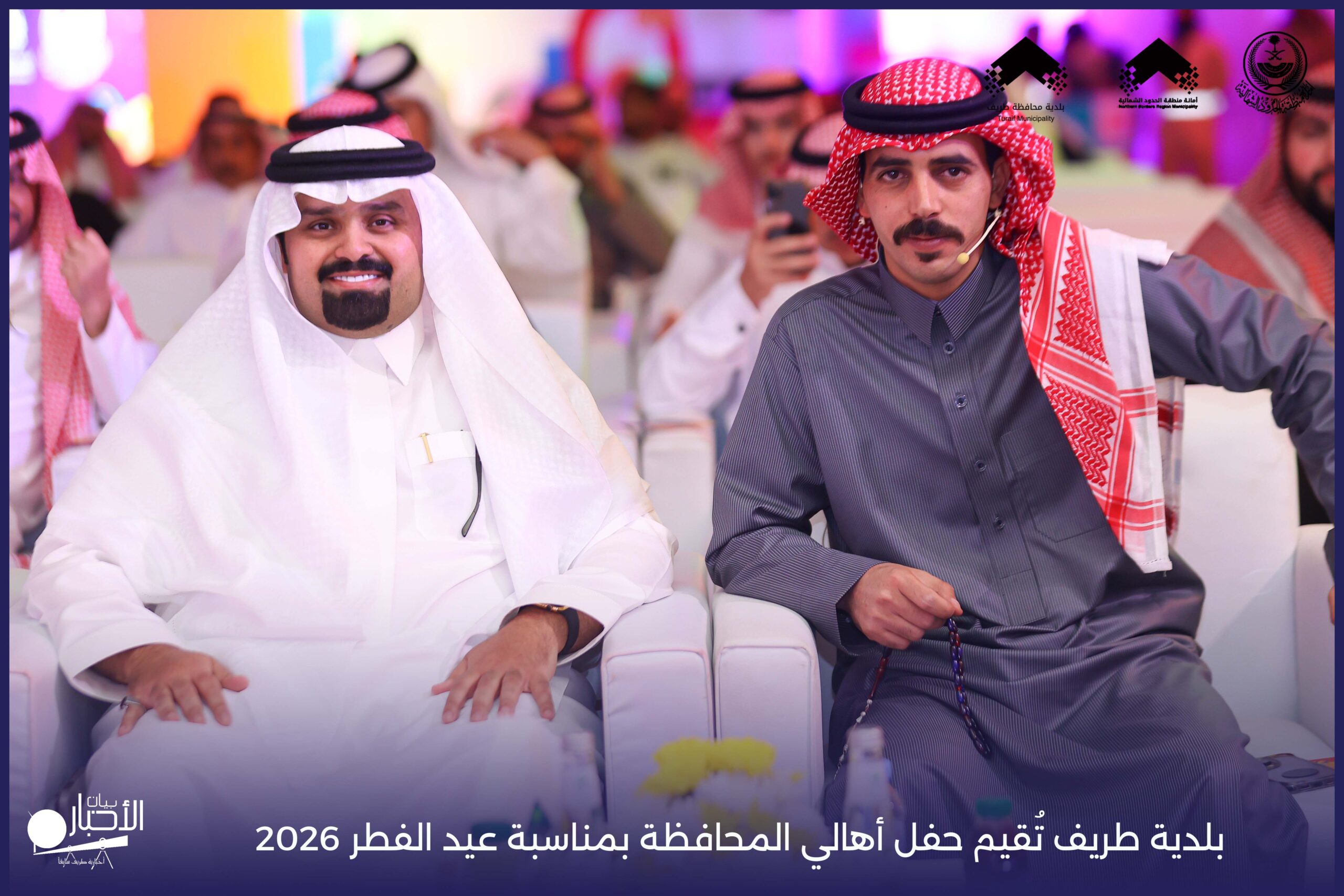 أقامت بلدية محافظة طريف حفل أهالي المحافظة بمناسبة عيد الفطر المبارك لعام 2026م، وذلك في أول أيام العيد بعد صلاة المغرب مباشرةً، في صالة الأهالي للاحتفالات، وسط حضورٍ مميز من أهالي المحافظة.
