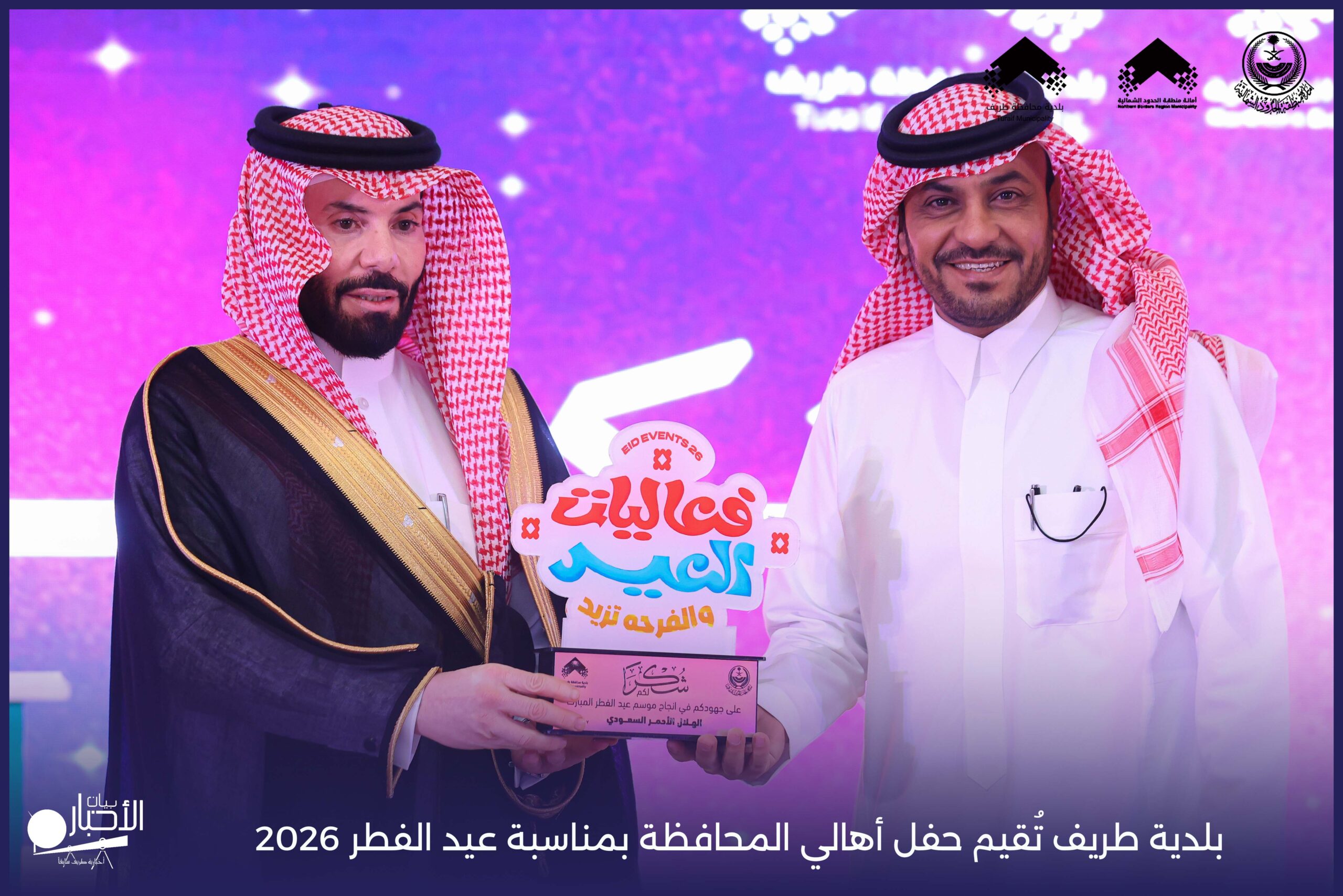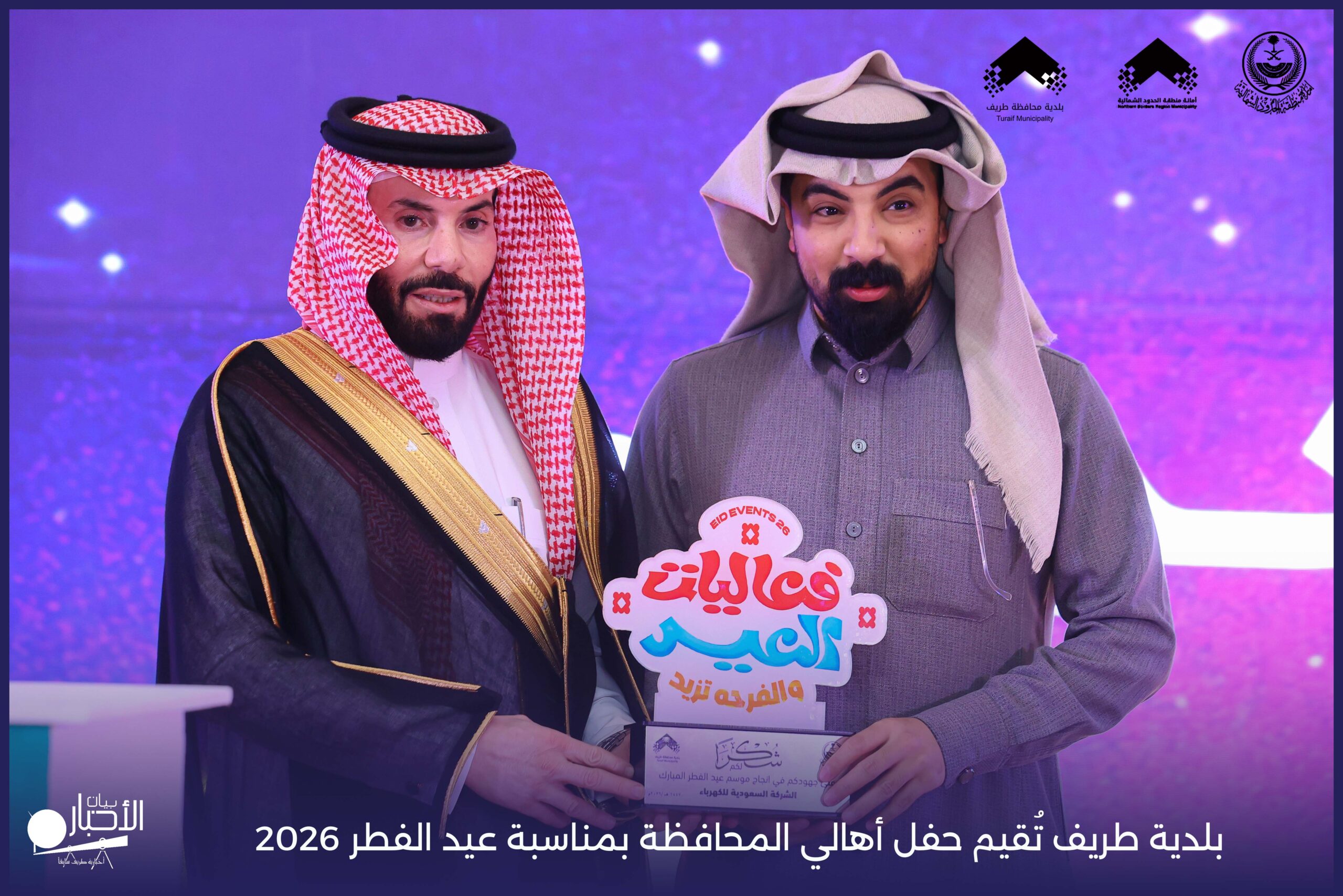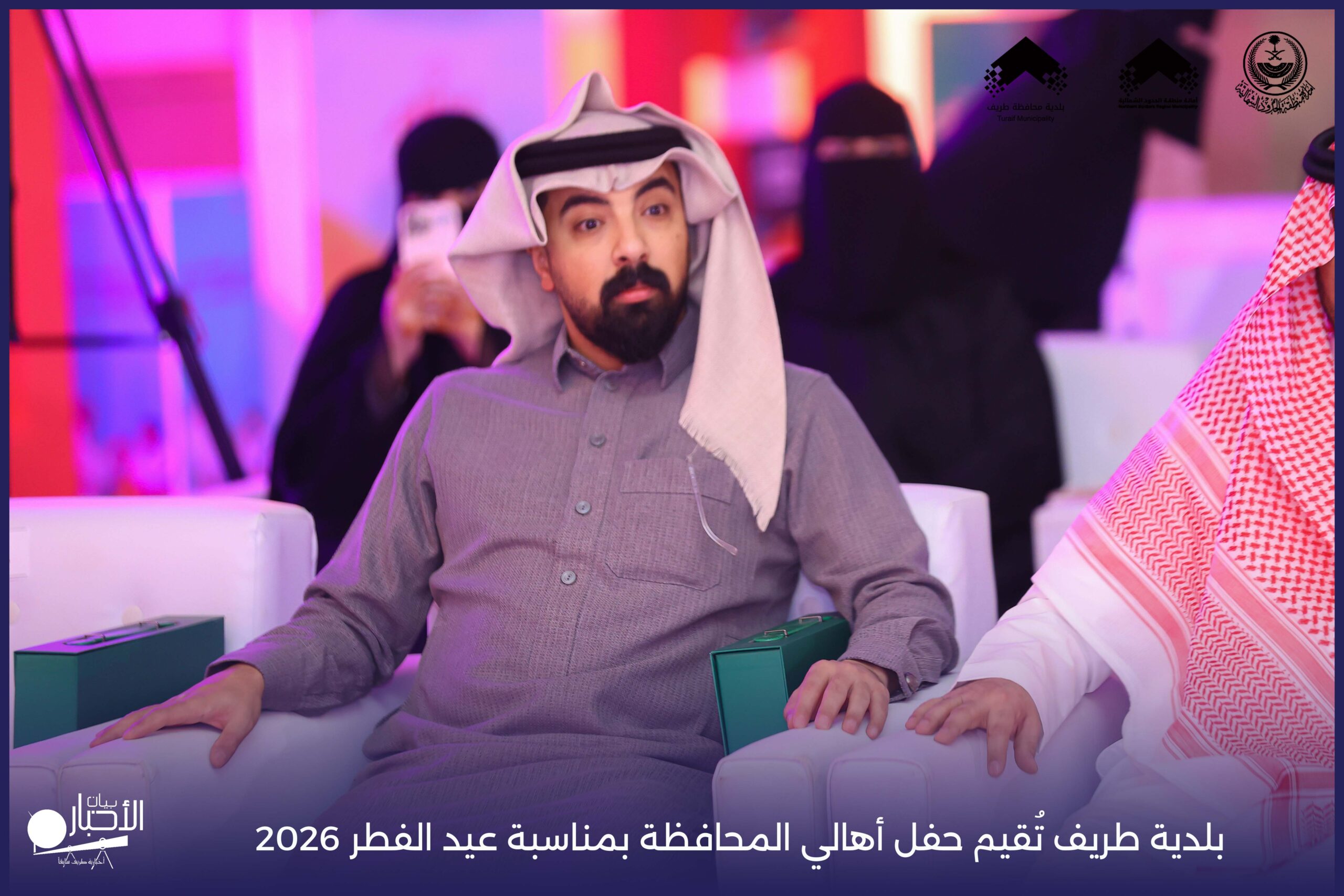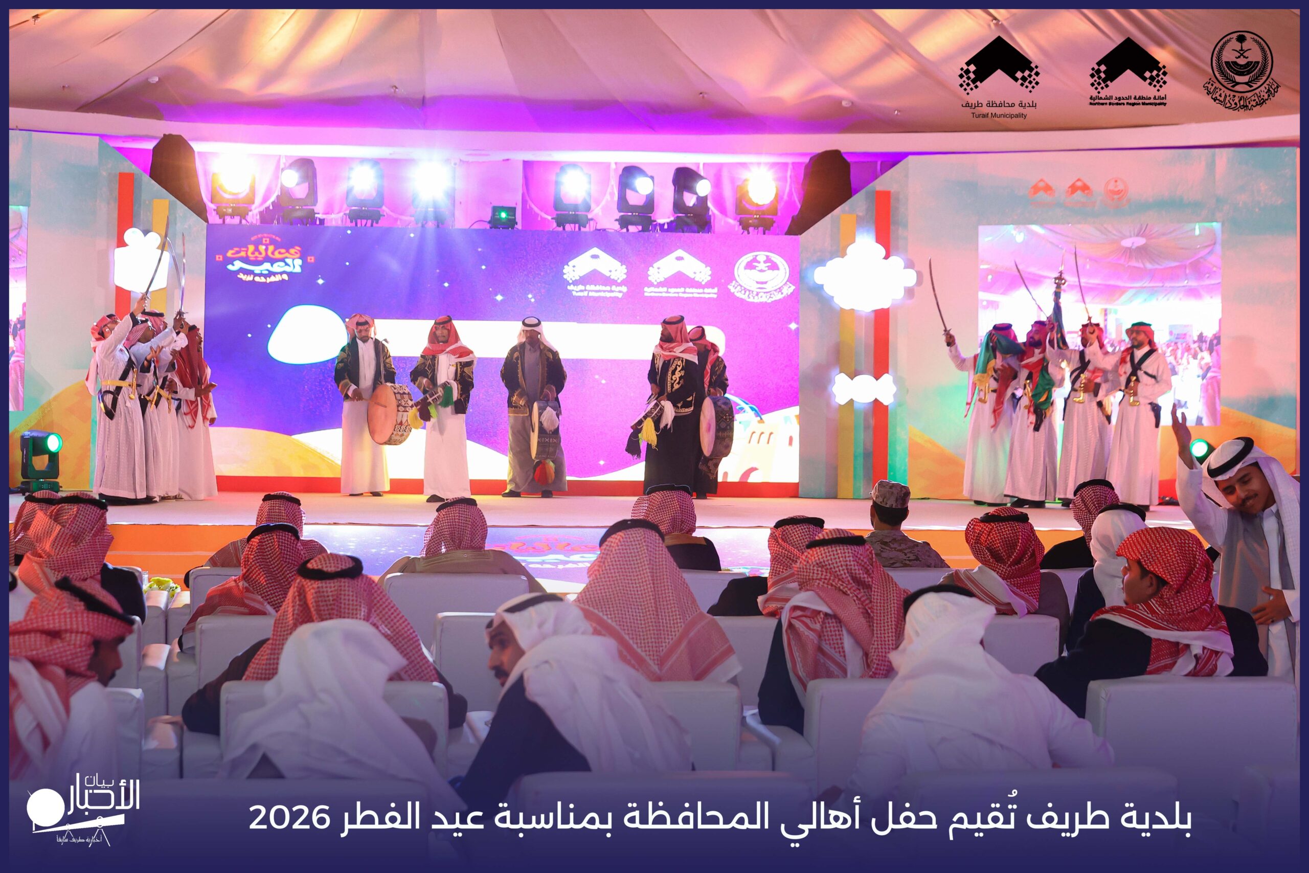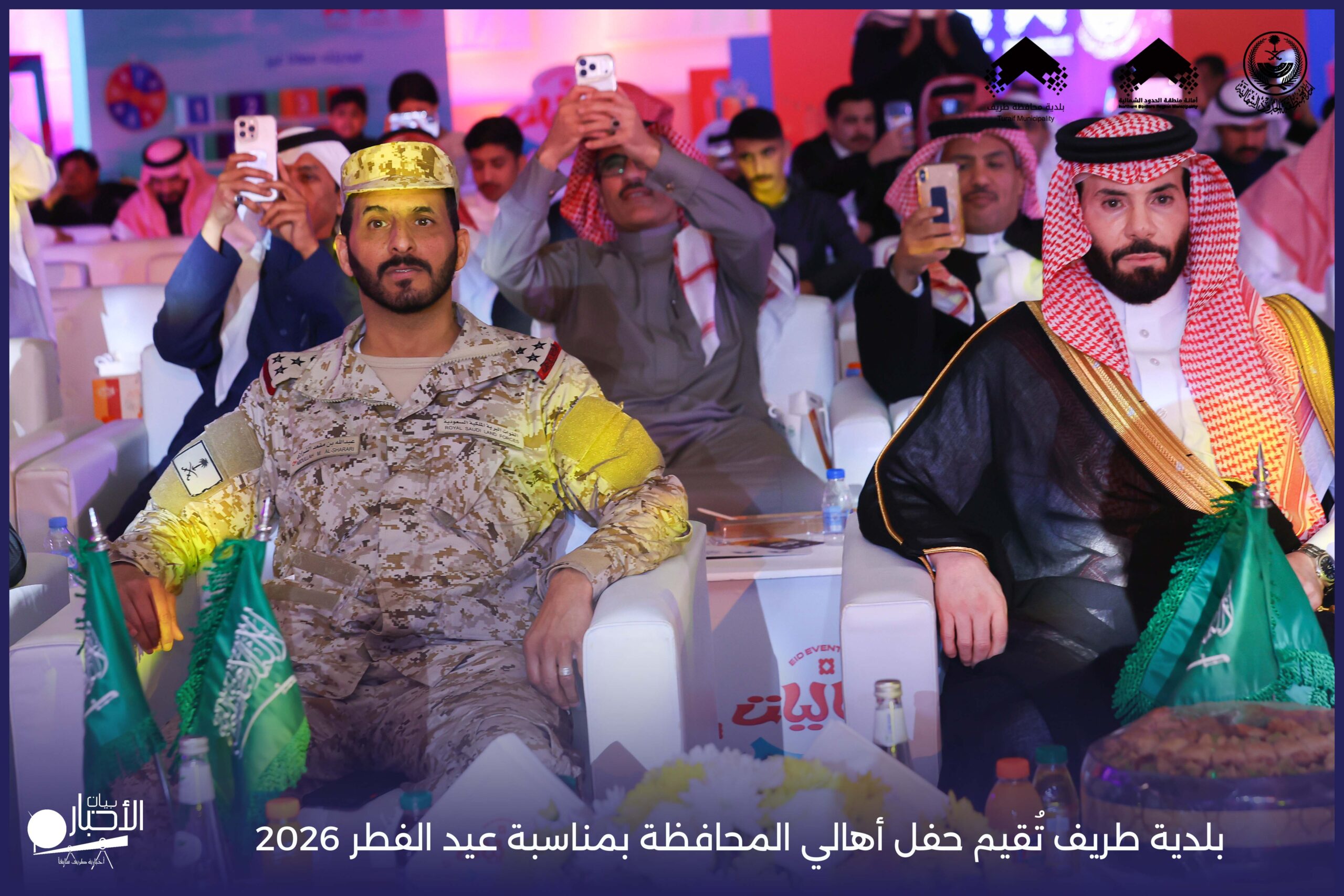 أقامت بلدية محافظة طريف حفل أهالي المحافظة بمناسبة عيد الفطر المبارك لعام 2026م، وذلك في أول أيام العيد بعد صلاة المغرب مباشرةً، في صالة الأهالي للاحتفالات، وسط حضورٍ مميز من أهالي المحافظة.