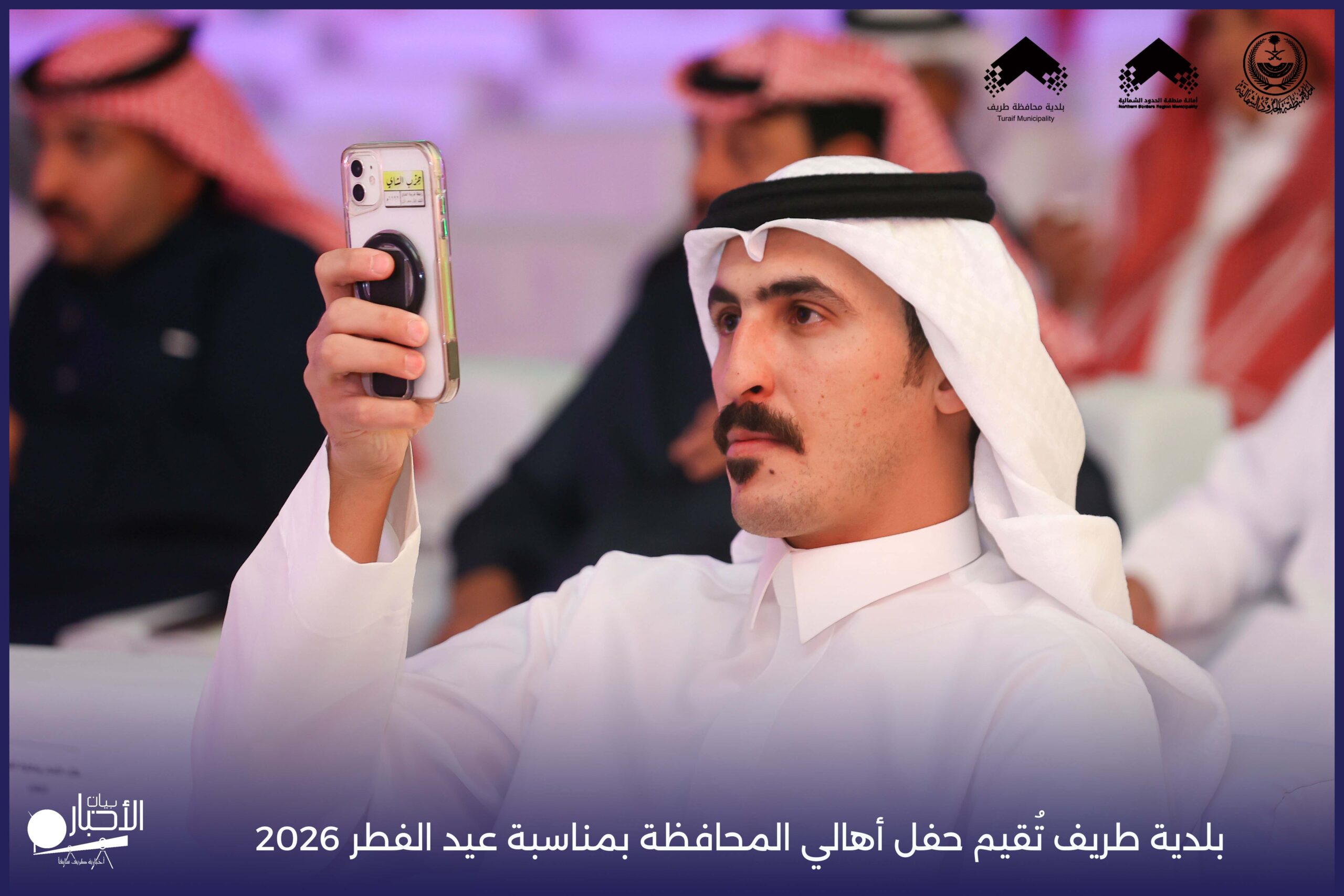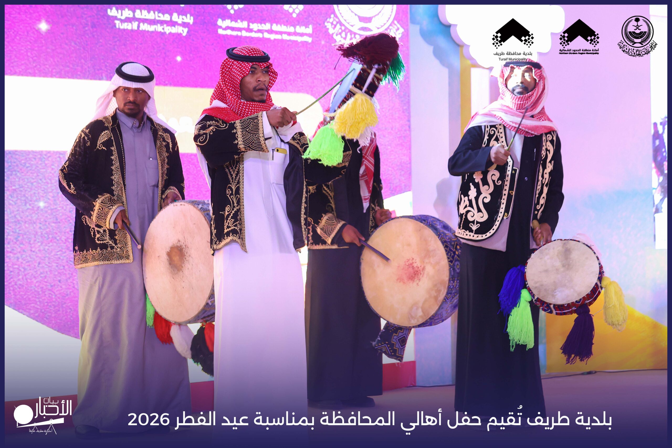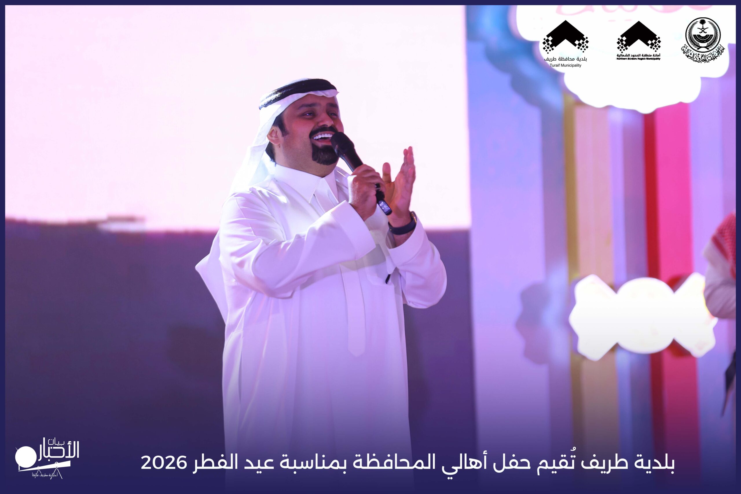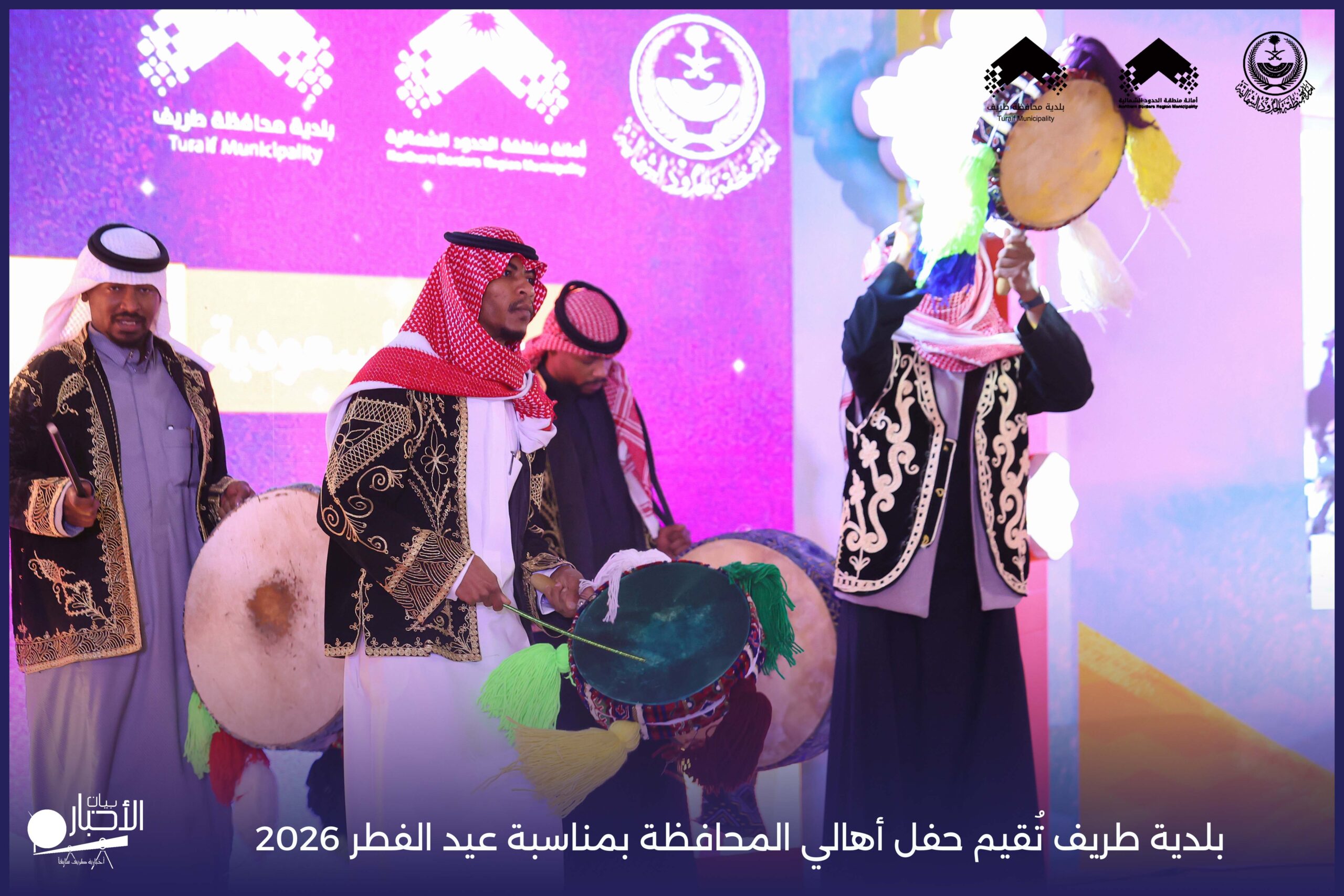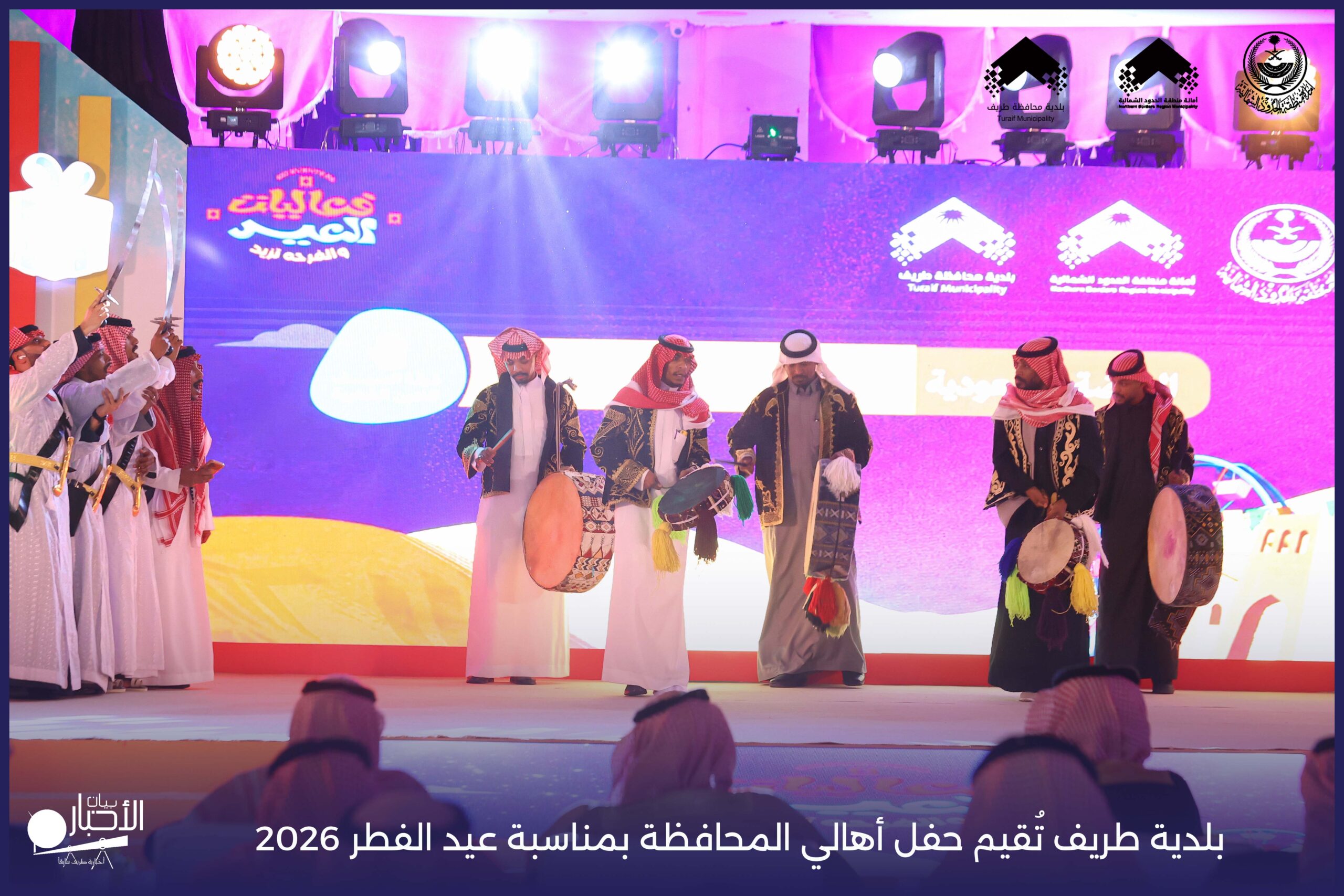 أقامت بلدية محافظة طريف حفل أهالي المحافظة بمناسبة عيد الفطر المبارك لعام 2026م، وذلك في أول أيام العيد بعد صلاة المغرب مباشرةً، في صالة الأهالي للاحتفالات، وسط حضورٍ مميز من أهالي المحافظة.