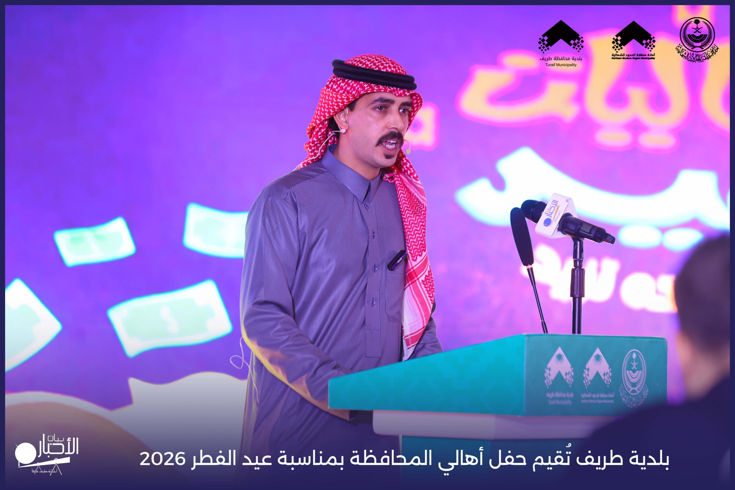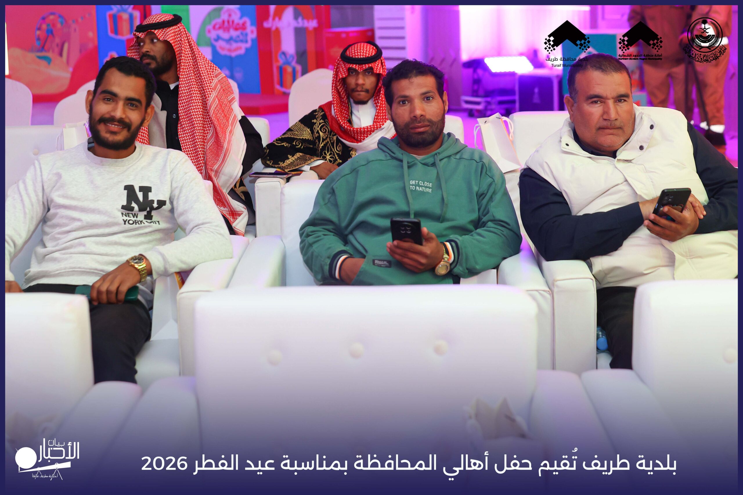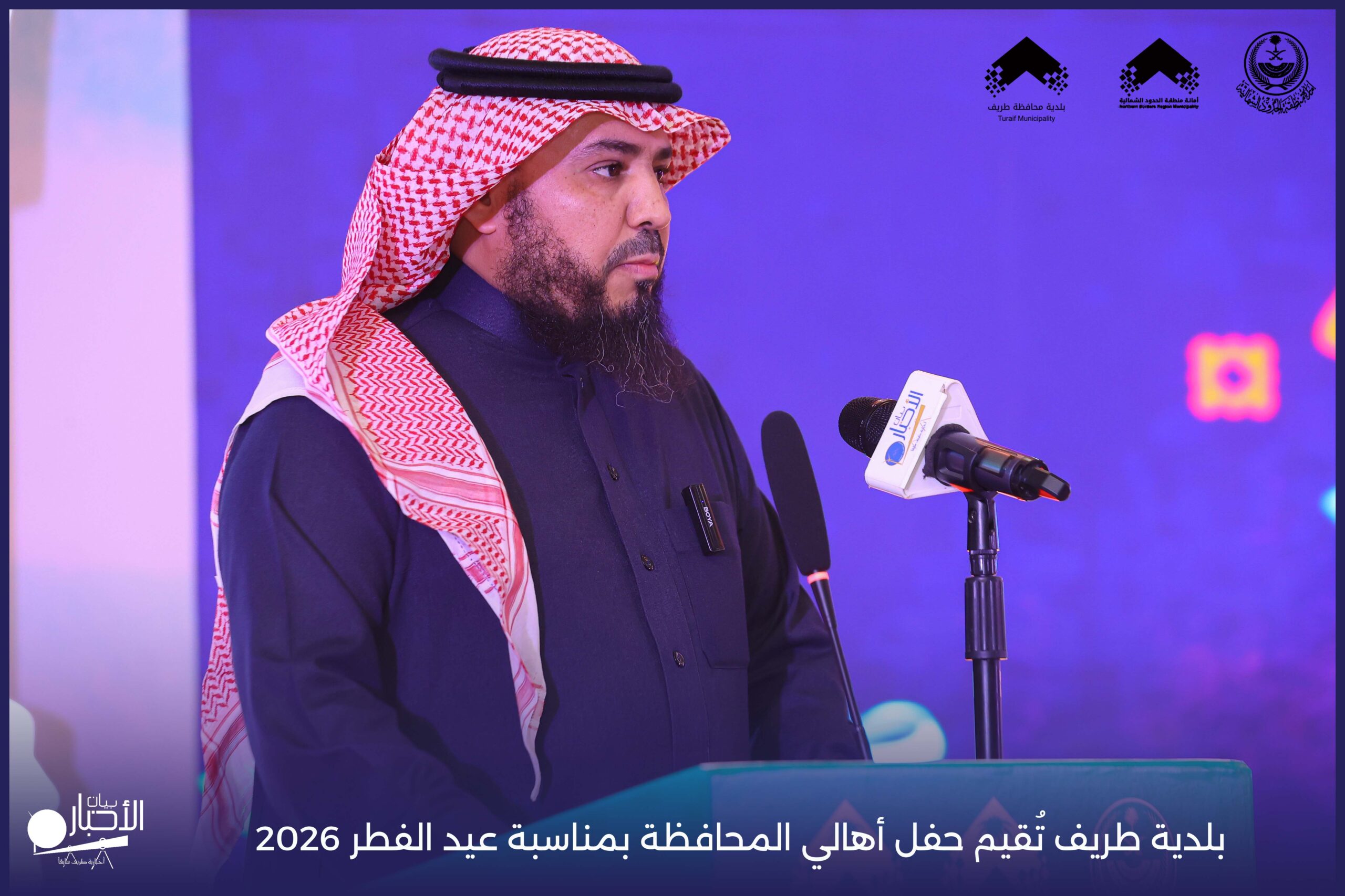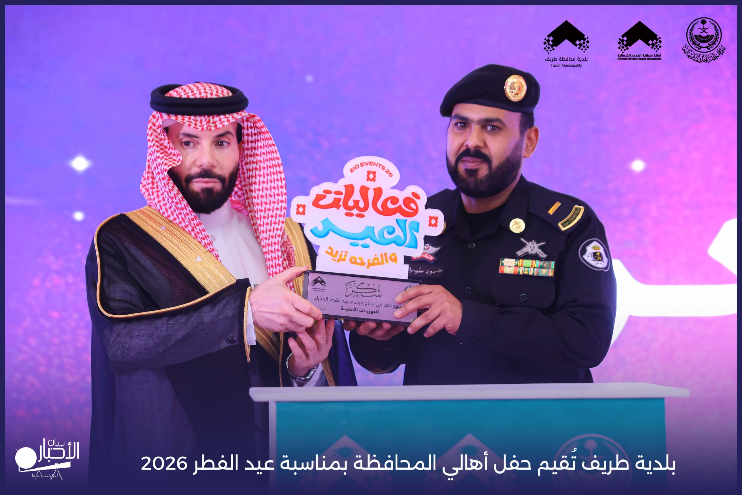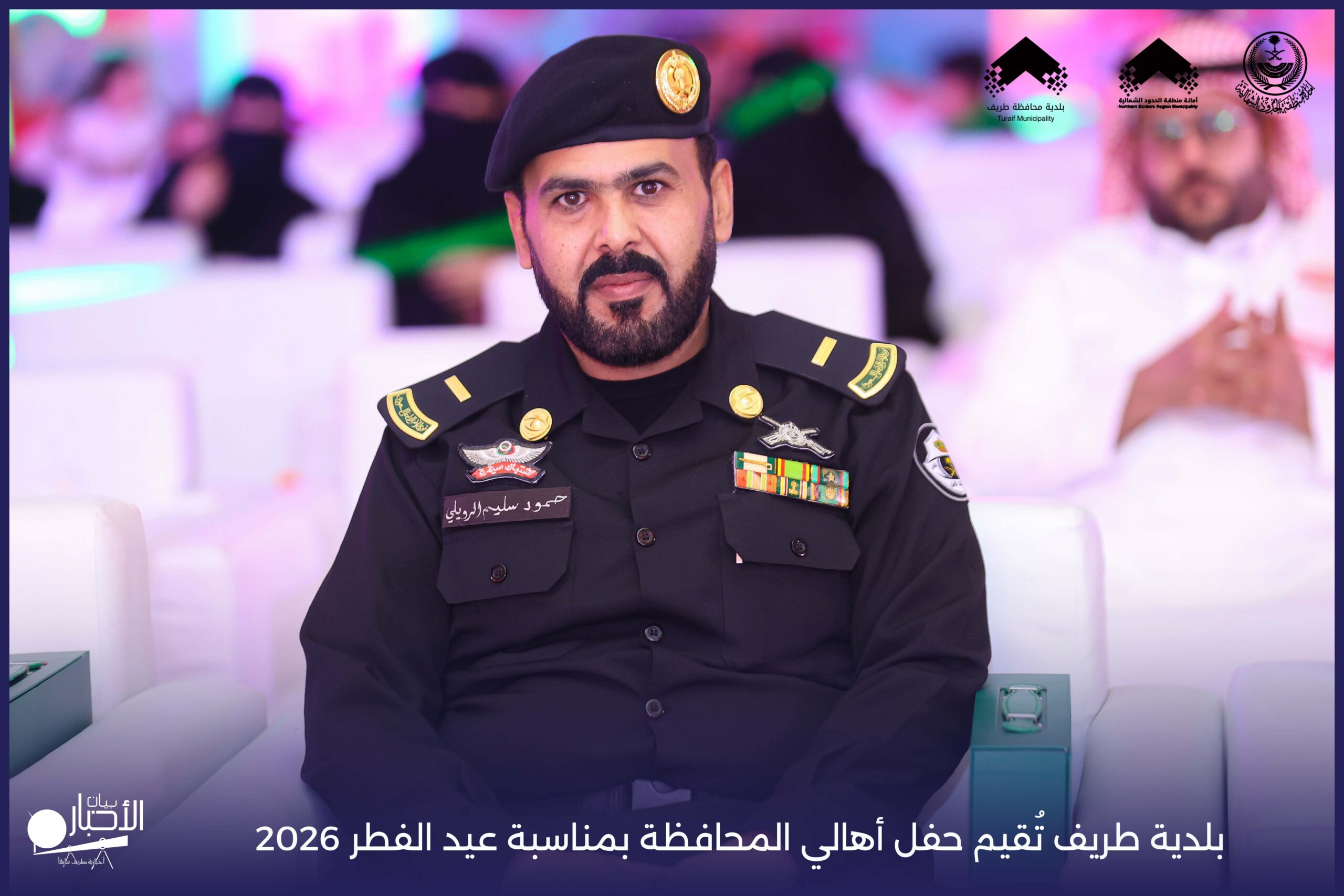 أقامت بلدية محافظة طريف حفل أهالي المحافظة بمناسبة عيد الفطر المبارك لعام 2026م، وذلك في أول أيام العيد بعد صلاة المغرب مباشرةً، في صالة الأهالي للاحتفالات، وسط حضورٍ مميز من أهالي المحافظة.