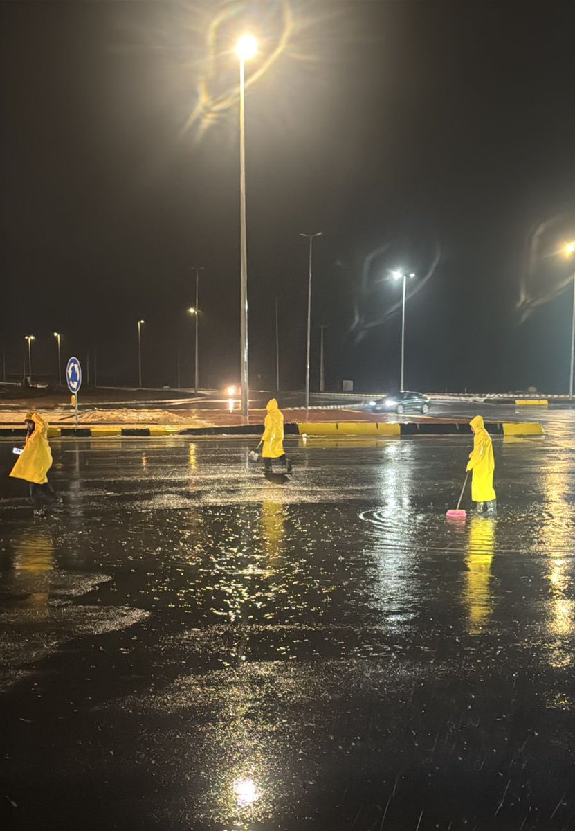 وتأتي هذه الأعمال في إطار الإجراءات الاحترازية التي تهدف إلى الحد من تجمعات المياه وتفادي الأضرار، بما يسهم في الحفاظ على سلامة الطرق والممتلكات العامة.