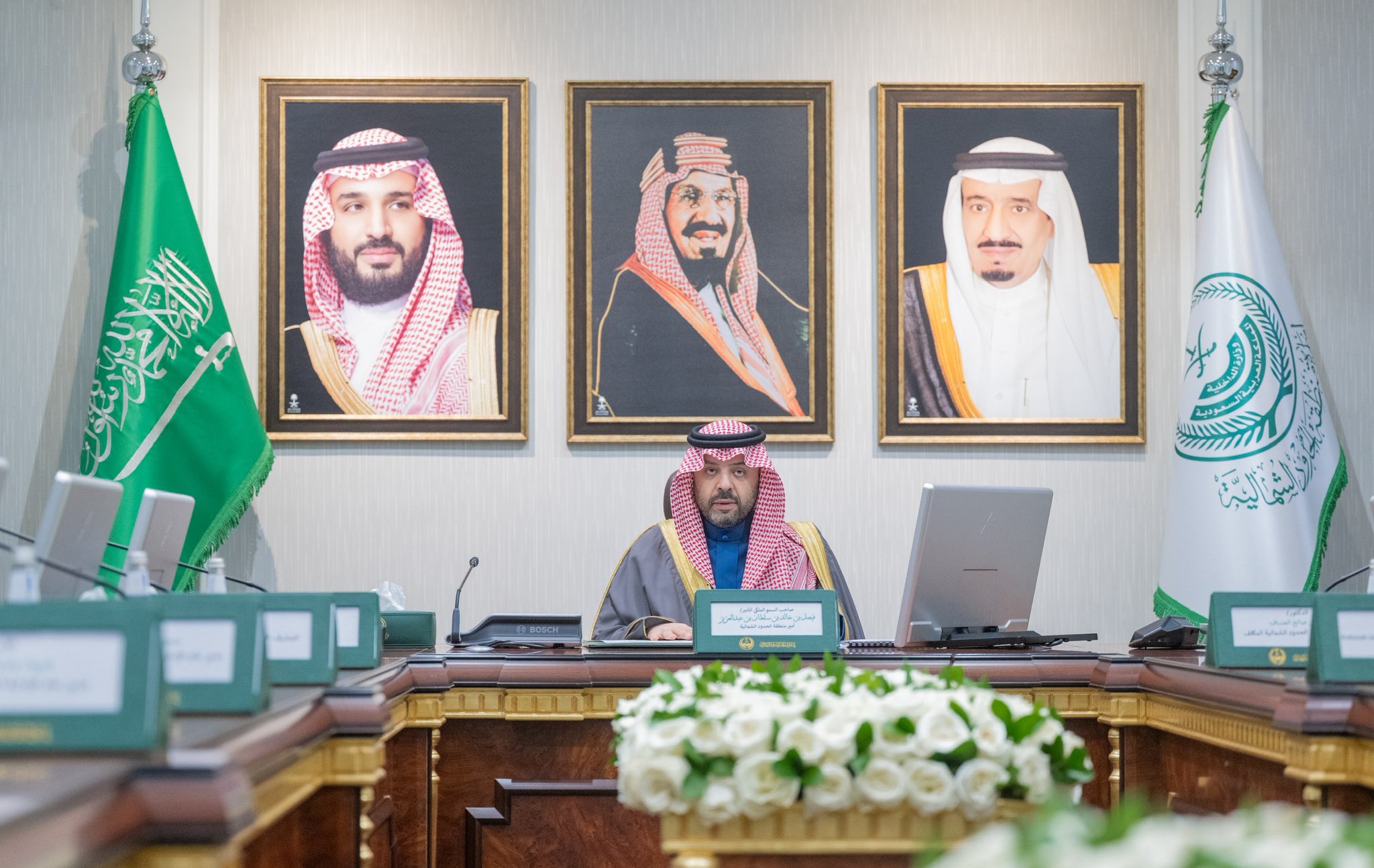 ترأس صاحب السمو الملكي الأمير فيصل بن خالد بن سلطان بن عبدالعزيز أمير منطقة الحدود الشمالية، في قاعة الاجتماعات بالإمارة اليوم، الاجتماع الثالث للجنة الإشرافية للأمن السيبراني، بحضور أعضاء اللجنة من الإدارات ذات العلاقة.