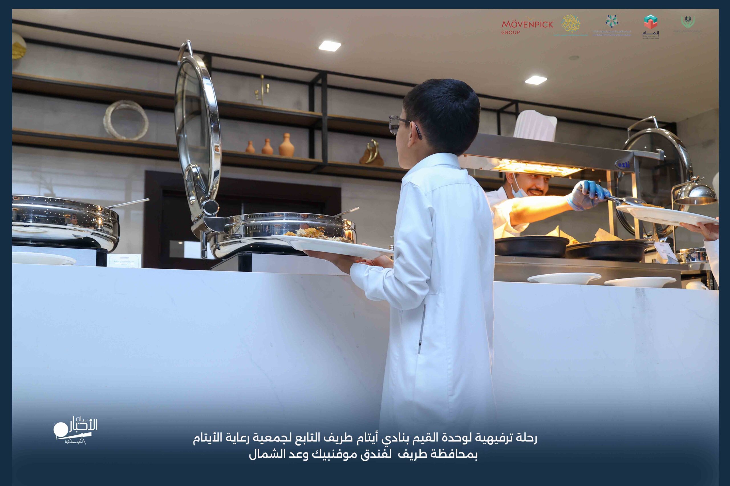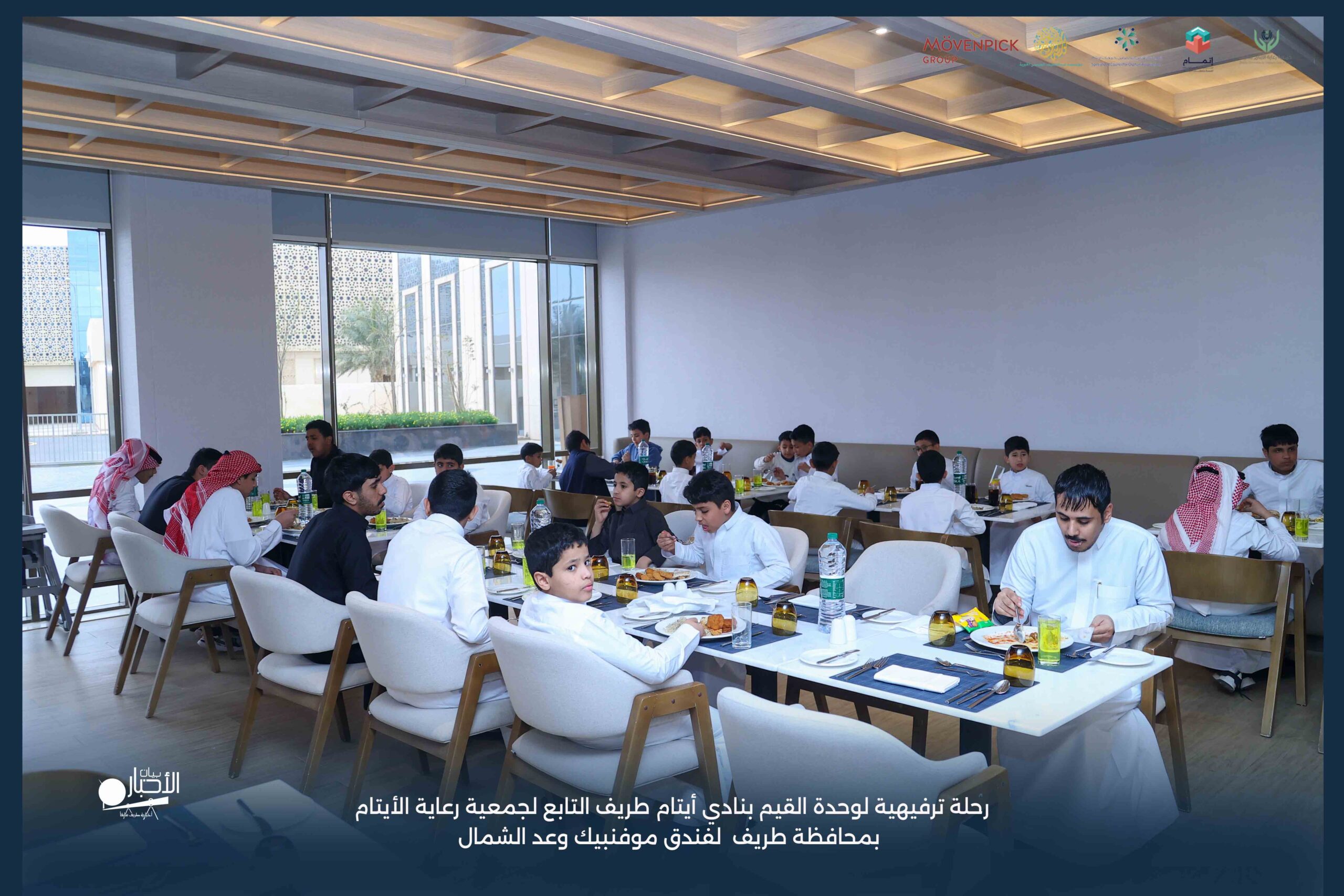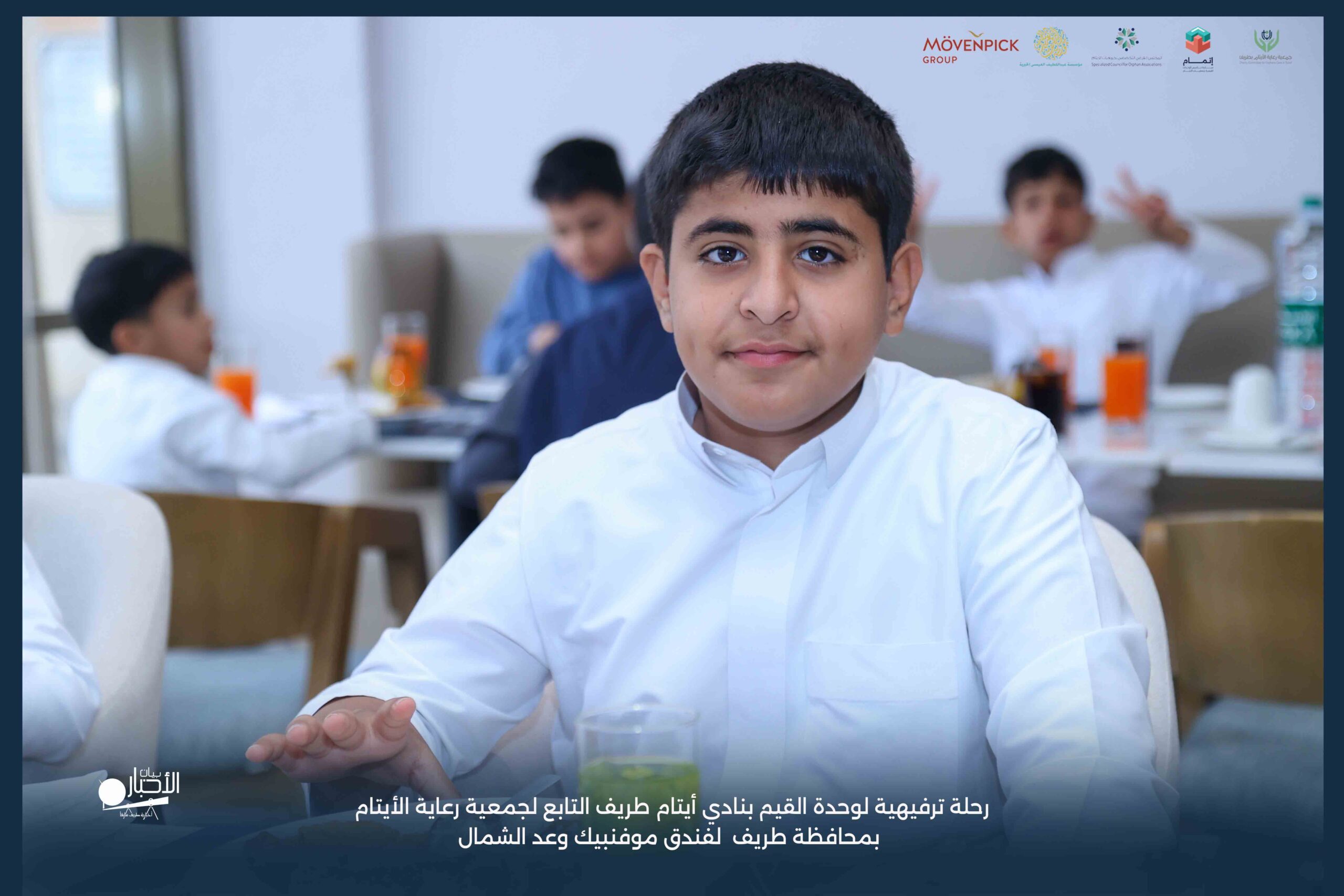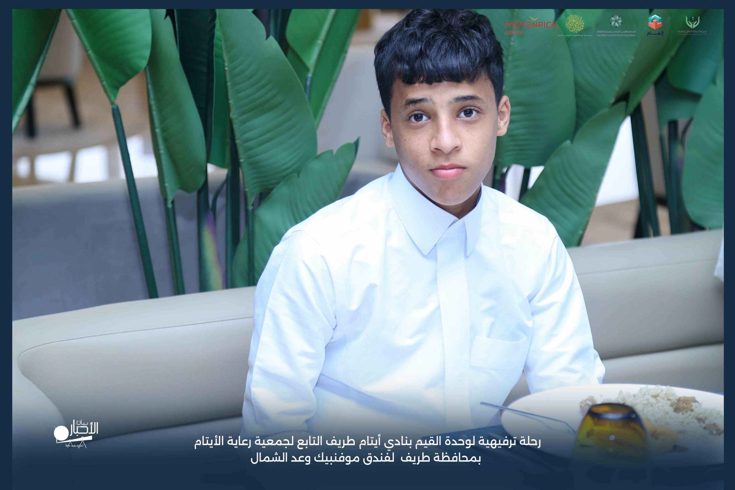 قامت وحدة القيم بنادي أيتام طريف التابع لجمعية رعاية الأيتام بمحافظة طريف برحلة ترفيهية لفندق موفنبيك وعد الشمال، وذلك مكافأةً للطلاب المتميزين والمتفاعلين بالبرنامج وكذلك تشجيعًا لهم ولزملائهم على مواصلة التميز والانضباط.
