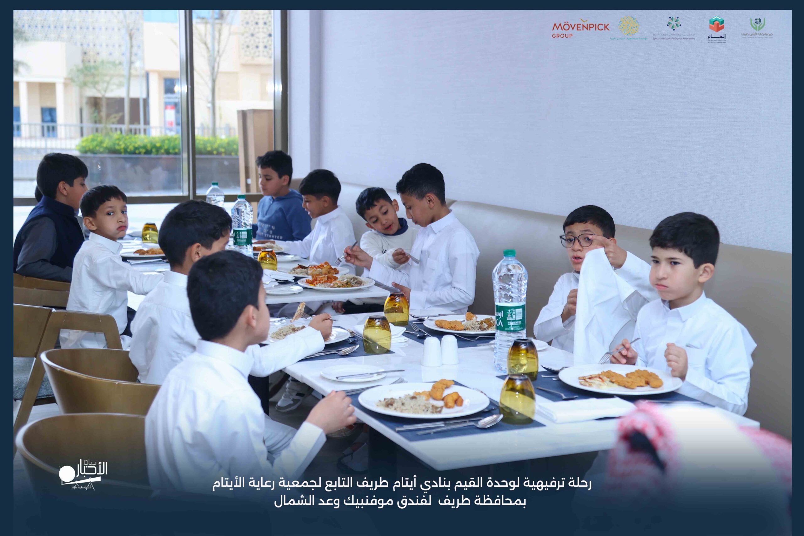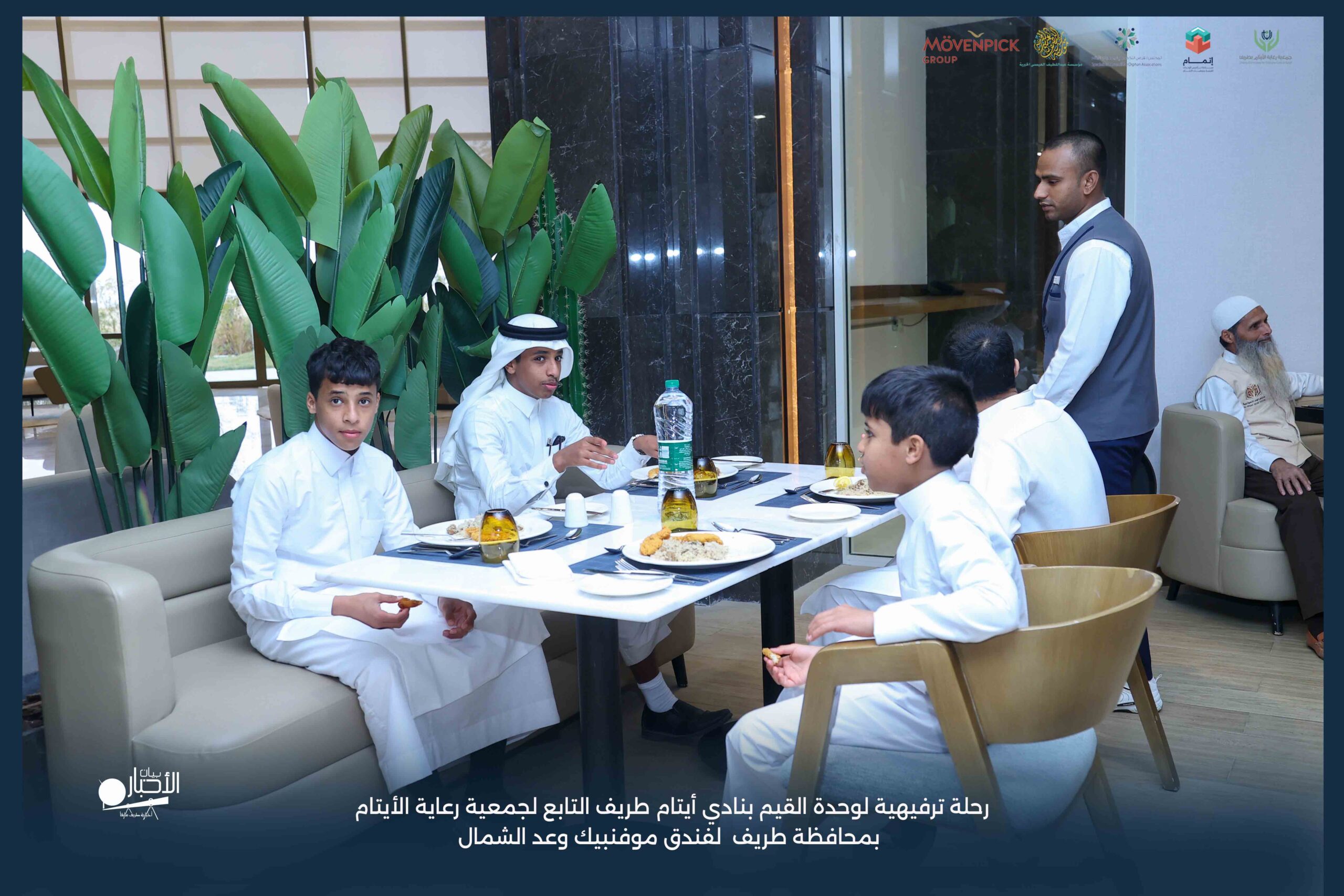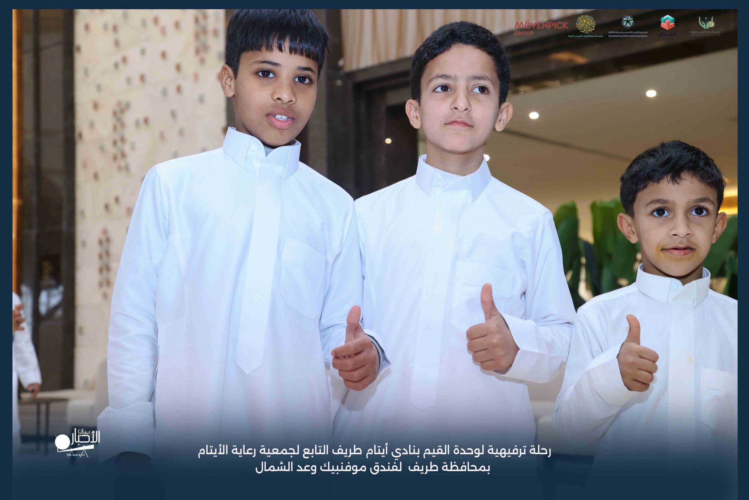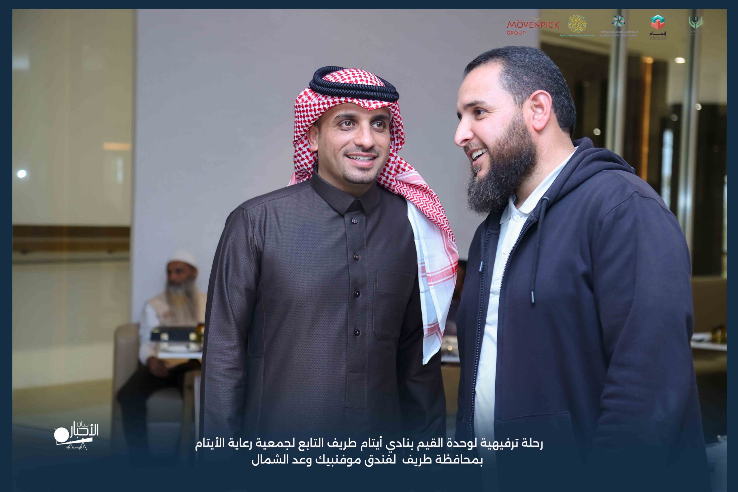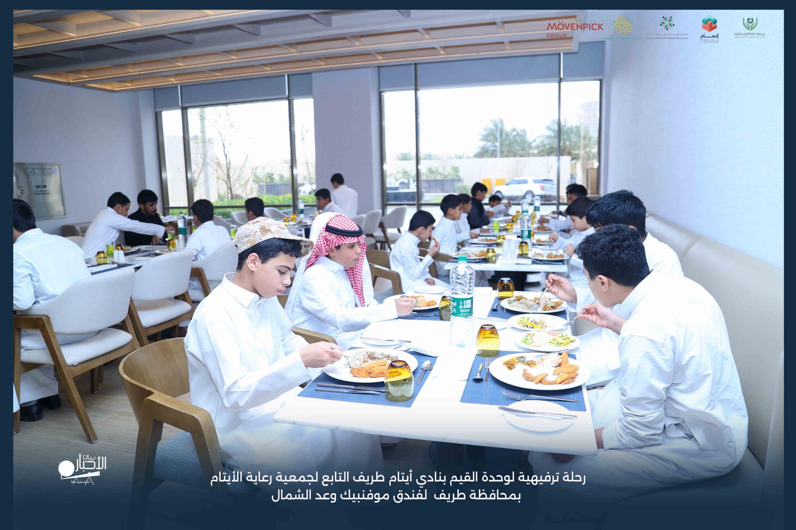 قامت وحدة القيم بنادي أيتام طريف التابع لجمعية رعاية الأيتام بمحافظة طريف برحلة ترفيهية لفندق موفنبيك وعد الشمال، وذلك مكافأةً للطلاب المتميزين والمتفاعلين بالبرنامج وكذلك تشجيعًا لهم ولزملائهم على مواصلة التميز والانضباط.