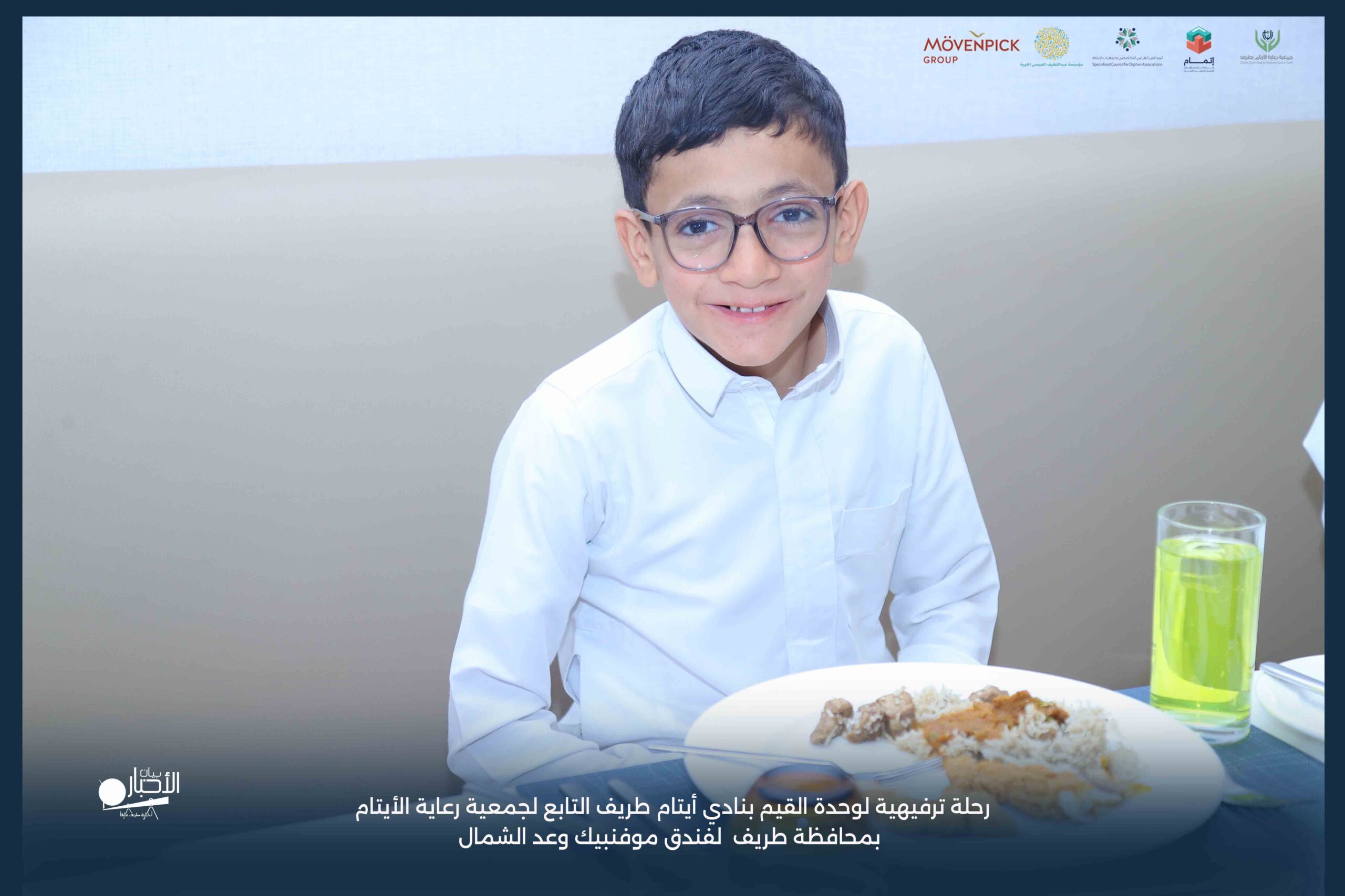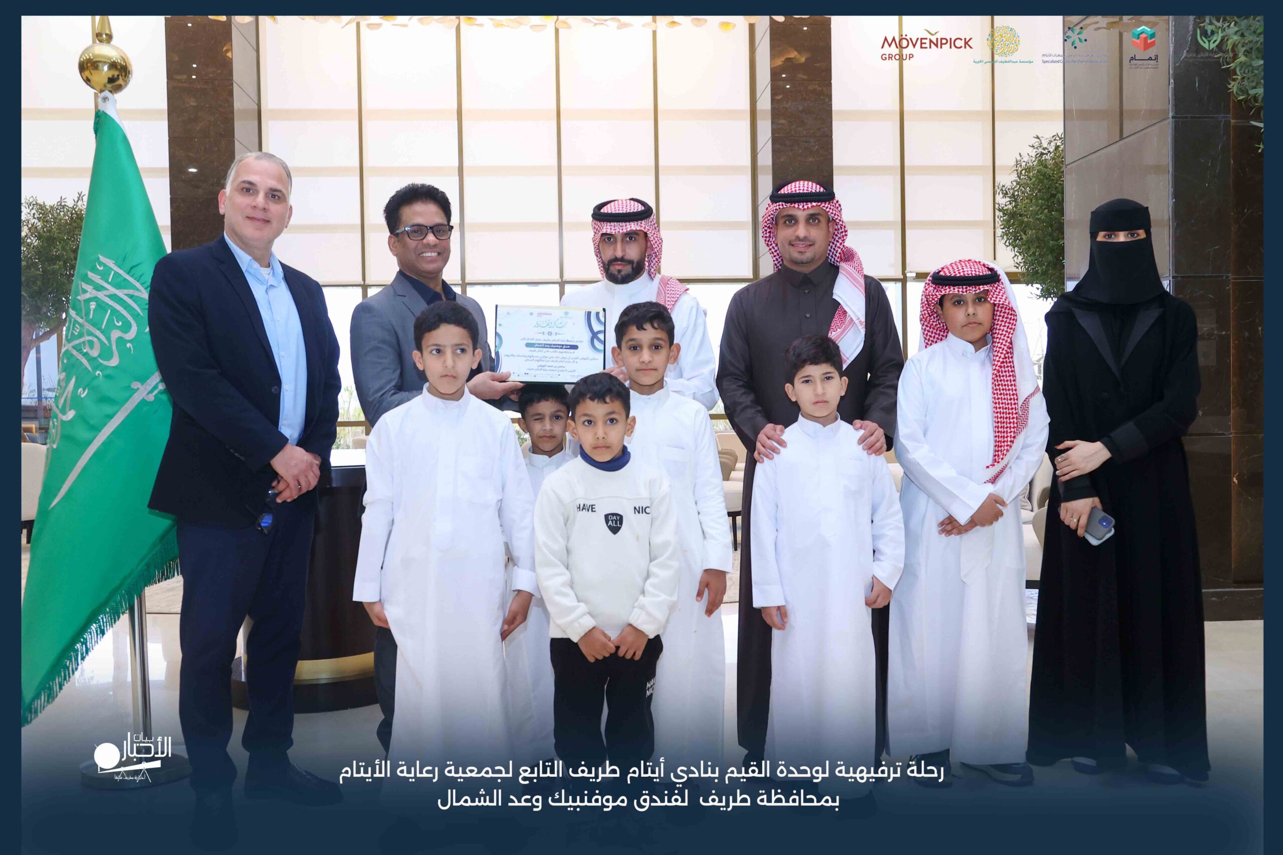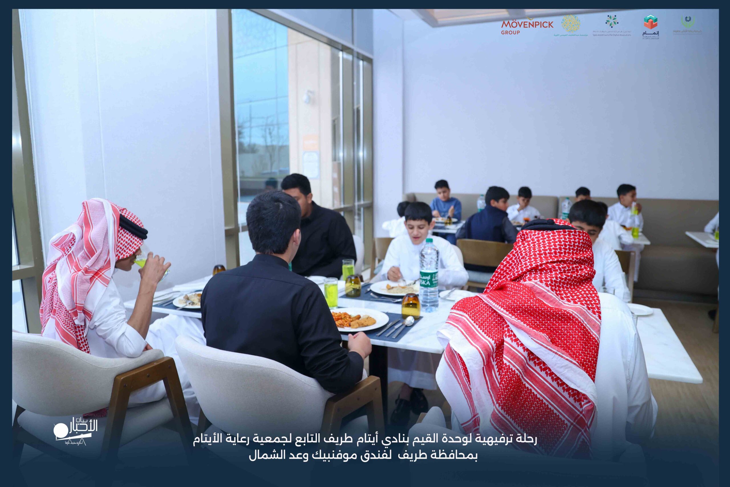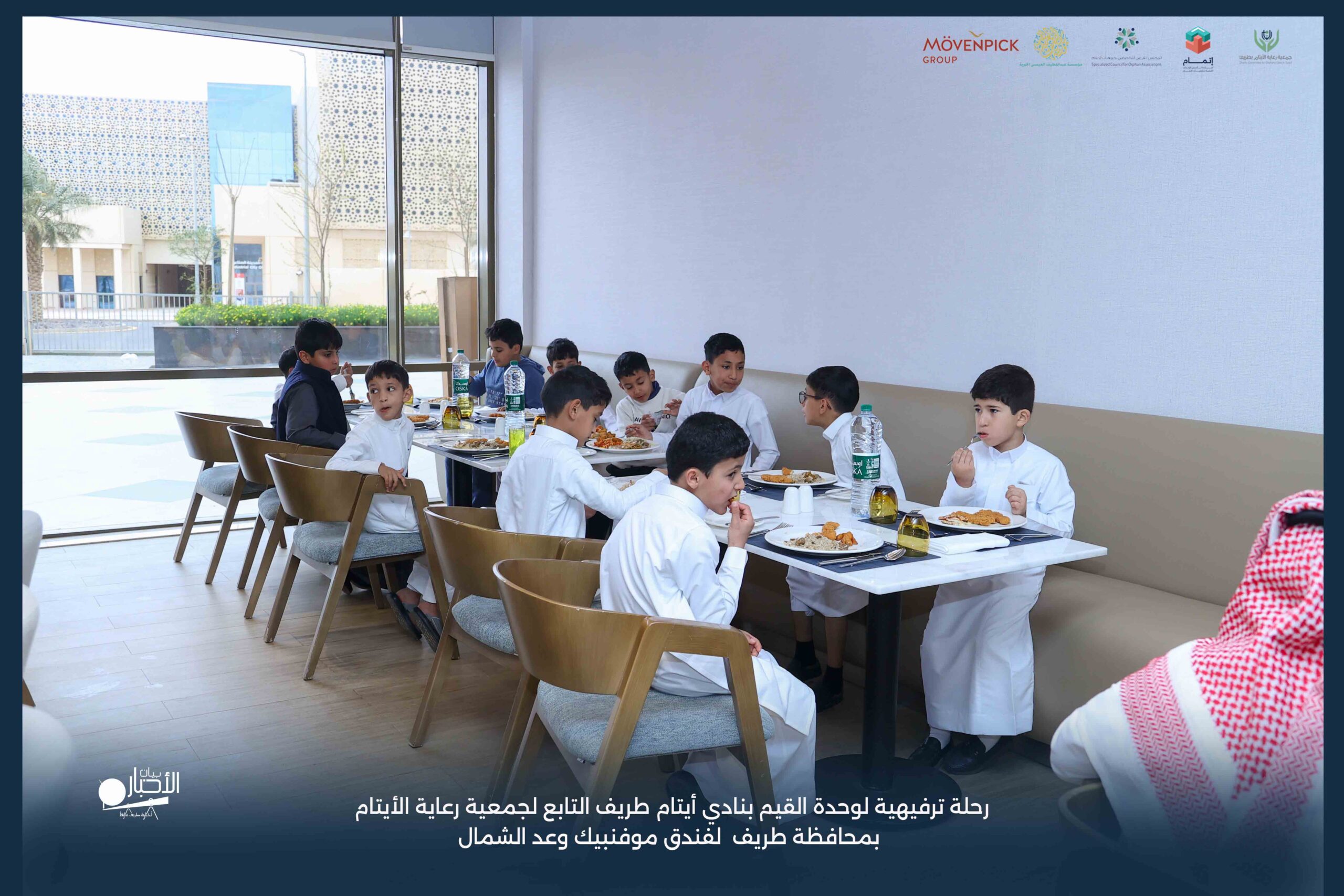 قامت وحدة القيم بنادي أيتام طريف التابع لجمعية رعاية الأيتام بمحافظة طريف برحلة ترفيهية لفندق موفنبيك وعد الشمال، وذلك مكافأةً للطلاب المتميزين والمتفاعلين بالبرنامج وكذلك تشجيعًا لهم ولزملائهم على مواصلة التميز والانضباط.