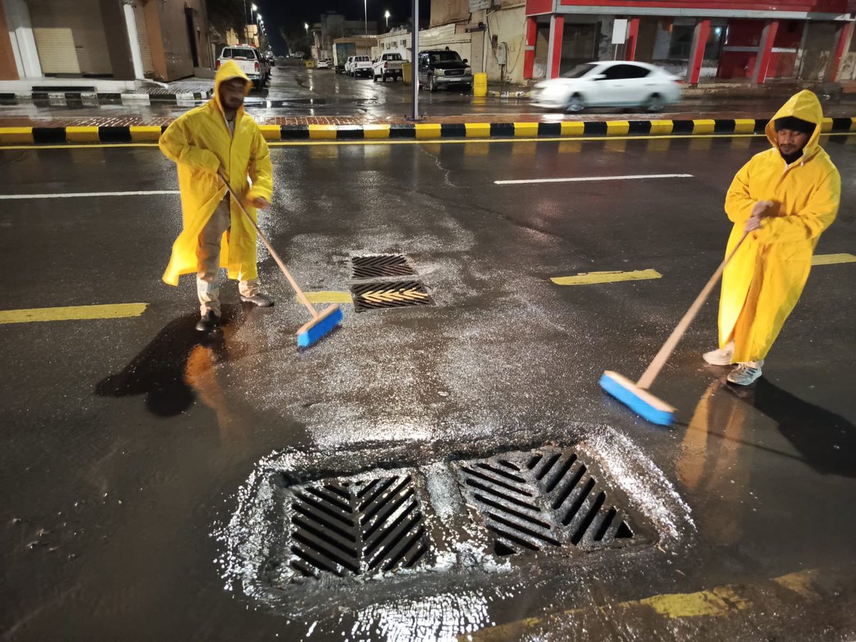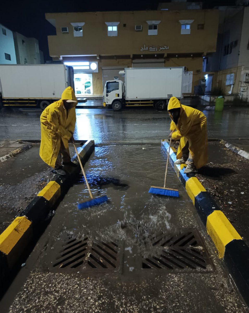 وأكدت البلدية حرصها على رفع مستوى الجاهزية والاستجابة السريعة، داعية المواطنين إلى التعاون والإبلاغ عن أي تجمعات مائية.