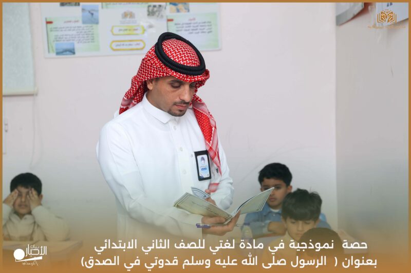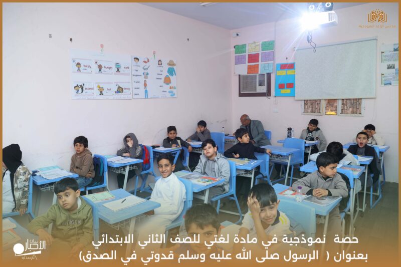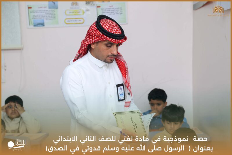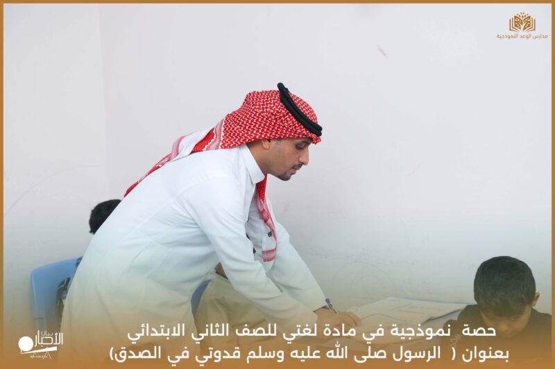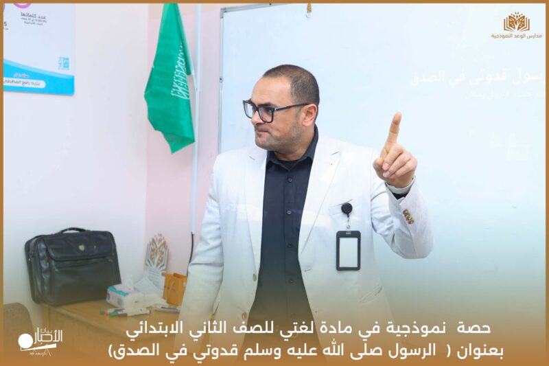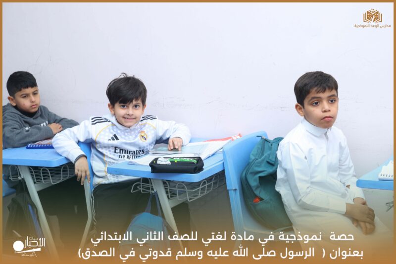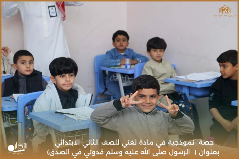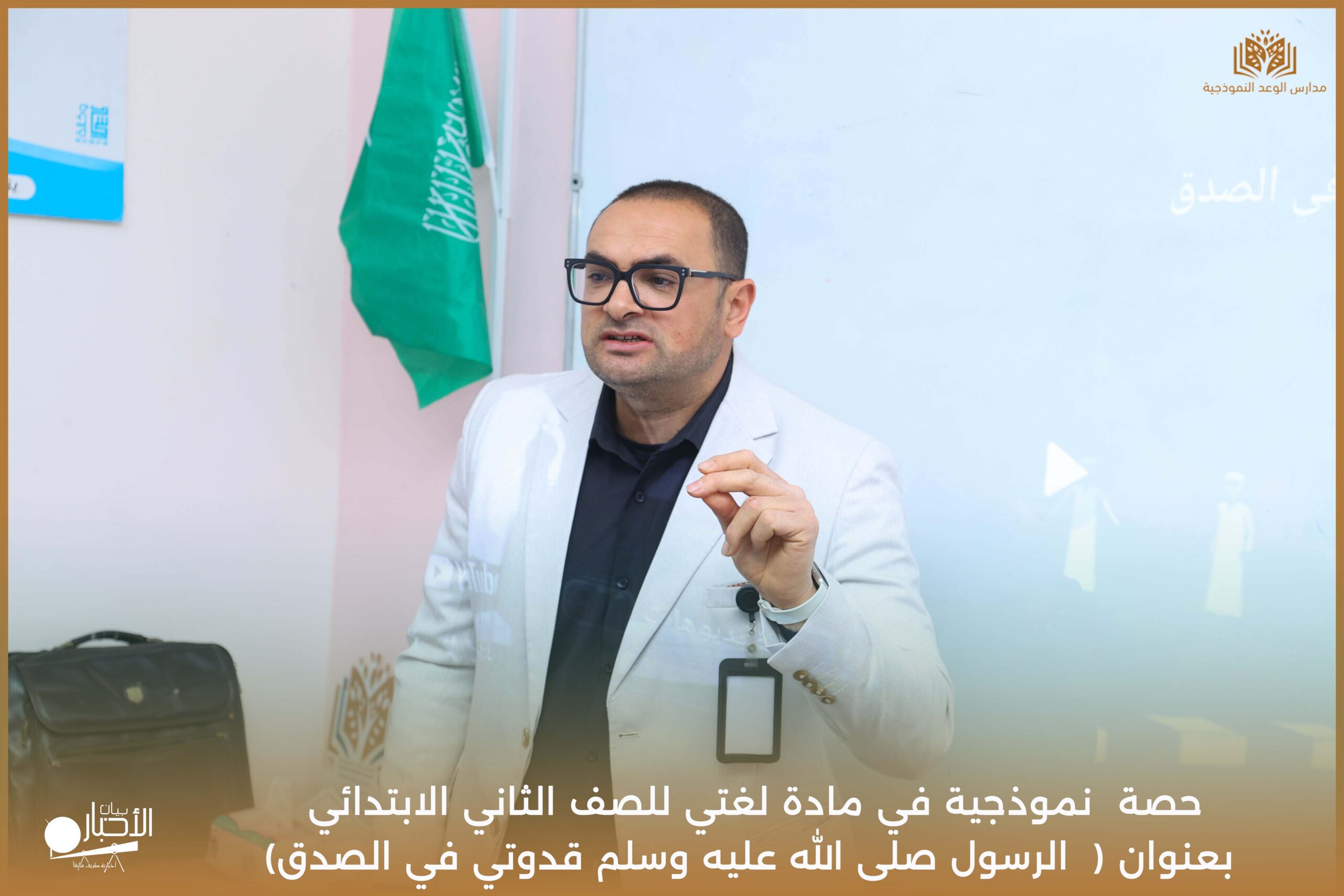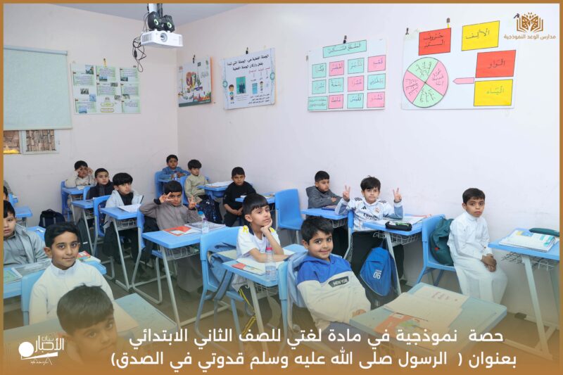 نفذت مدارس الوعد النموذجية يوم الأحد 17 / 10 / 1447هـ حصة نموذجية في مادة لغتي للصف الثاني الابتدائي بعنوان (الرسول صلى الله عليه وسلم قدوتي في الصدق).