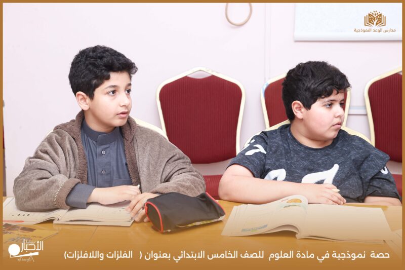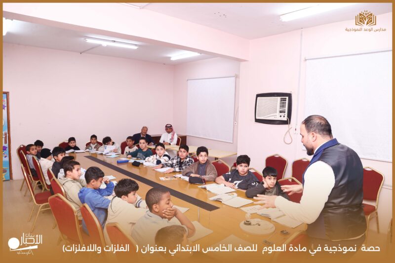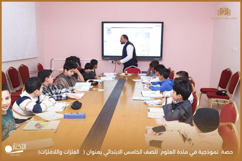نفذت مدارس الوعد النموذجية يوم الثلاثاء ١٩/ ١٠ /١٤٤٧ حصة نموذجية في مادة العلوم للصف الخامس الابتدائي بعنوان ( الفلزات واللافلزات).