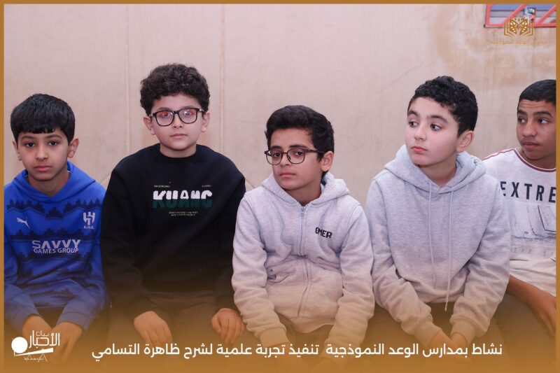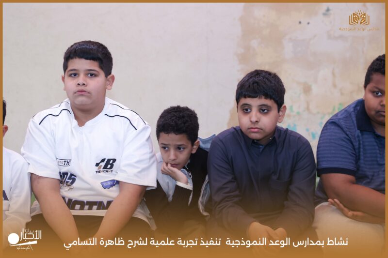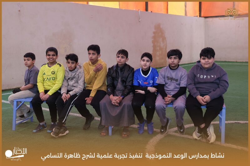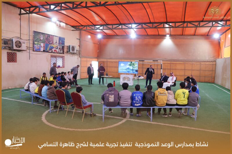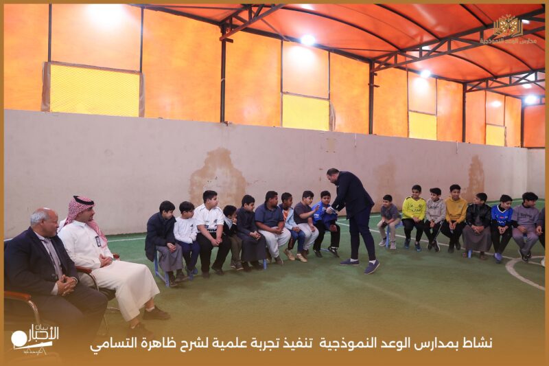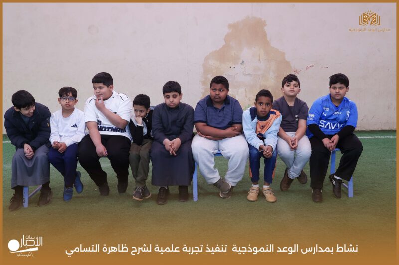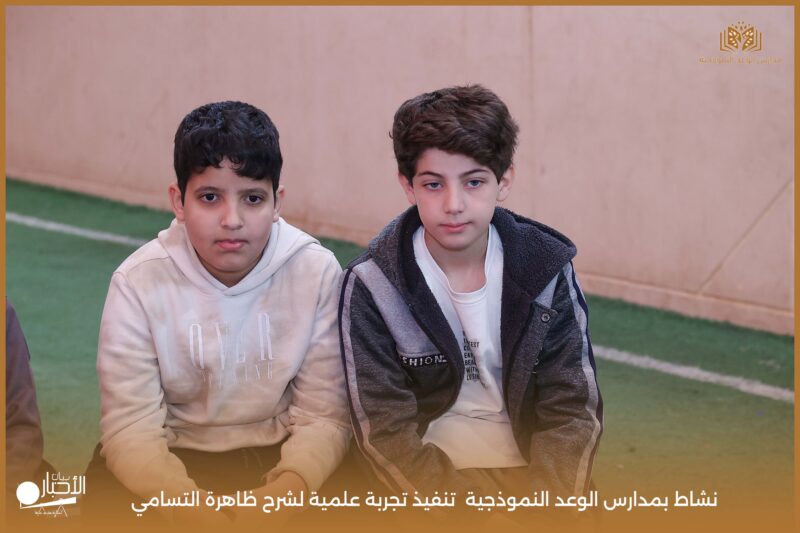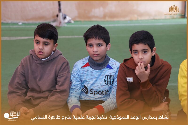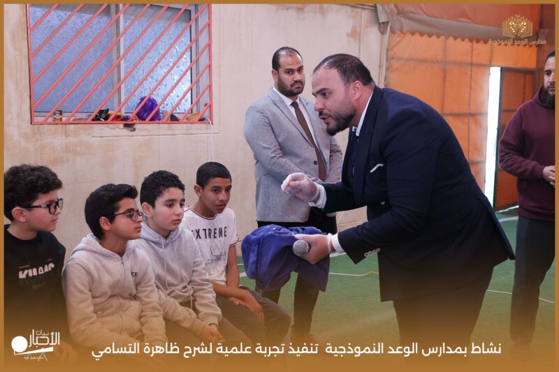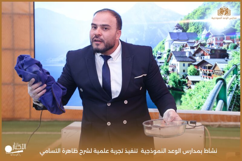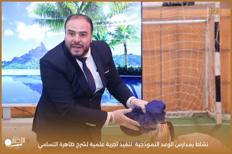 قامت مدارس الوعد النموذجية بتنفيذ تجربة علمية لشرح ظاهرة التسامي وهي تحول المادة من الحالة الصلبة إلى الحالة الغازية مباشرة دون المرور بالحالة السائلة. استخدمت في التجربة مادة مناسبة للتسامي وهي ثاني أكسيد الكربون في الحالة الصلبة، حيث تم وضع الثلج داخل وعاء مخصص للملاحظة.