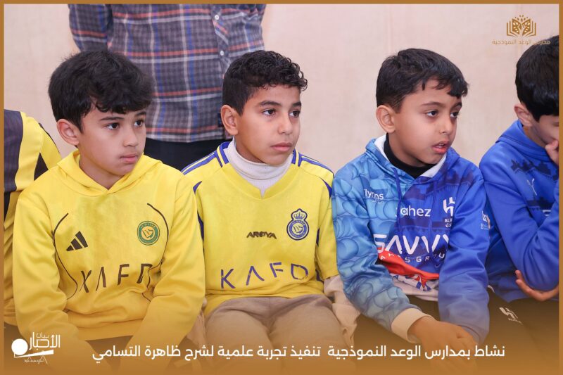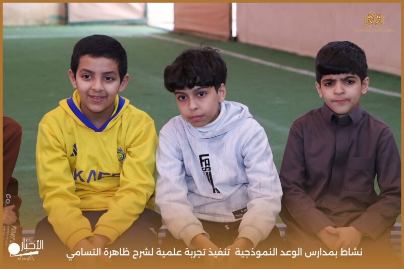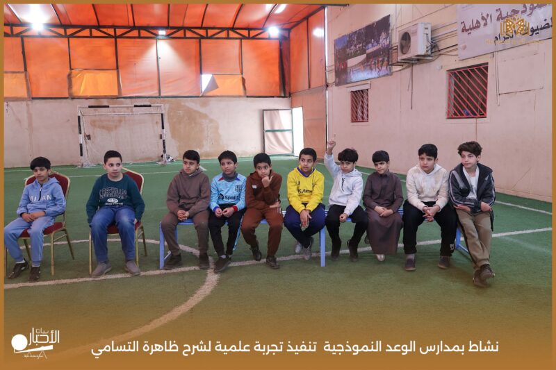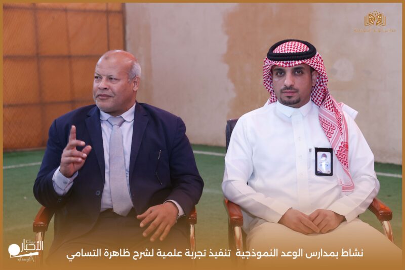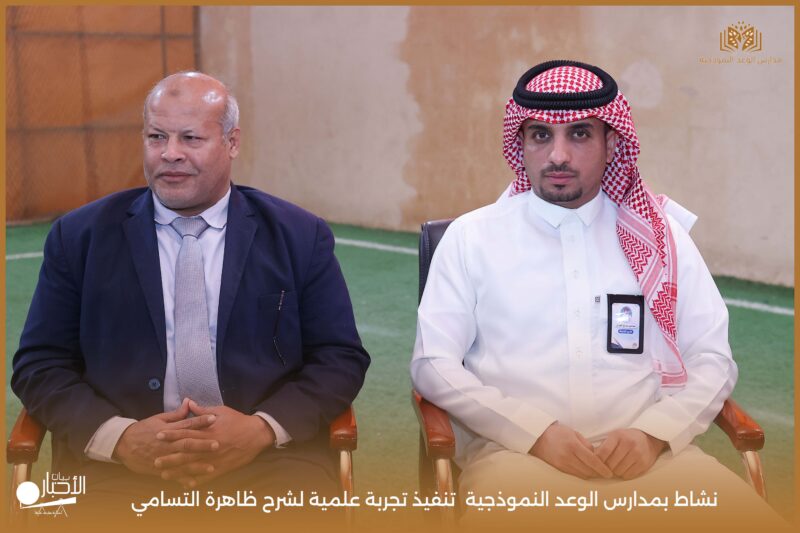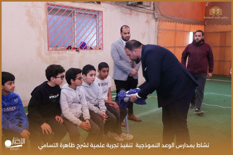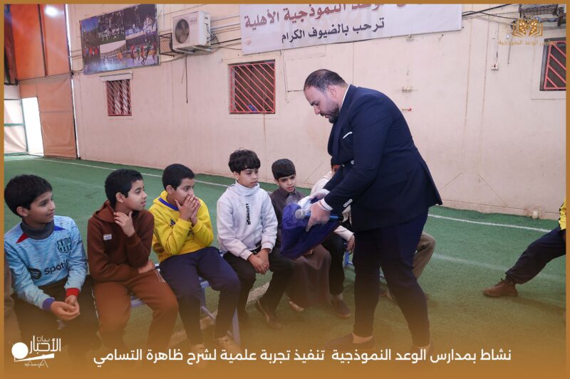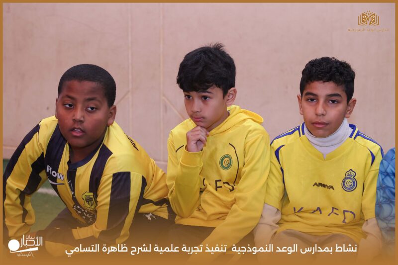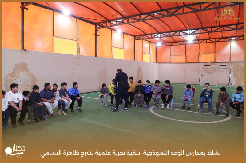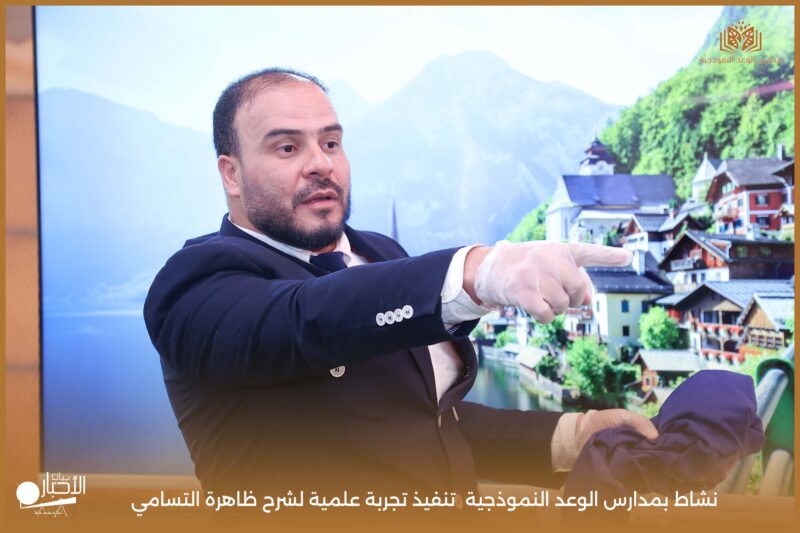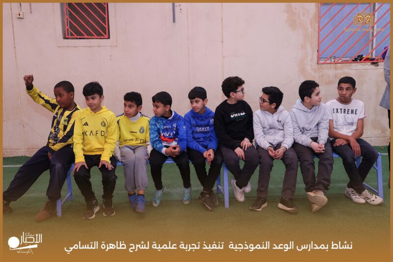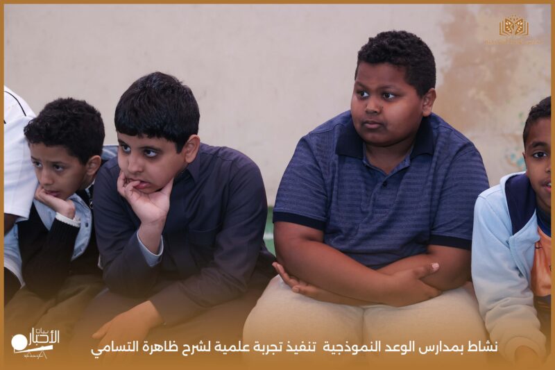 قامت مدارس الوعد النموذجية بتنفيذ تجربة علمية لشرح ظاهرة التسامي وهي تحول المادة من الحالة الصلبة إلى الحالة الغازية مباشرة دون المرور بالحالة السائلة. استخدمت في التجربة مادة مناسبة للتسامي وهي ثاني أكسيد الكربون في الحالة الصلبة، حيث تم وضع الثلج داخل وعاء مخصص للملاحظة.
