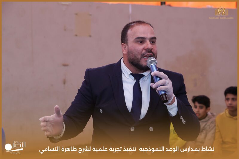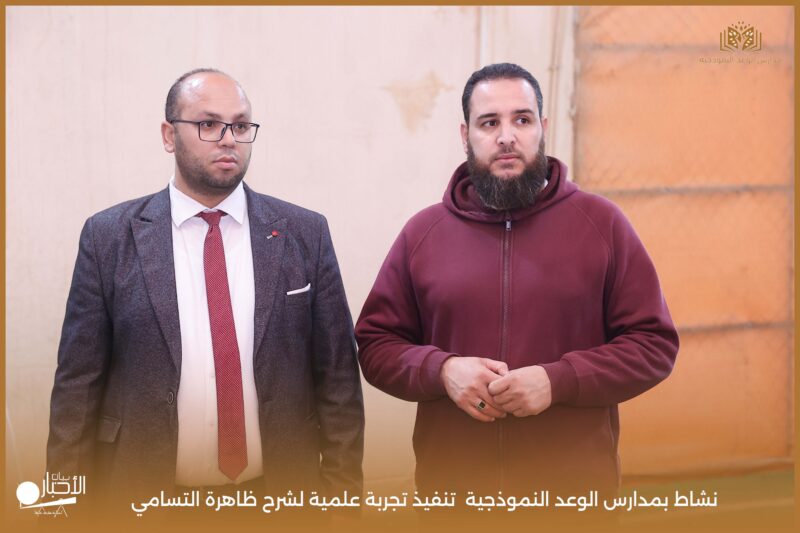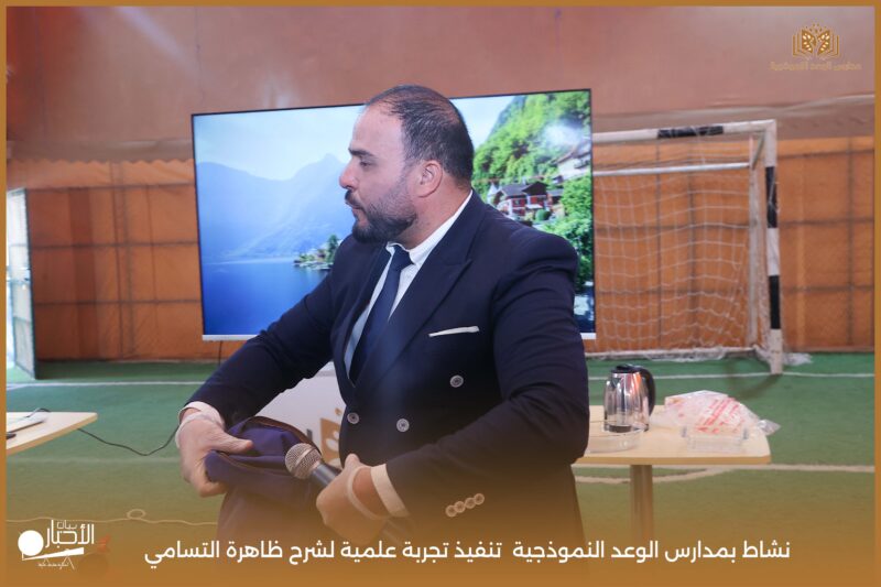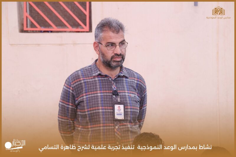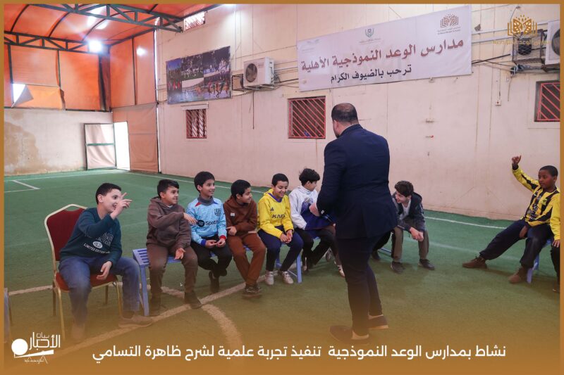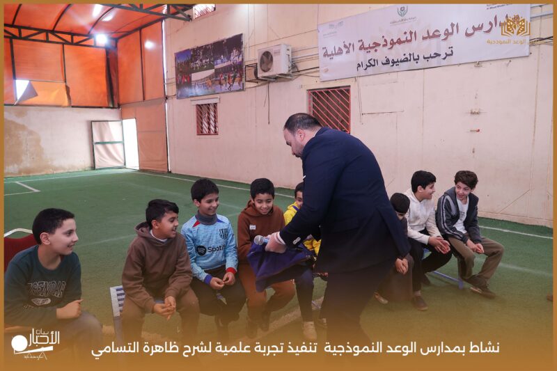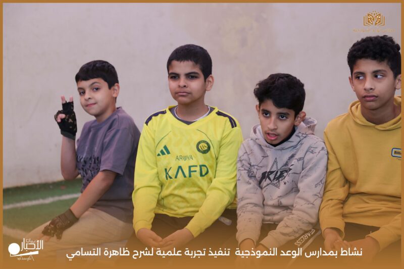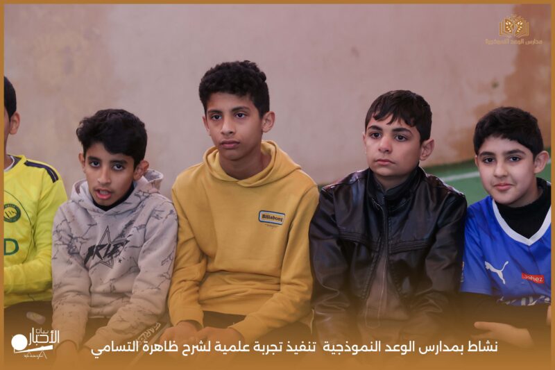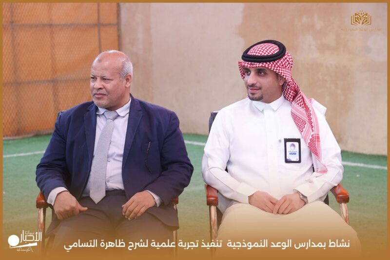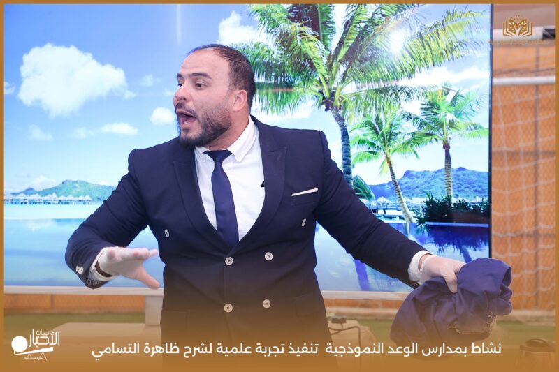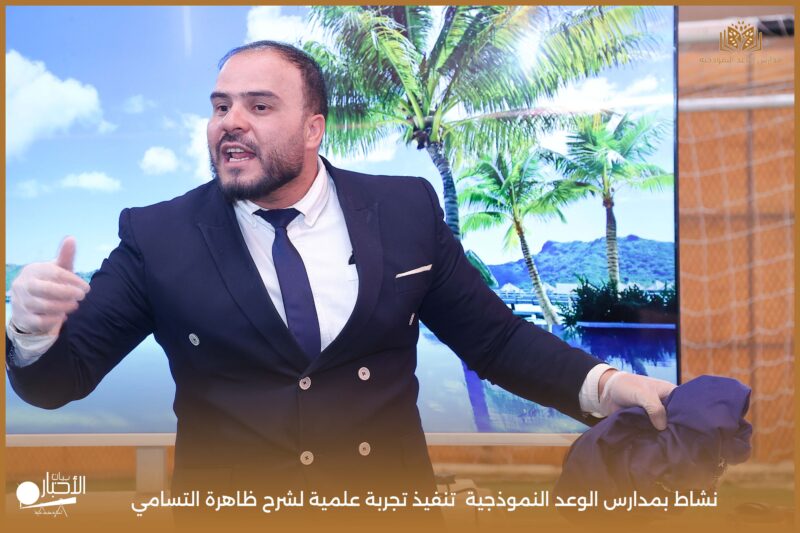 قامت مدارس الوعد النموذجية بتنفيذ تجربة علمية لشرح ظاهرة التسامي وهي تحول المادة من الحالة الصلبة إلى الحالة الغازية مباشرة دون المرور بالحالة السائلة. استخدمت في التجربة مادة مناسبة للتسامي وهي ثاني أكسيد الكربون في الحالة الصلبة، حيث تم وضع الثلج داخل وعاء مخصص للملاحظة.