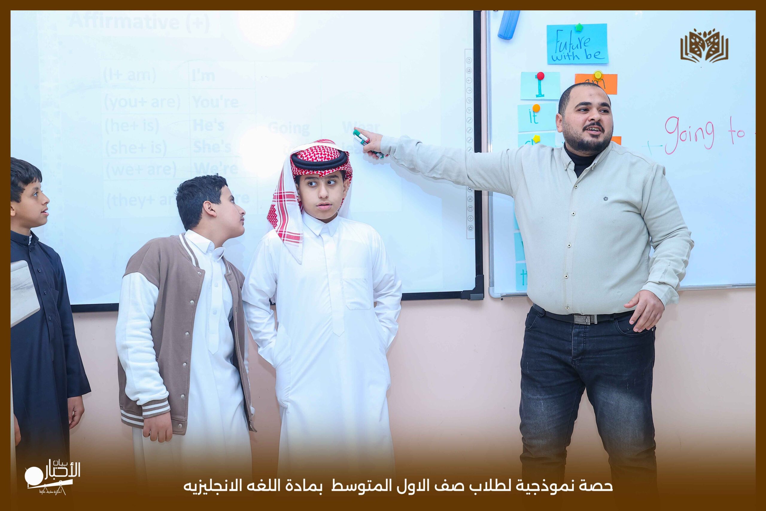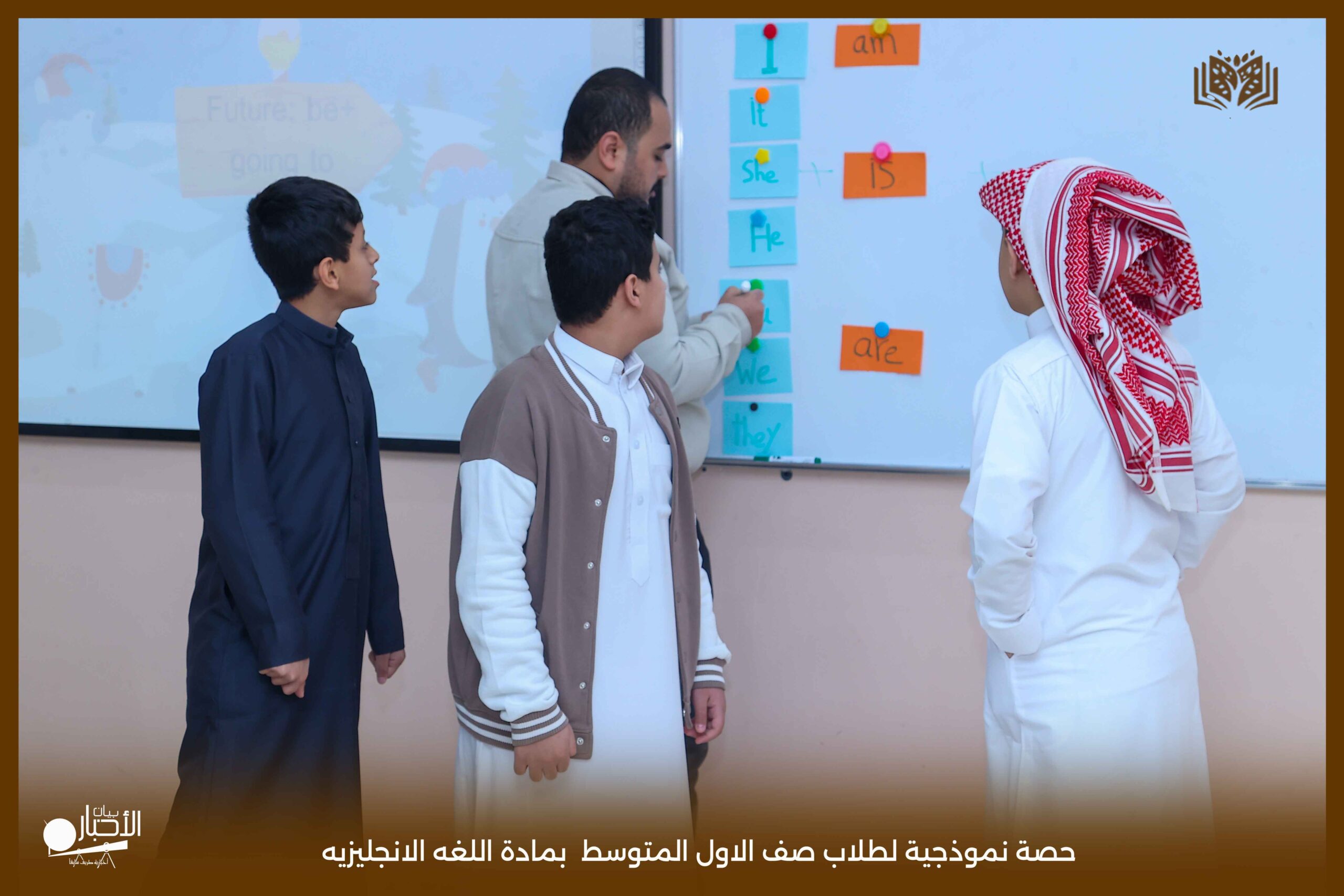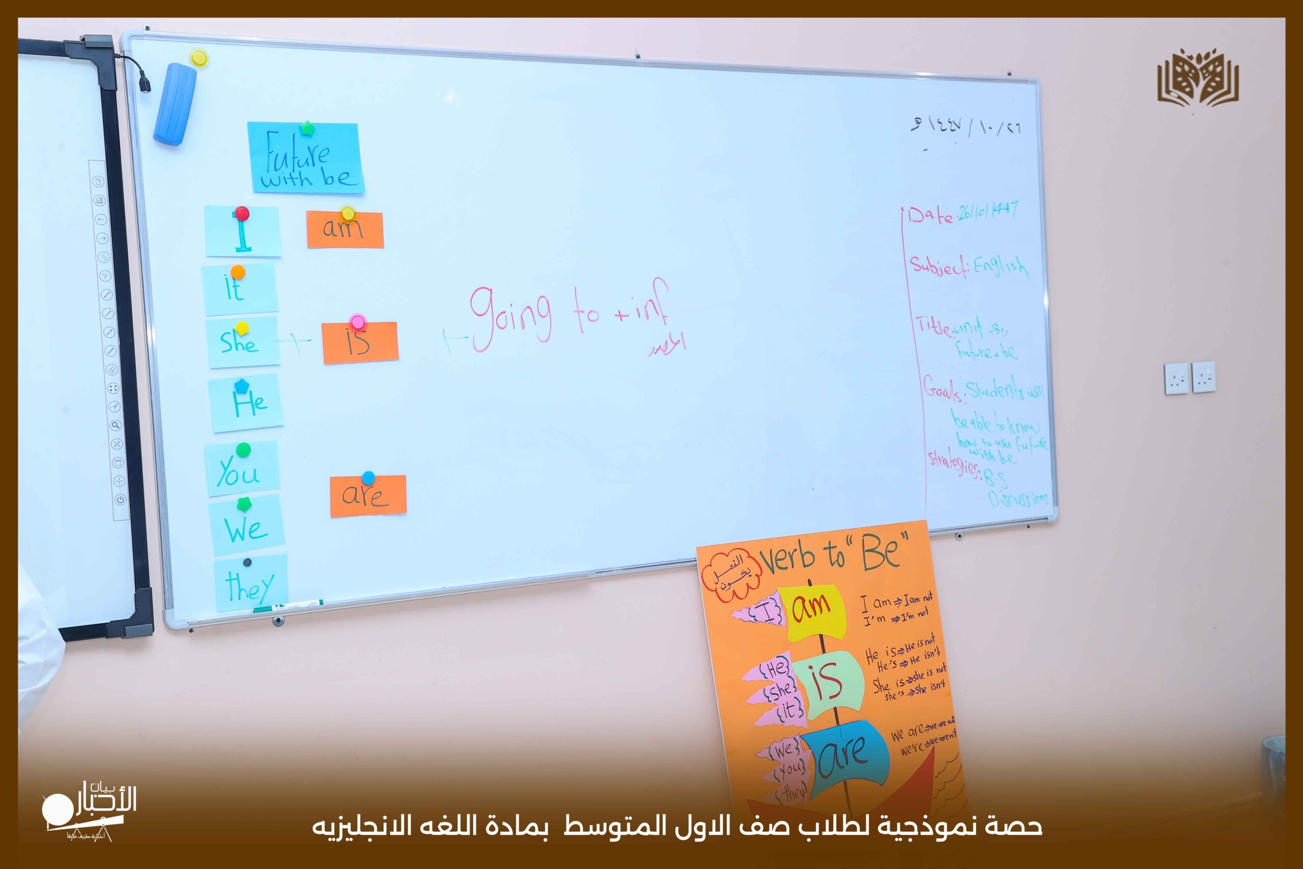 نفذت اليوم الثلاثاء الموافق ٢٦ / ١٠ / ١٤٤٧هـ حصة نموذجية في مادة اللغة الإنجليزية لطلاب الصف الأول المتوسط بمدارس الوعد النموذجية (القسم المتوسط والثانوي)، بعنوان (Grammar: The Future with “Be”).