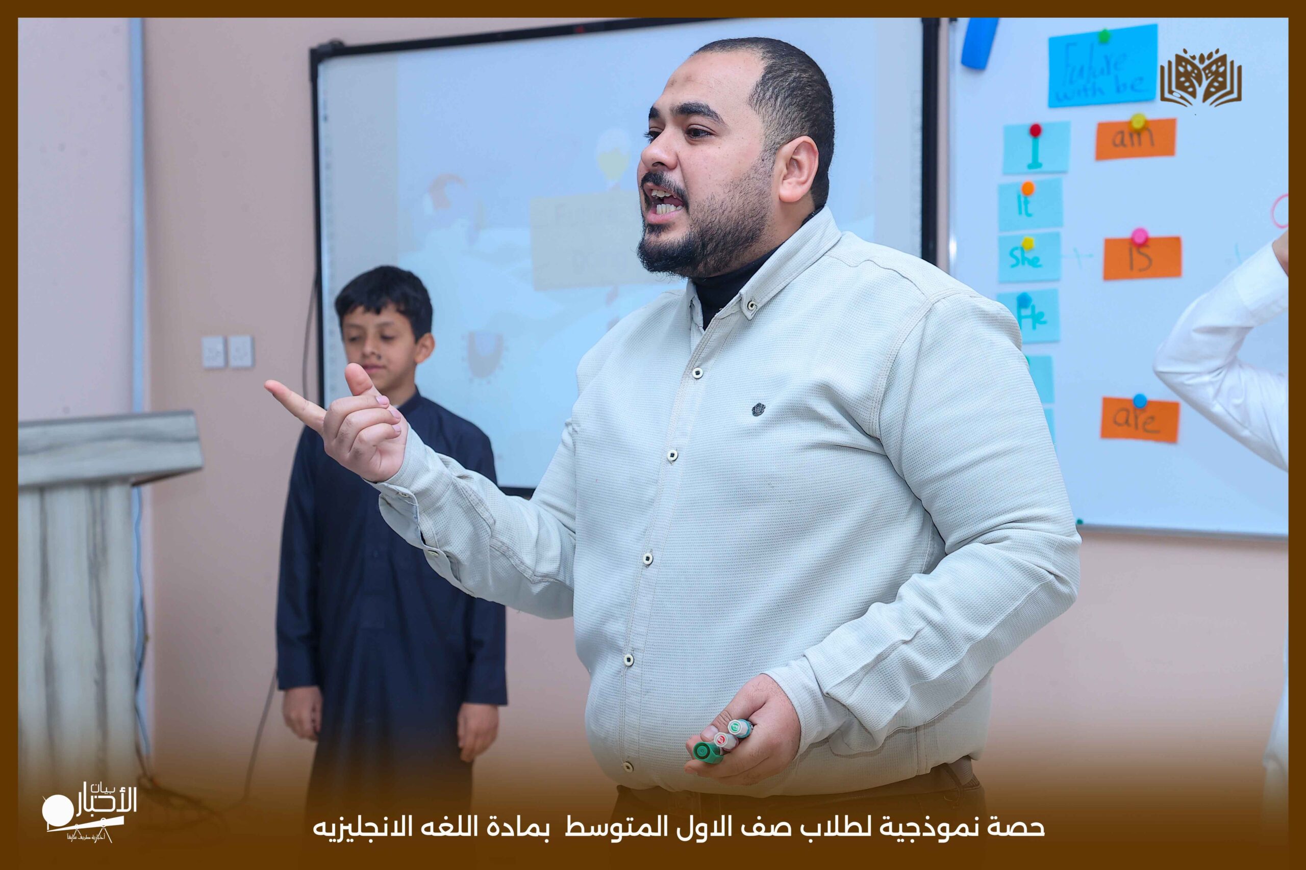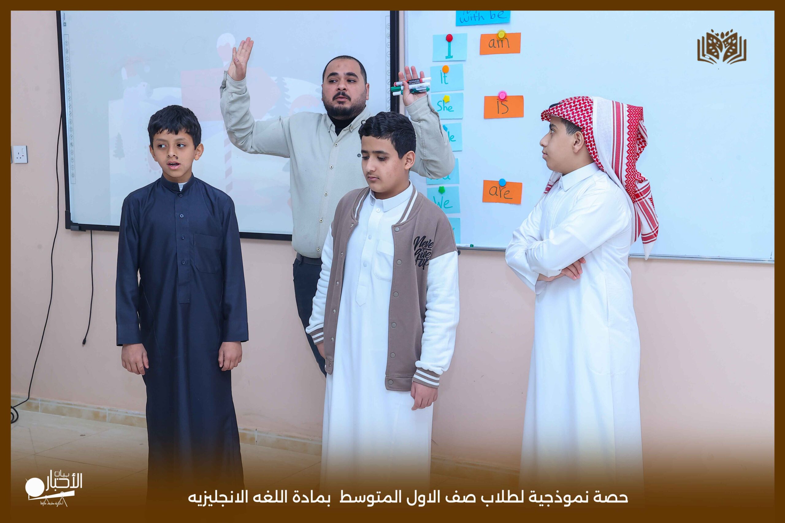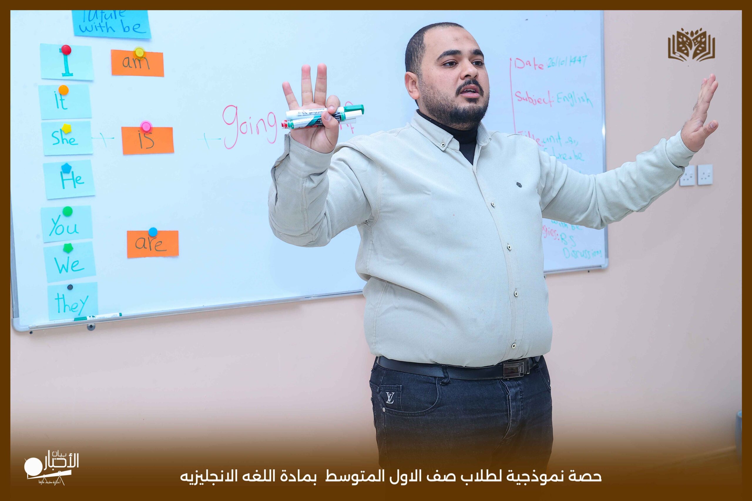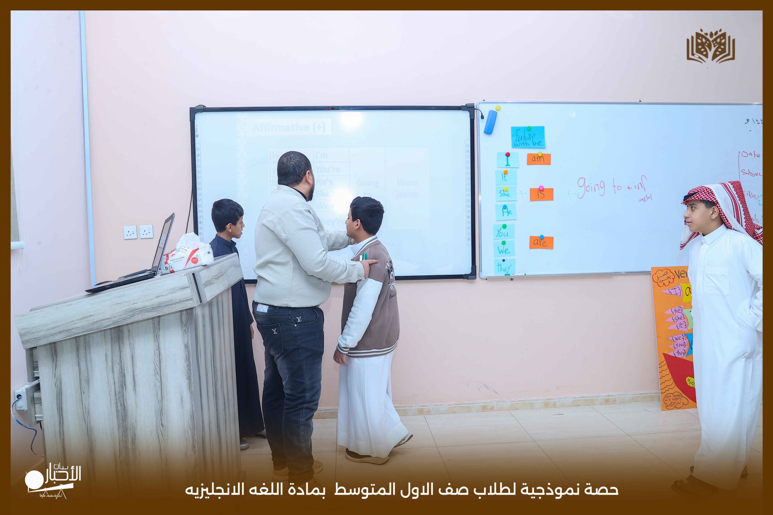 نفذت اليوم الثلاثاء الموافق ٢٦ / ١٠ / ١٤٤٧هـ حصة نموذجية في مادة اللغة الإنجليزية لطلاب الصف الأول المتوسط بمدارس الوعد النموذجية (القسم المتوسط والثانوي)، بعنوان (Grammar: The Future with “Be”).